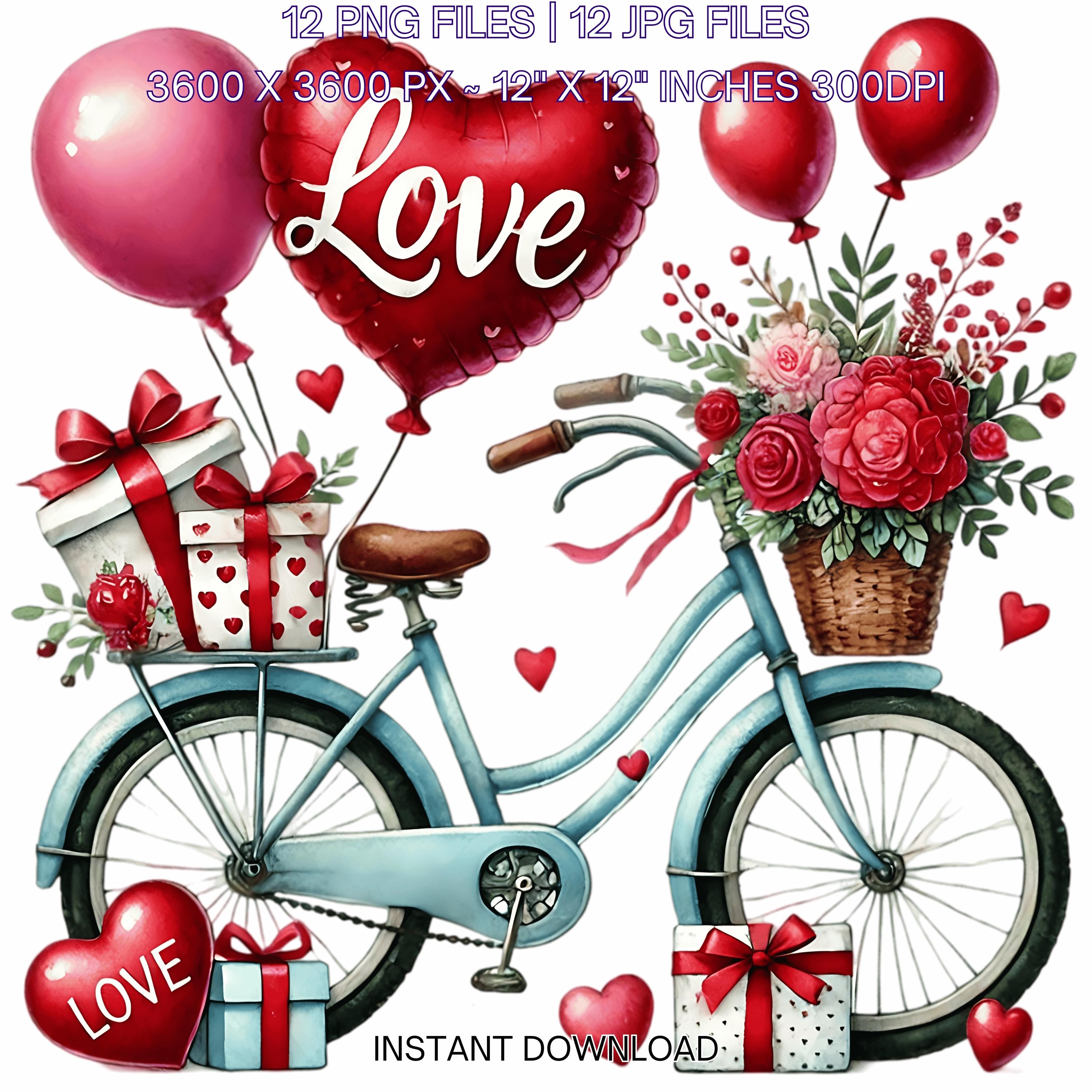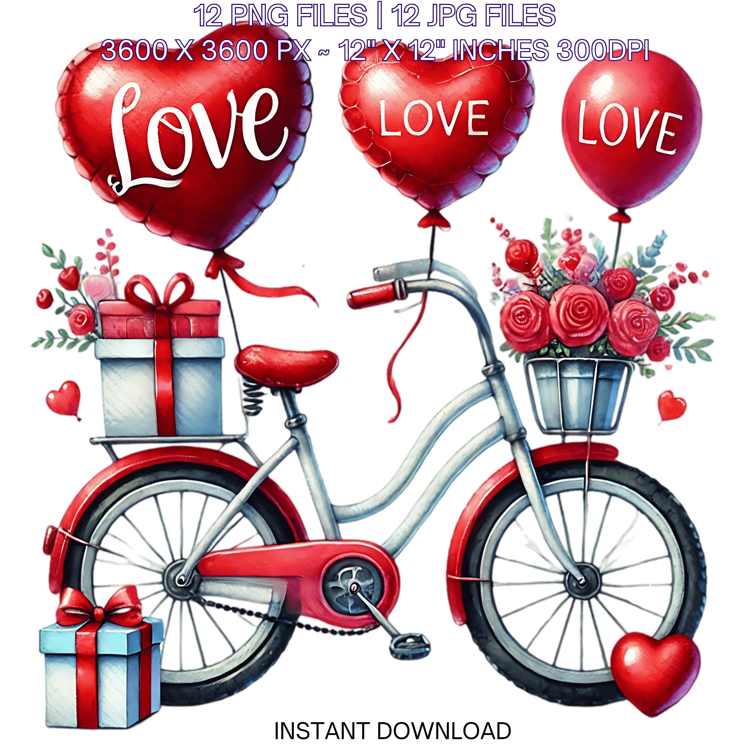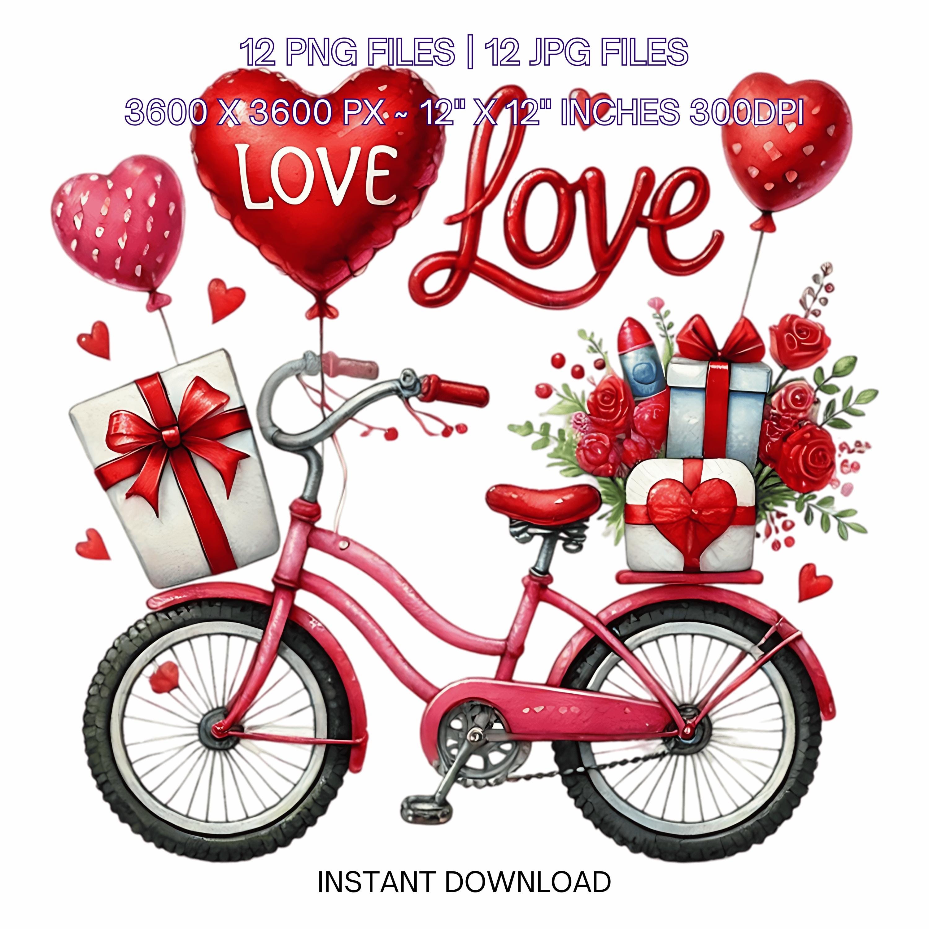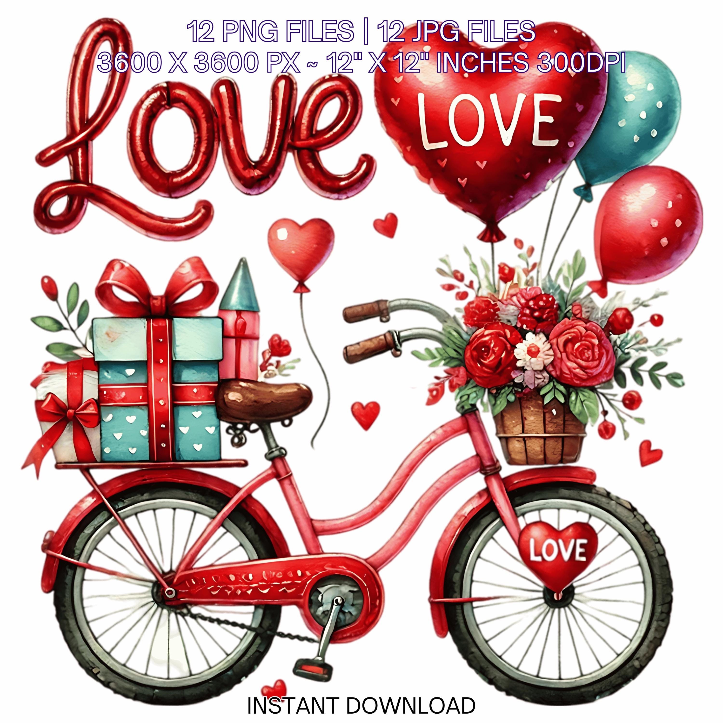 12 Valentine Bicycle for Girl PNG Clipart | Valentine’s Day Lovers Bike | Watercolor Cycling In Love Couple Sublimation Image Commercial Use
