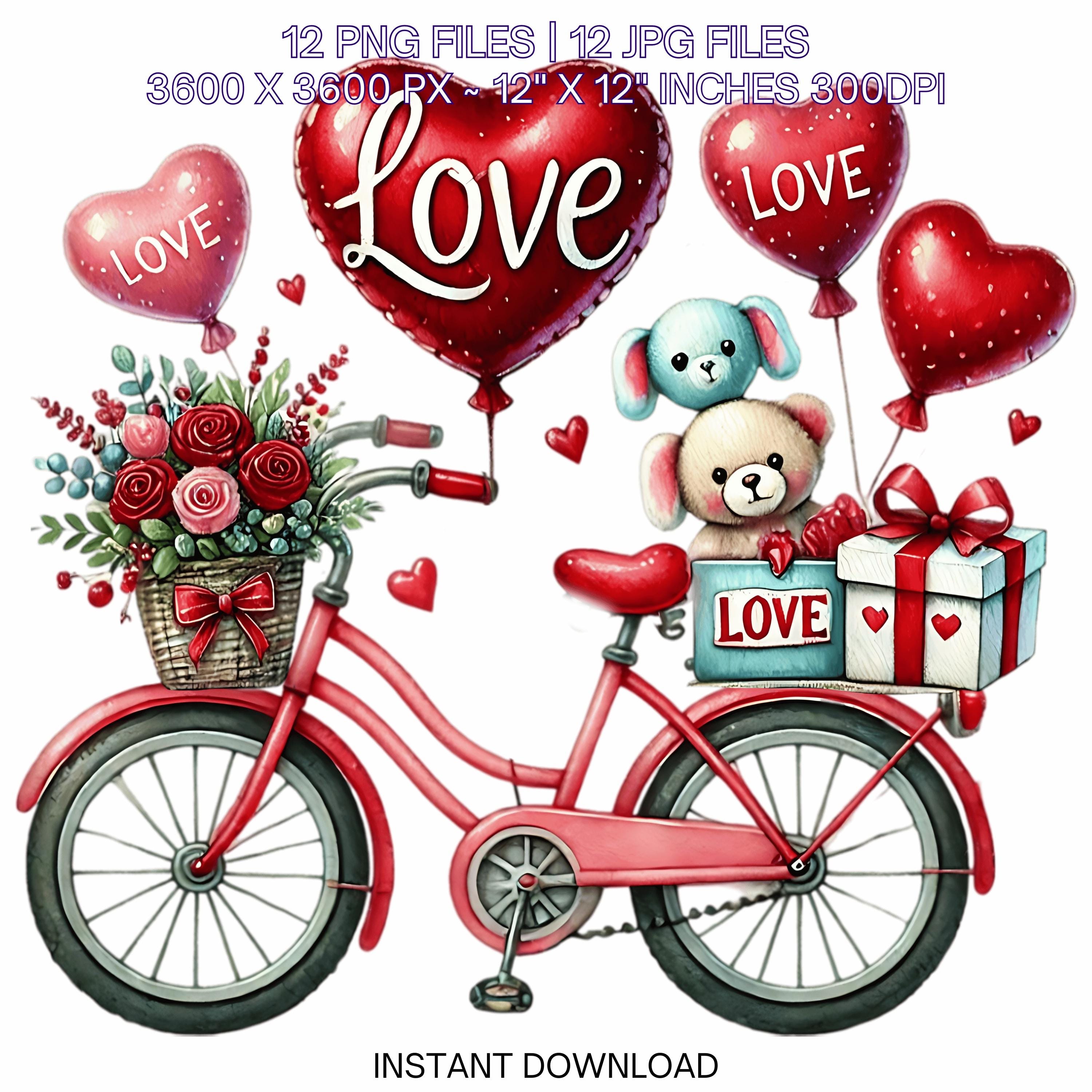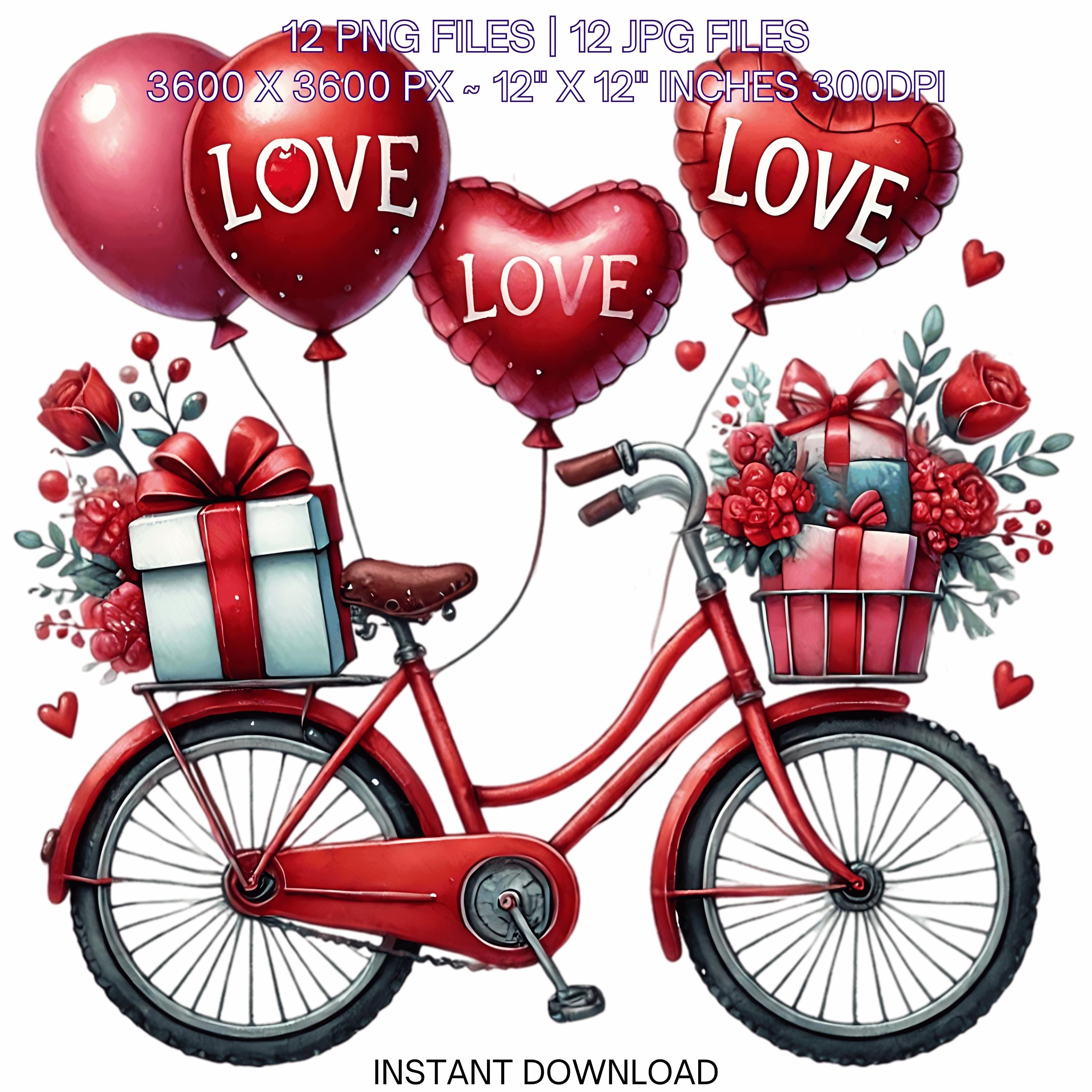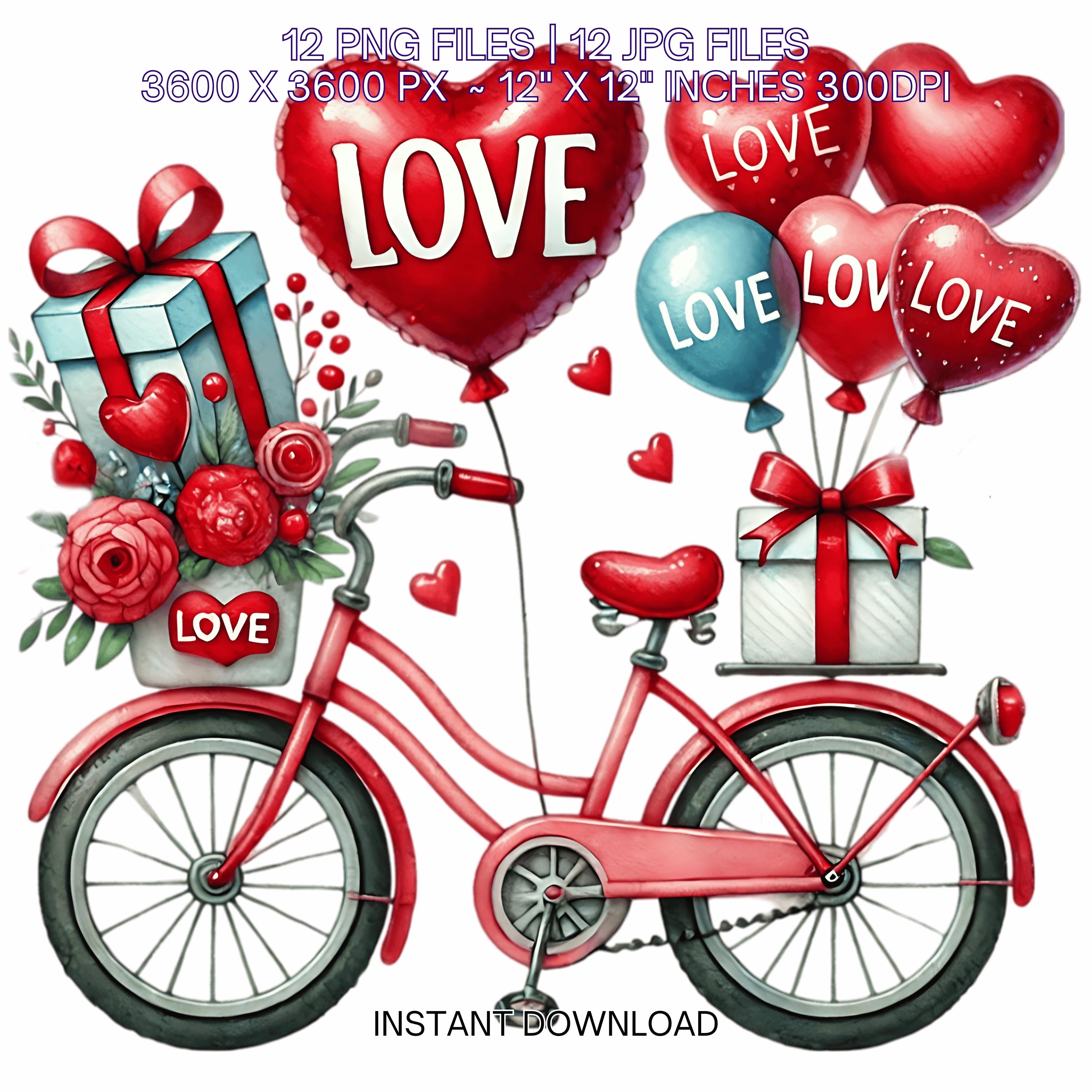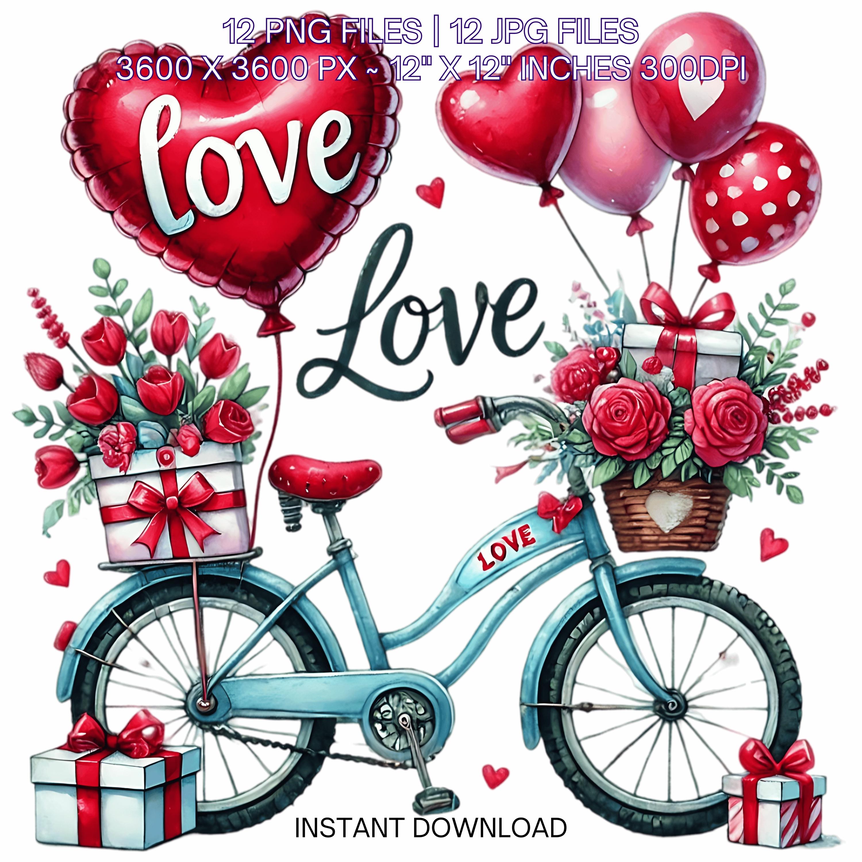 12 Valentine Bicycle for Girl PNG Clipart | Valentine’s Day Lovers Bike | Watercolor Cycling In Love Couple Sublimation Image Commercial Use