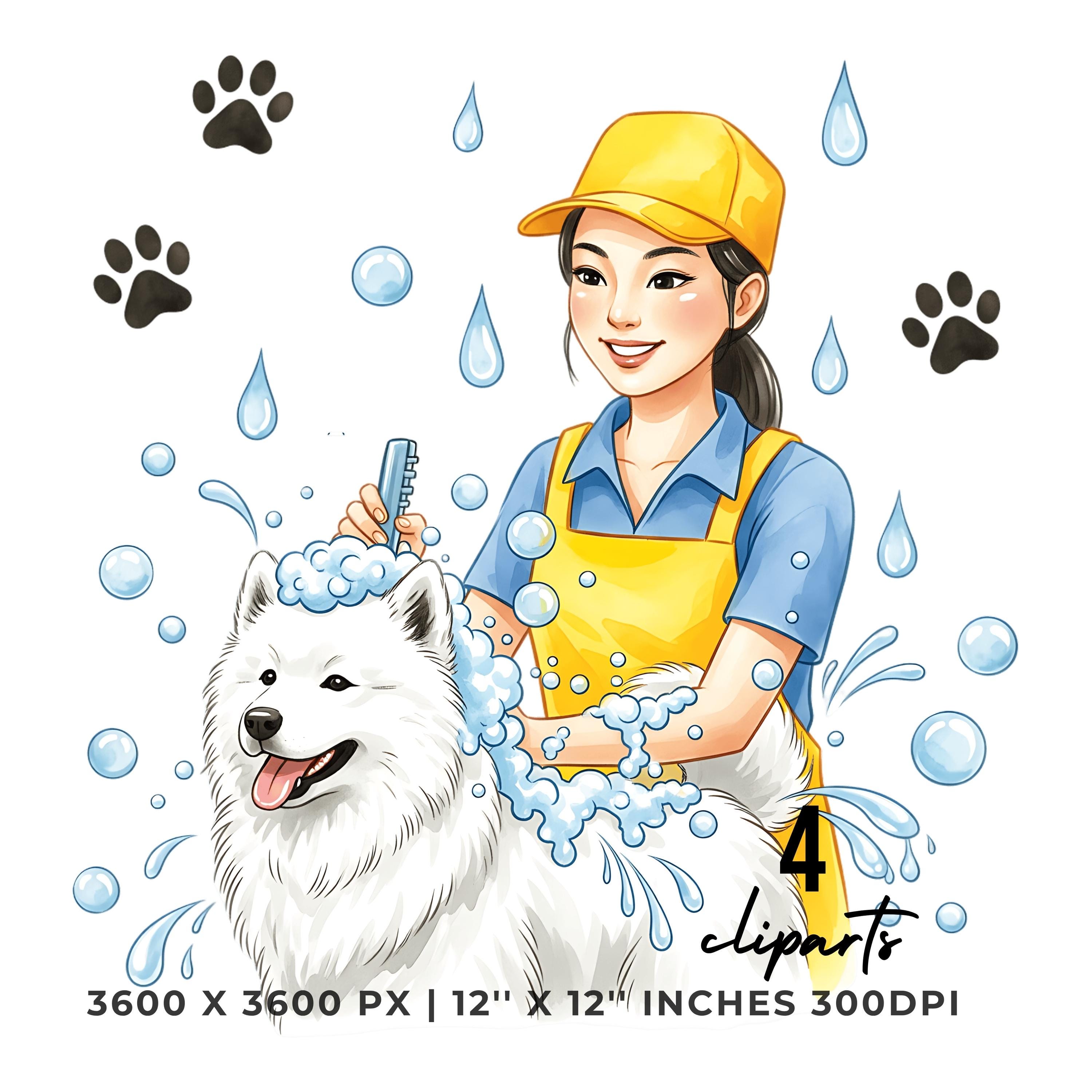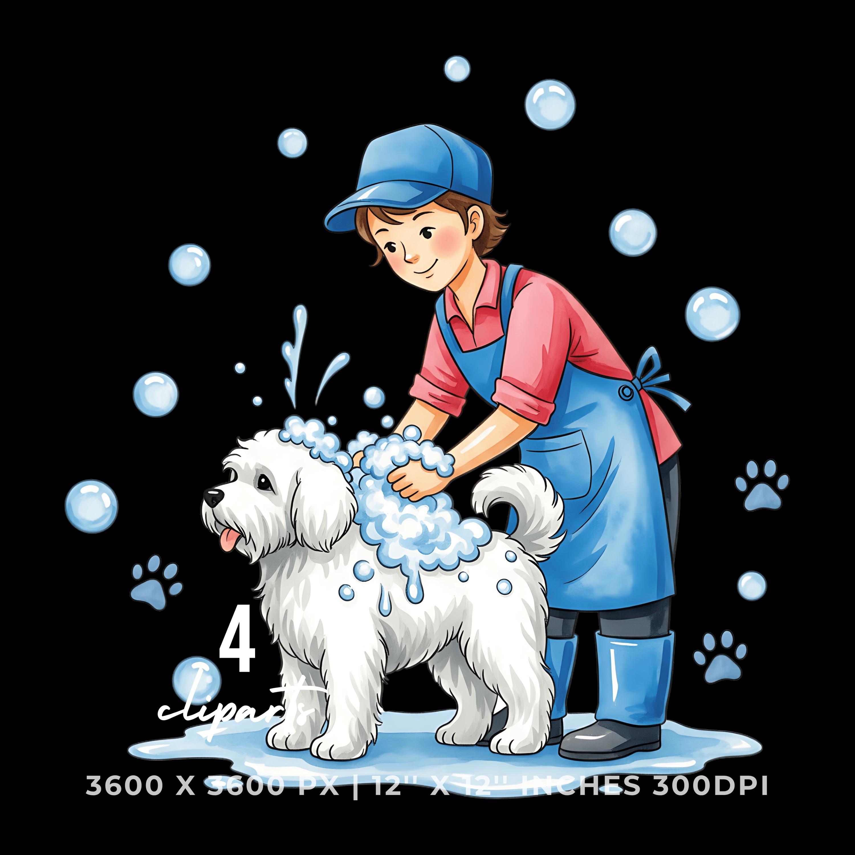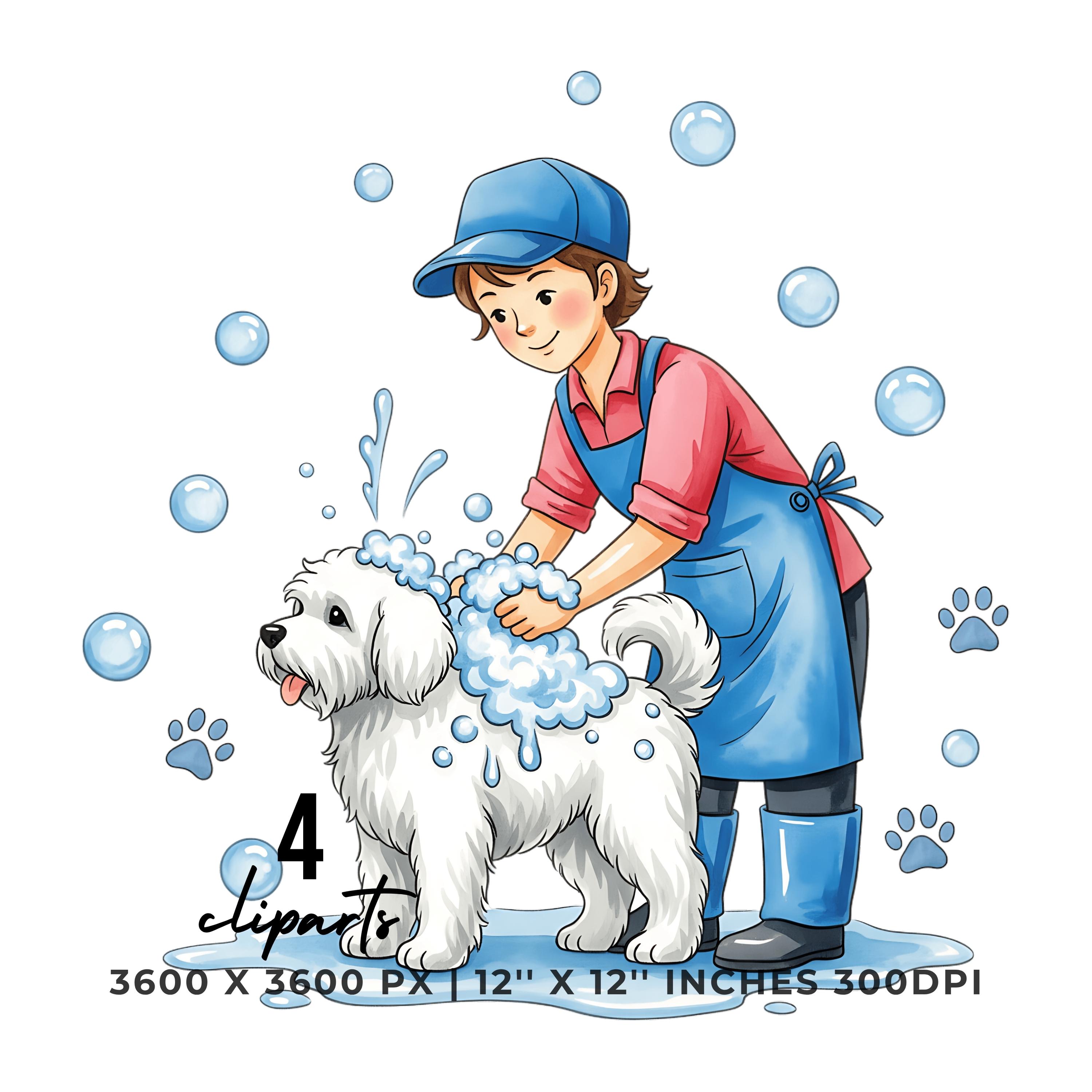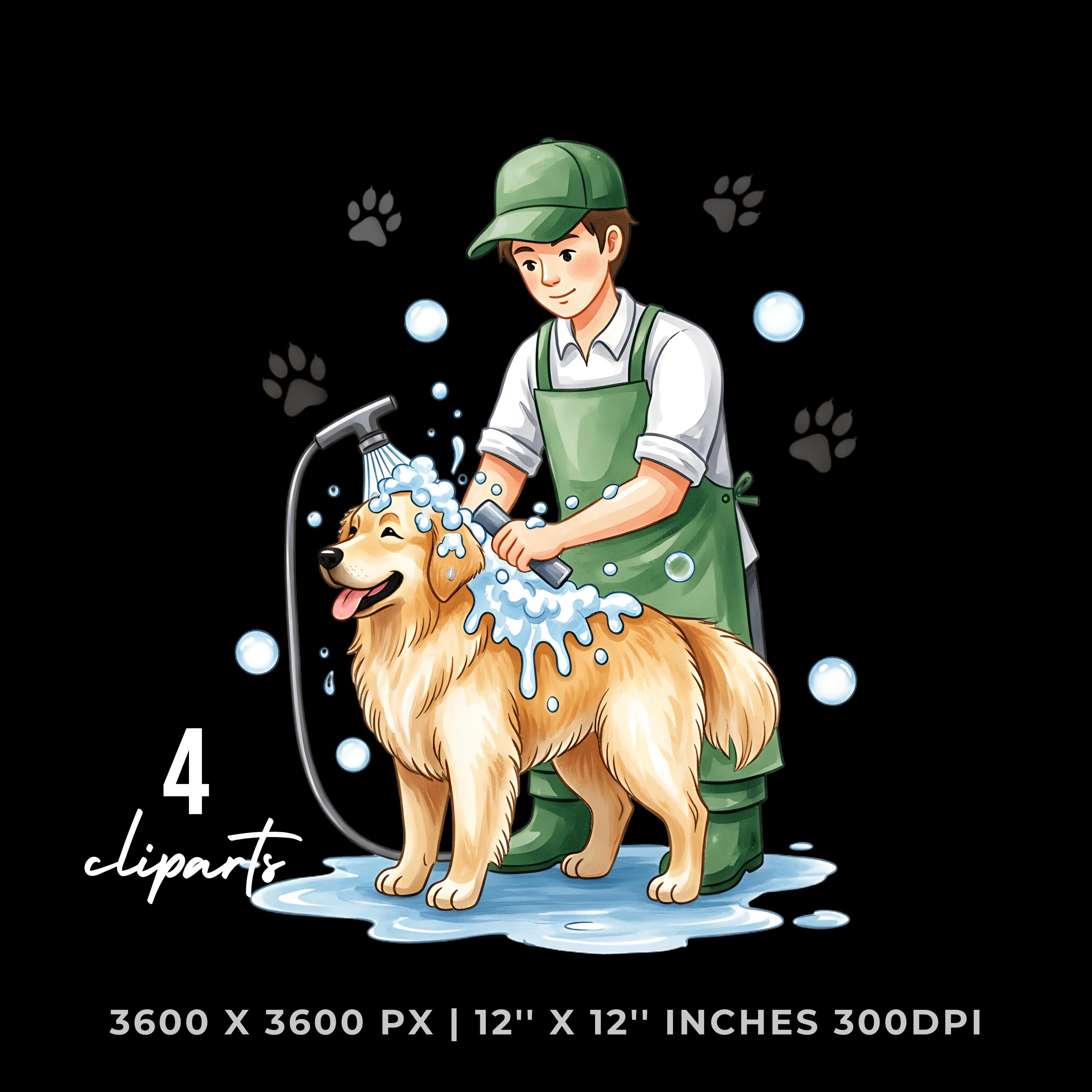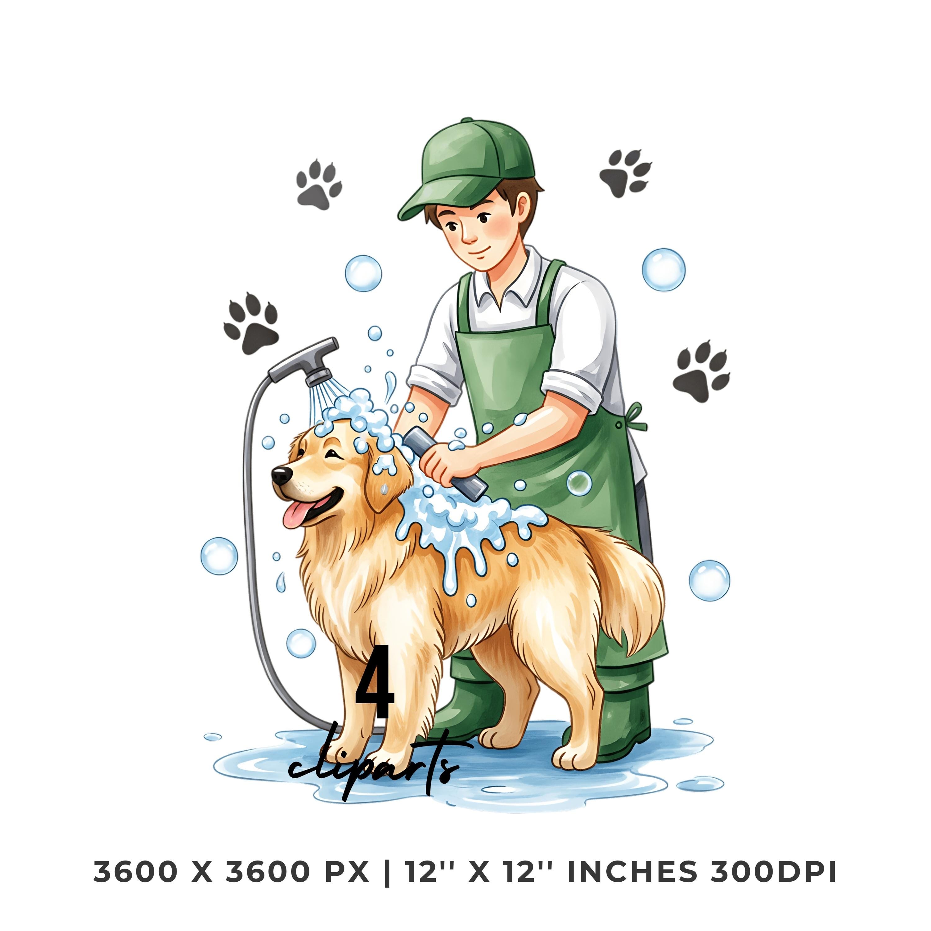 Dog Grooming Clipart Bundle | Pet Wash Art | 4 PNG & 4 JPG | Digital Stickers | 12″x12″ 300DPI Graphic Sublimation Commercial Use