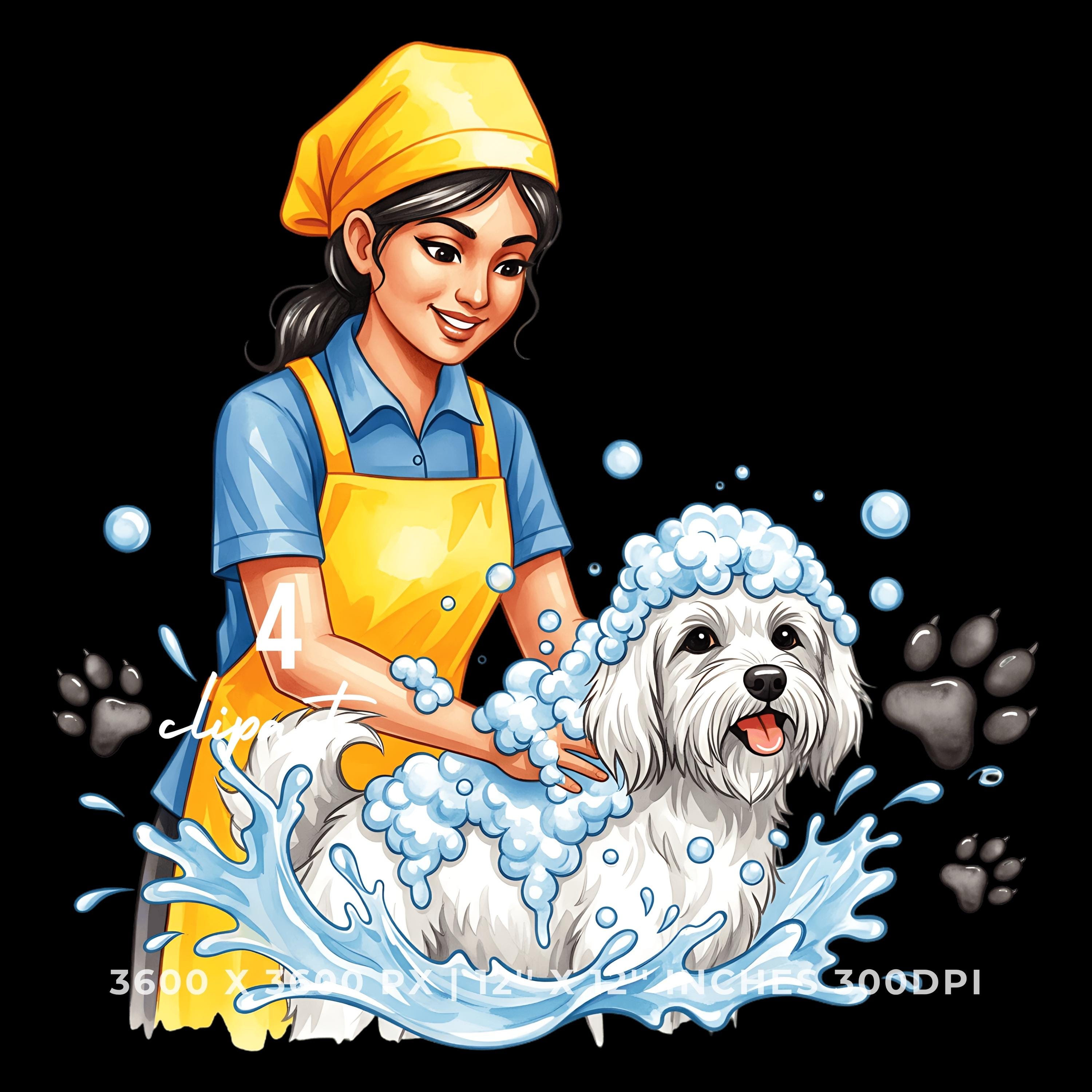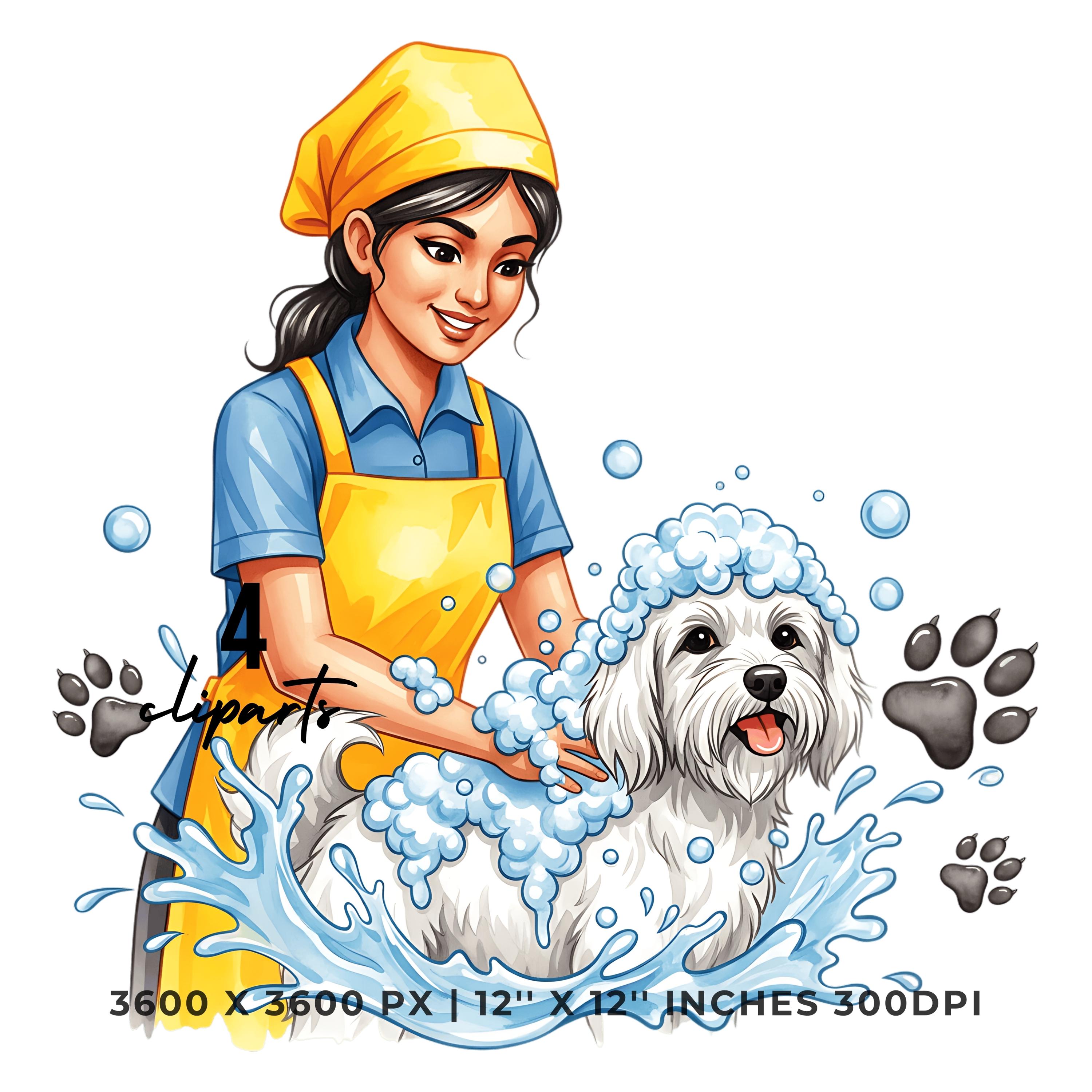 Dog Grooming Clipart Bundle | Pet Wash Art | 4 PNG & 4 JPG | Digital Stickers | 12″x12″ 300DPI Graphic Sublimation Commercial Use is an eye-catching, high-resolution digital asset designed for creators, crafters, teachers, and small business owners looking to elevate their visuals.