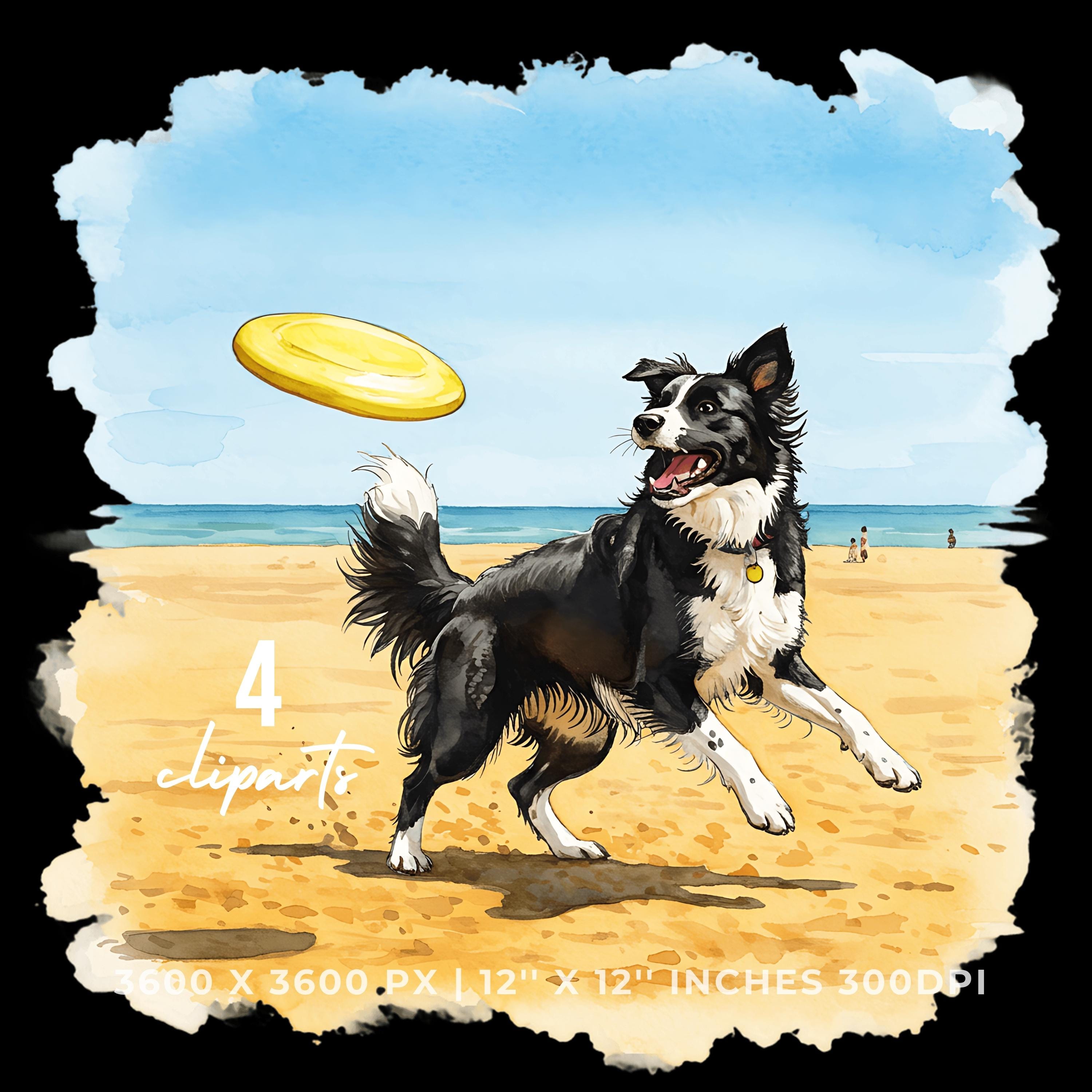 Dog Playing with Frisbee Summer Clipart | Beach Pup Art | 8 PNG & 8 JPG | Sublimation Transparent Commercial Use is an eye-catching, high-resolution digital asset designed for creators, crafters, teachers, and small business owners looking to elevate their visuals.