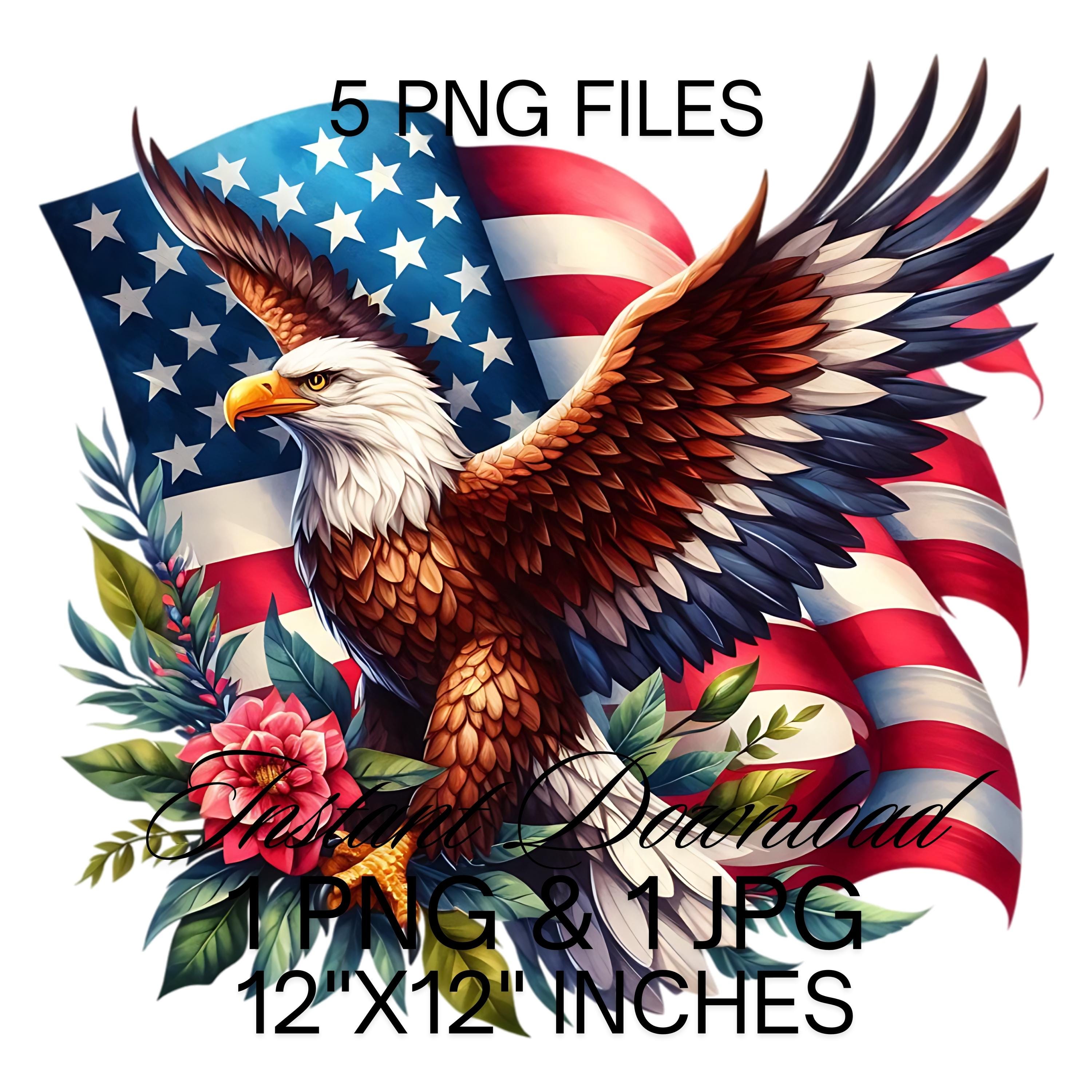 Eagle Flag PNG | 5 Patriotic USA Eagle Flag Clipart Bird Eagle Commercial Use Transparent Clipart Eagle Flag Sublimation United States Eagle is an eye-catching, high-resolution digital asset designed for creators, crafters, teachers, and small business owners looking to elevate their visuals.
