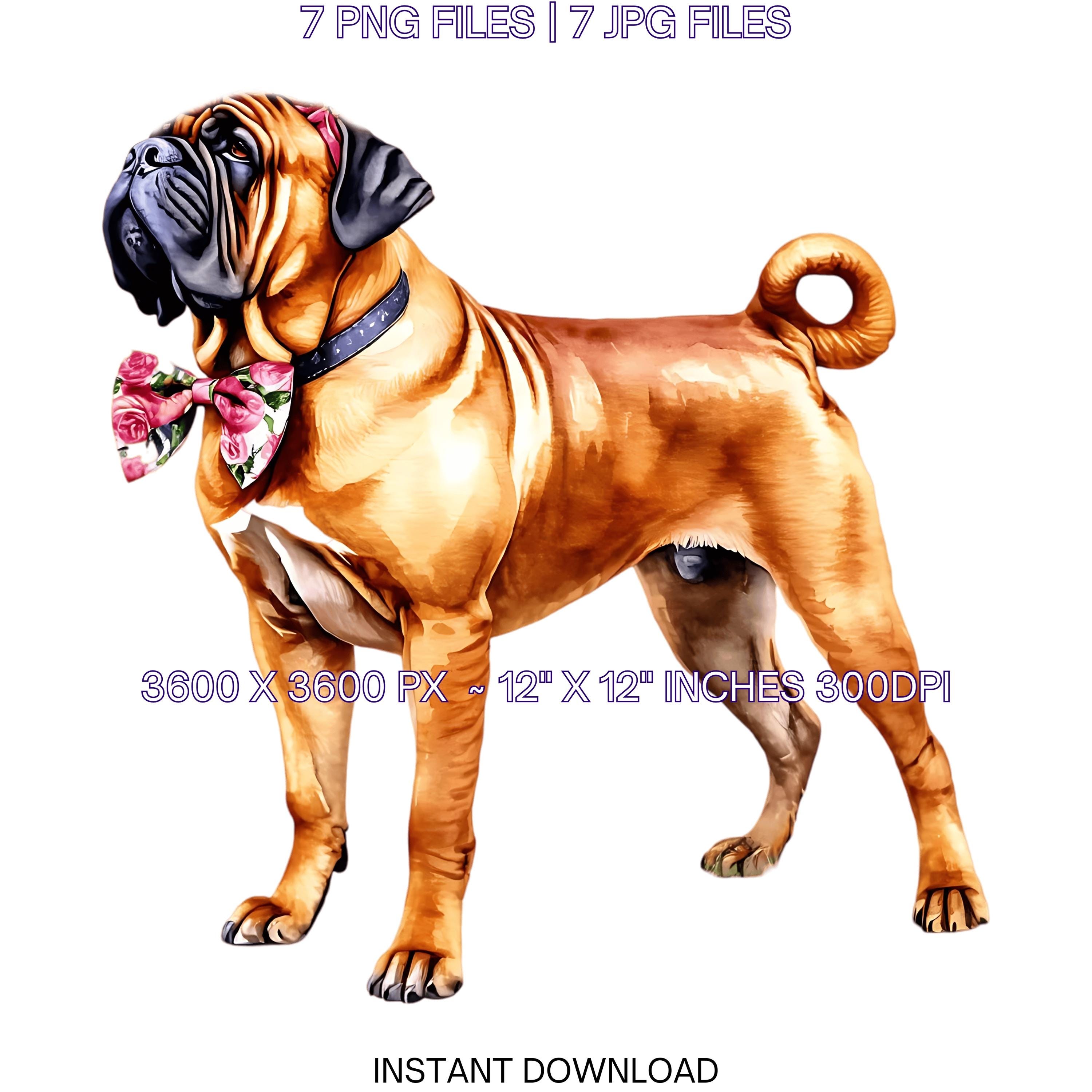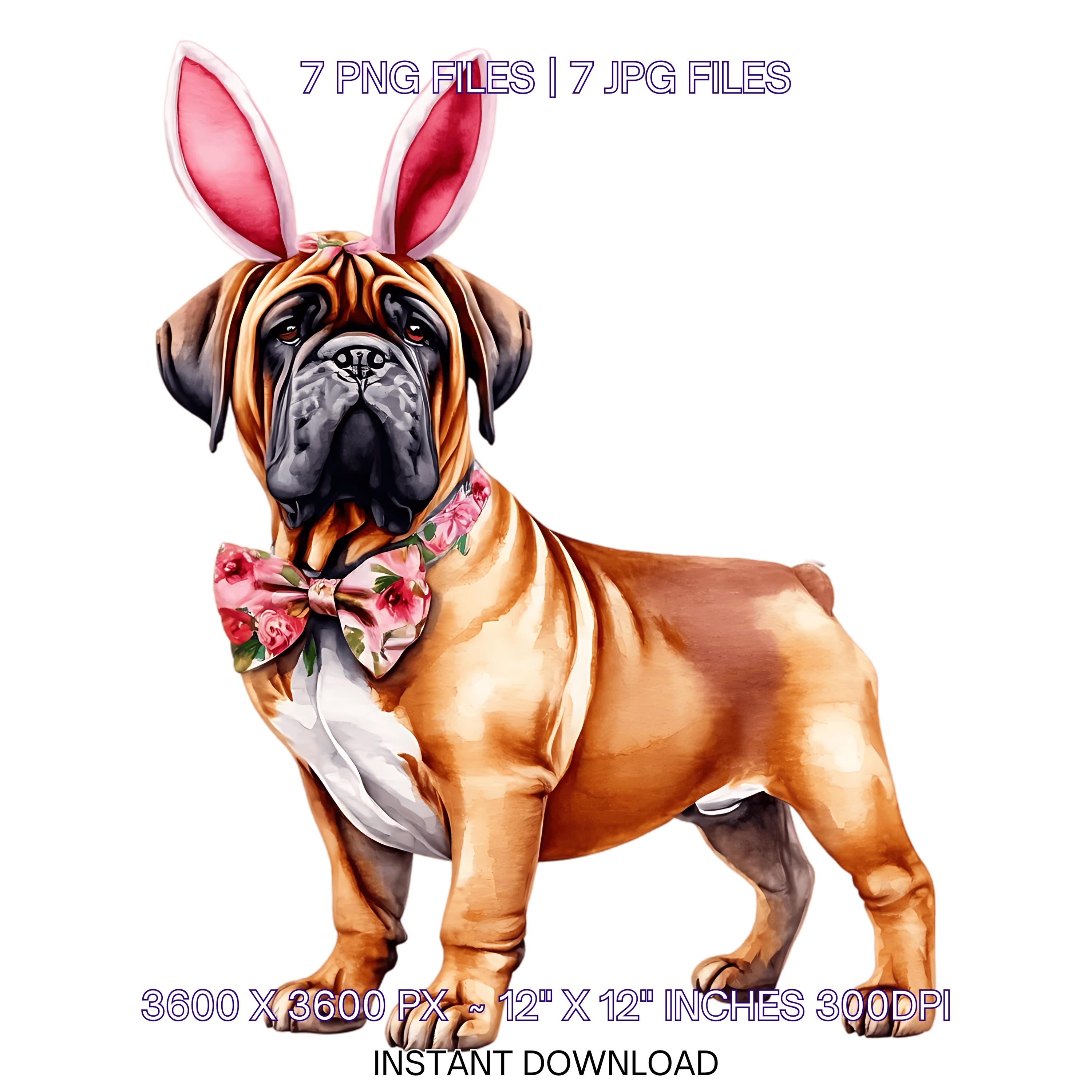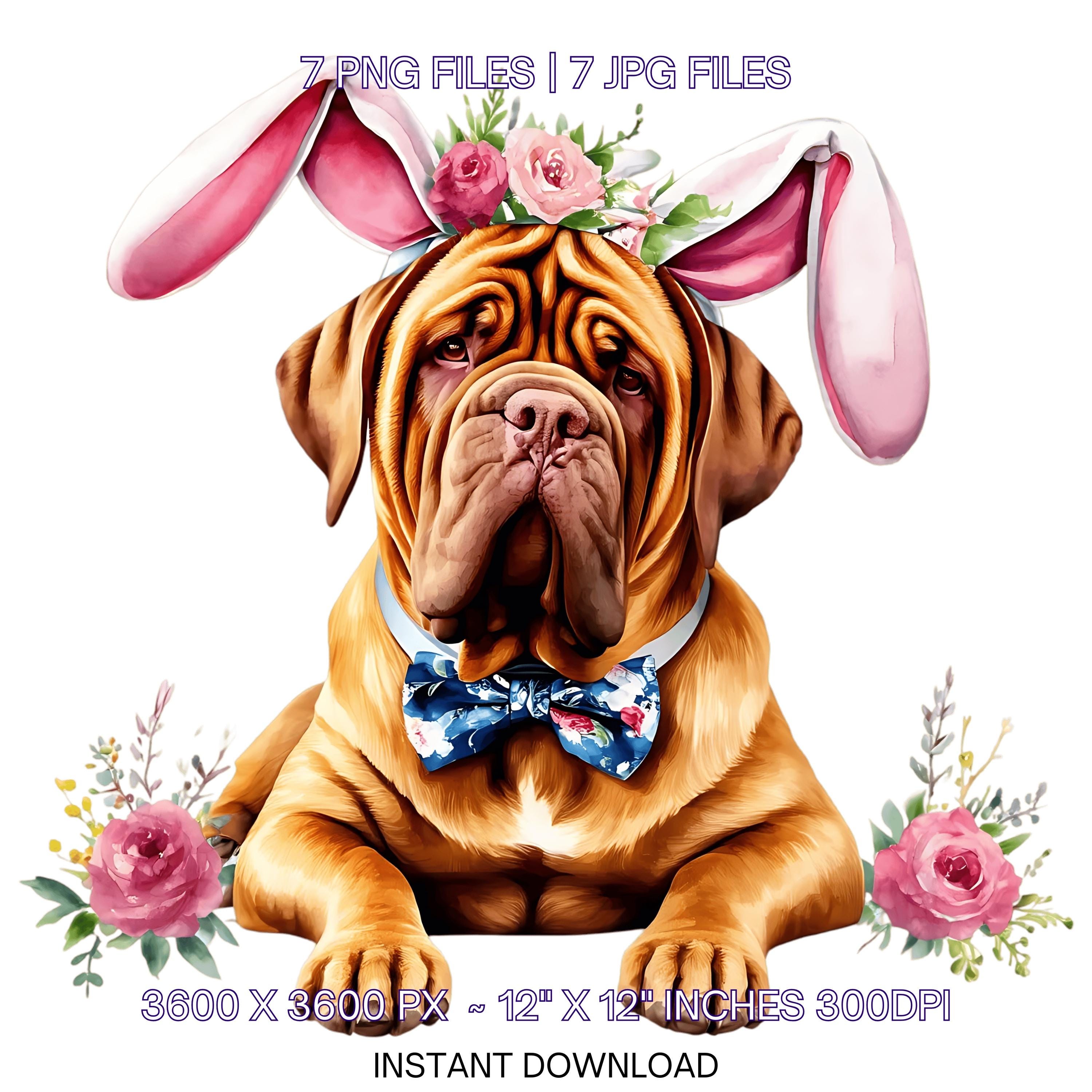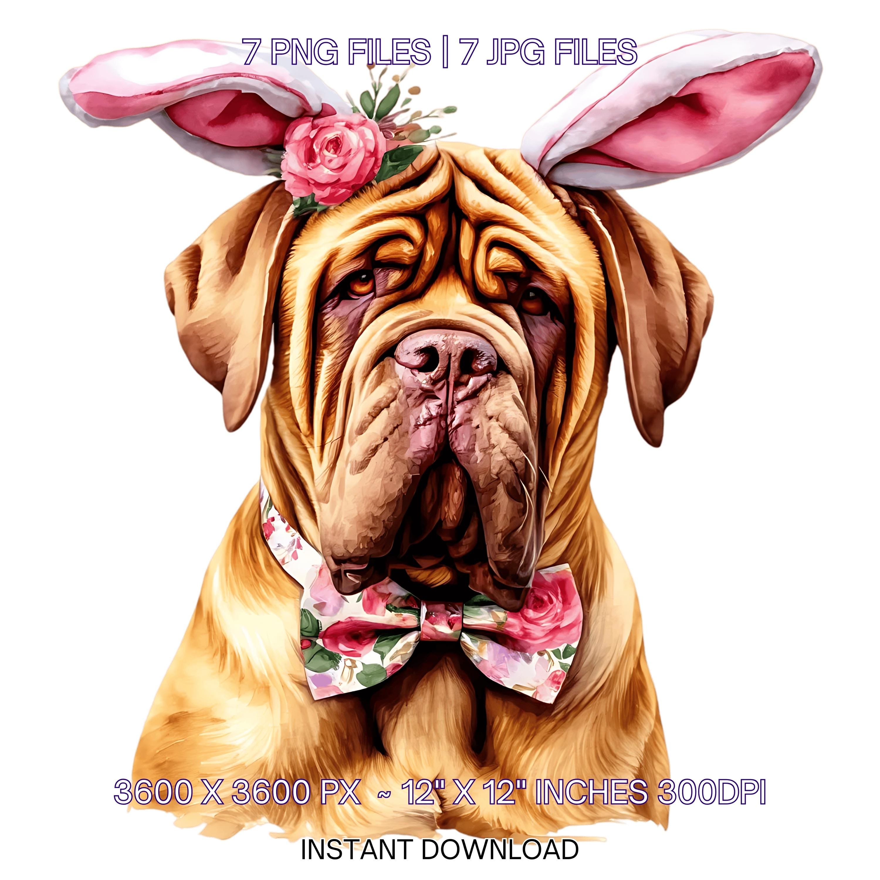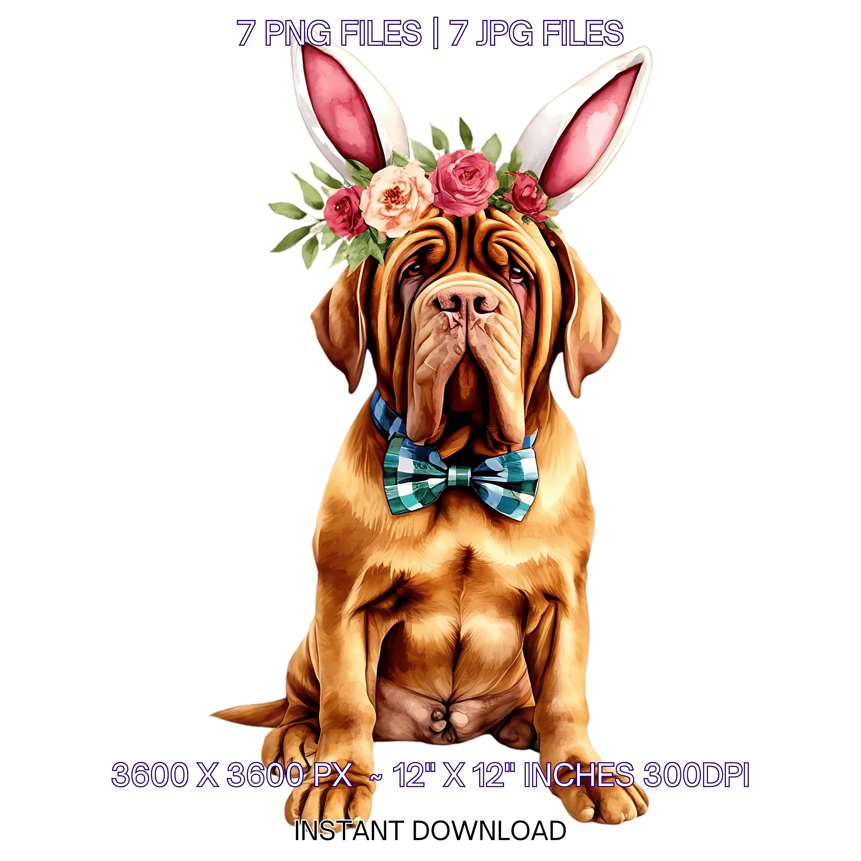 Easter Dogue De Bordeaux Dog Wearing Floral Bow & Bunny Ear Handband Ready for Easter Egg Hunting Clipart PNG | 7 Dog Lover Commercial Use is an eye-catching, high-resolution digital asset designed for creators, crafters, teachers, and small business owners looking to elevate their visuals.