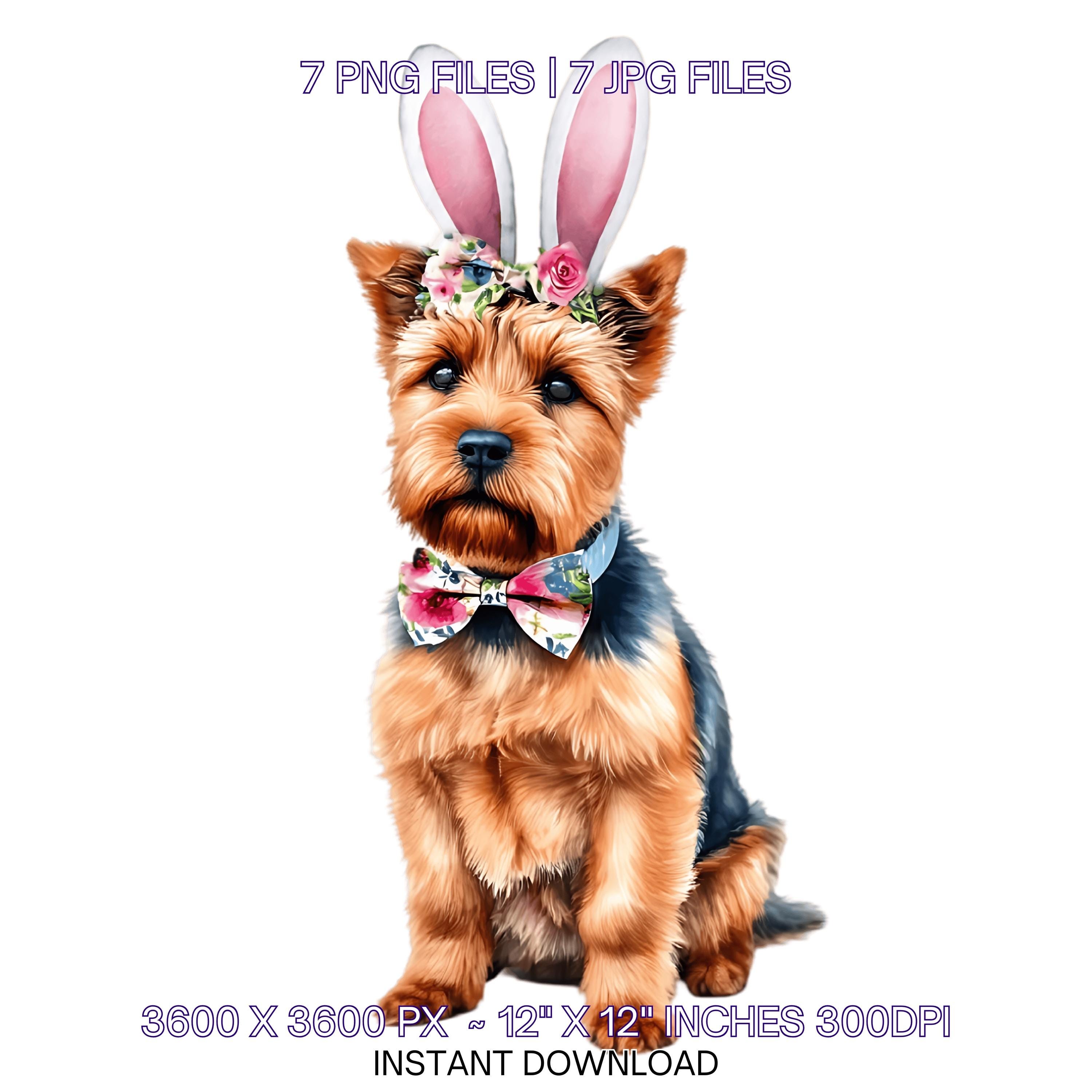 Easter Norwich Terrier Dog Wearing Floral Bow & Bunny Ear Handband Ready for Easter Egg Hunting Clipart PNG, 7 Dog Lover Commercial Use is an eye-catching, high-resolution digital asset designed for creators, crafters, teachers, and small business owners looking to elevate their visuals.