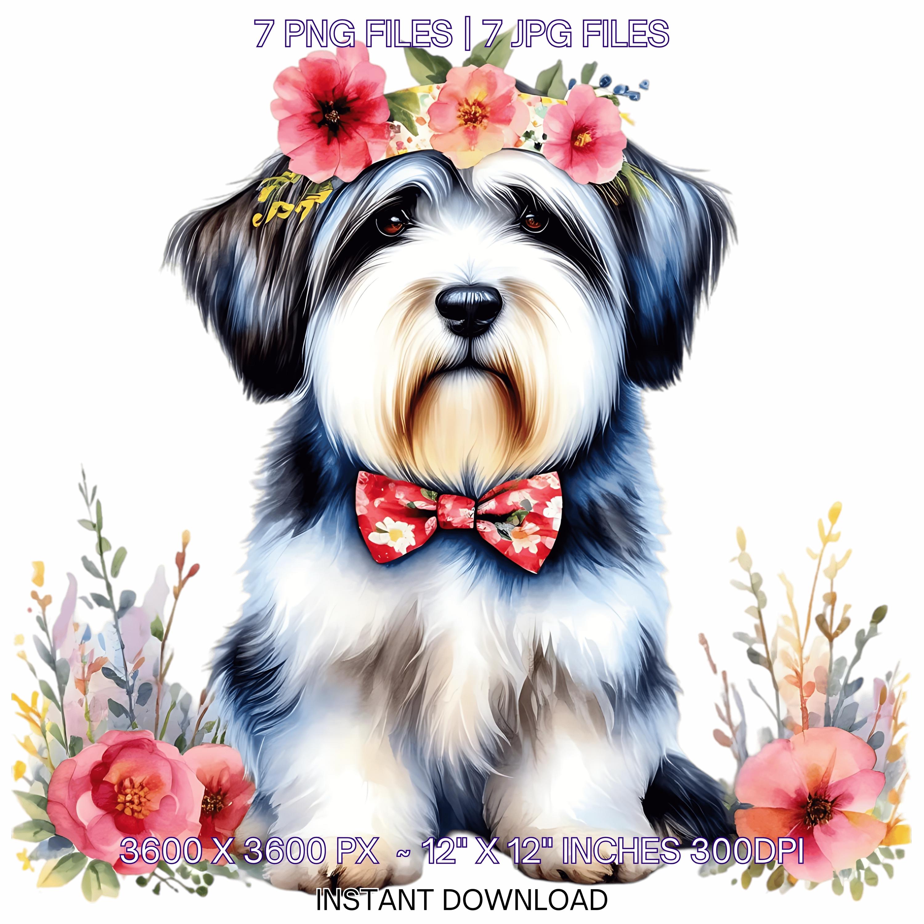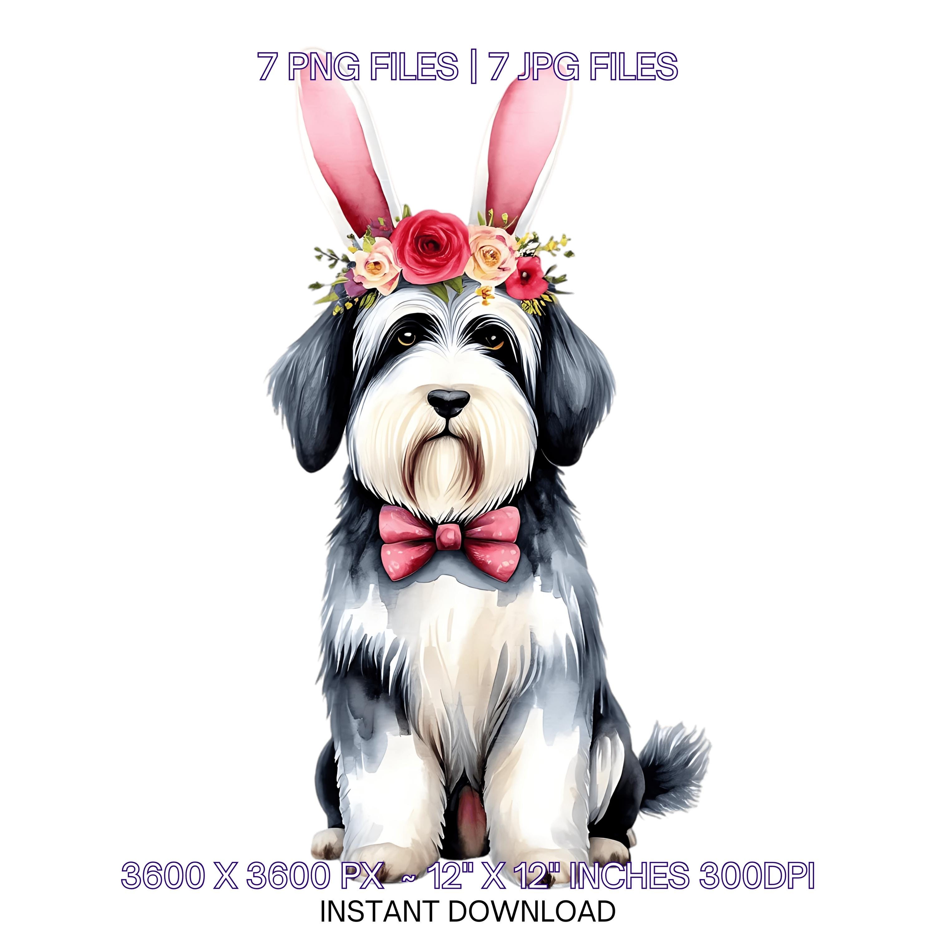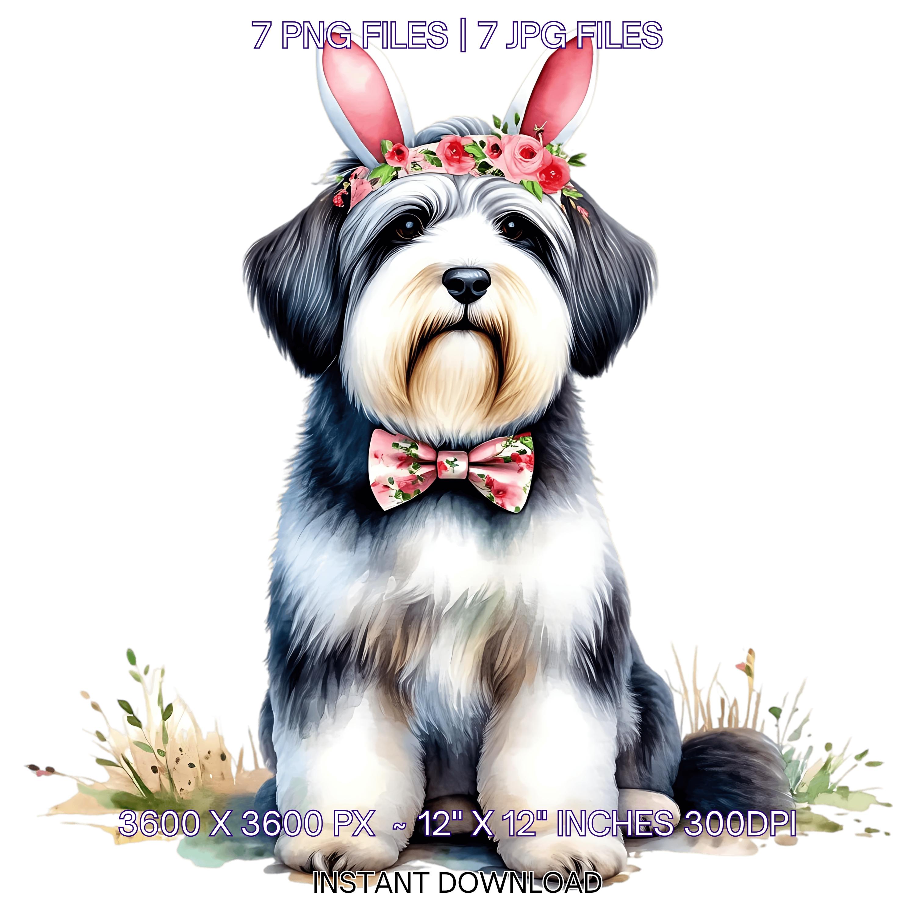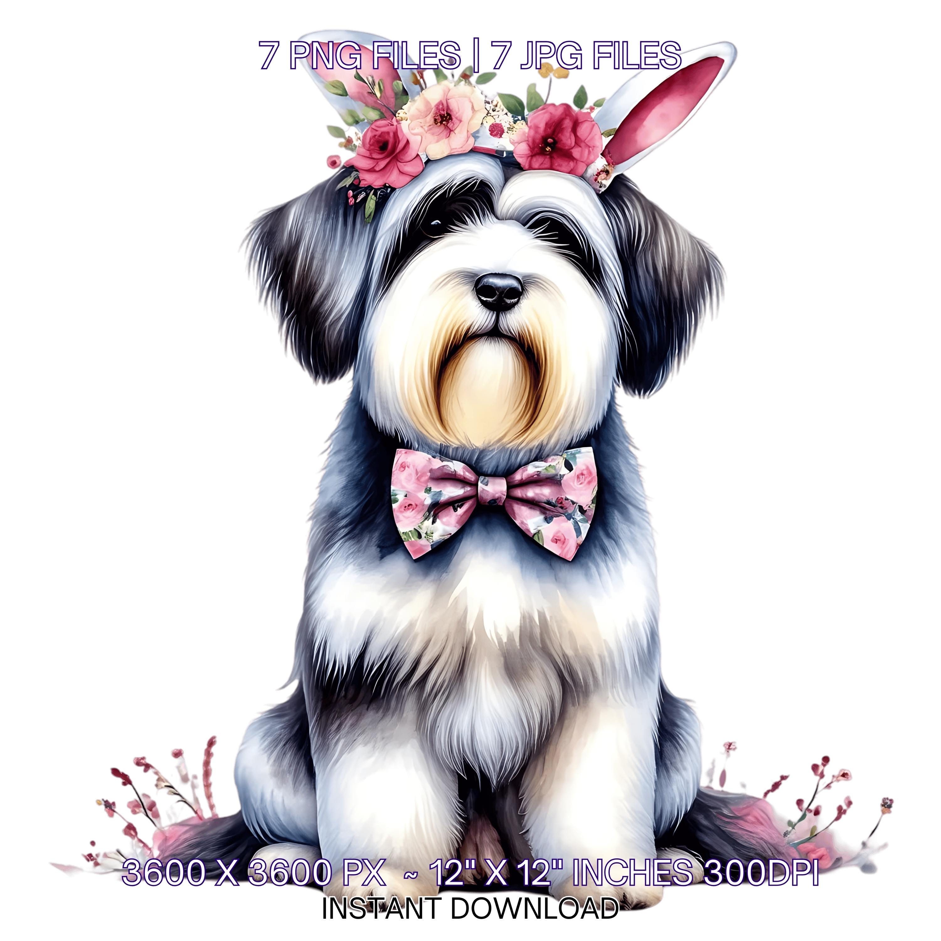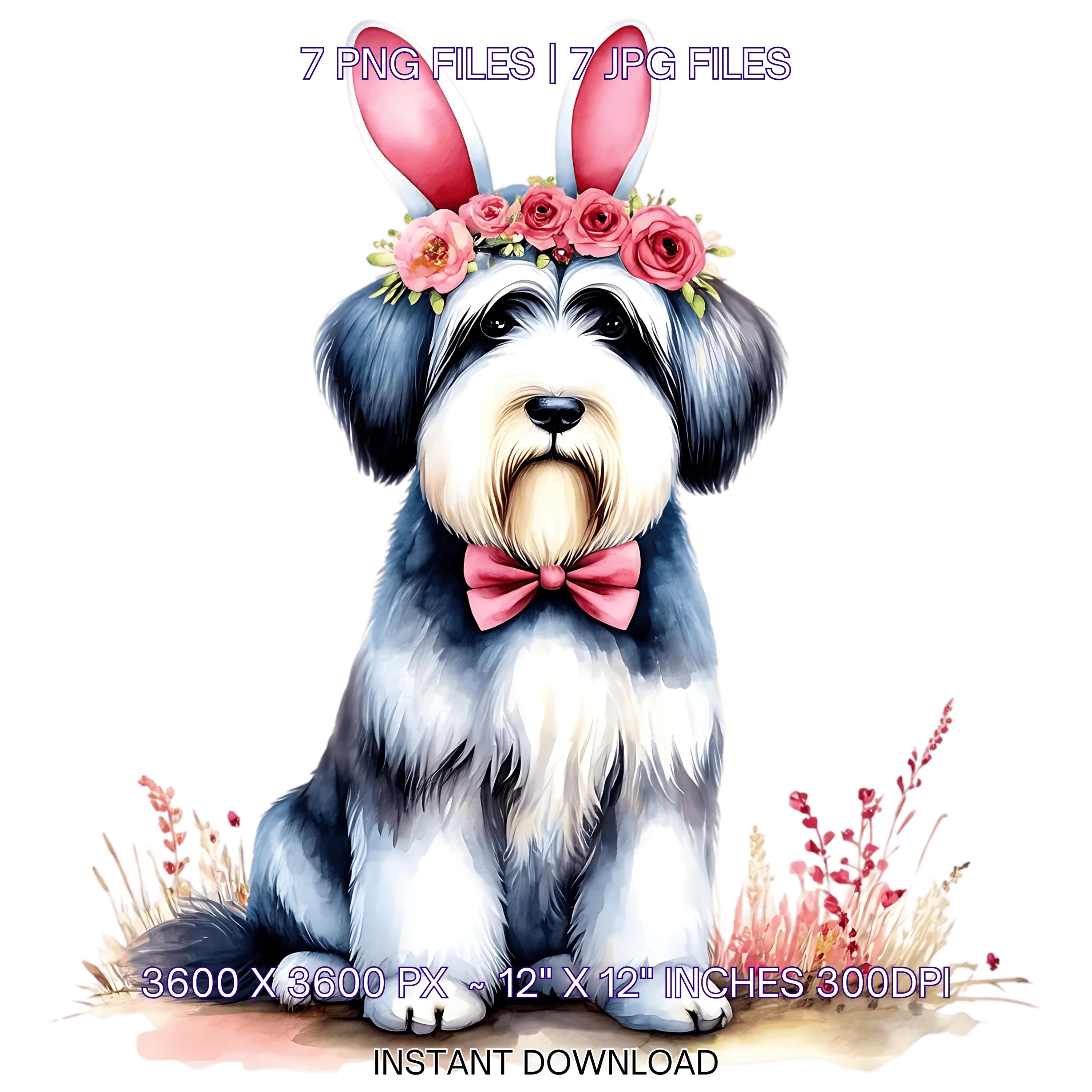 Easter Old English Sheep Dog Wearing Floral Bow & Bunny Ear Handband Ready for Easter Egg Hunting Clipart PNG, 7 Dog Lover Commercial is an eye-catching, high-resolution digital asset designed for creators, crafters, teachers, and small business owners looking to elevate their visuals.