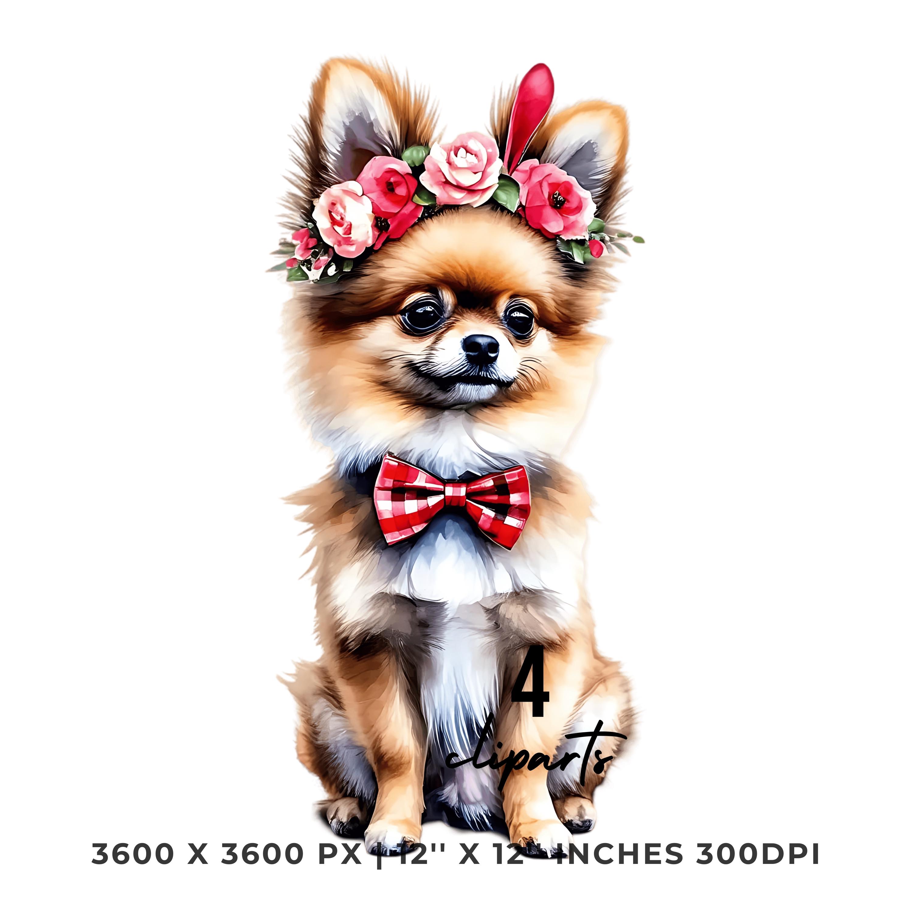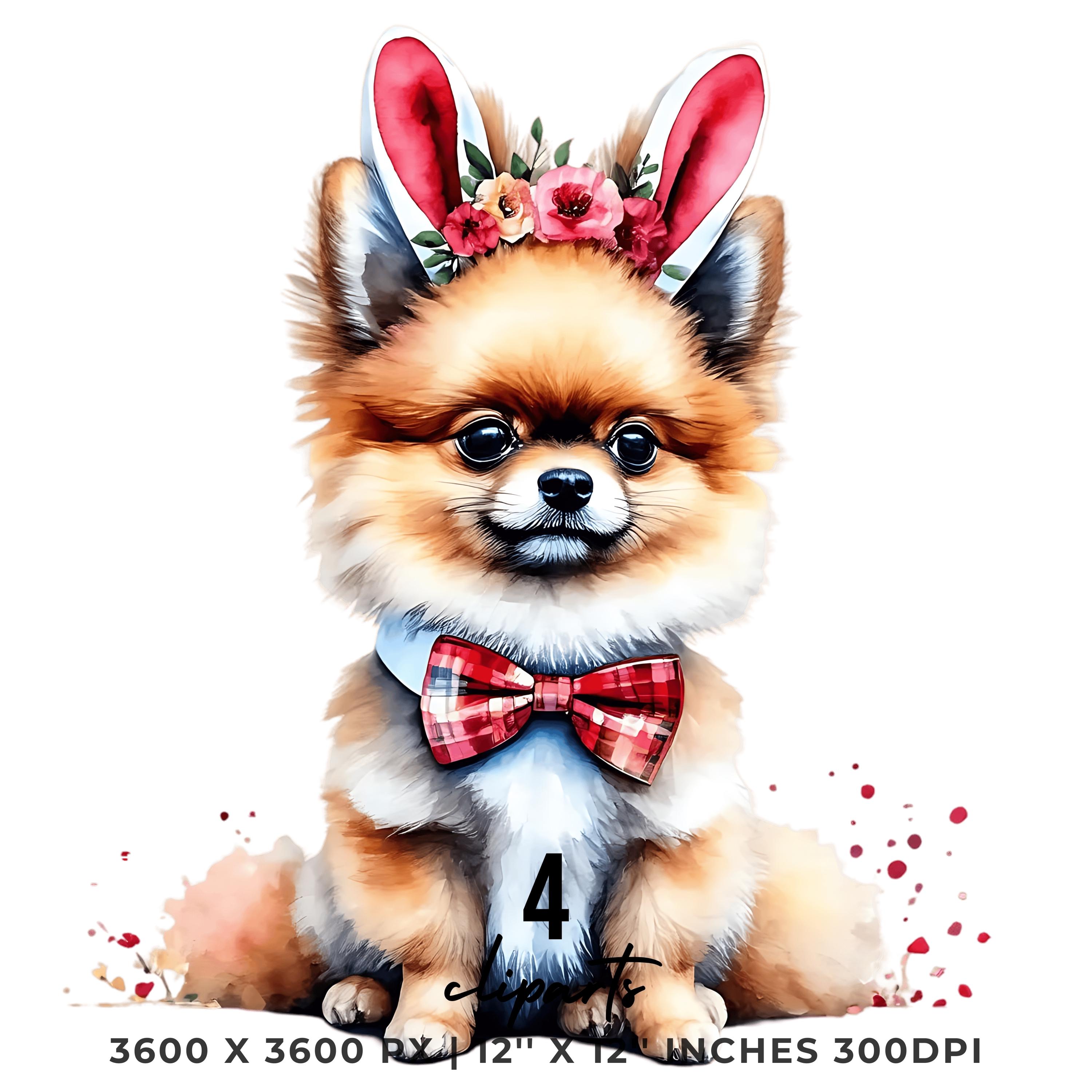 Easter Pomeranian Dog Wearing Floral Bow & Bunny Ear Handband Ready for Easter Egg Hunting Clipart PNG, 3 Dog Lover Commercial Use is an eye-catching, high-resolution digital asset designed for creators, crafters, teachers, and small business owners looking to elevate their visuals.