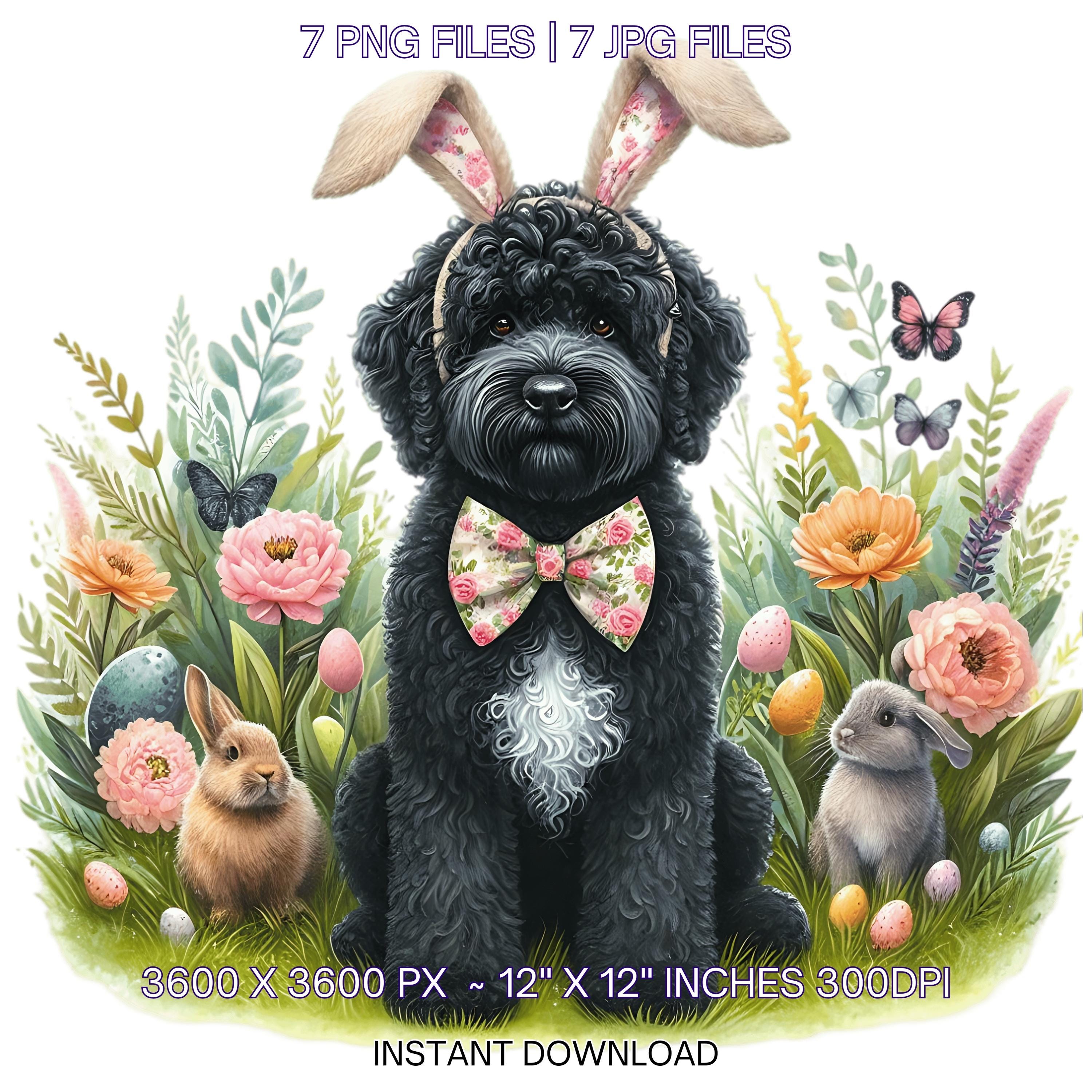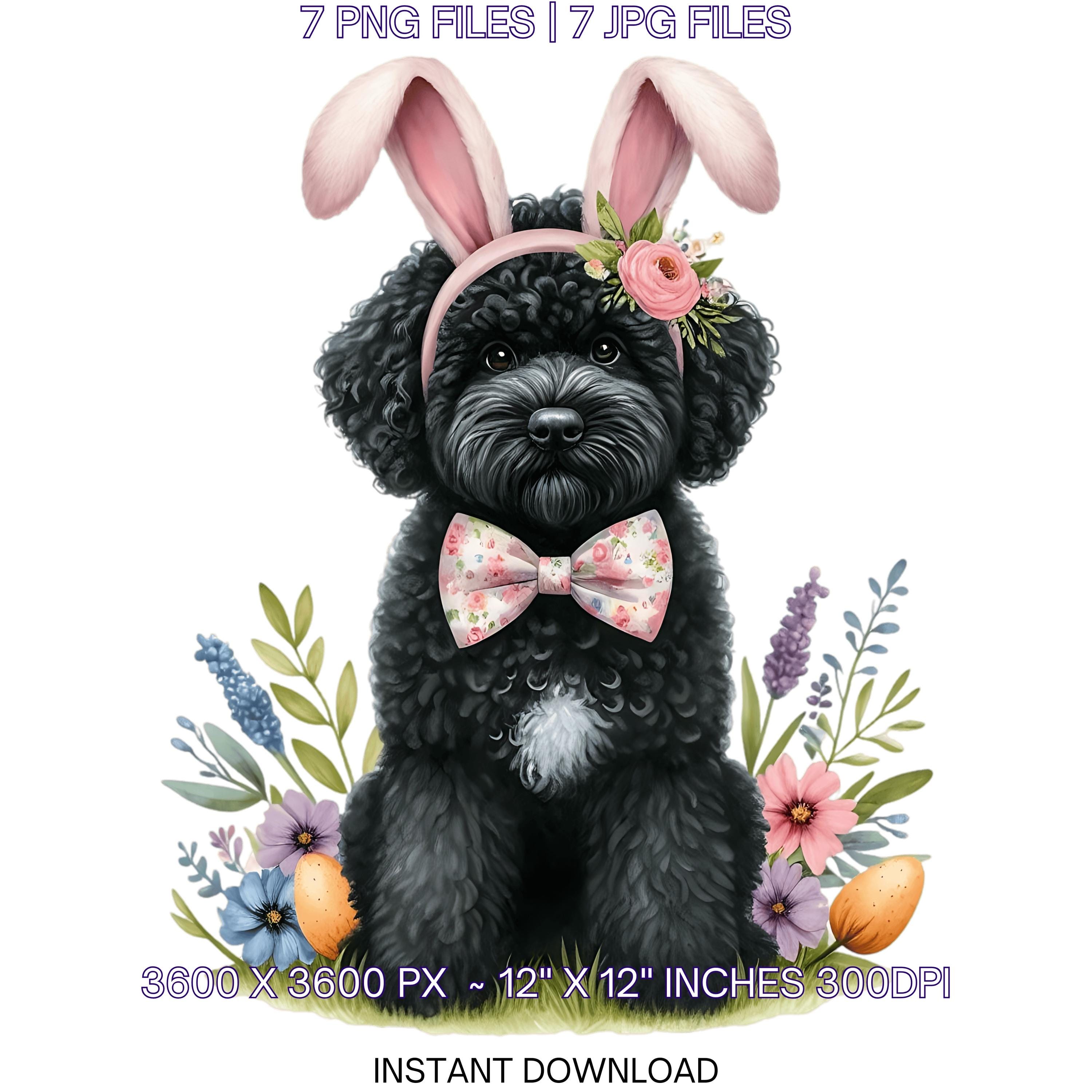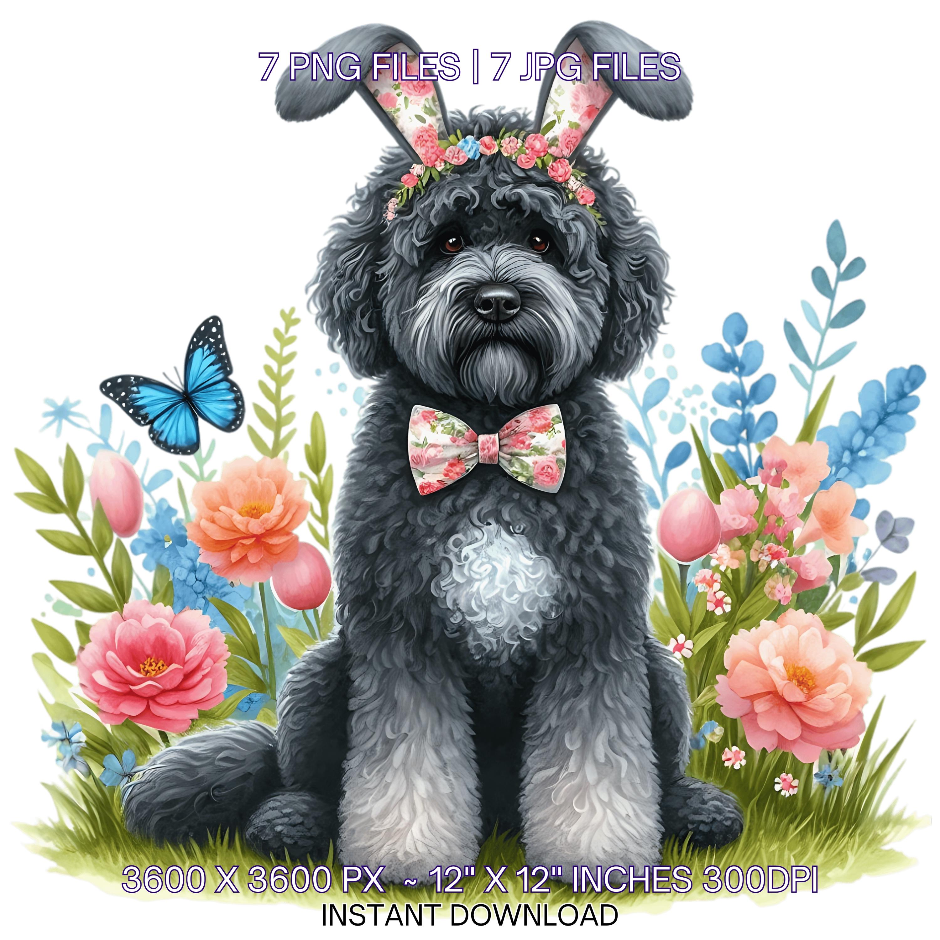 Easter Portuguese Water Dog Wearing Floral Bow & Bunny Ear Handband Ready for Easter Egg Hunting Clipart PNG, 7 Dog Lover Commercial Use is an eye-catching, high-resolution digital asset designed for creators, crafters, teachers, and small business owners looking to elevate their visuals.