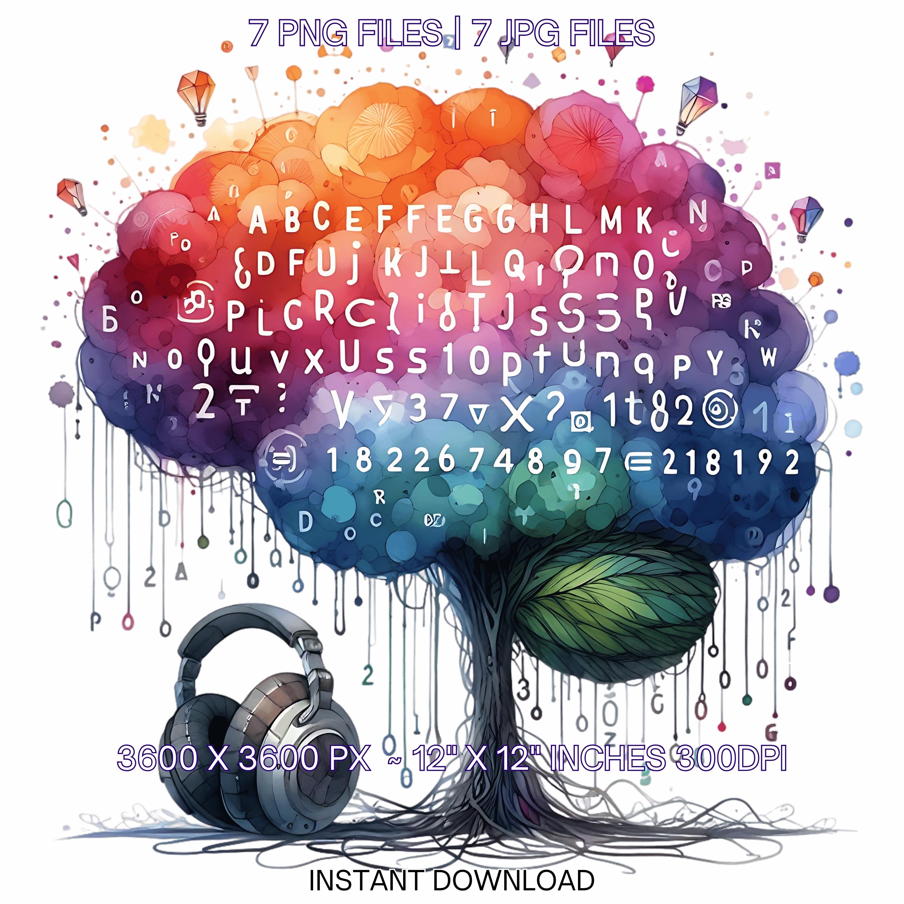 Engineer Brain Thinking Clipart | Mind Clip Art | Programming Head Brain & Headphones Clipart Transparent Digital 7 PNG-JPG Commercial Use is an eye-catching, high-resolution digital asset designed for creators, crafters, teachers, and small business owners looking to elevate their visuals.