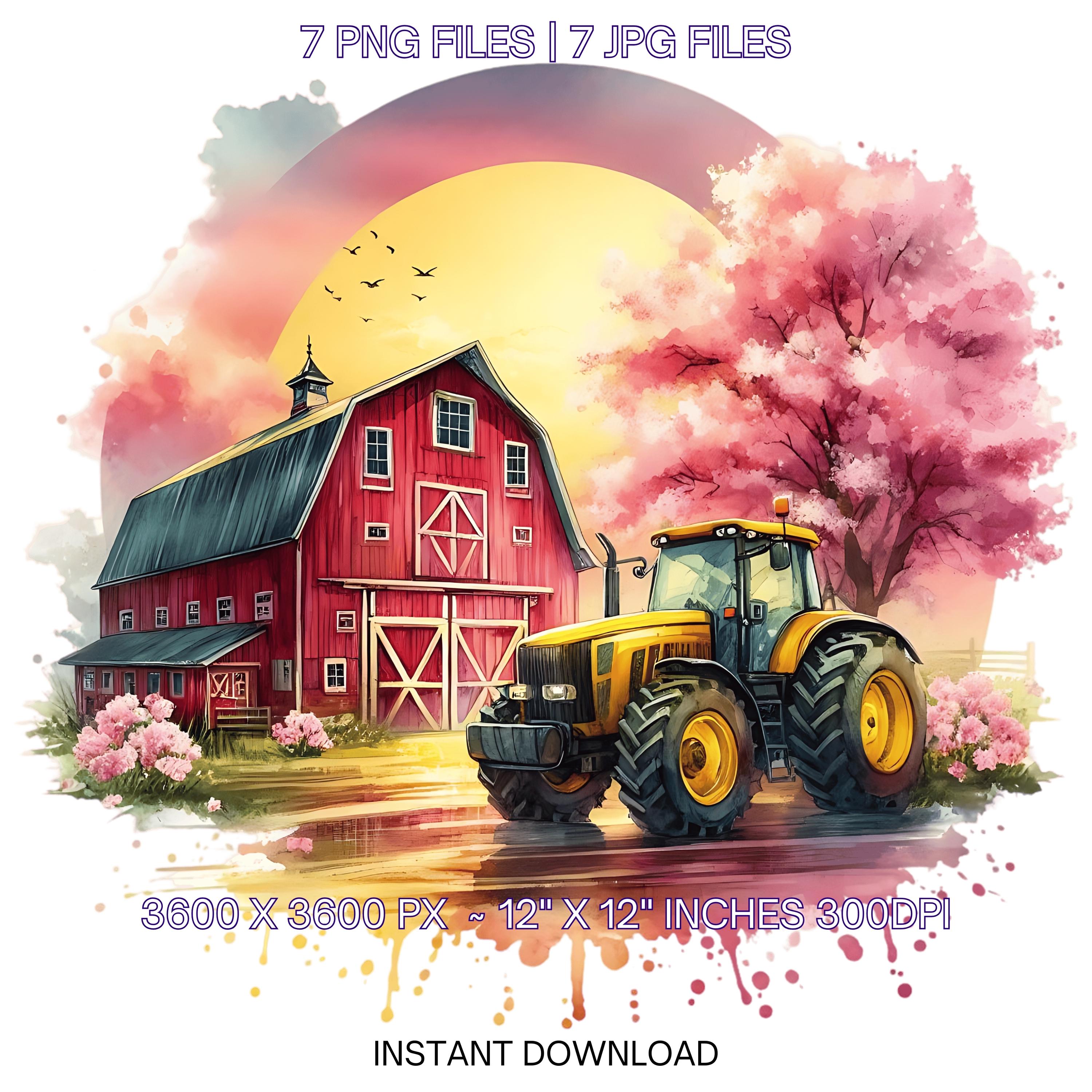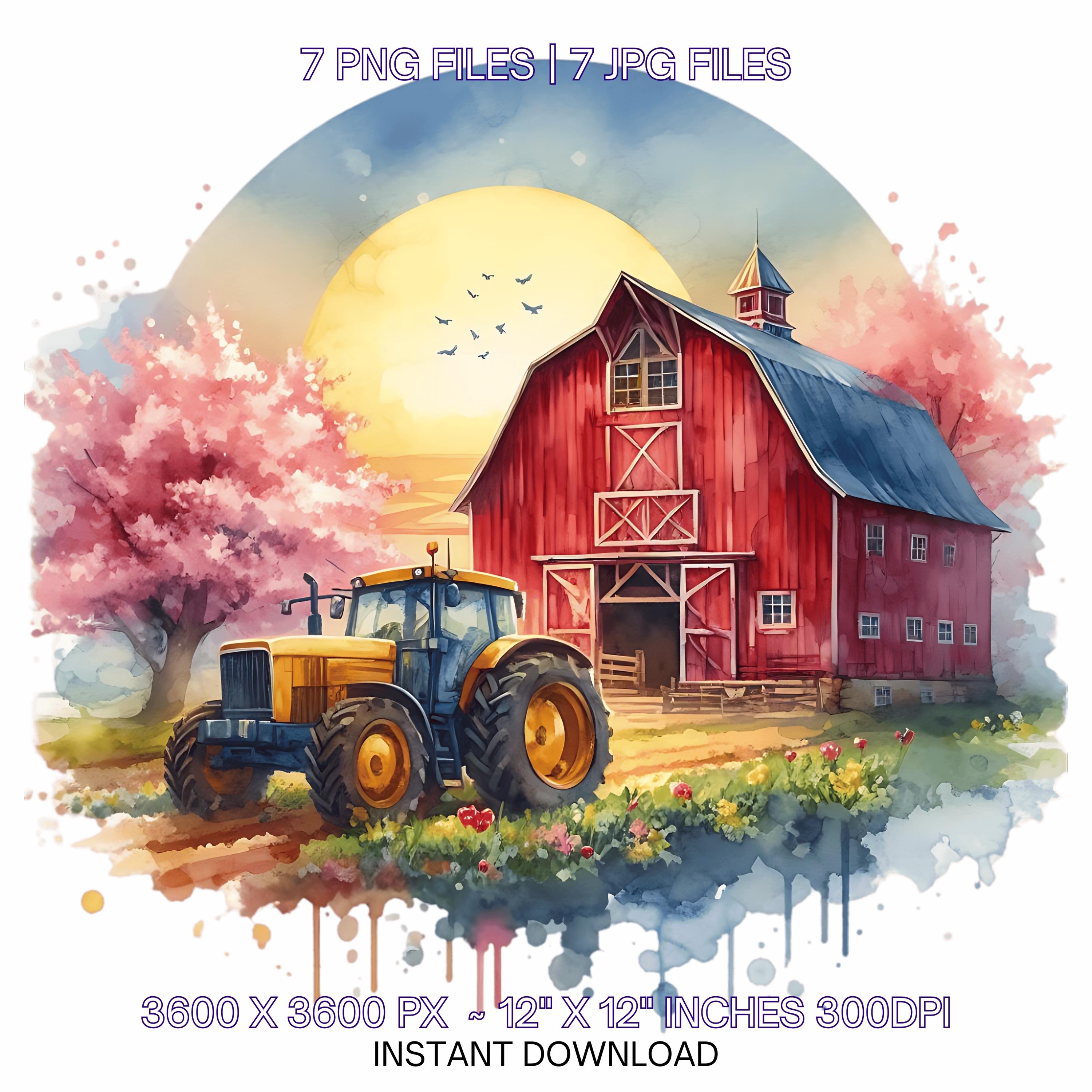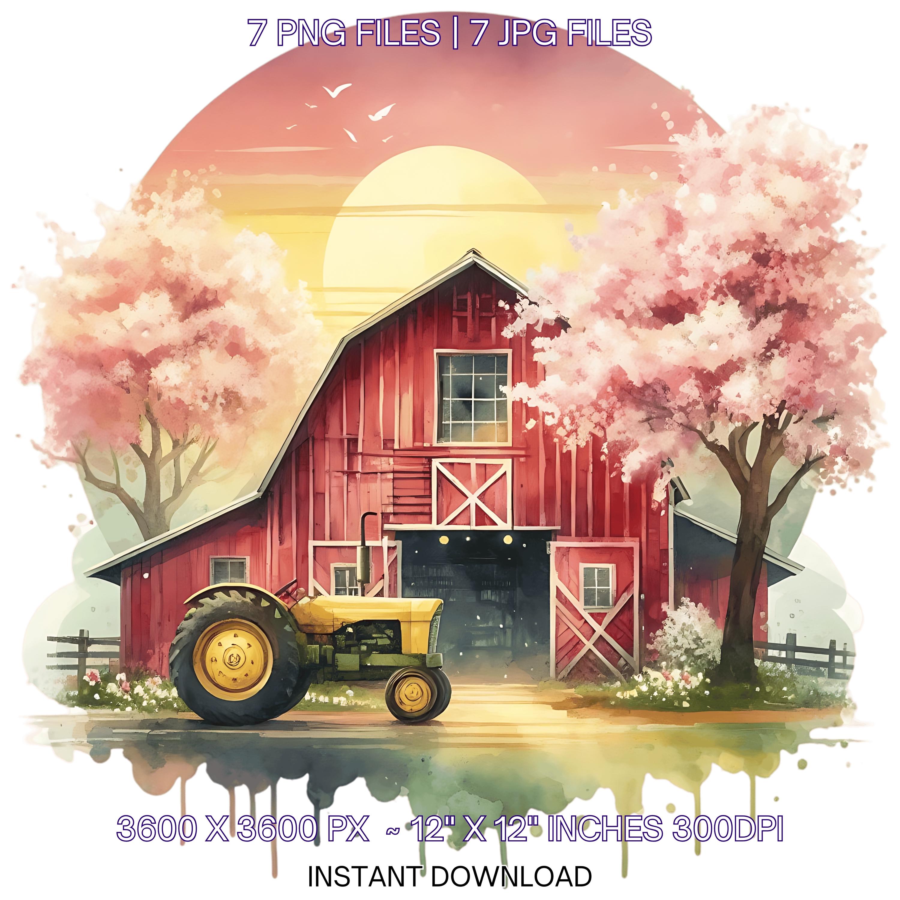 Farm Clipart with Barn, Tractor & Flowering Trees | Watercolor Spring Farmyard Clip Art PNG | 7 PNG-JPG Sublimation Designs Commercial Use is an eye-catching, high-resolution digital asset designed for creators, crafters, teachers, and small business owners looking to elevate their visuals.