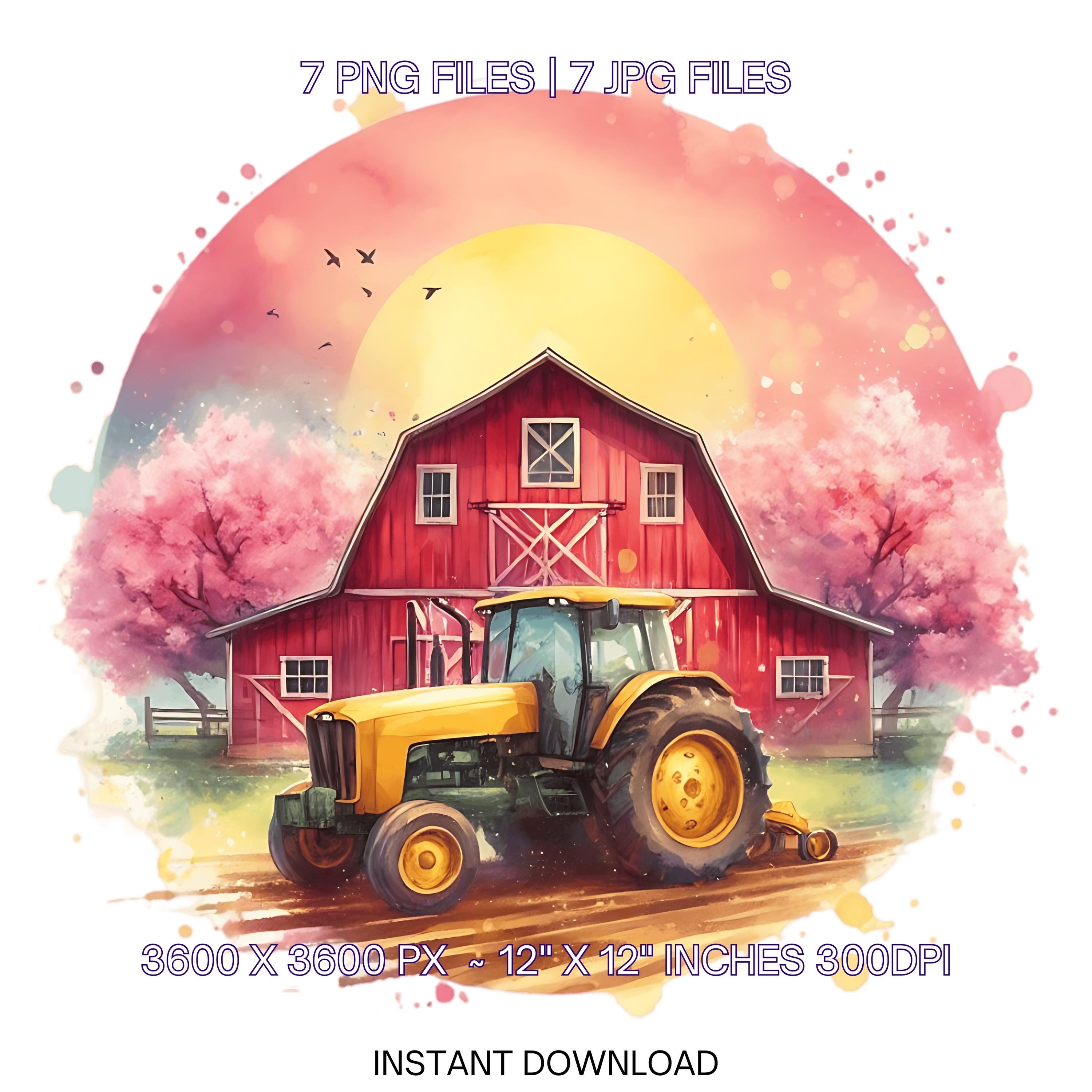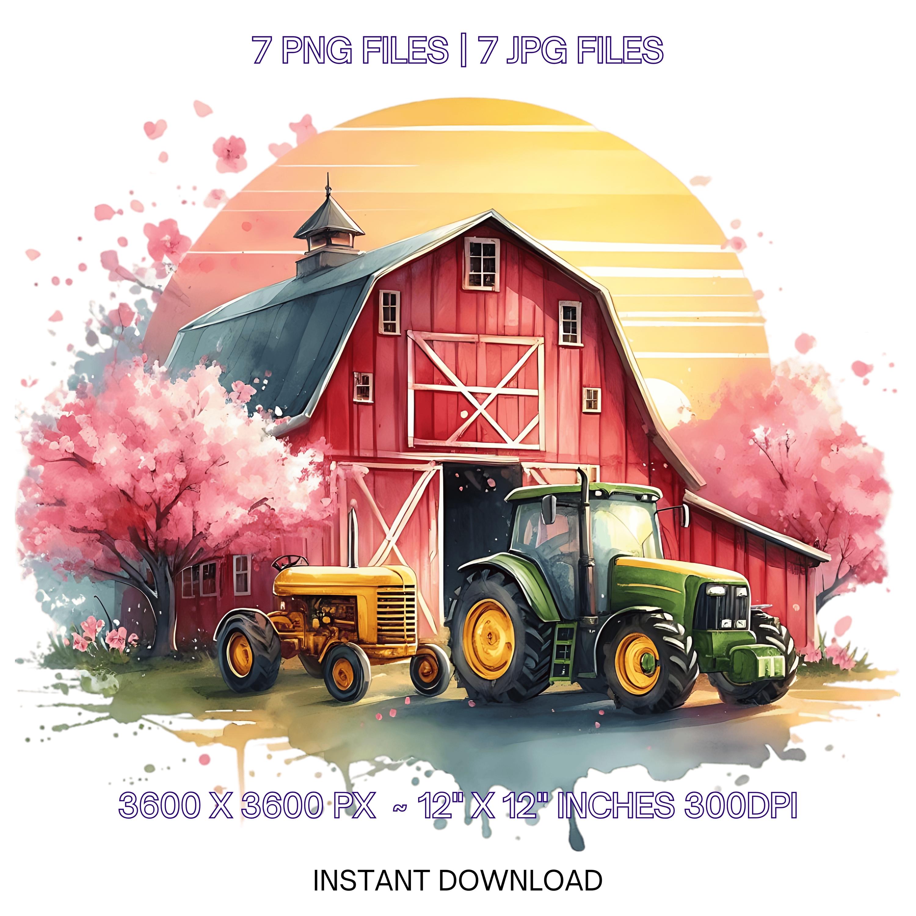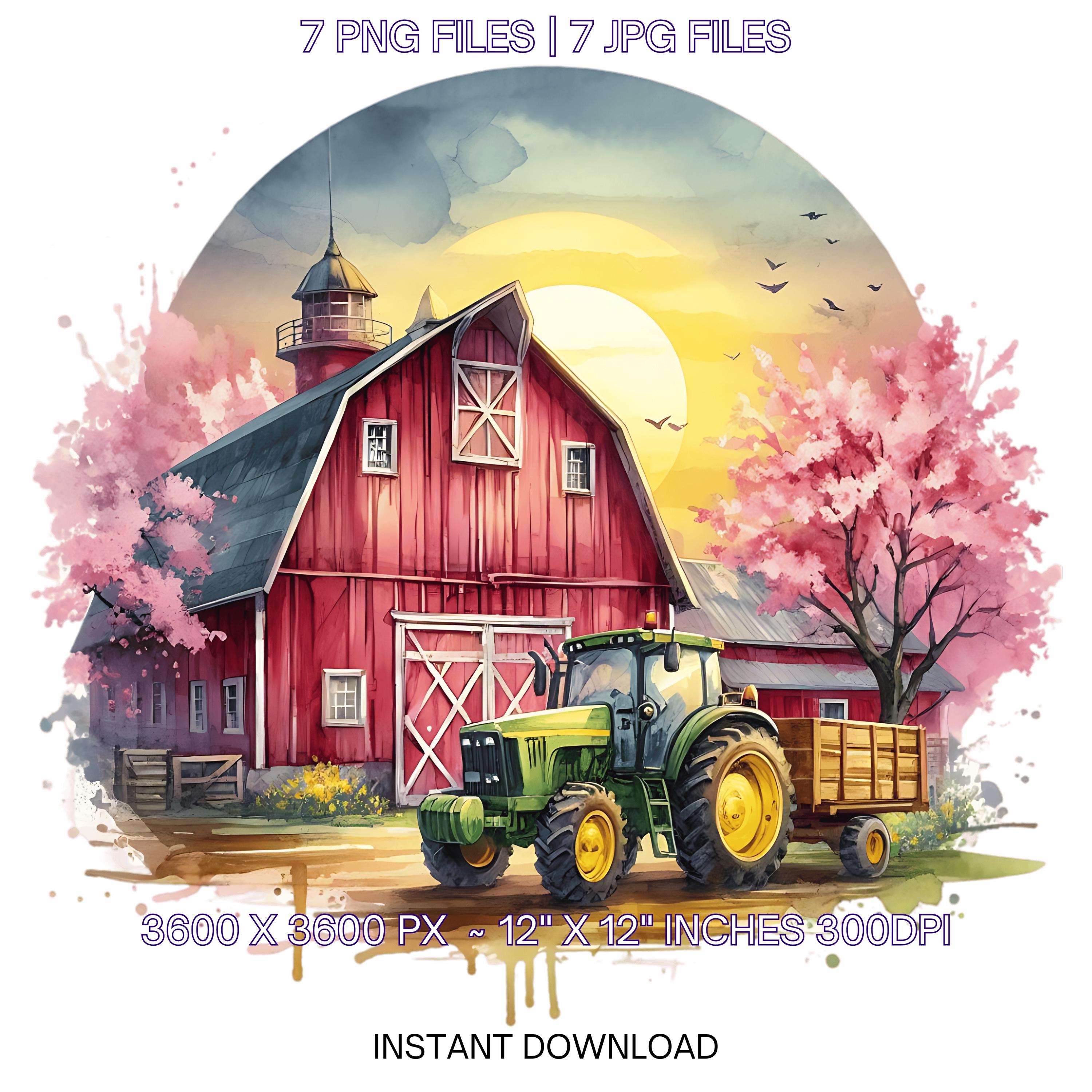 Farm Clipart with Barn, Tractor & Flowering Trees | Watercolor Spring Farmyard Clip Art PNG | 7 PNG-JPG Sublimation Designs Commercial Use is an eye-catching, high-resolution digital asset designed for creators, crafters, teachers, and small business owners looking to elevate their visuals.