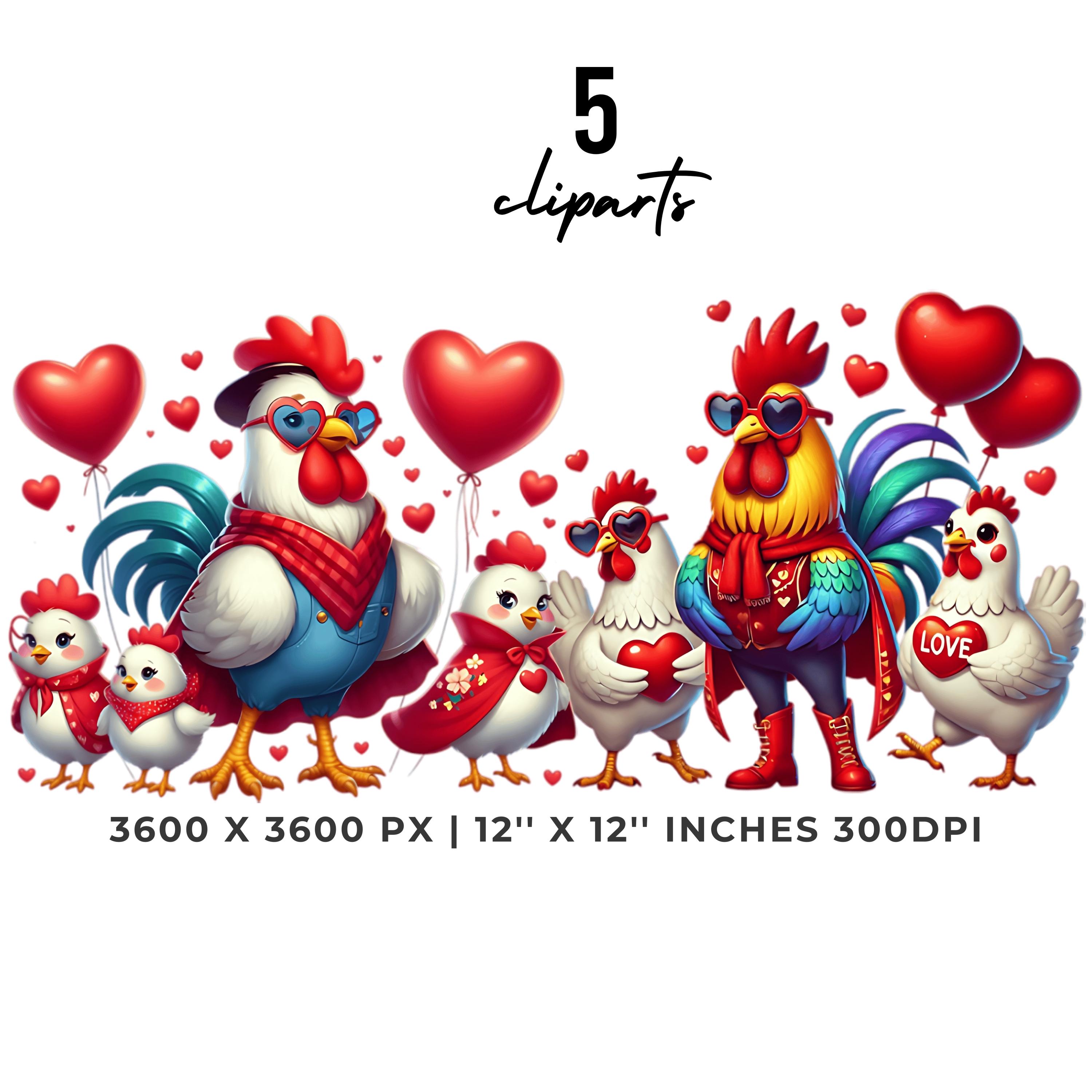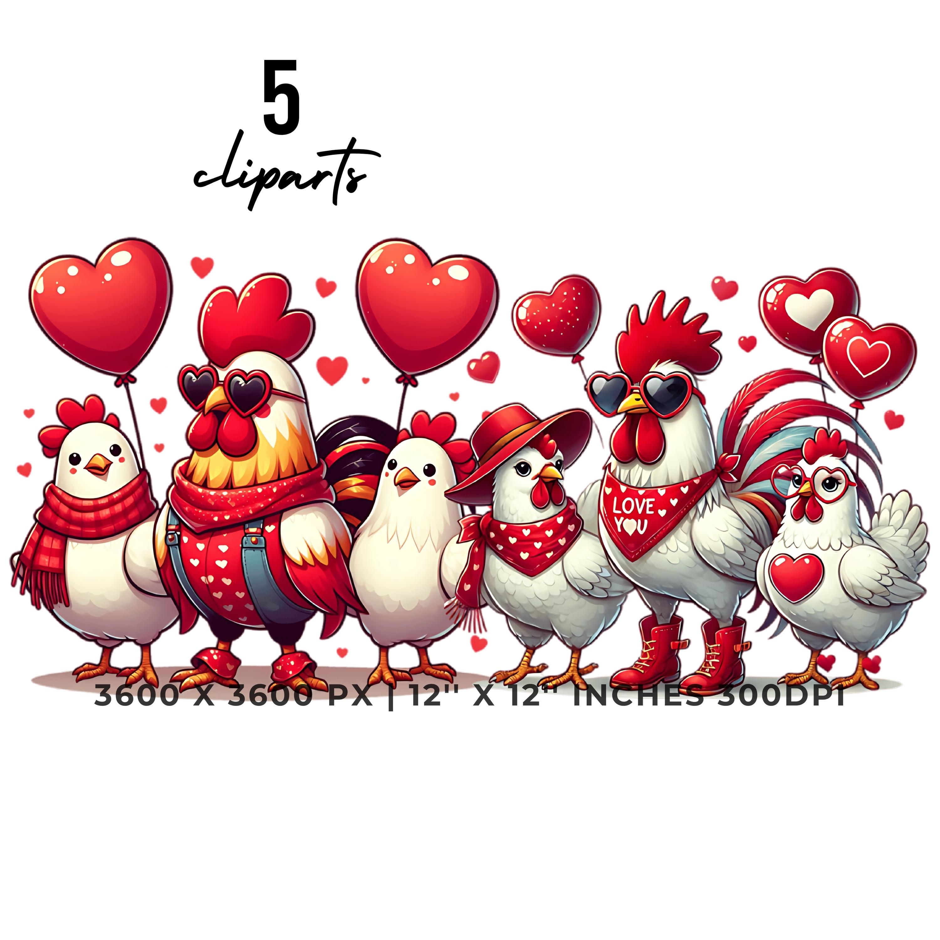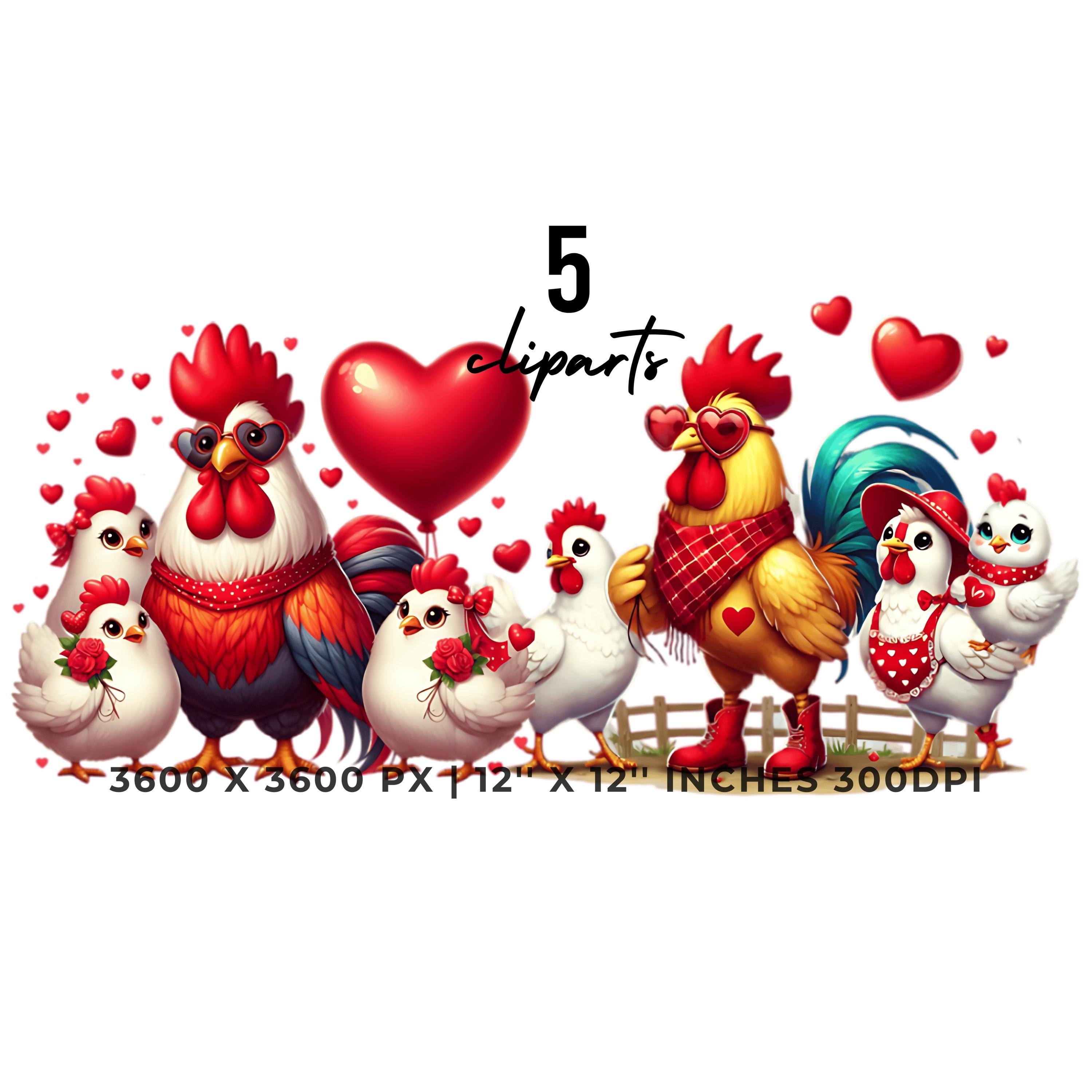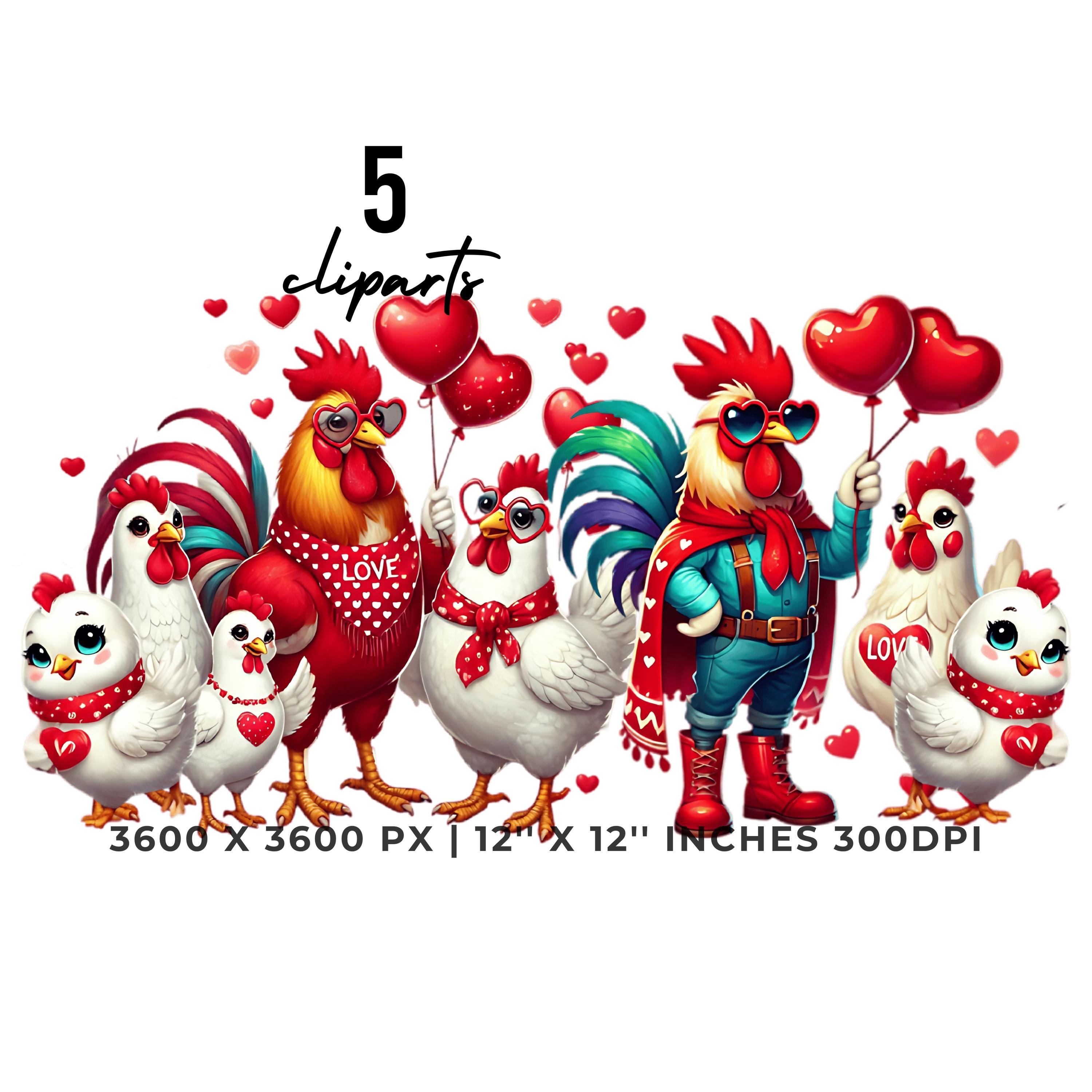 Valentine’s Day Farm Party Clipart | 5 PNG & 5 JPG | Roosters, Hens & Chickens | Funny Farm Life Clipart for Boys & Girls | Sublimation, Scrapbooking, Card Making | Commercial Use