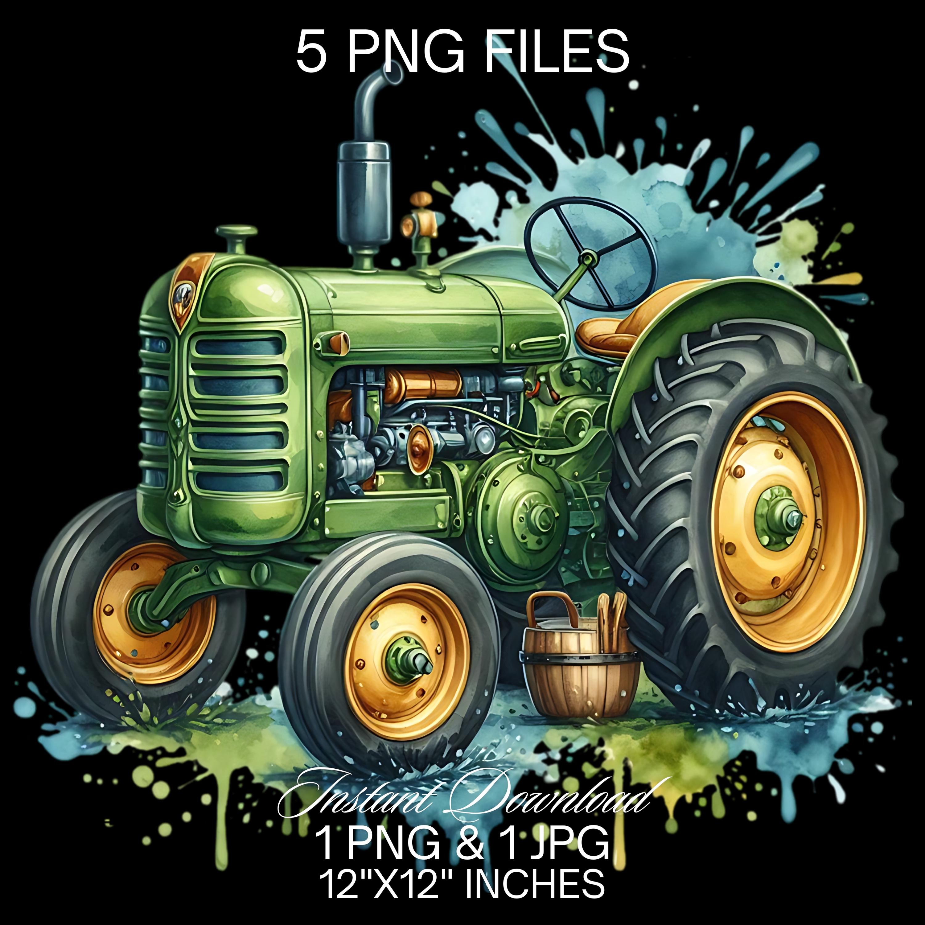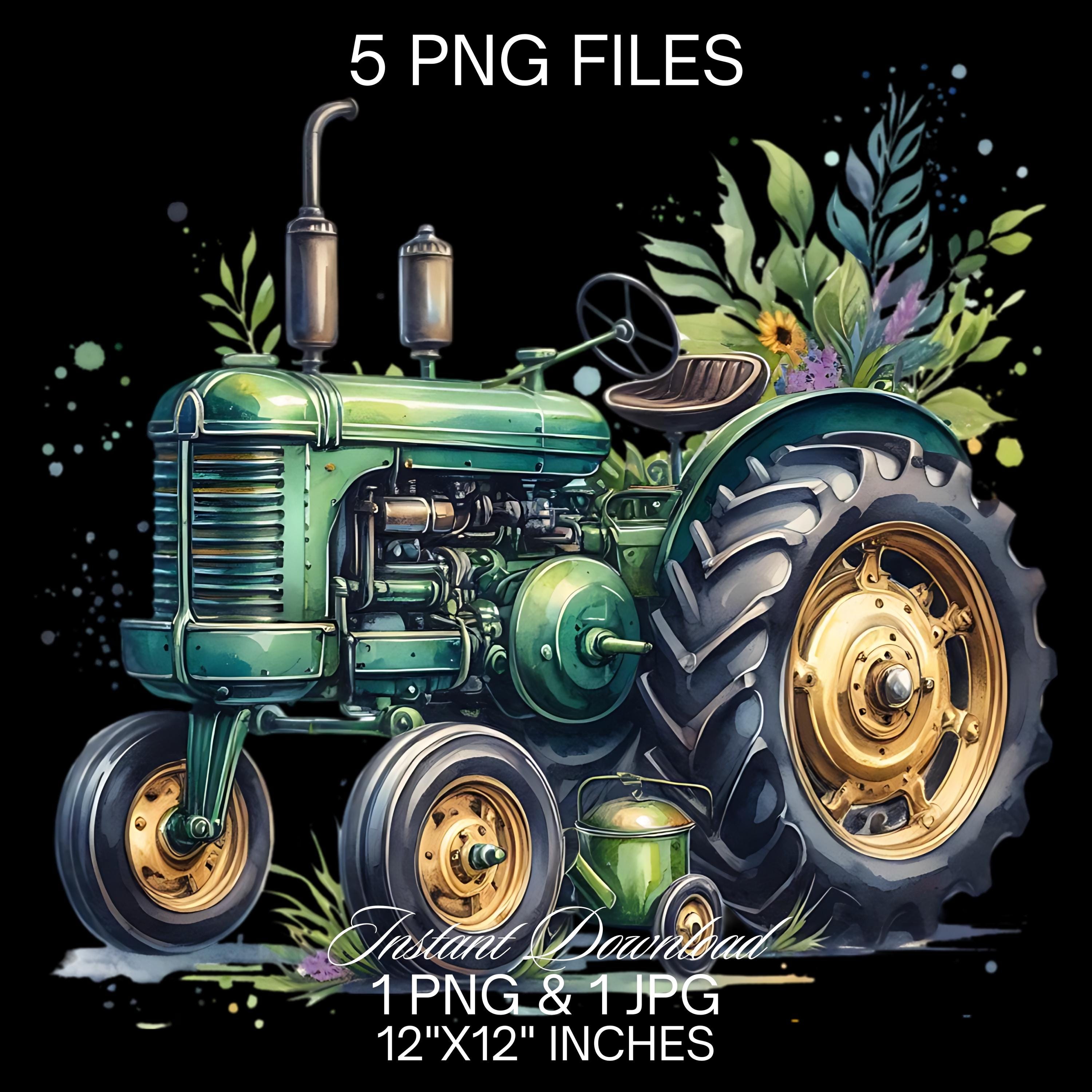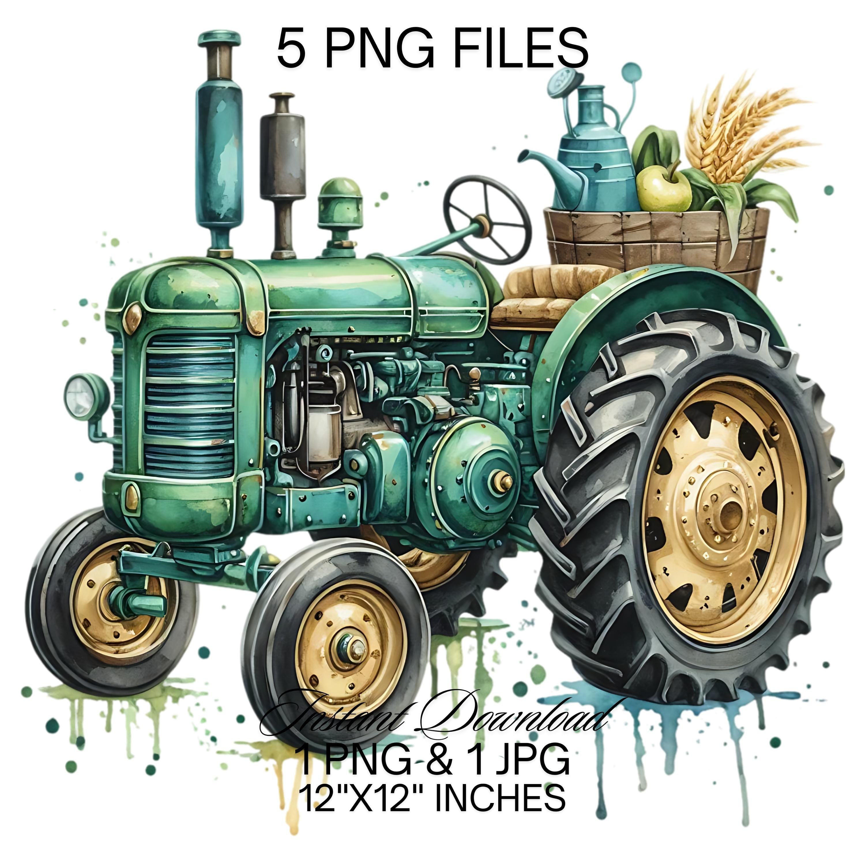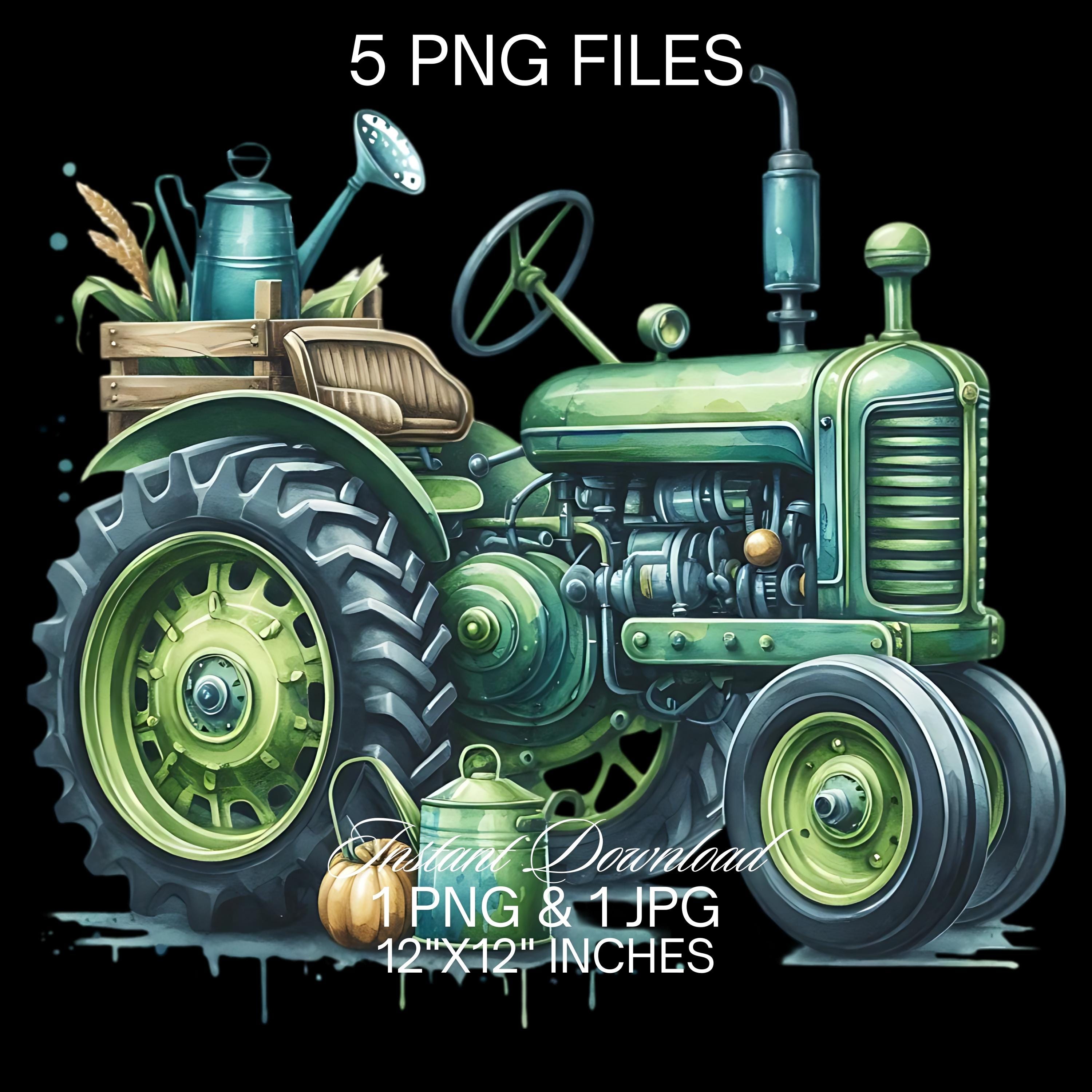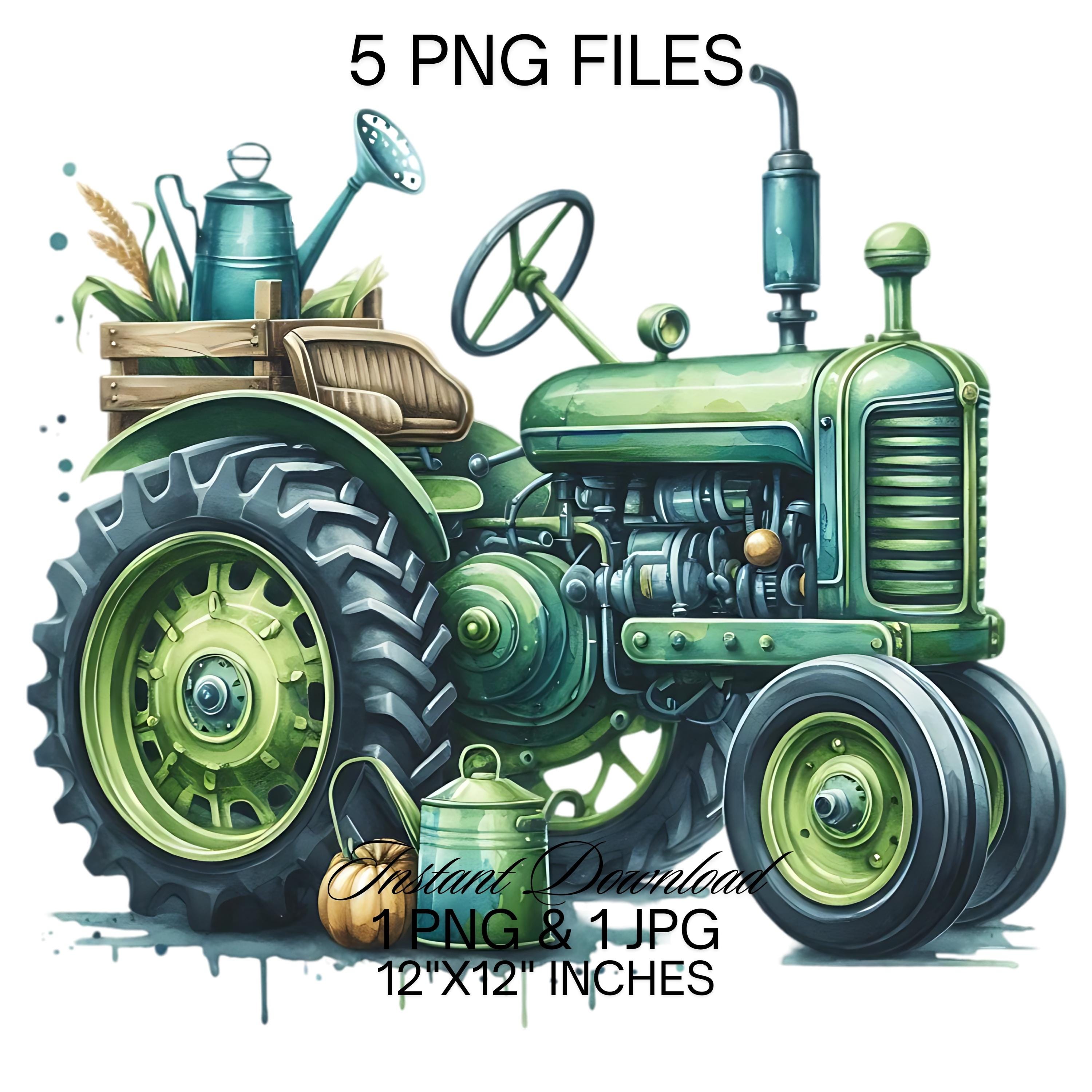 Farm Tractor Watercolor PNG | 5 Green Tractor Clipart Boy Nursery Décor Farm Tractor Farming Vehicles Watercolor Illustration Commercial Use is an eye-catching, high-resolution digital asset designed for creators, crafters, teachers, and small business owners looking to elevate their visuals.