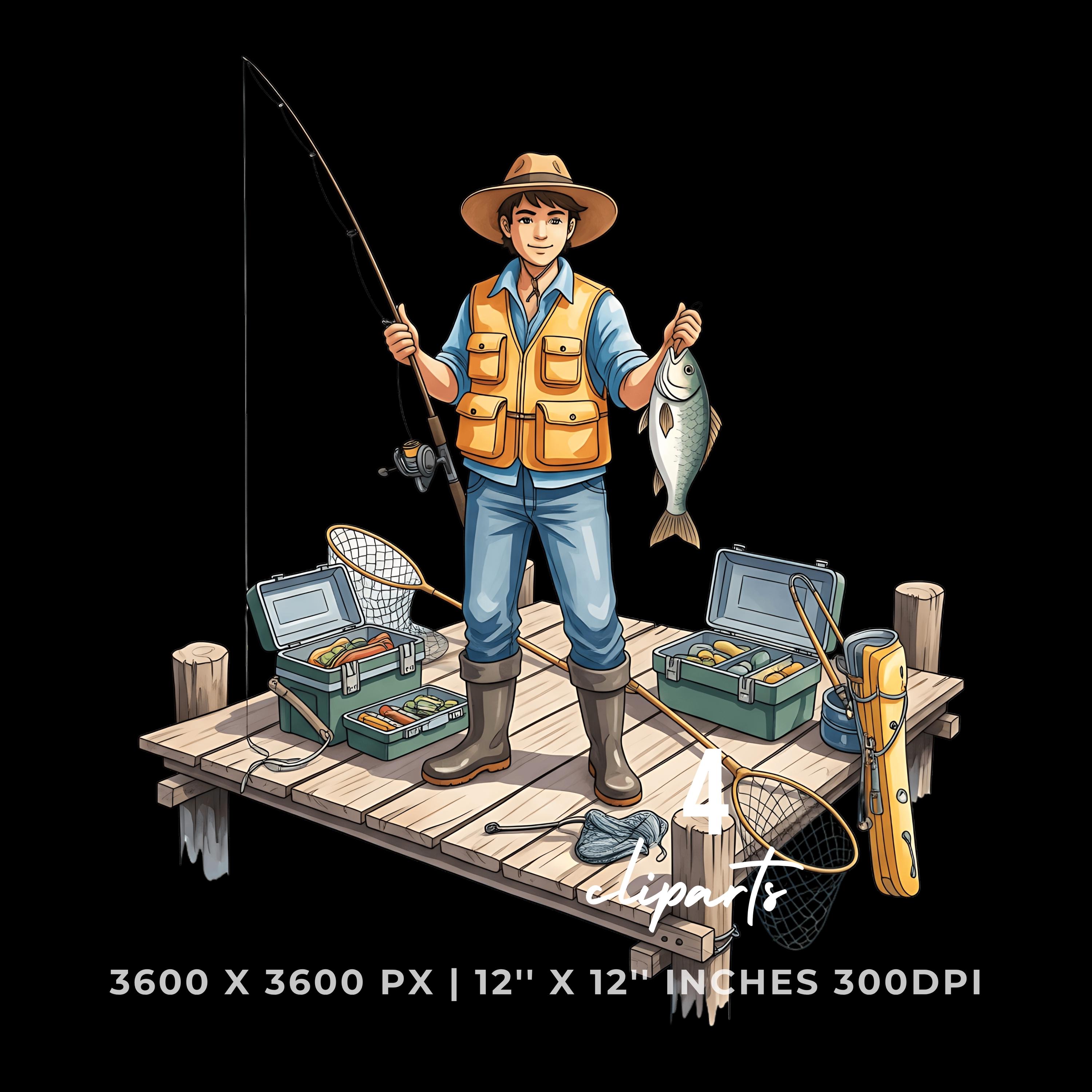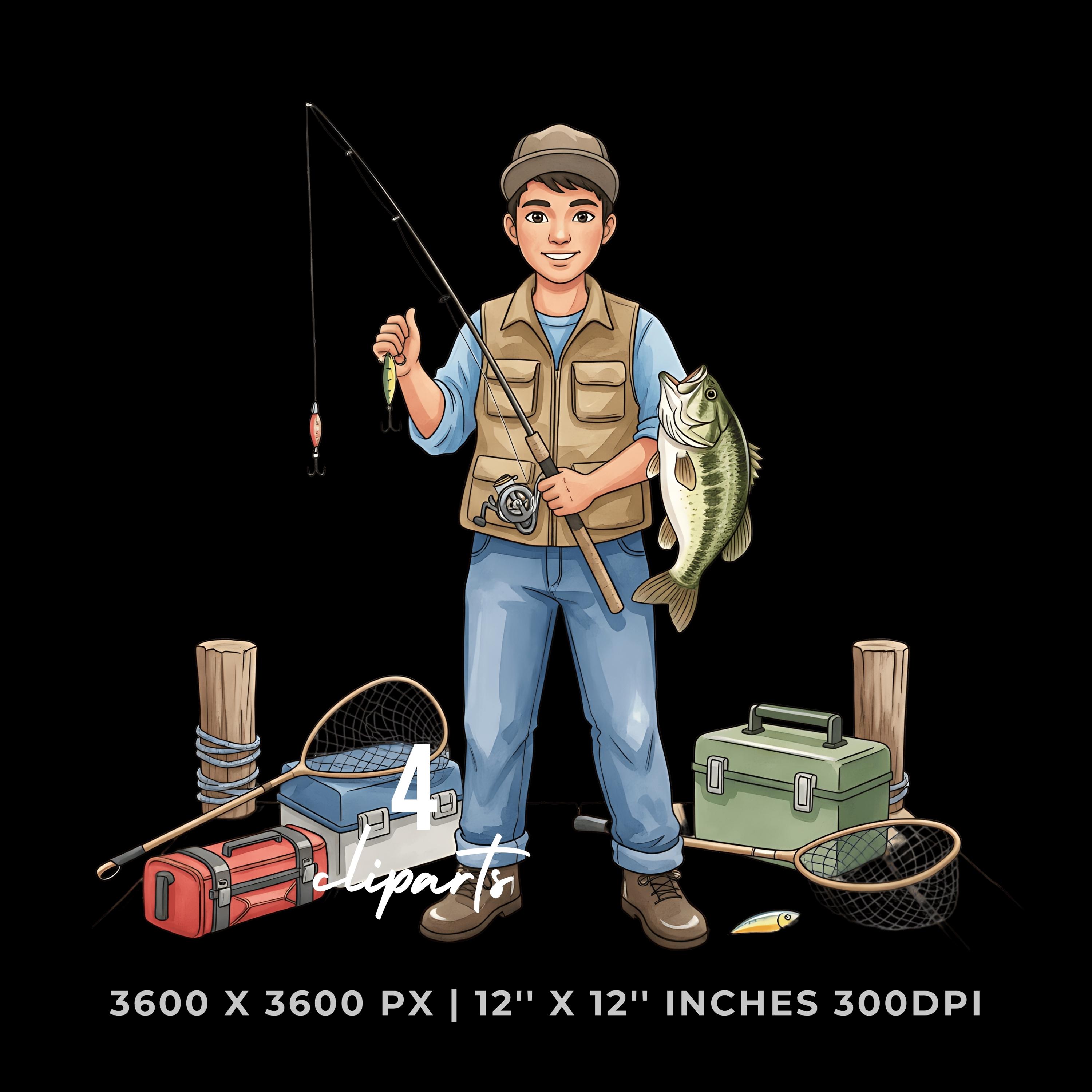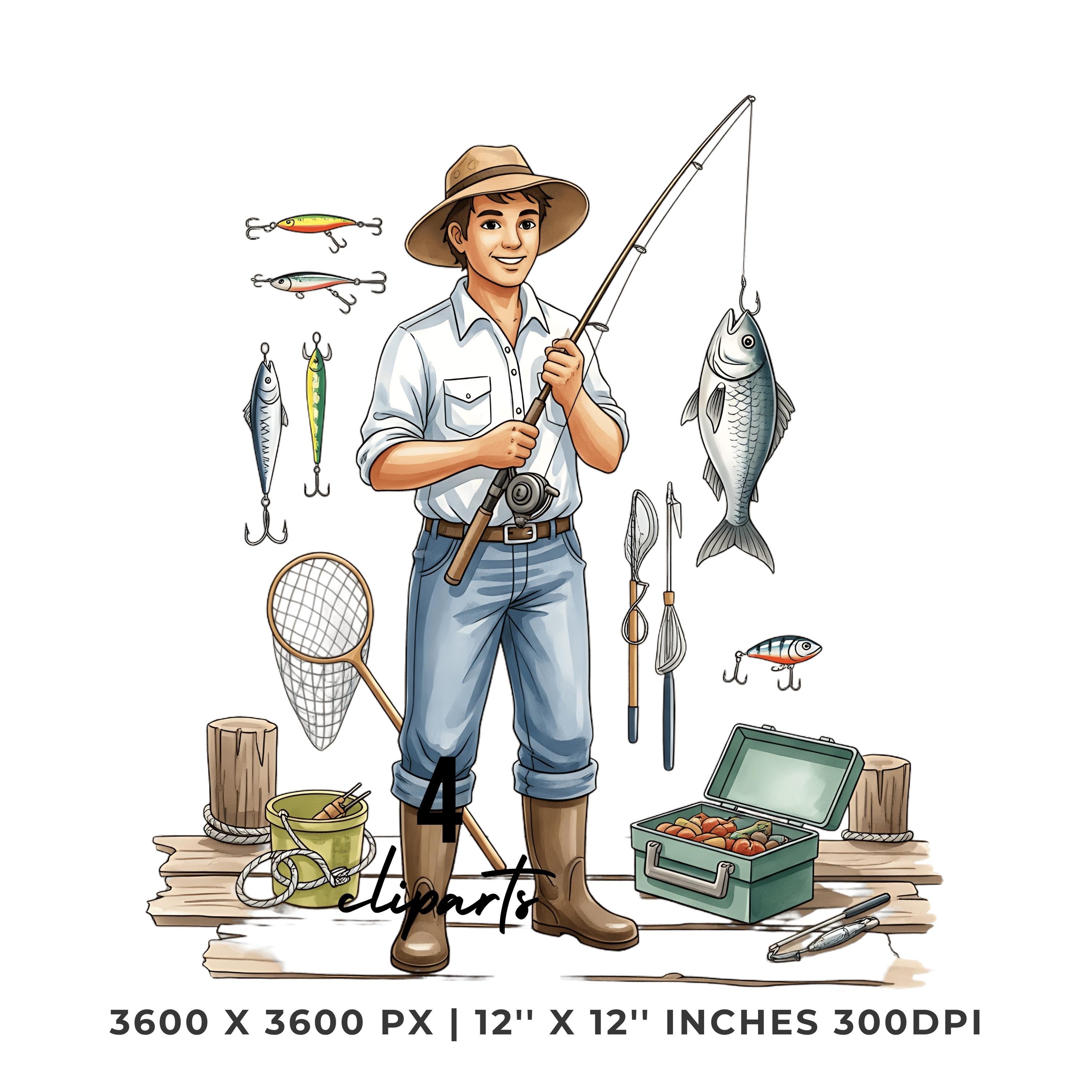 Fisherman PNG Clipart | Watercolor Young Fishing Guide holding a Fishing Rod | Summer Activity 4 PNG – 4 JPG Graphic Commercial Use is an eye-catching, high-resolution digital asset designed for creators, crafters, teachers, and small business owners looking to elevate their visuals.