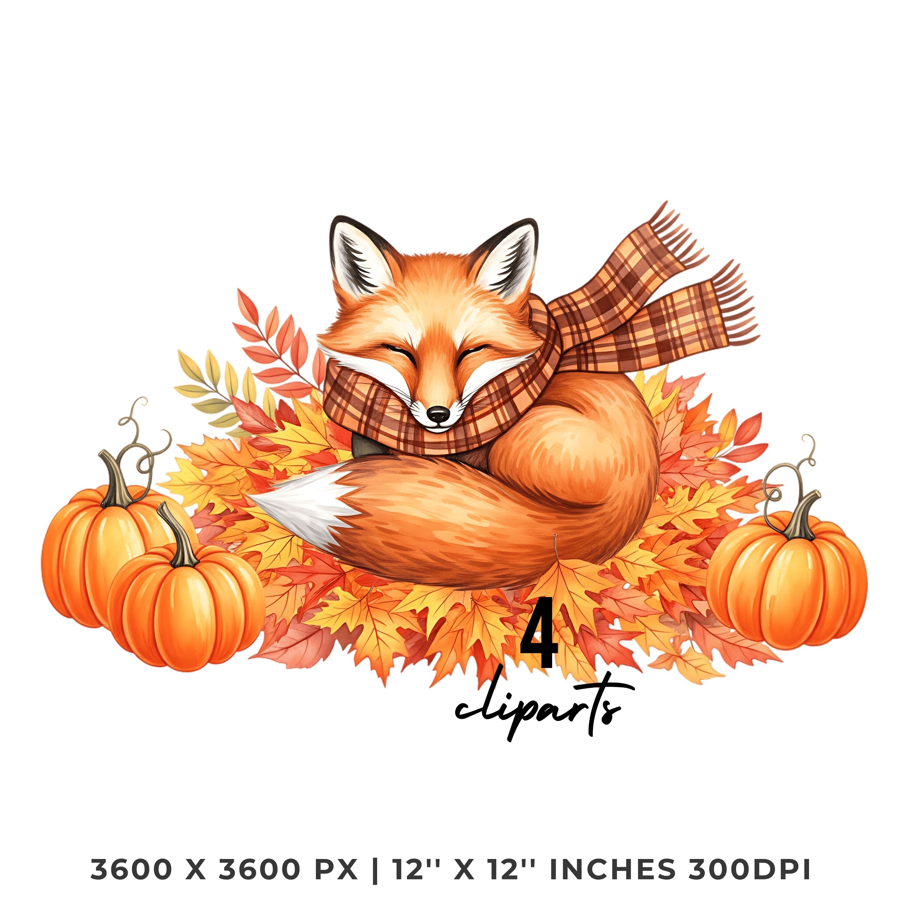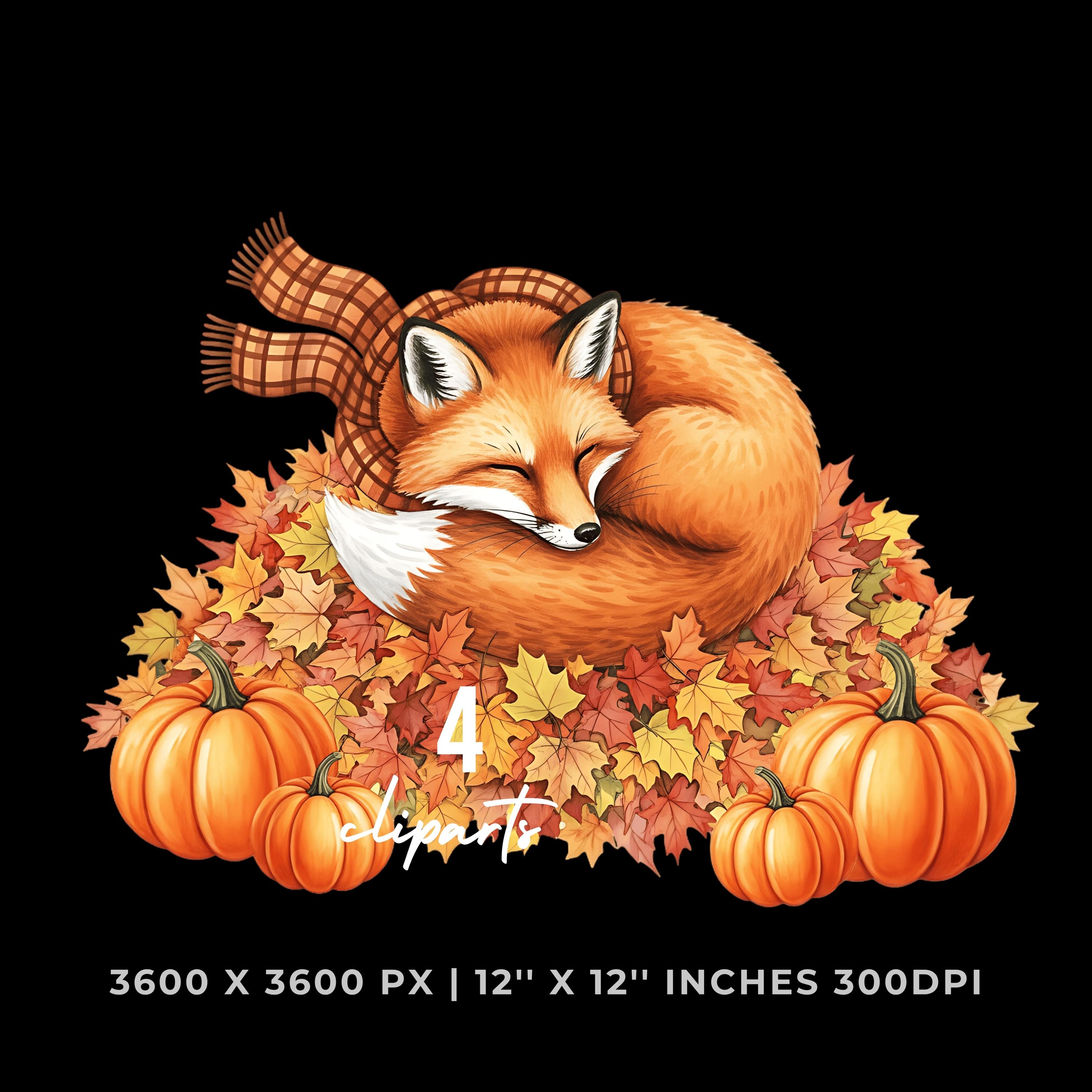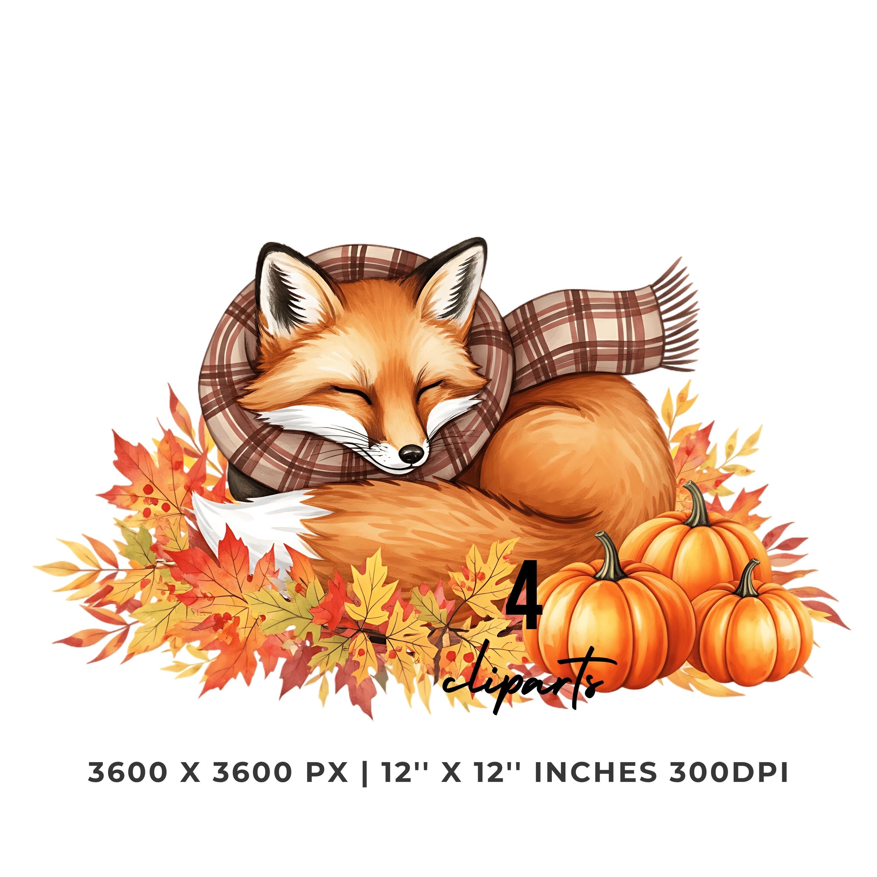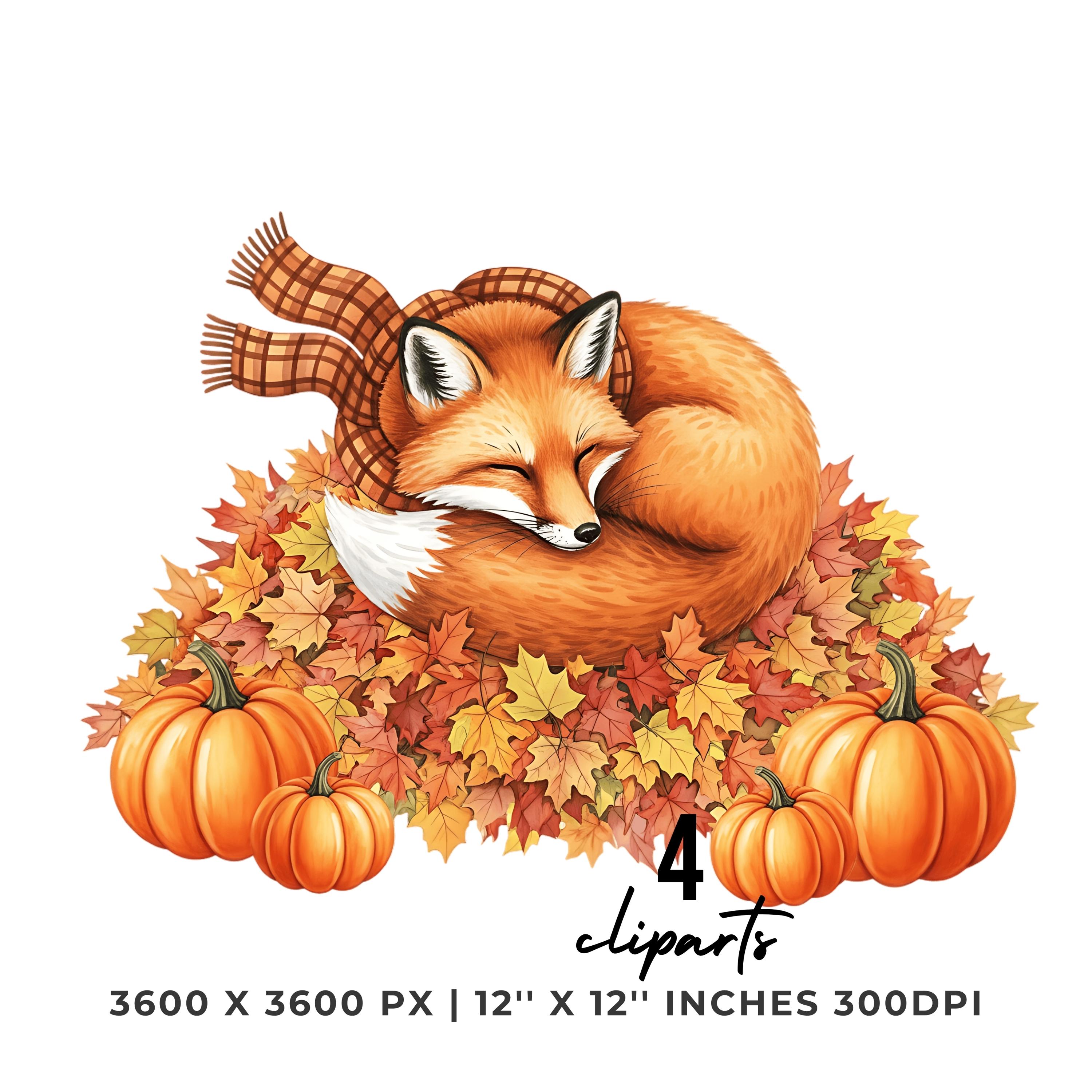 Fox Sleeping on Leaves Autumn Clipart | Fall Fox Clip Art | Cozy Pumpkin Woodland Animal | 4 PNG & 4 JPG Instant Download Commercial Use – Instant Digital Download - TumblersGalaxy