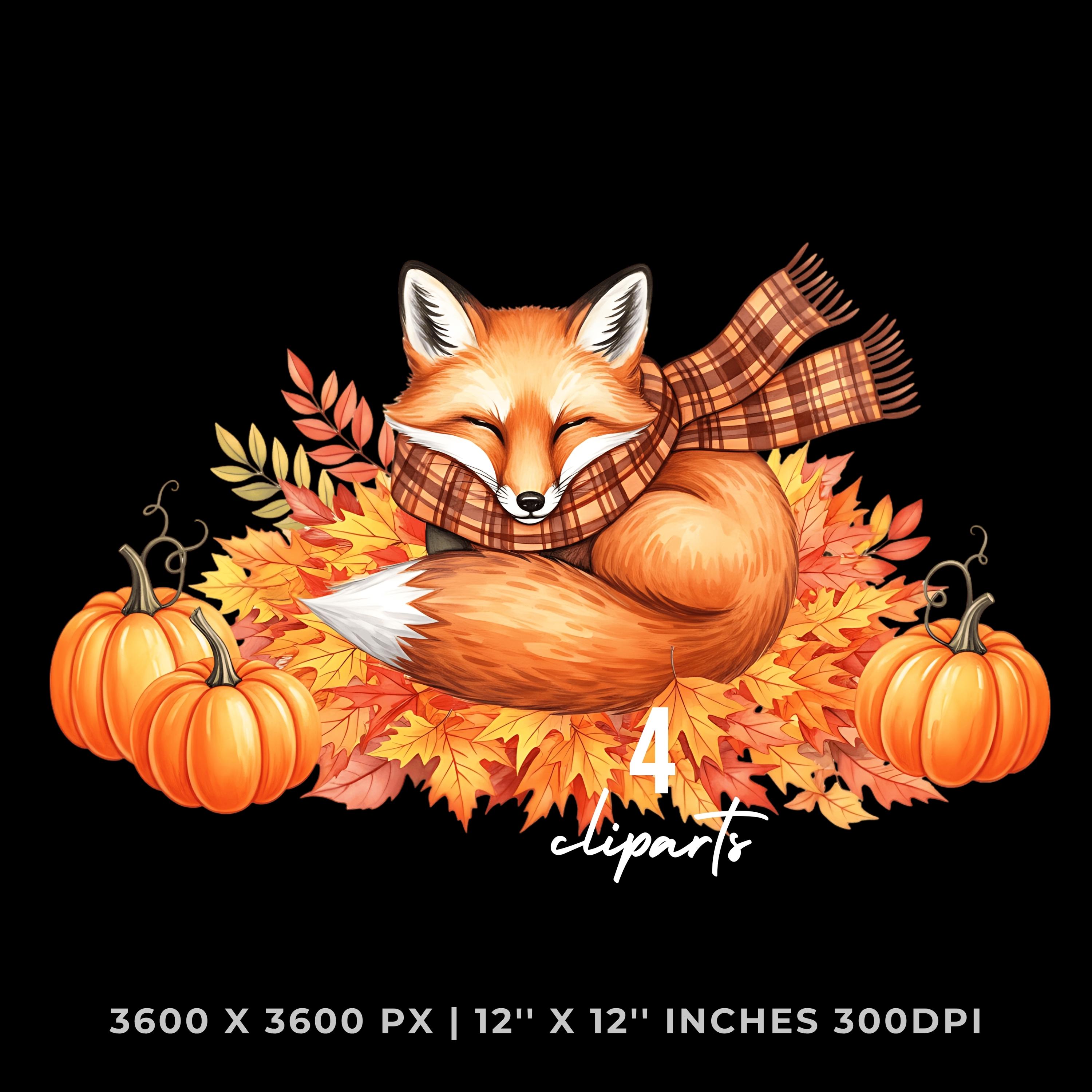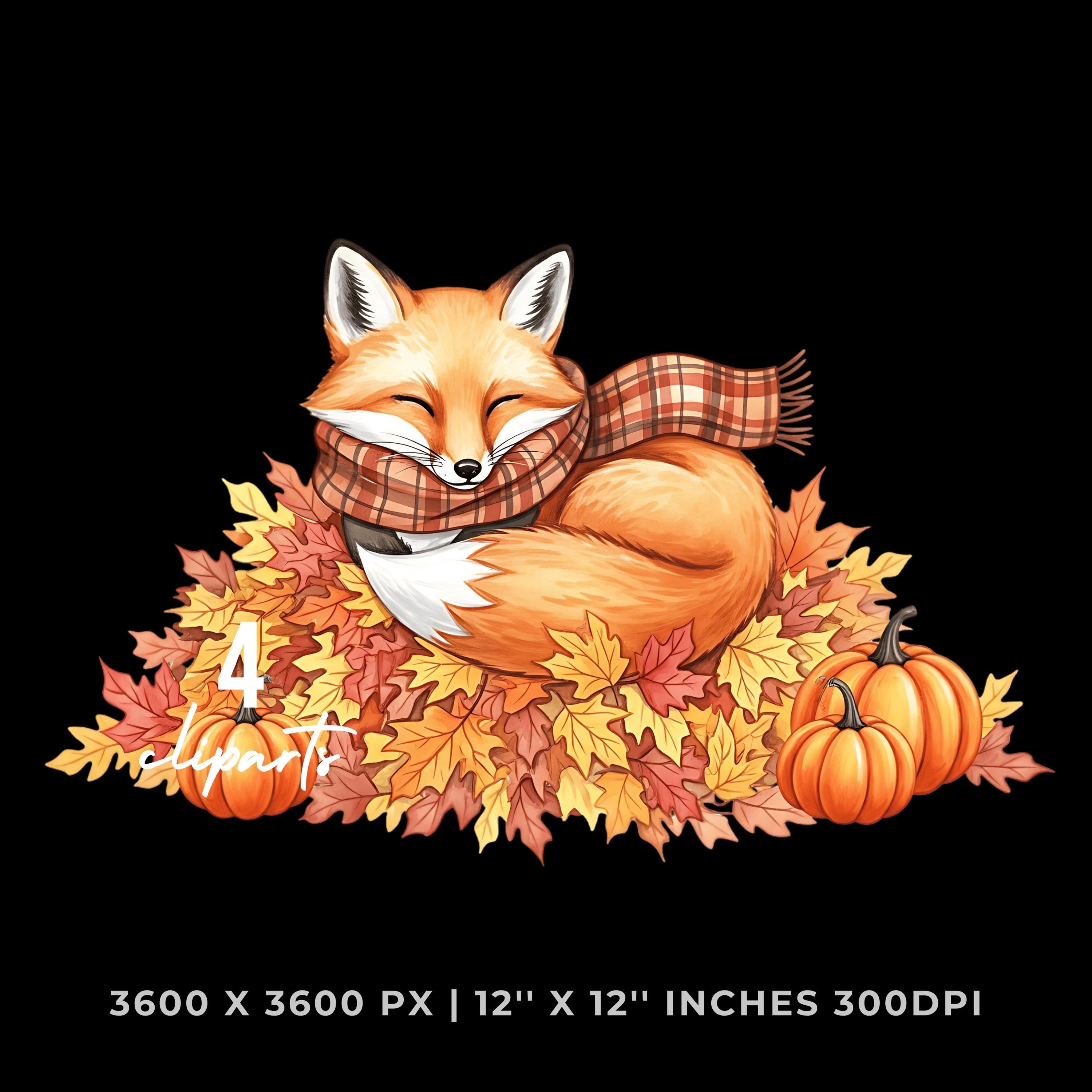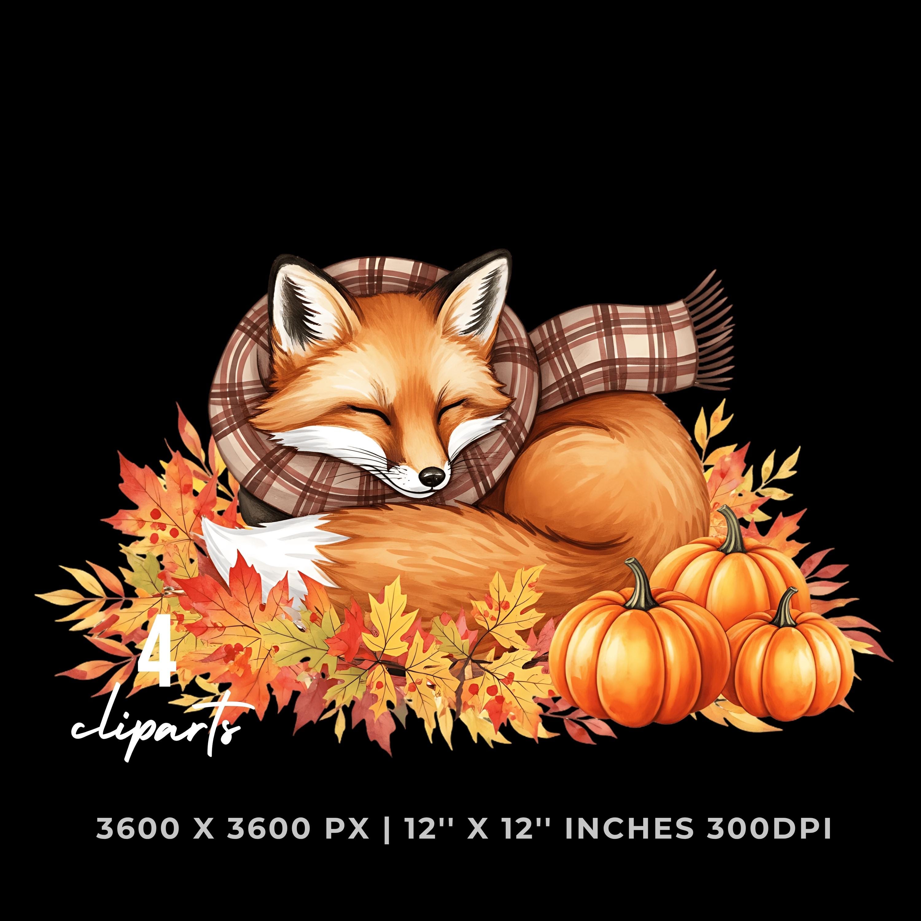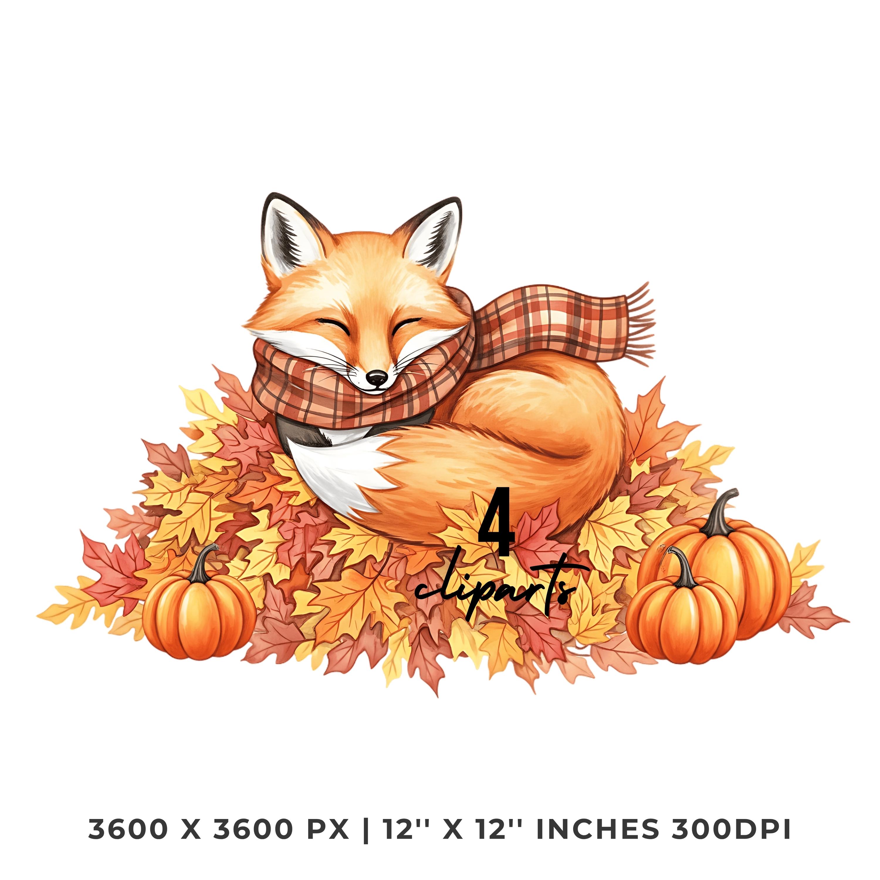 Fox Sleeping on Leaves Autumn Clipart | Fall Fox Clip Art | Cozy Pumpkin Woodland Animal | 4 PNG & 4 JPG Instant Download Commercial Use – Instant Digital Download - TumblersGalaxy
