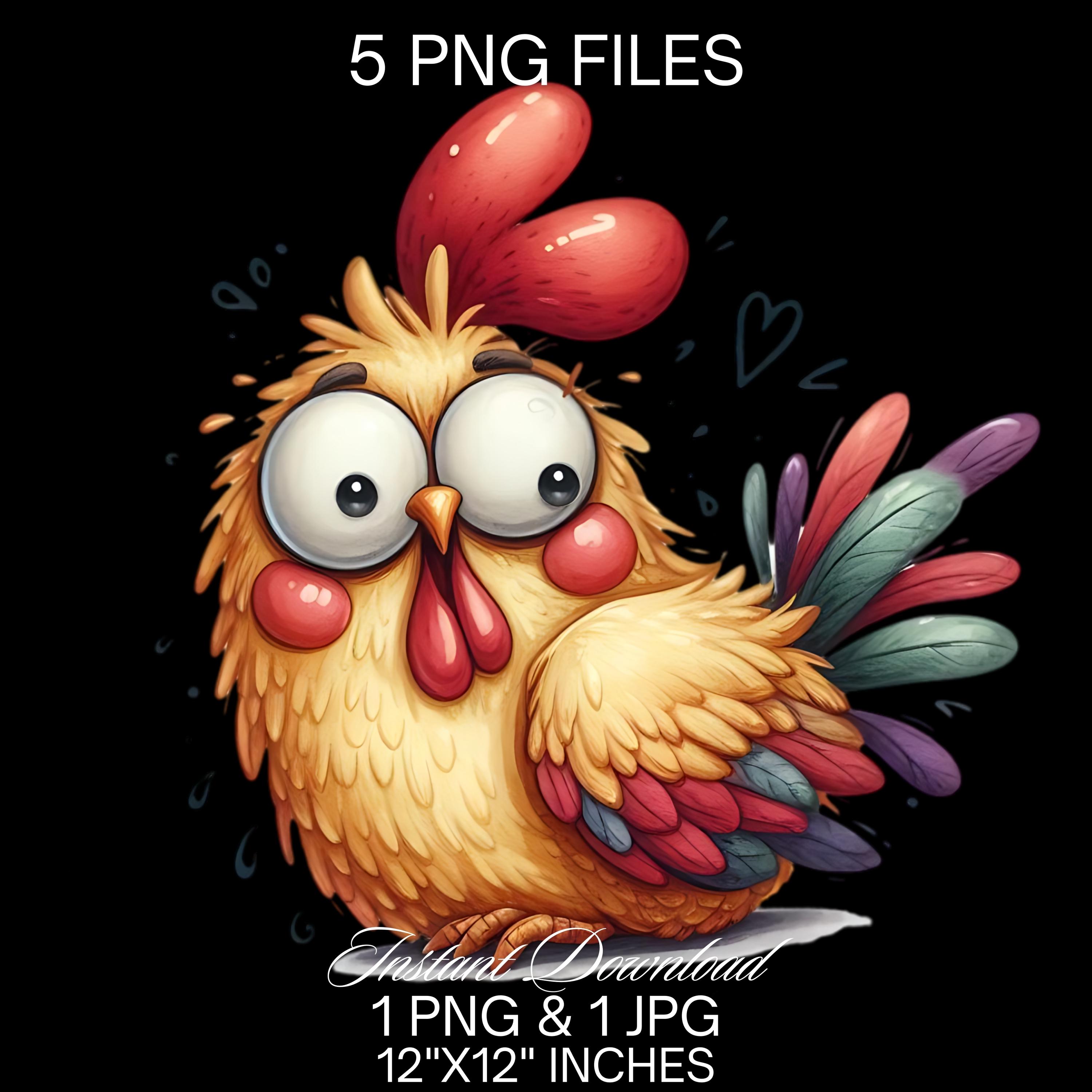 Funny Chicken PNG Clipart | 5 Cute Chicken PNG Sublimation | Crazy Chicken Digital Download | Farm Life Chicken Chick PNG Commercial Use is an eye-catching, high-resolution digital asset designed for creators, crafters, teachers, and small business owners looking to elevate their visuals.