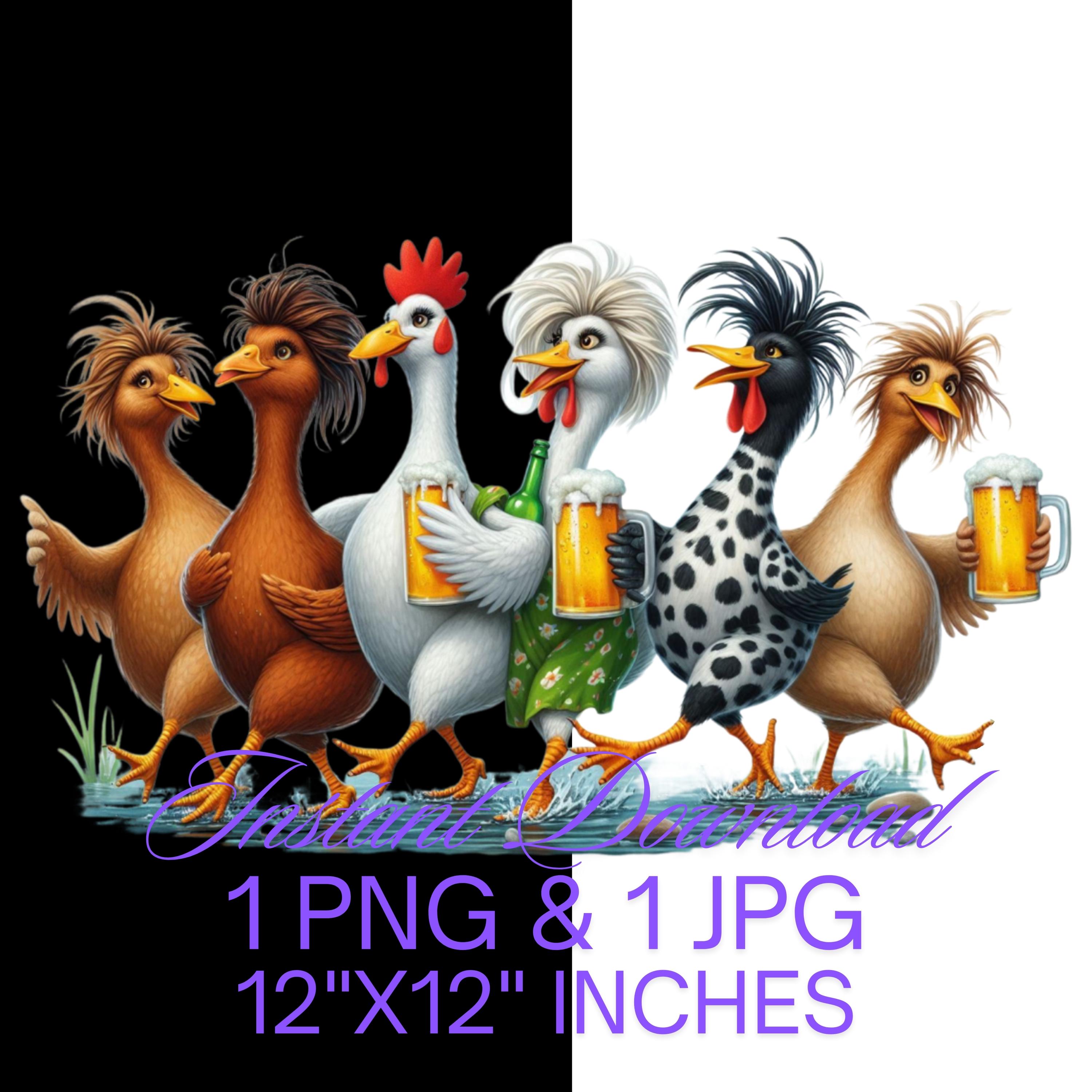 Funny Hens PNG | Cute Hens Dink Beer PNG Sublimation | Six Crazy Hens Party | Commercial Use | Chicken Chicks Farm Life | Digital Download