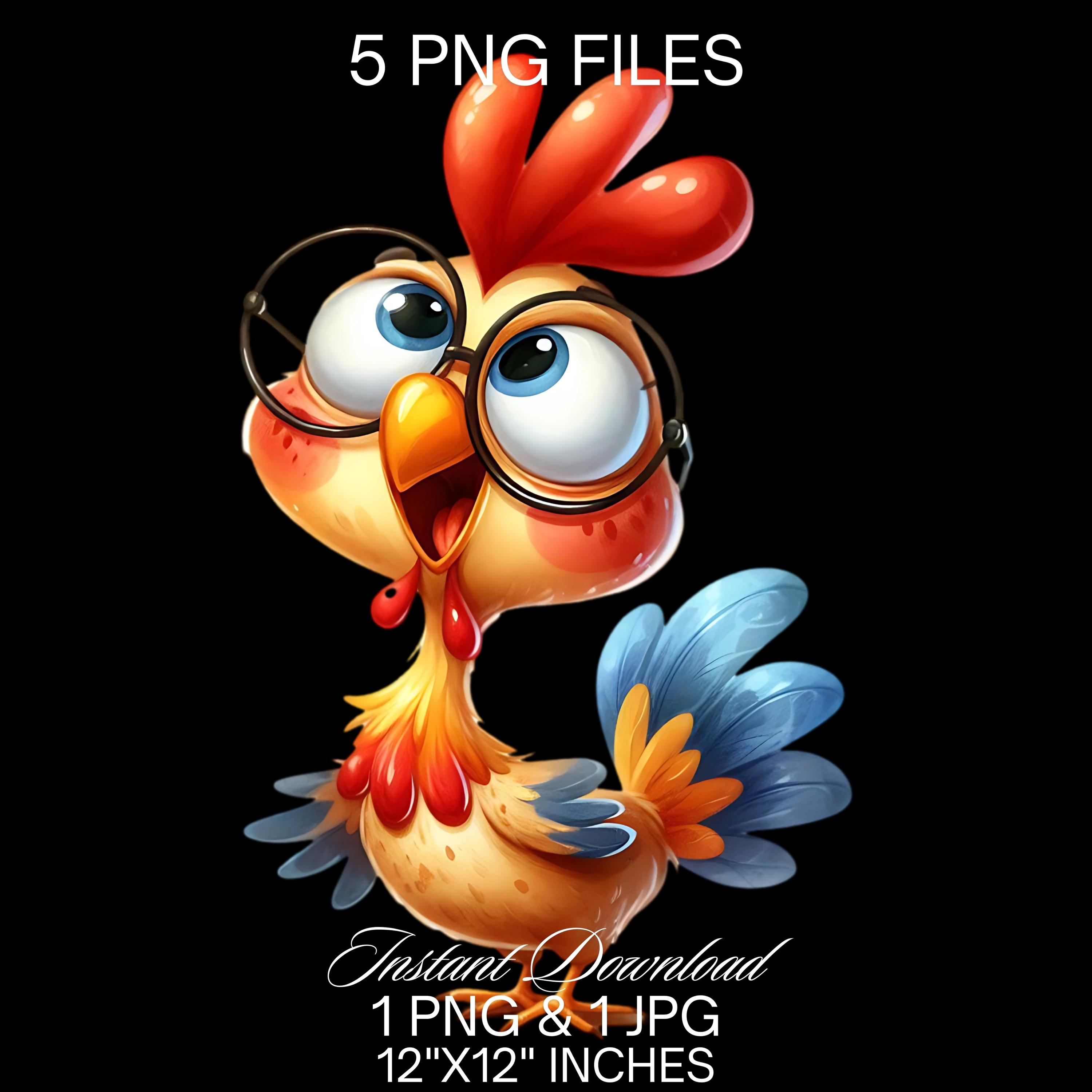 Funny Rooster PNG Clipart | 5 Cute Chanticleer Cock PNG Sublimation | Crazy Rooster Digital Download | Farm Life Cockerel PNG Commercial Use is an eye-catching, high-resolution digital asset designed for creators, crafters, teachers, and small business owners looking to elevate their visuals.