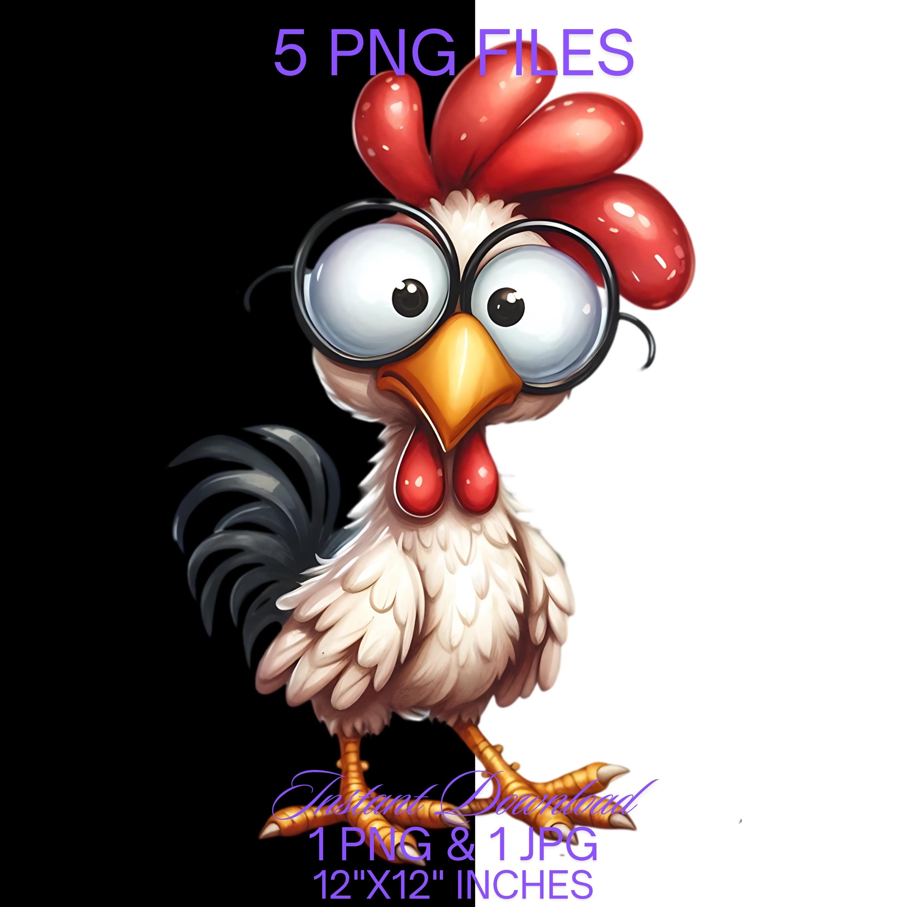 Funny Rooster PNG Clipart | 5 Cute Chanticleer Cock PNG Sublimation | Crazy Rooster Digital Download | Farm Life Cockerel PNG Commercial Use