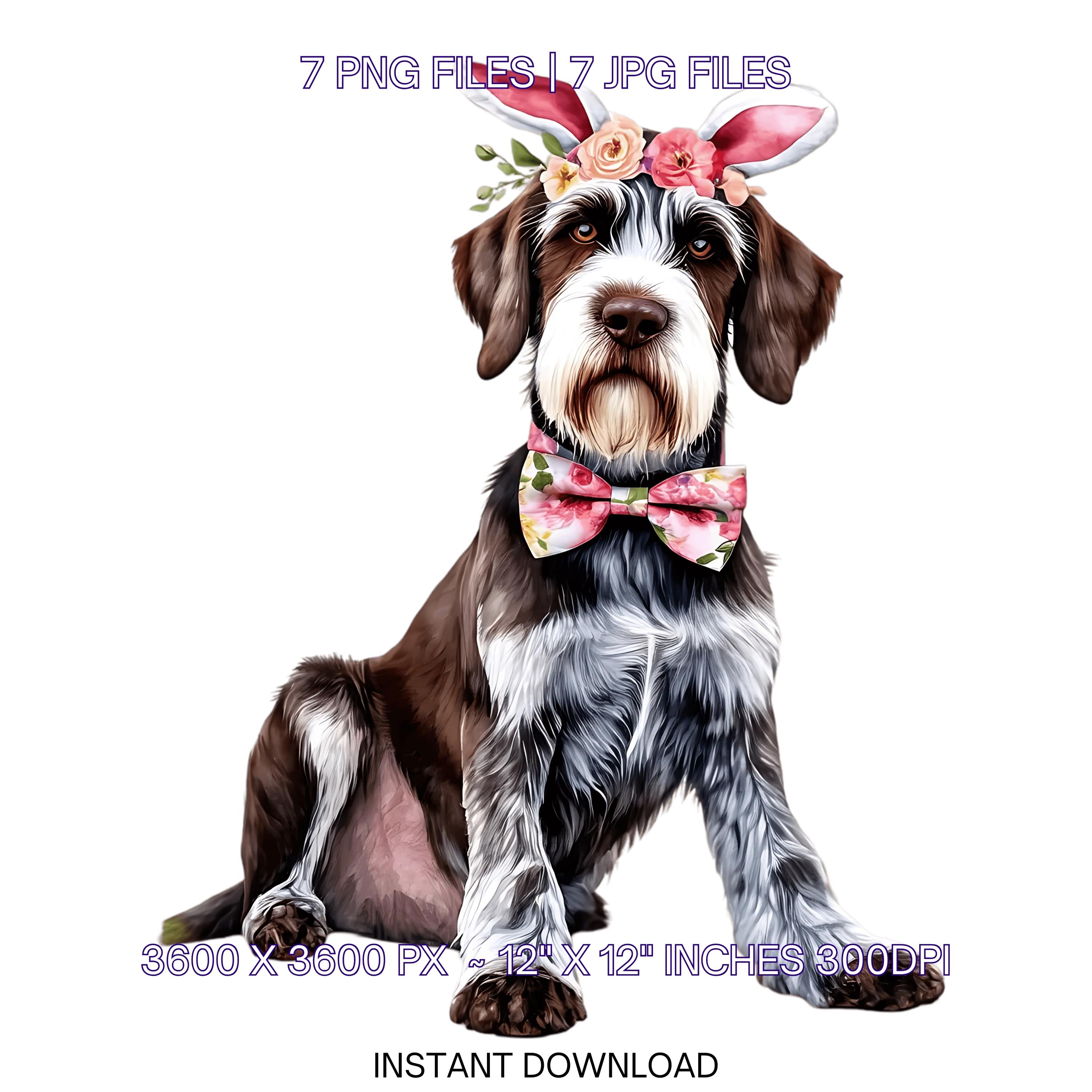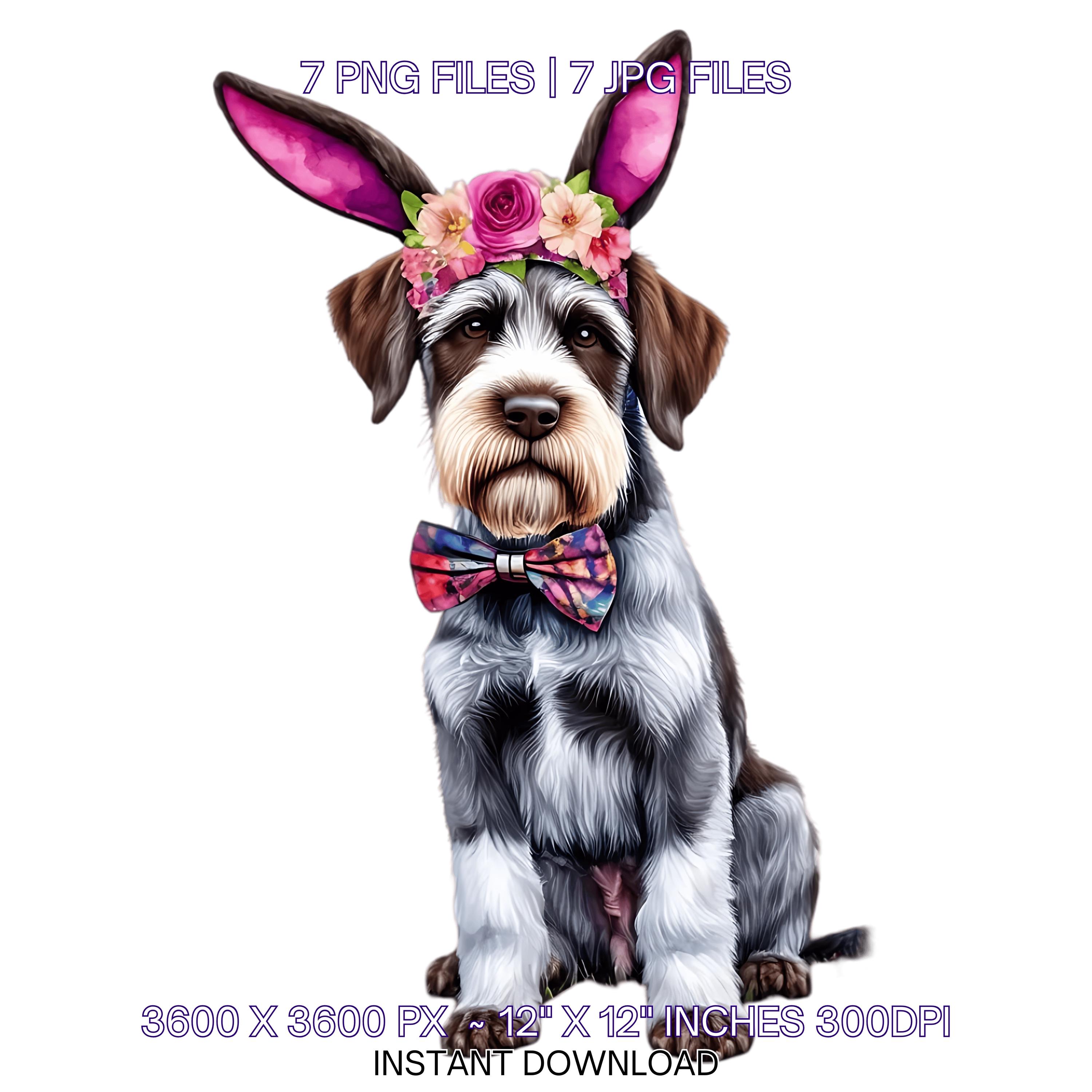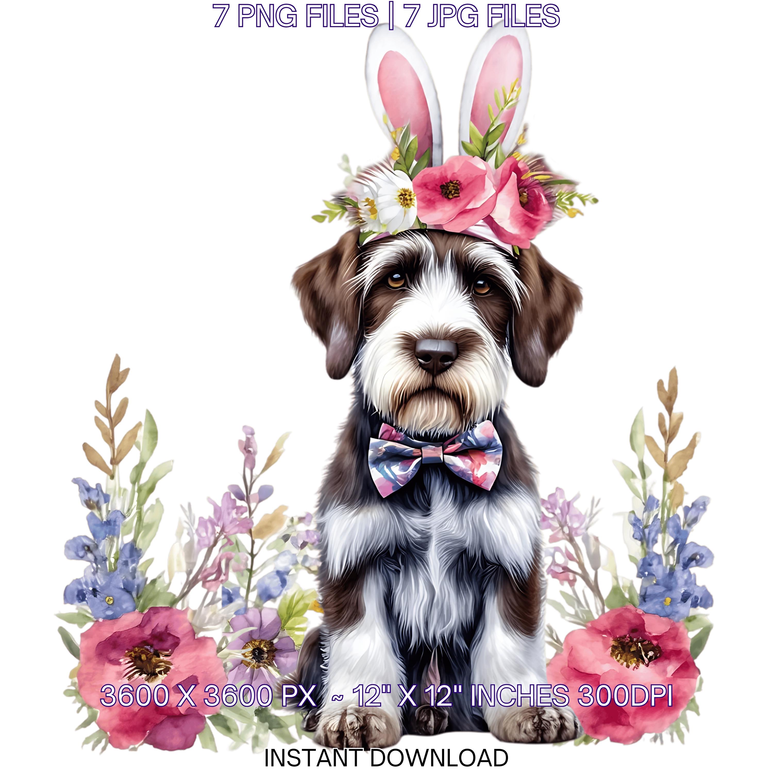 German Wirehaired Pointer Dog Wearing Floral Bow & Bunny Ear Handband Ready for Easter Egg Hunting Clipart PNG, 7 Dog Lover Commercial Use – Instant Digital Download - TumblersGalaxy