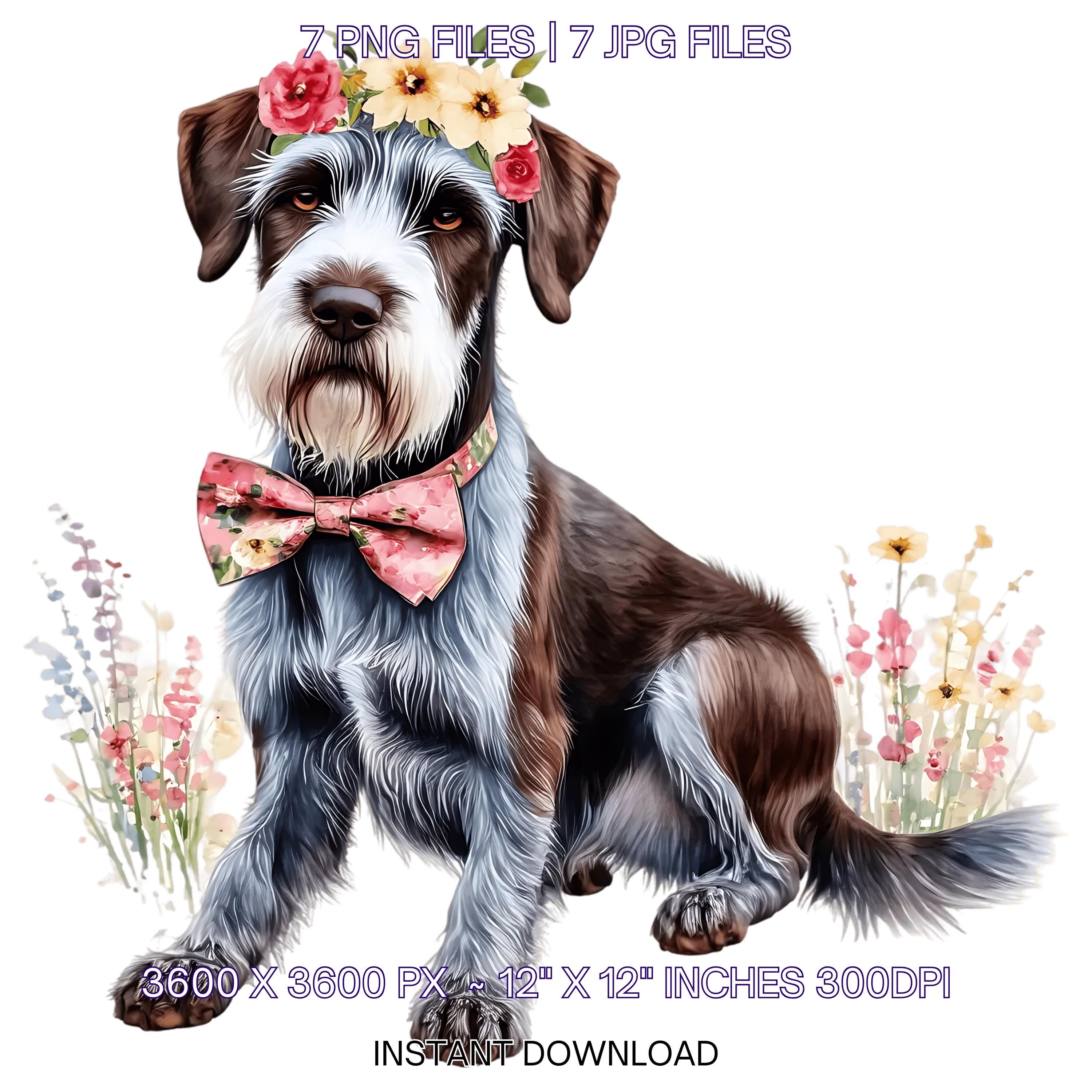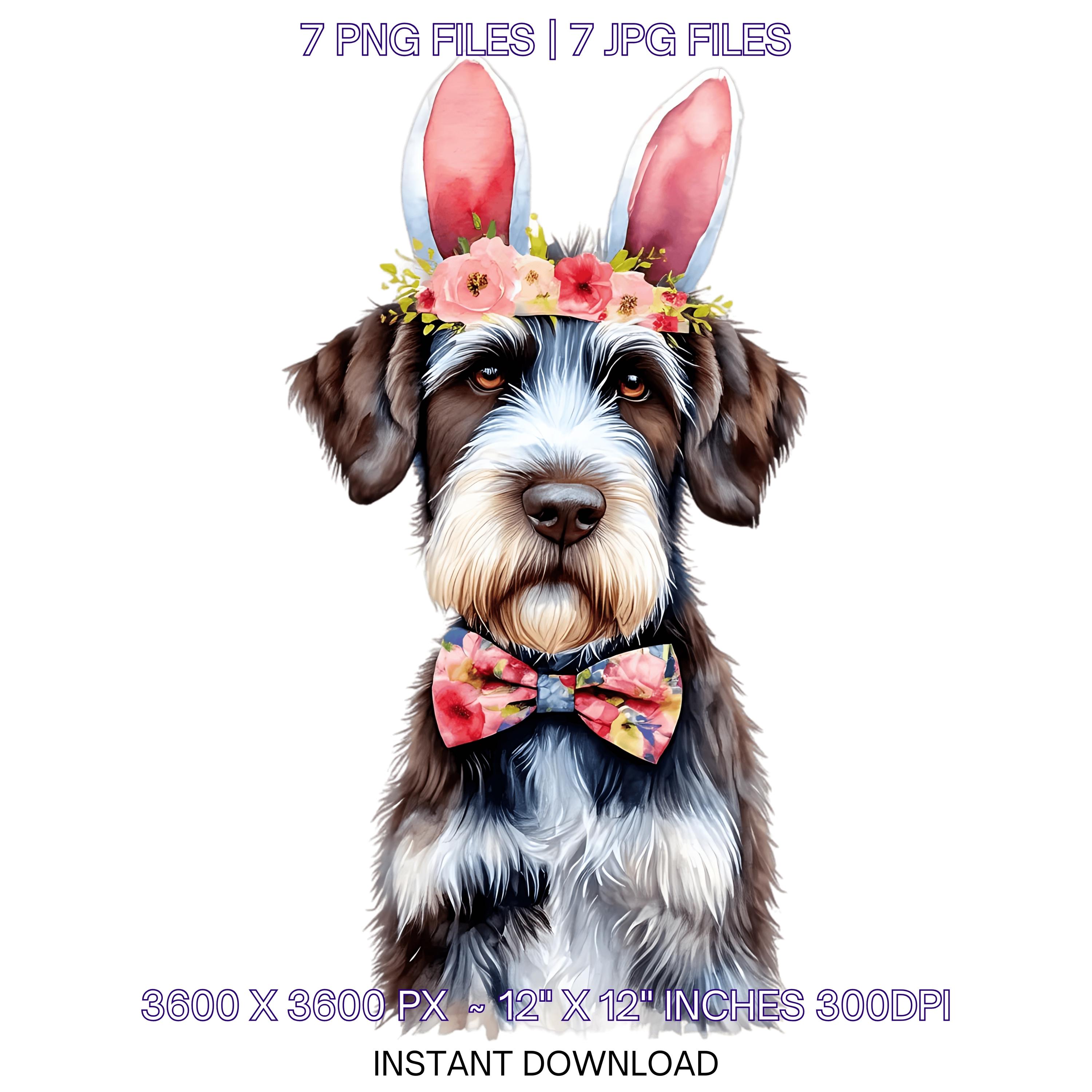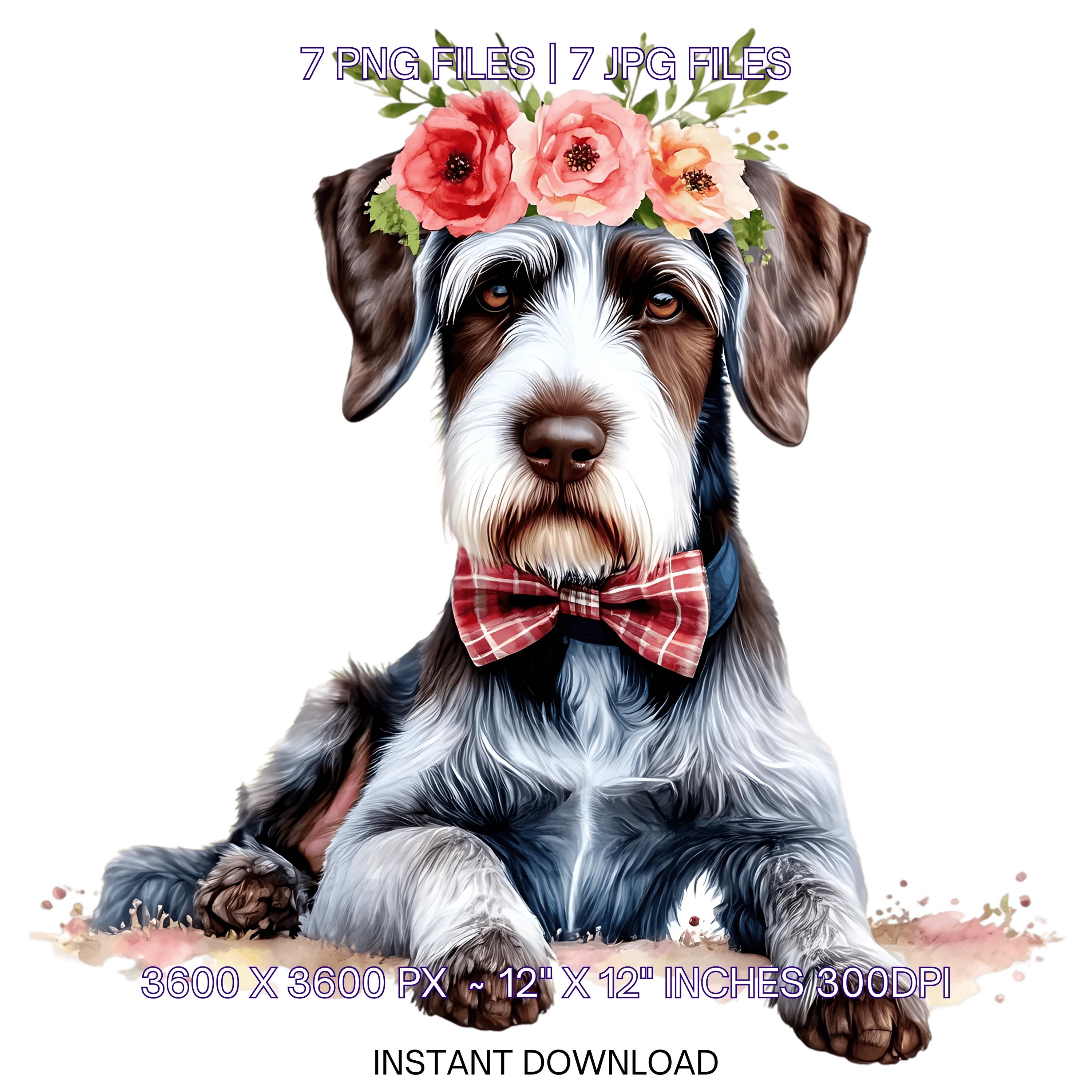 German Wirehaired Pointer Dog Wearing Floral Bow & Bunny Ear Handband Ready for Easter Egg Hunting Clipart PNG, 7 Dog Lover Commercial Use – Instant Digital Download - TumblersGalaxy