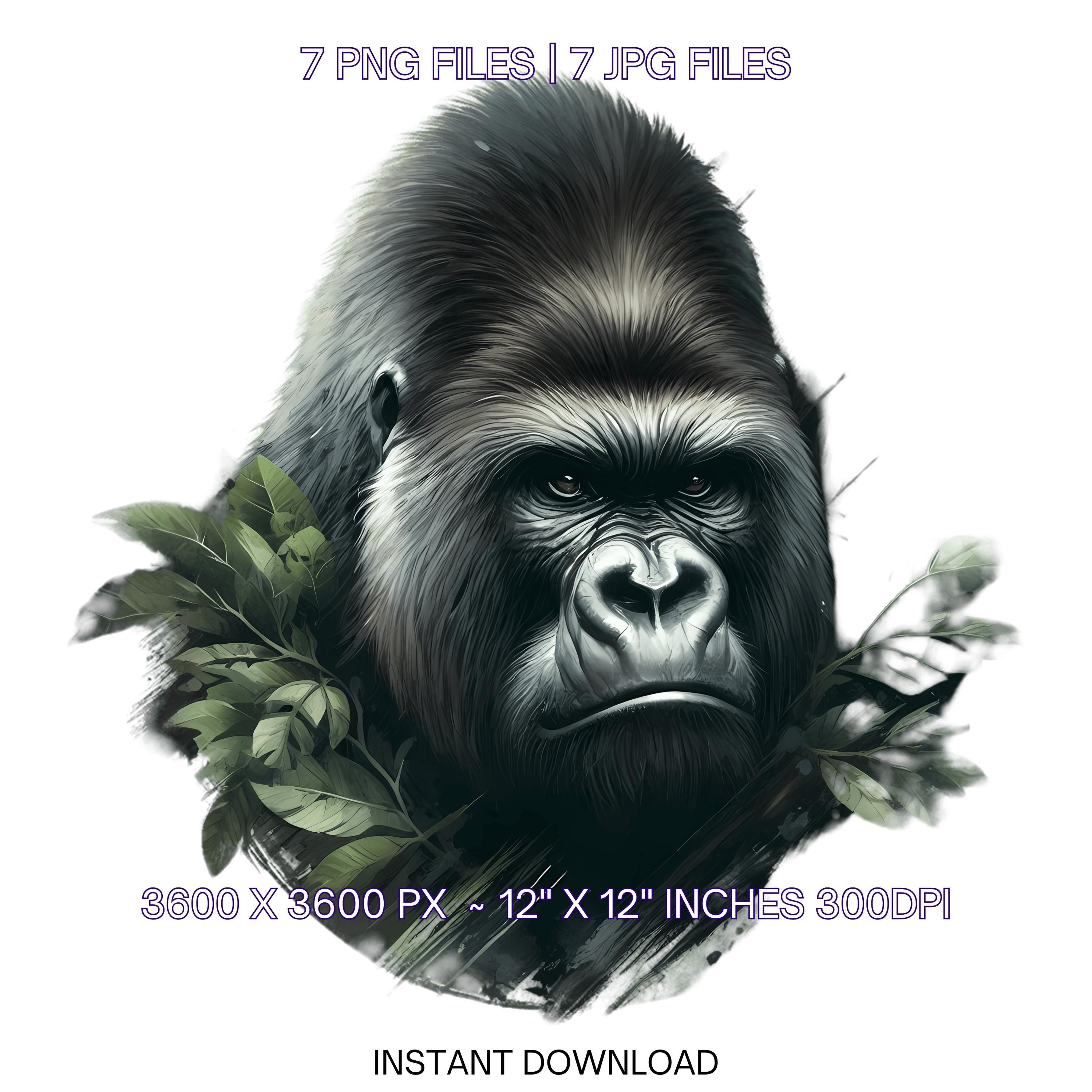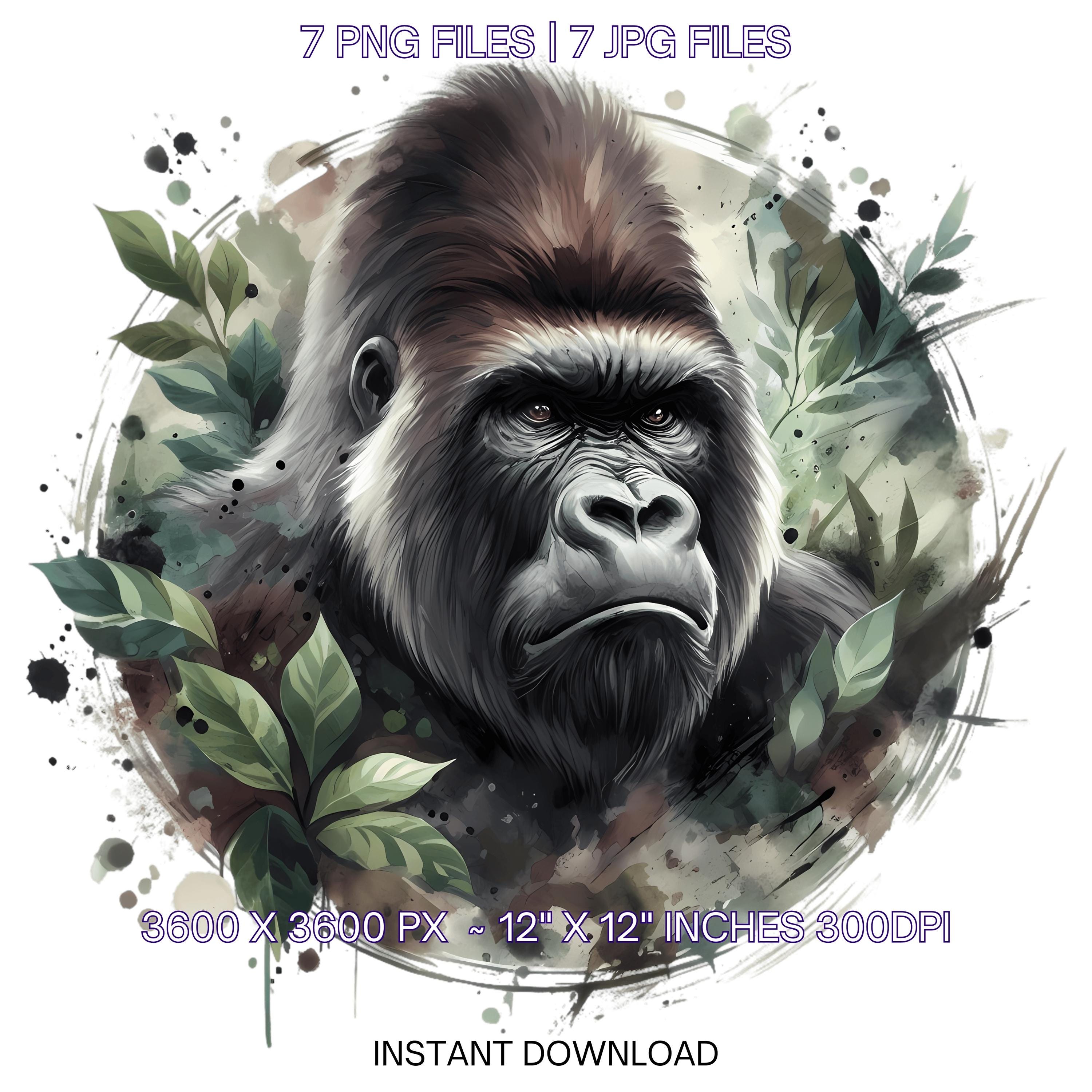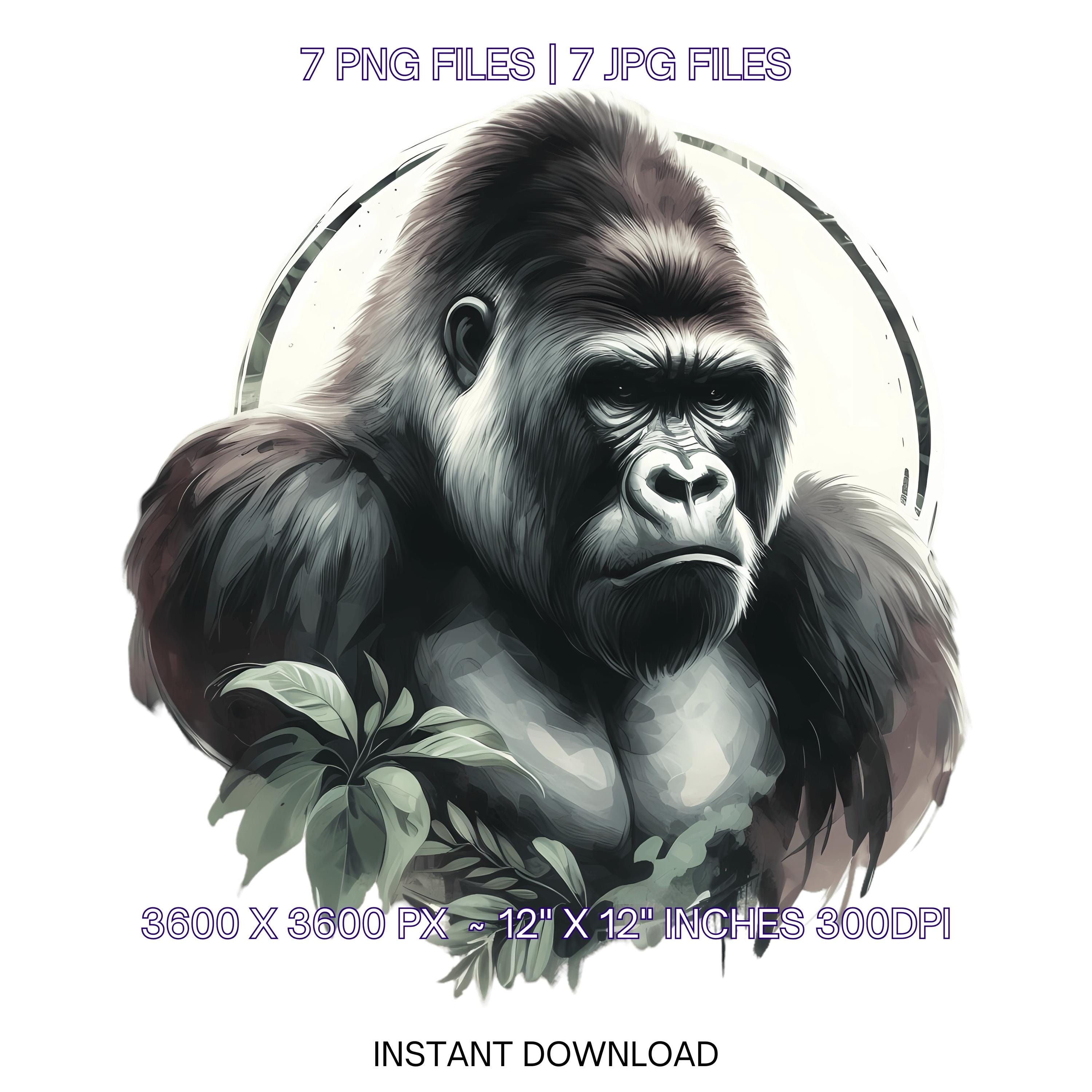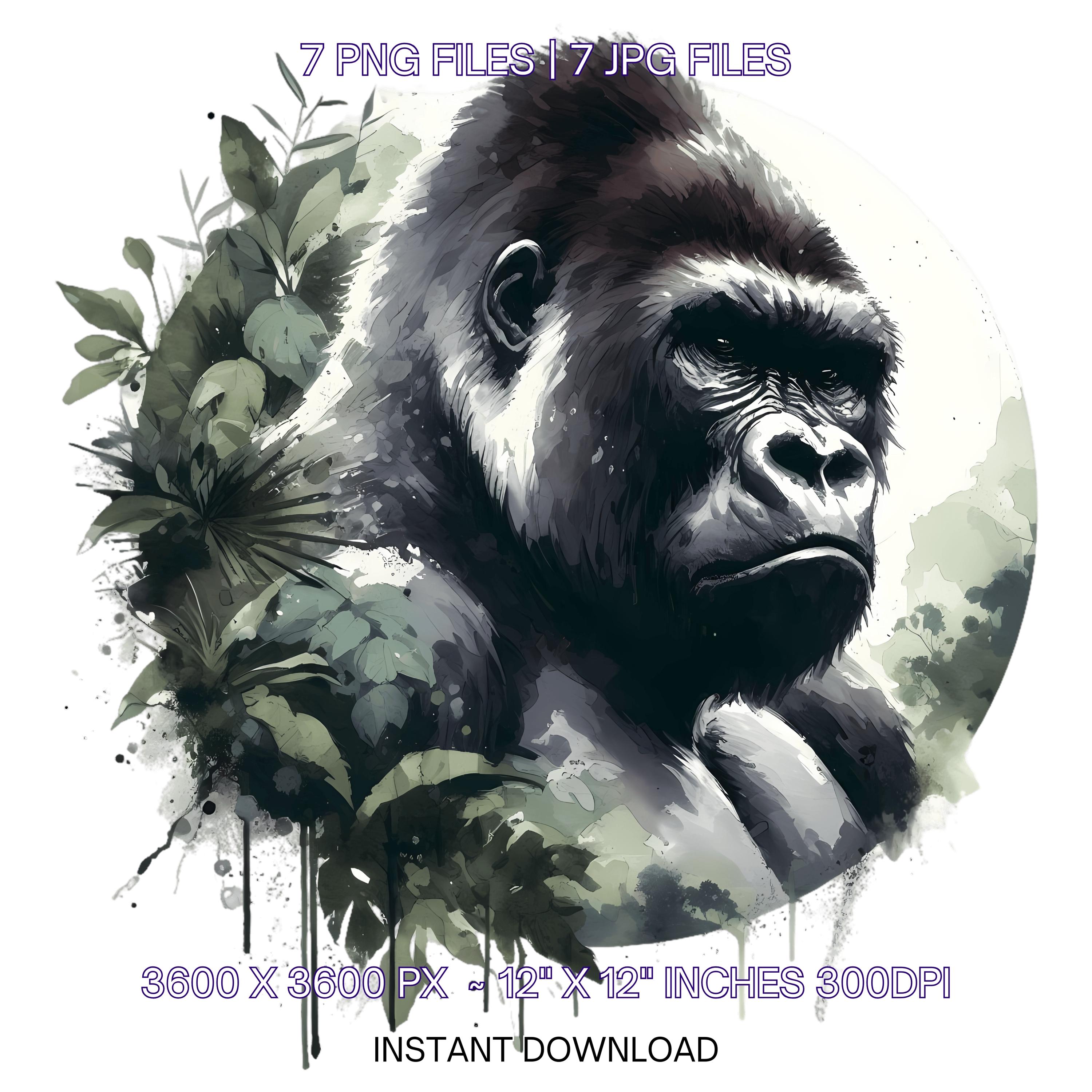Gorilla Clipart PNG | 7 Watercolor Strong Gorilla in a Jungle backdrop | Jungle Clipart | Sublimation Transparent Commercial Use is an eye-catching, high-resolution digital asset designed for creators, crafters, teachers, and small business owners looking to elevate their visuals.