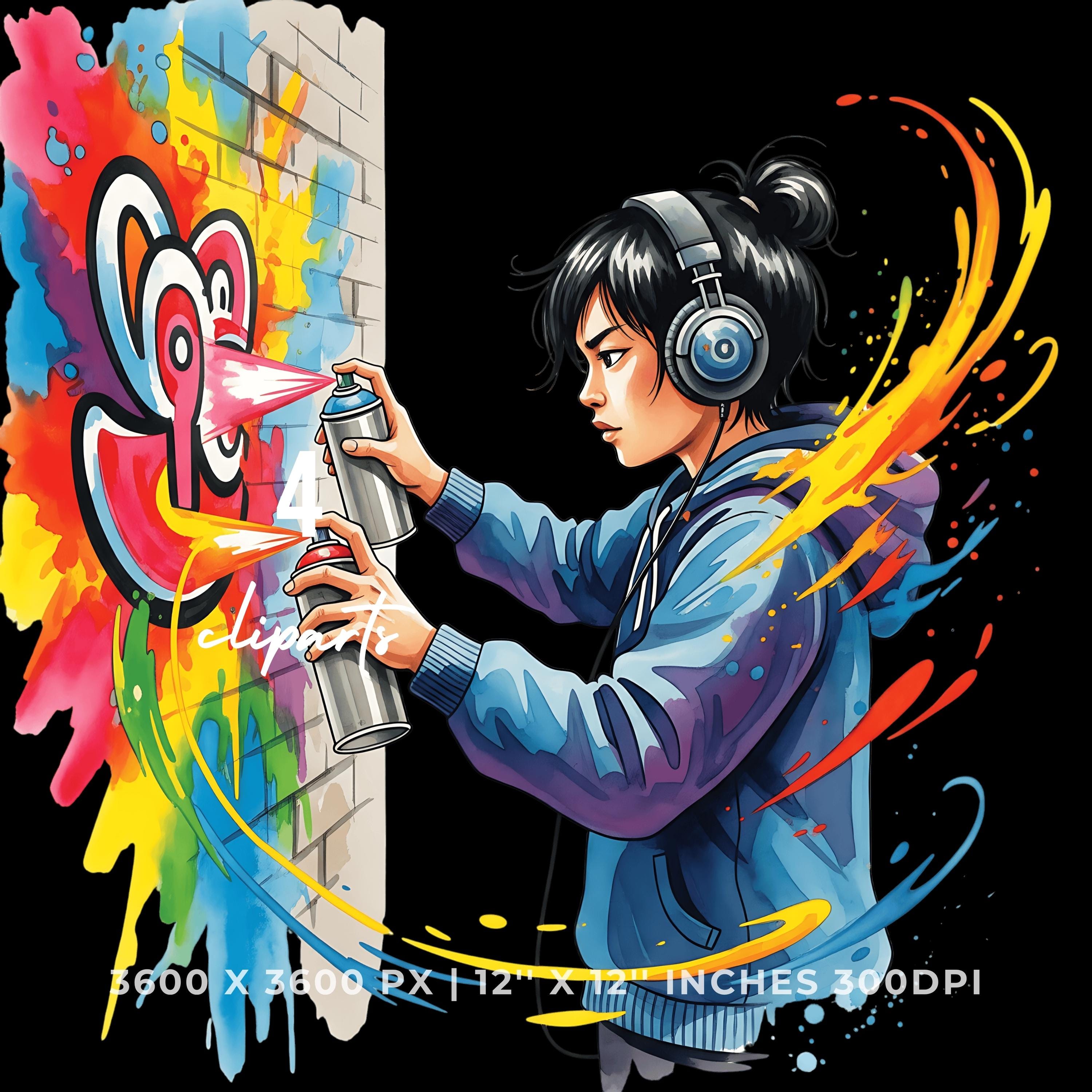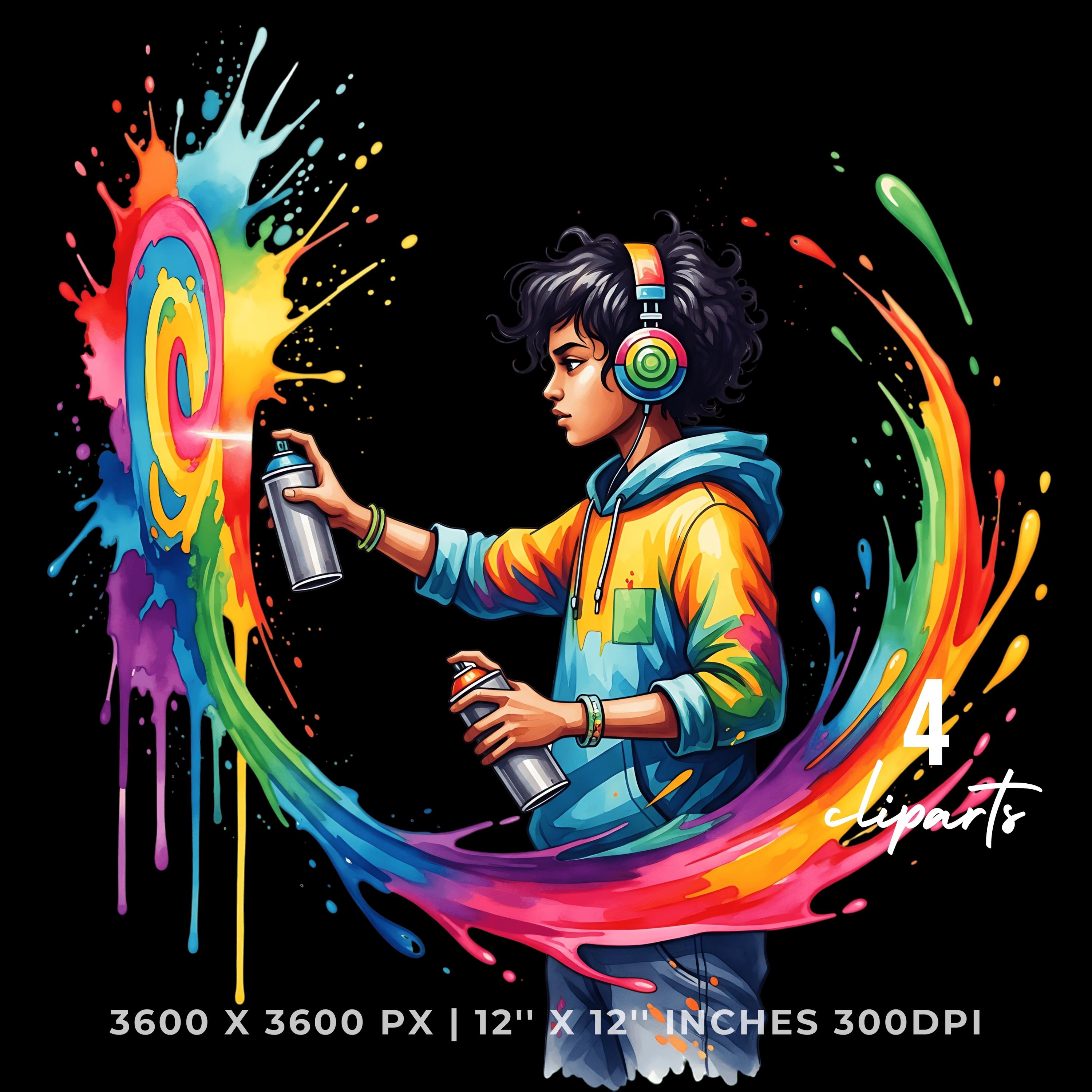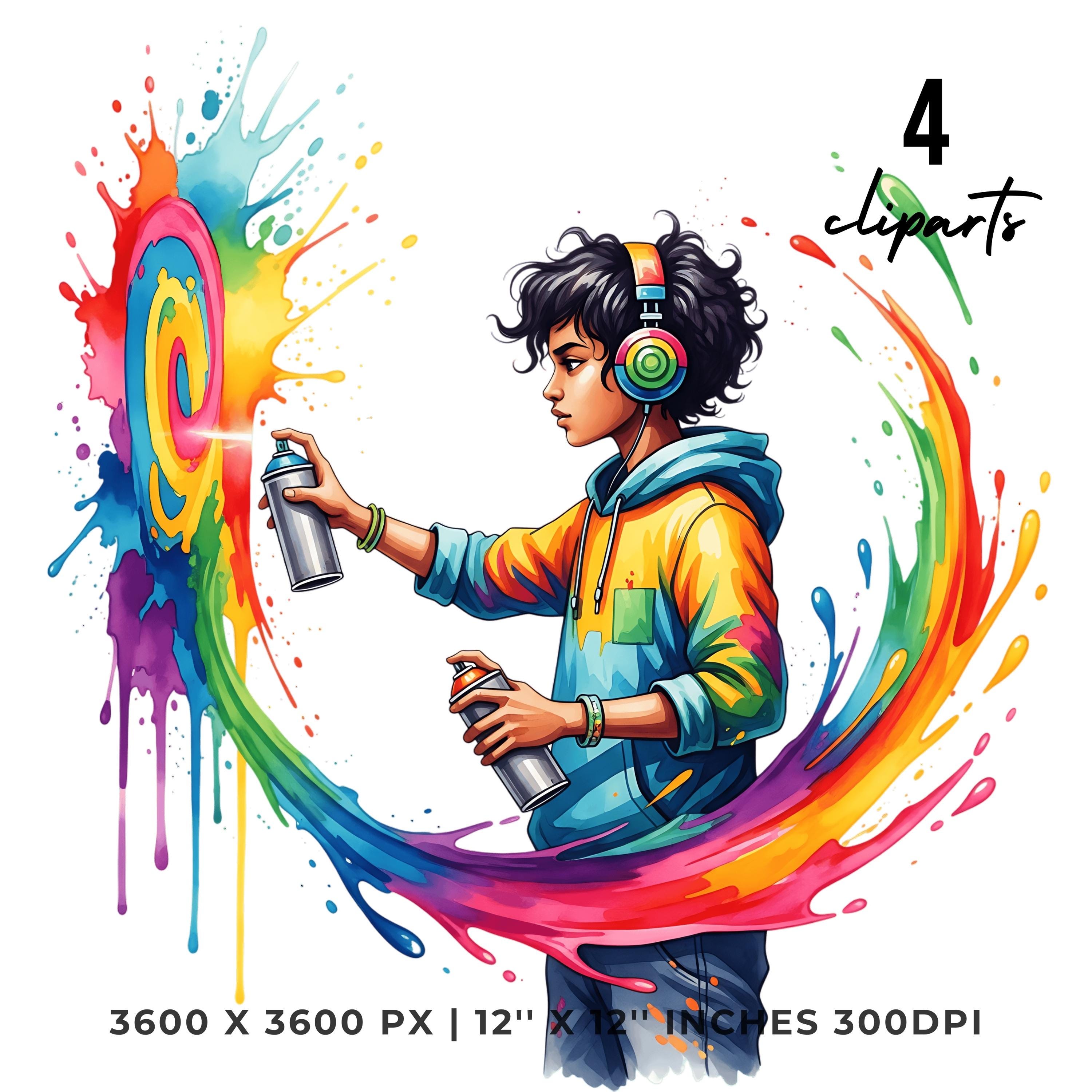 Graffiti Artist PNG Clipart | Watercolor Young Street Artist Painting a colorful mural with spray cans | Graffiti art | 4 PNG – 4 JPG Graphic Commercial Use