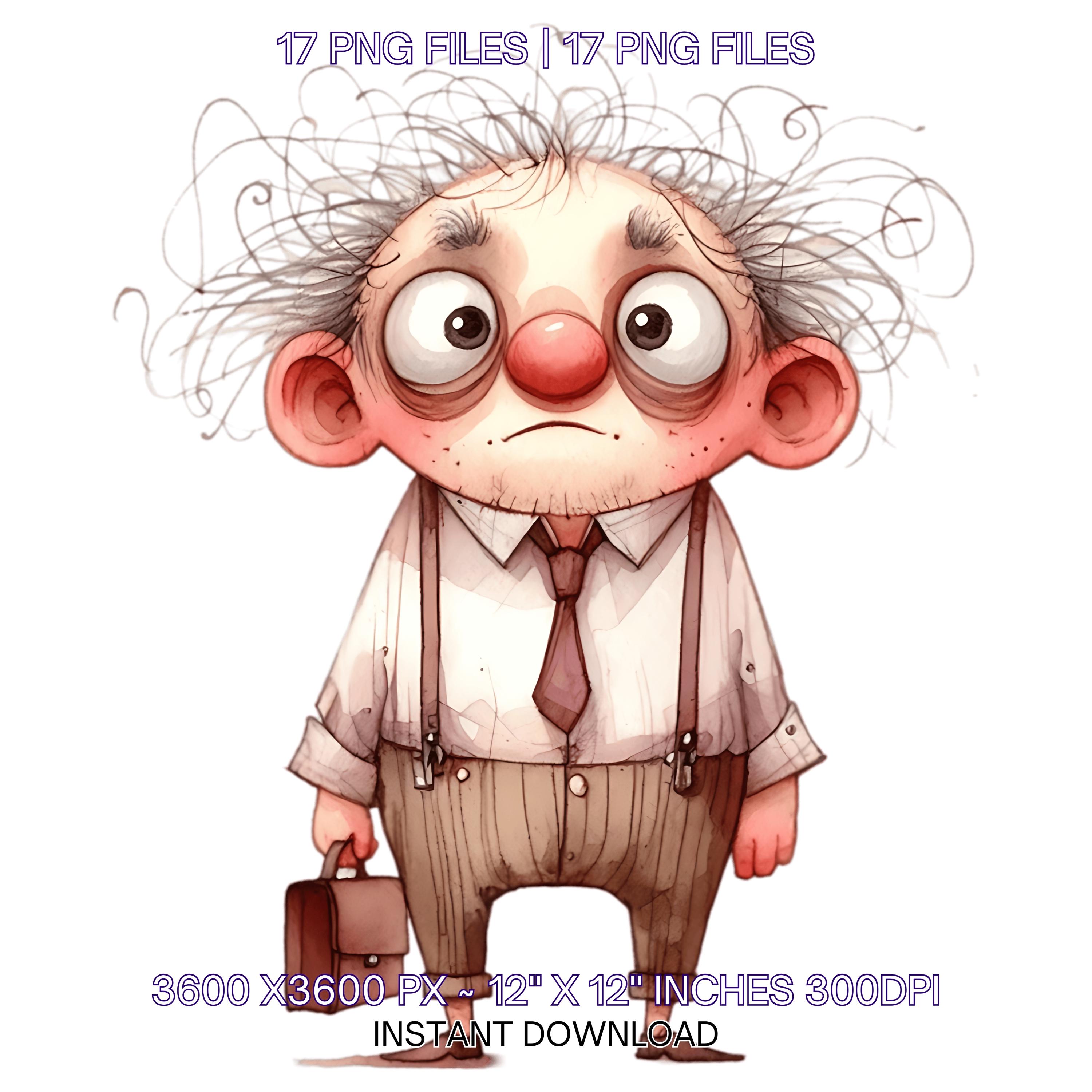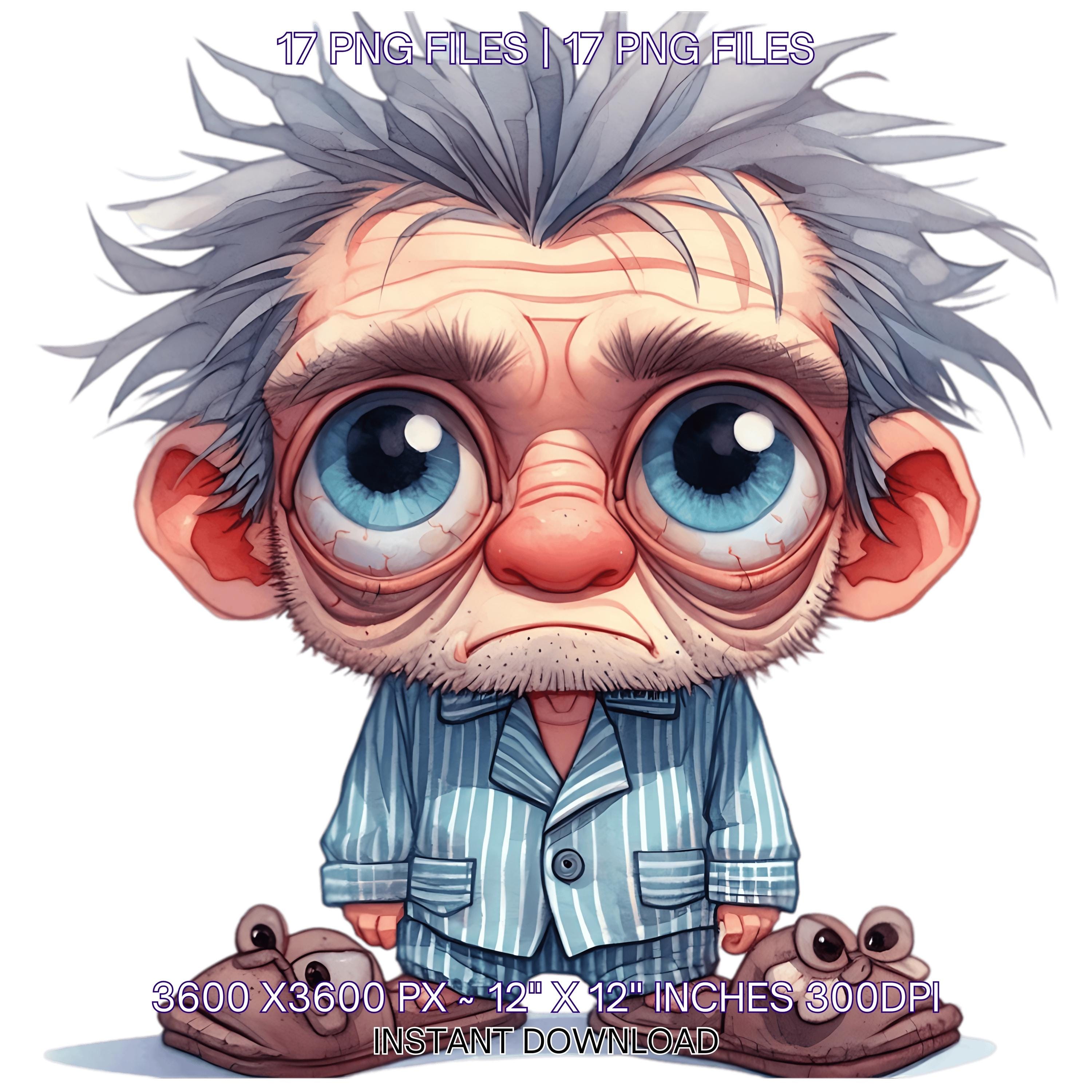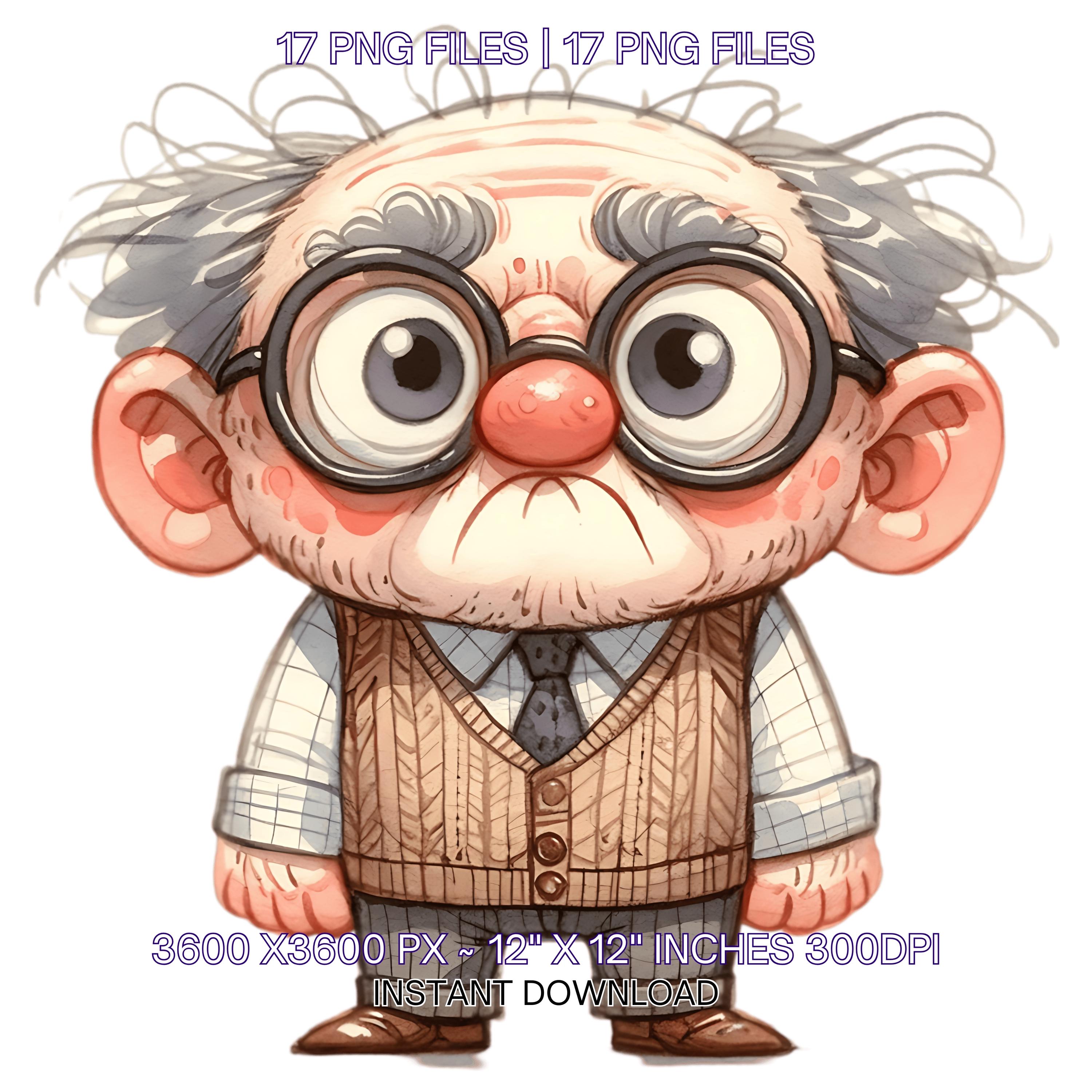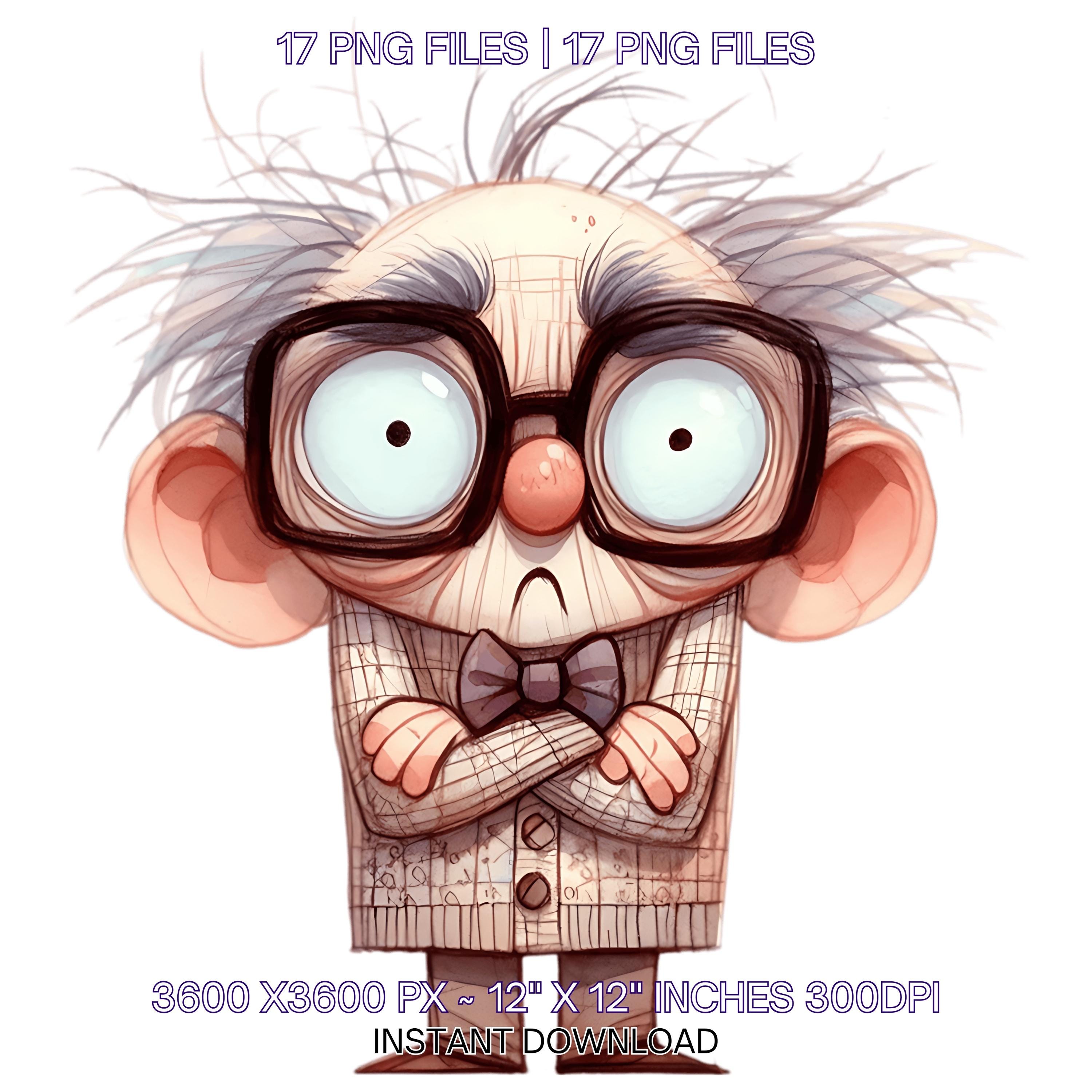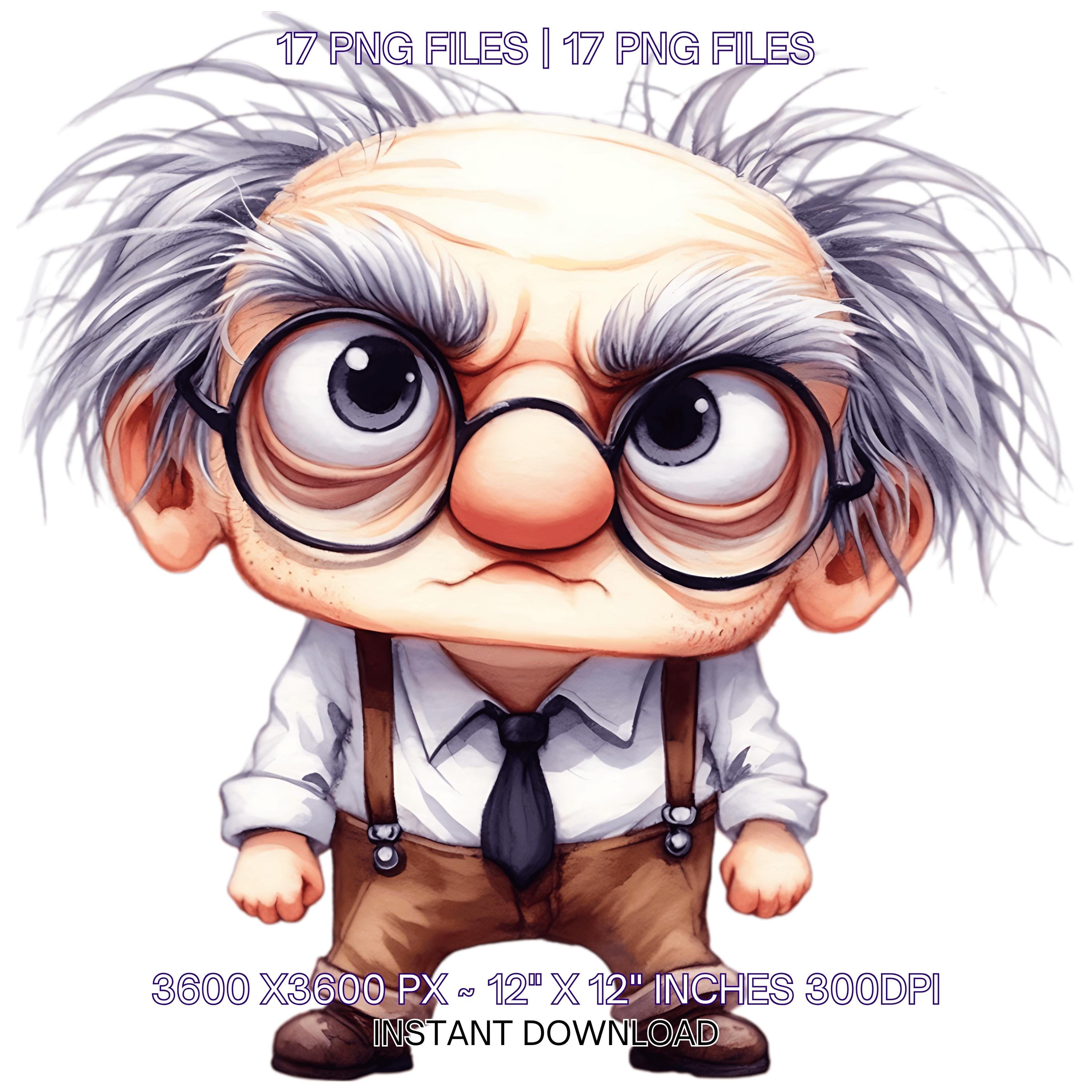 Grumpy Old Man Clipart | 17 PNG 17 JPG | Frazzled Quirky Elderly Man | Angry Whimsical Character, Scrapbooking, Sublimation | Commercial Use is an eye-catching, high-resolution digital asset designed for creators, crafters, teachers, and small business owners looking to elevate their visuals.