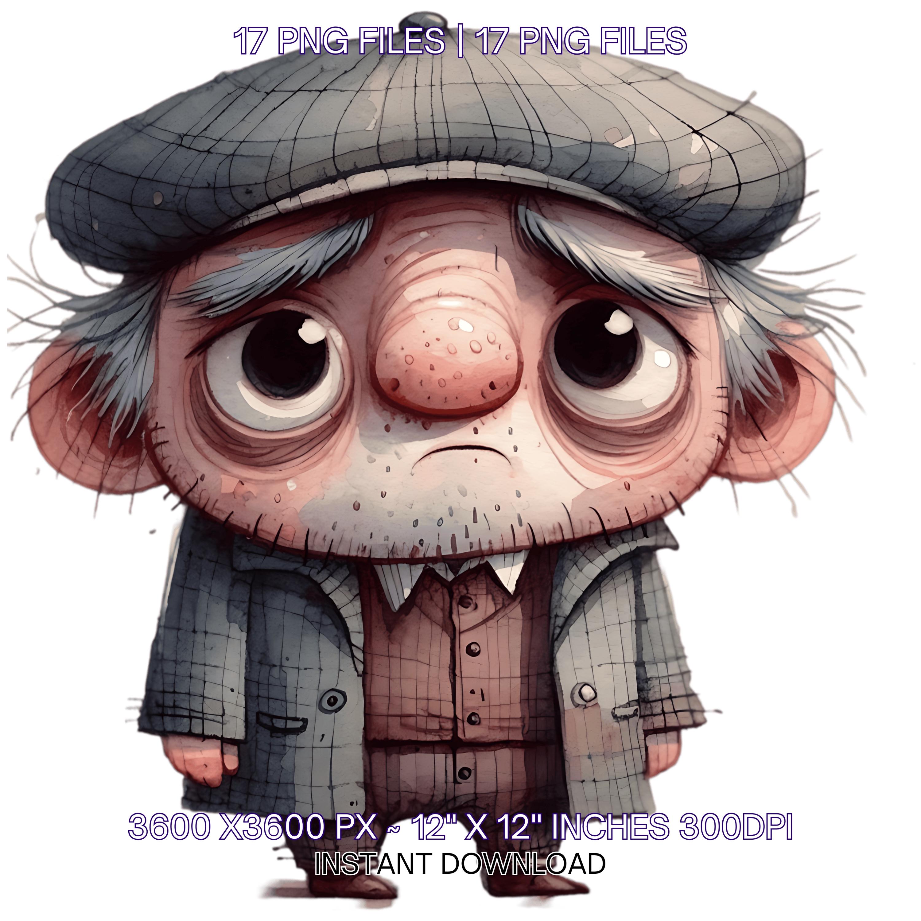 Grumpy Old Man Clipart | 17 PNG 17 JPG | Frazzled Quirky Elderly Man PNG | Angry Whimsical Character for Junk Journaling, Scrapbooking, Sublimation | Commercial Use