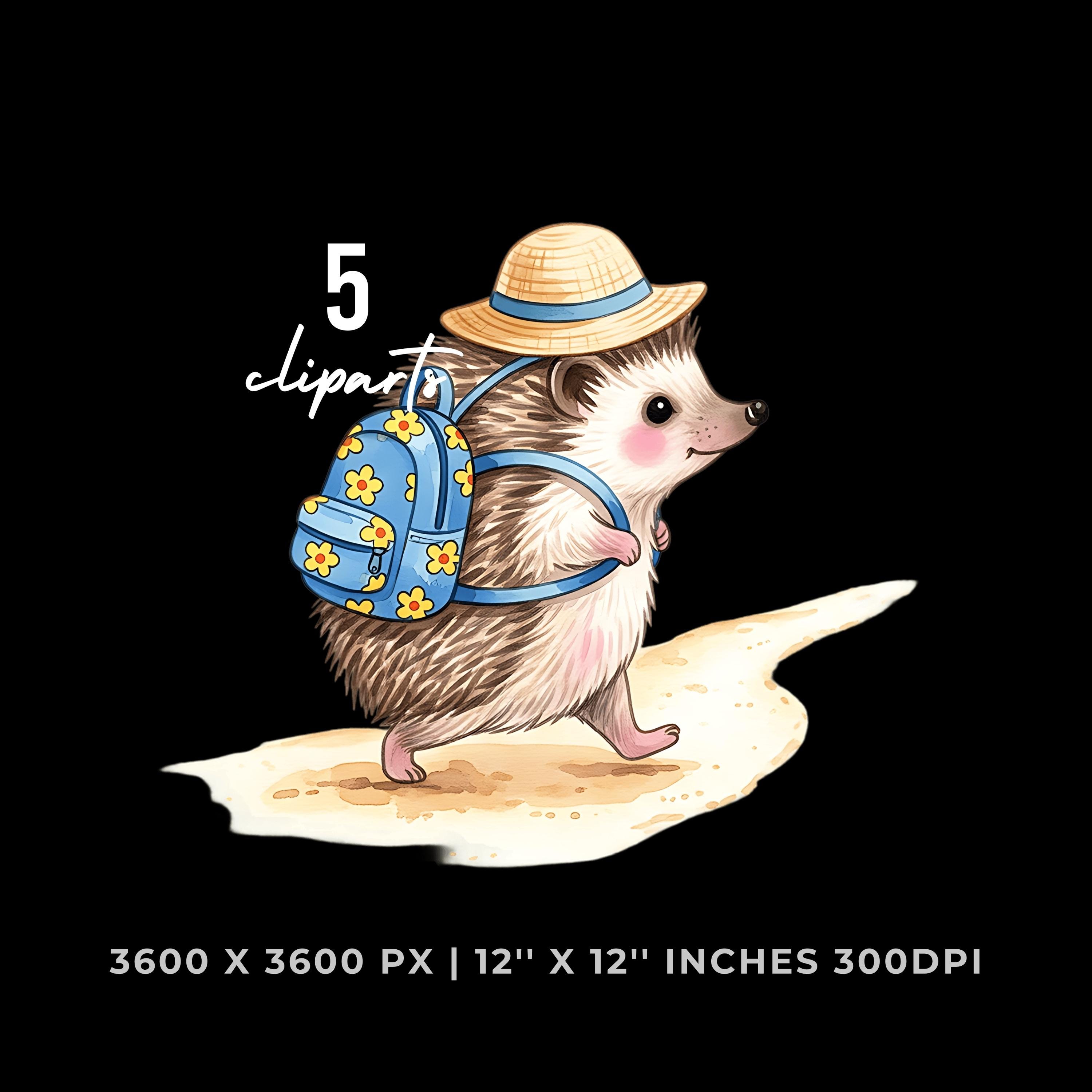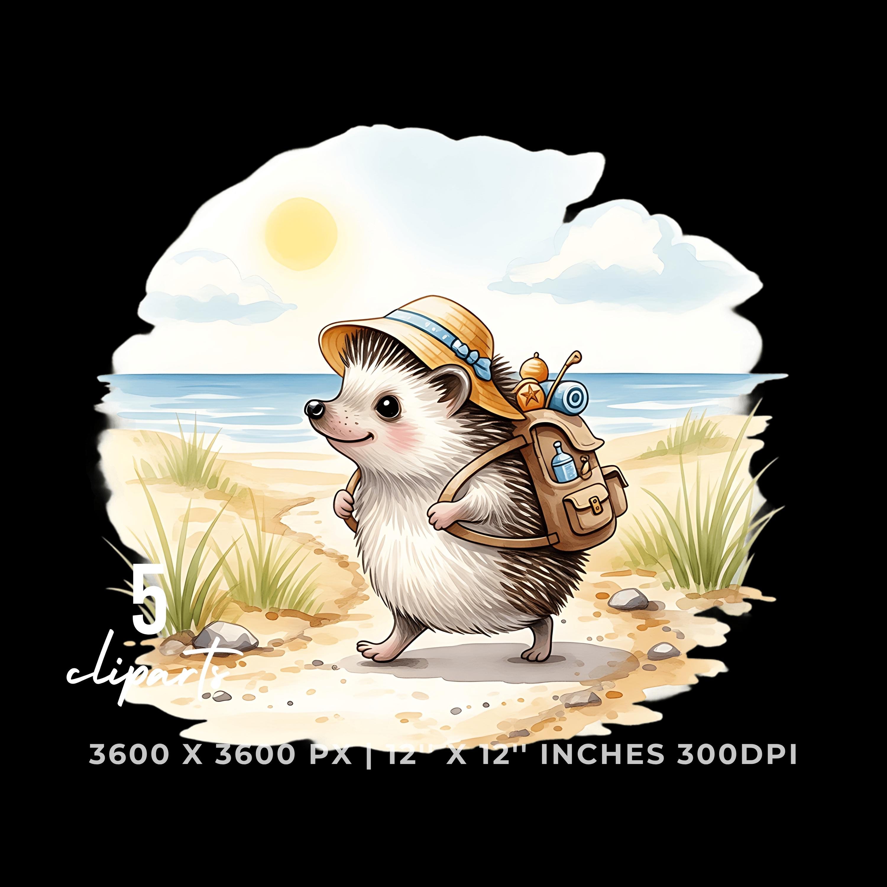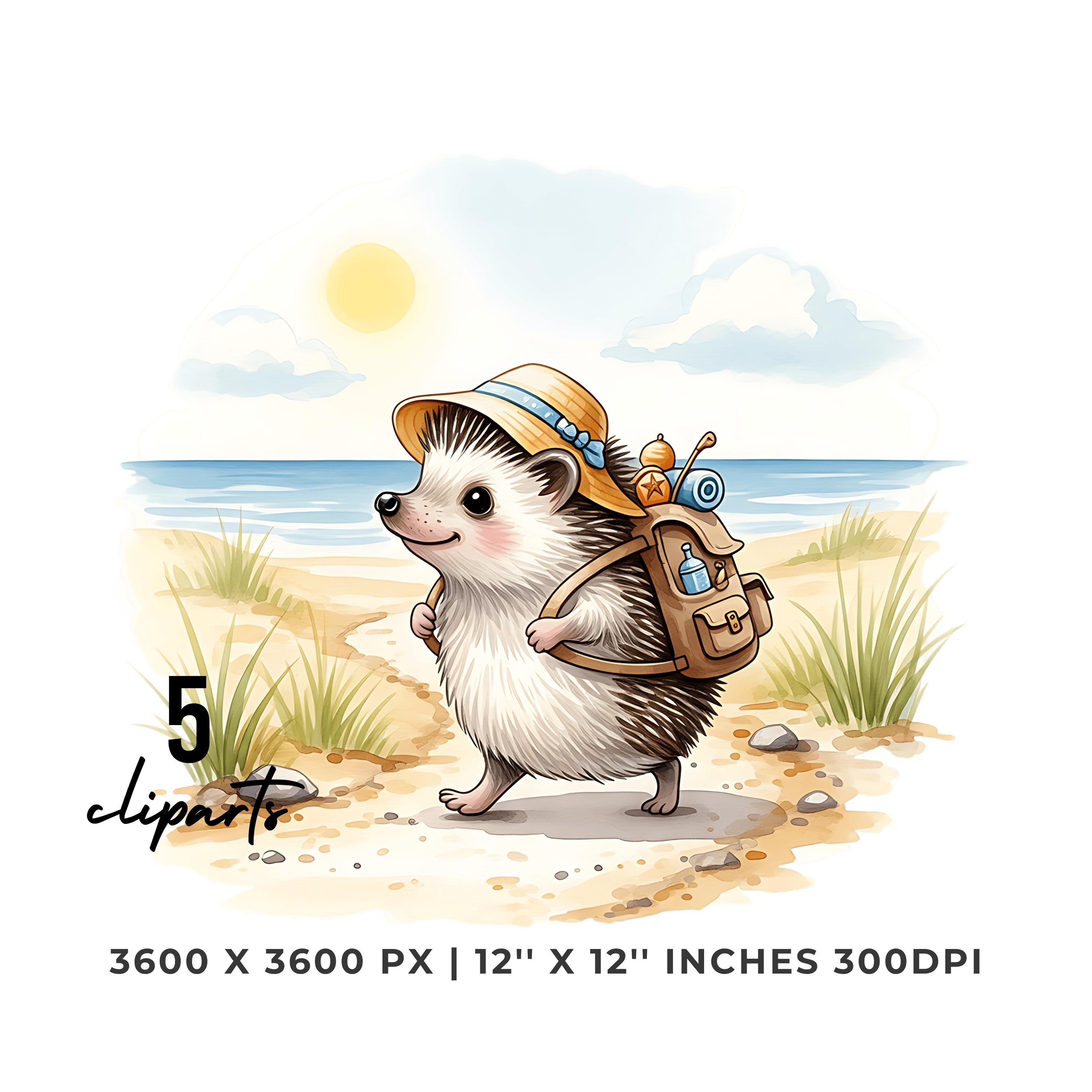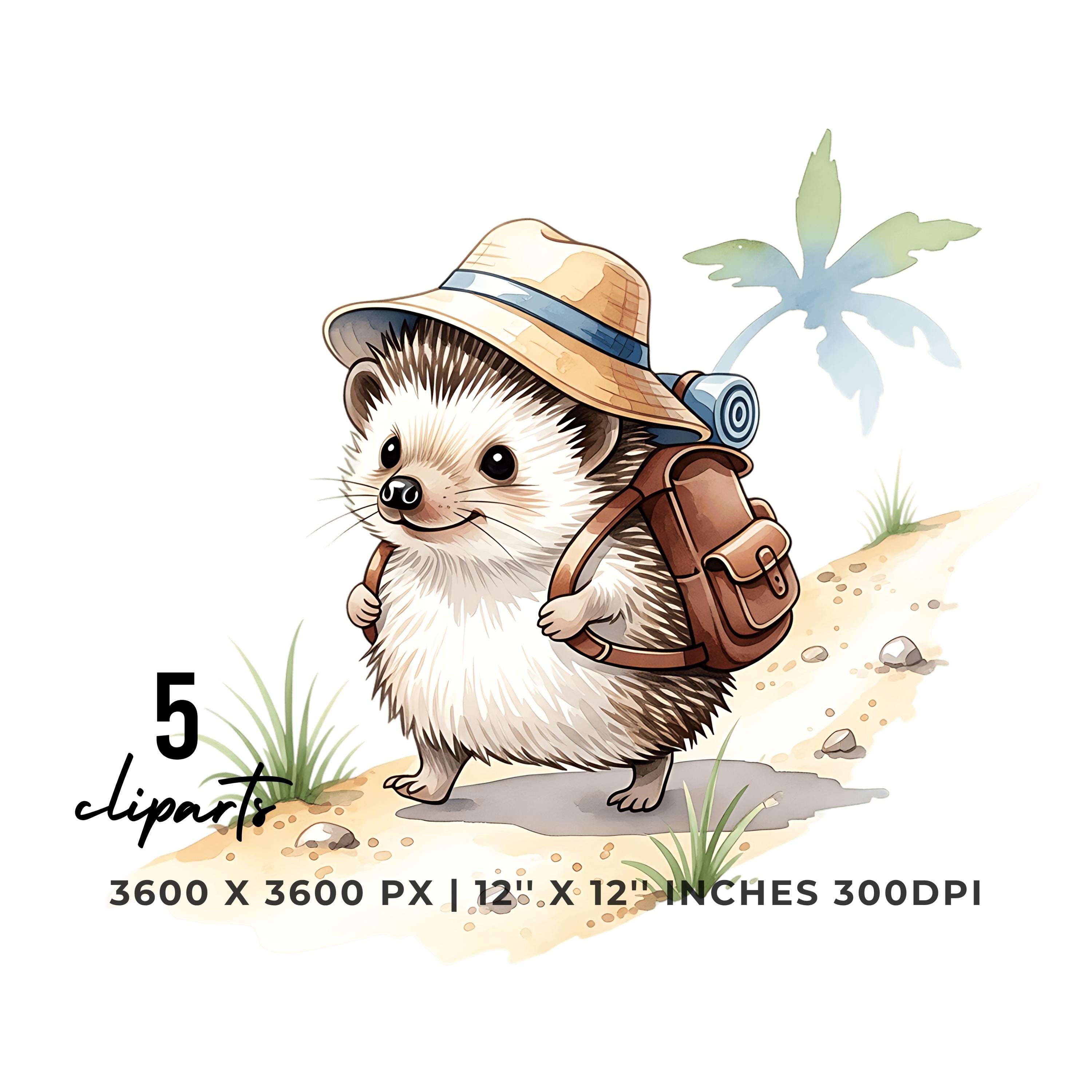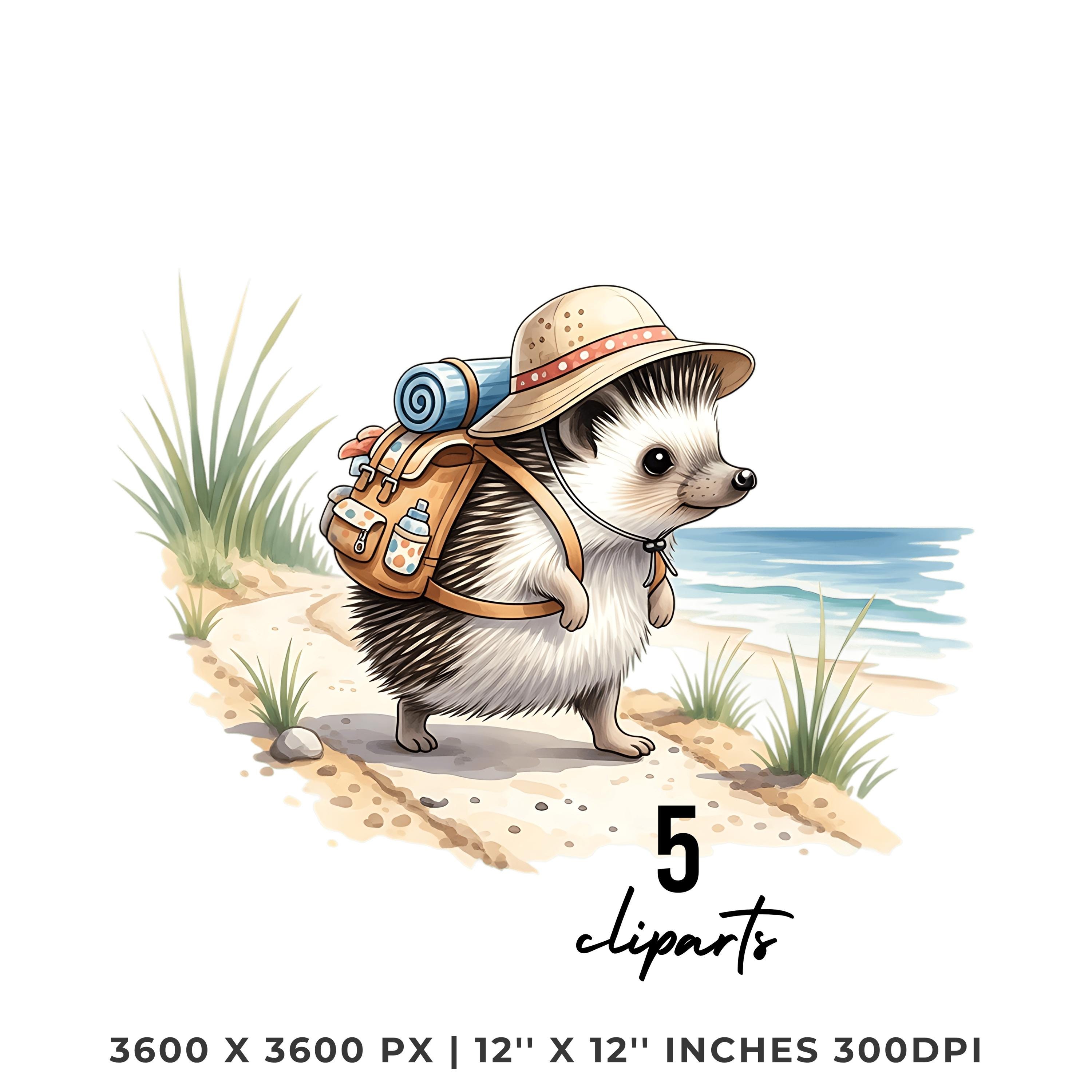 Hedgehog Clipart PNG | 5 Watercolor Hedgehog Walking | Summer Hedgehog Tracking Sublimation Transparent 5 png 5jpg Commercial Use