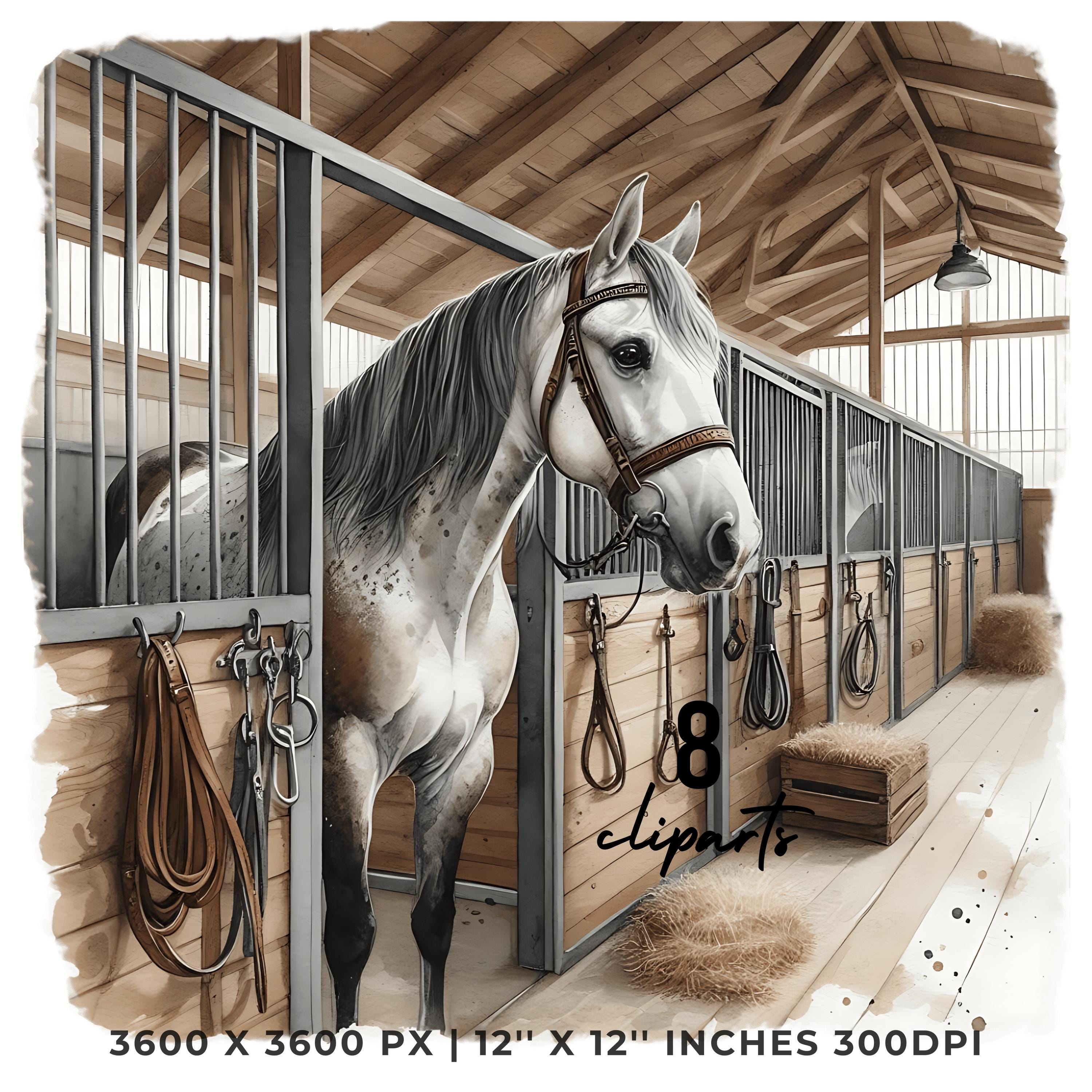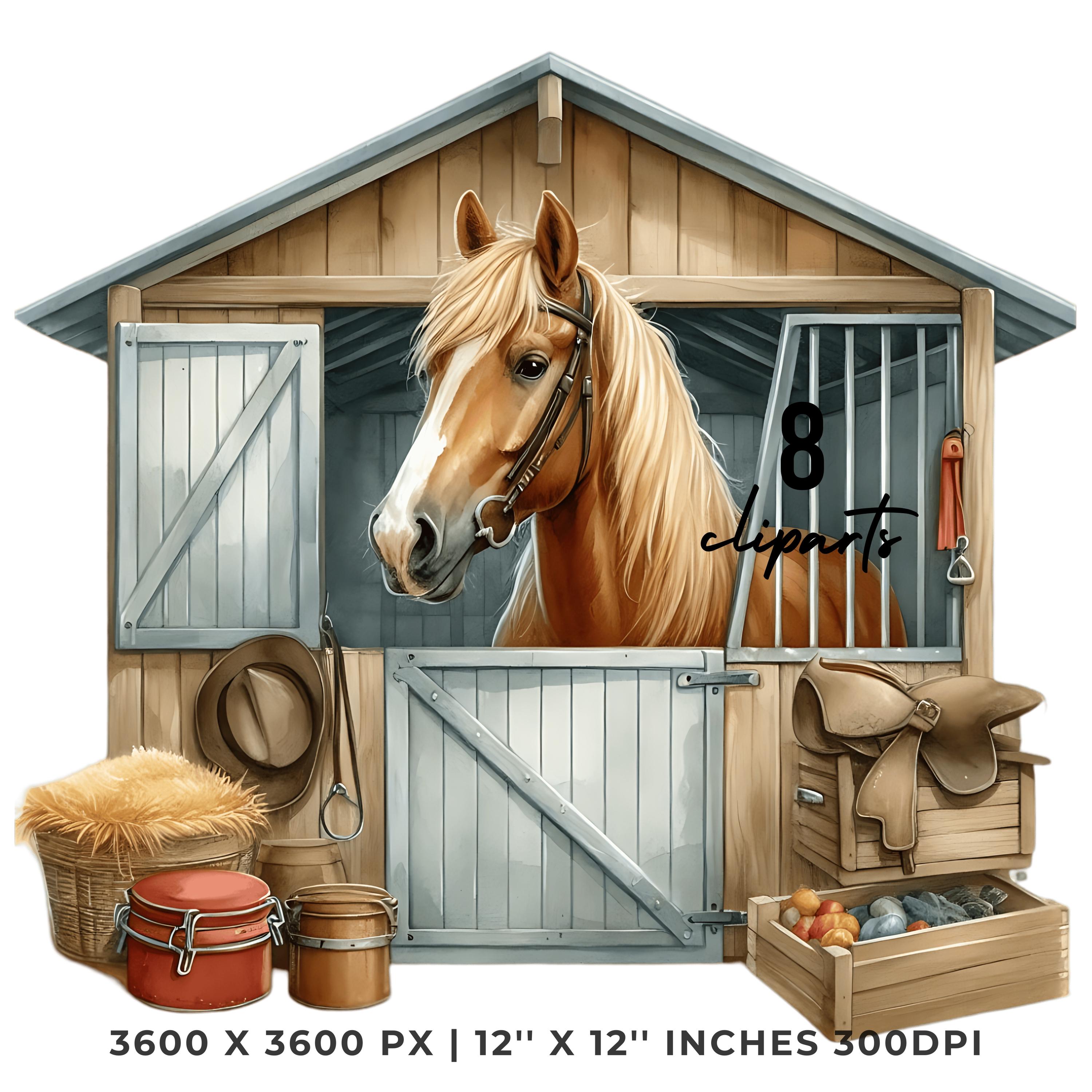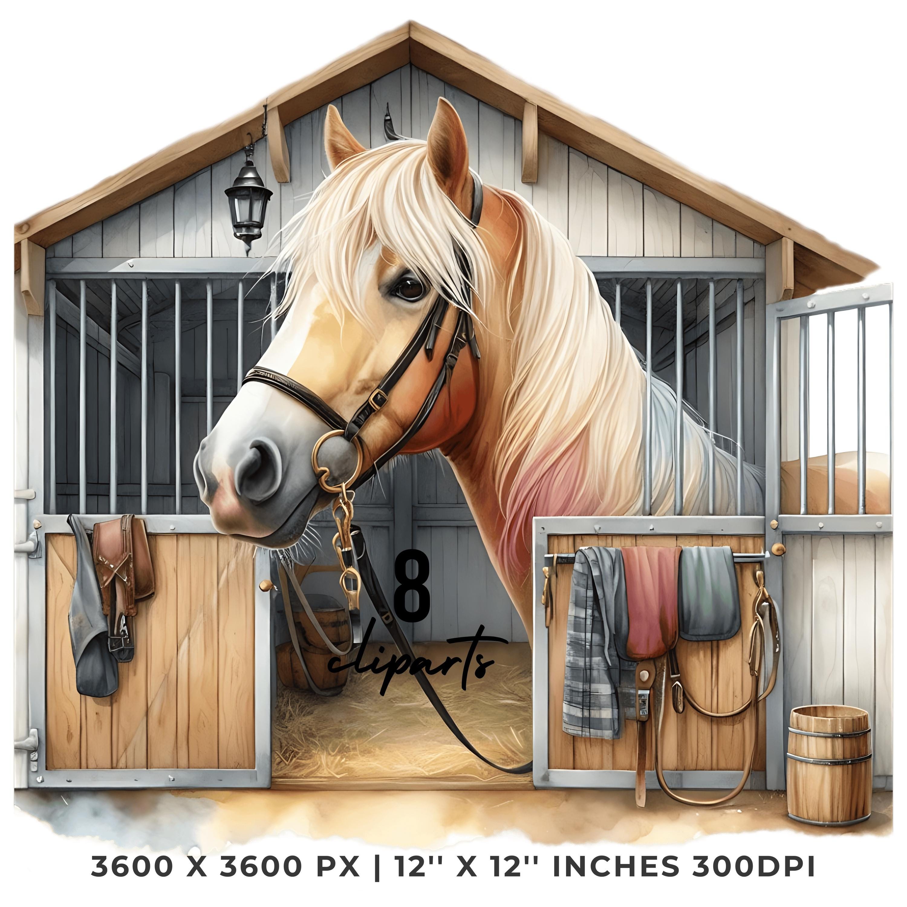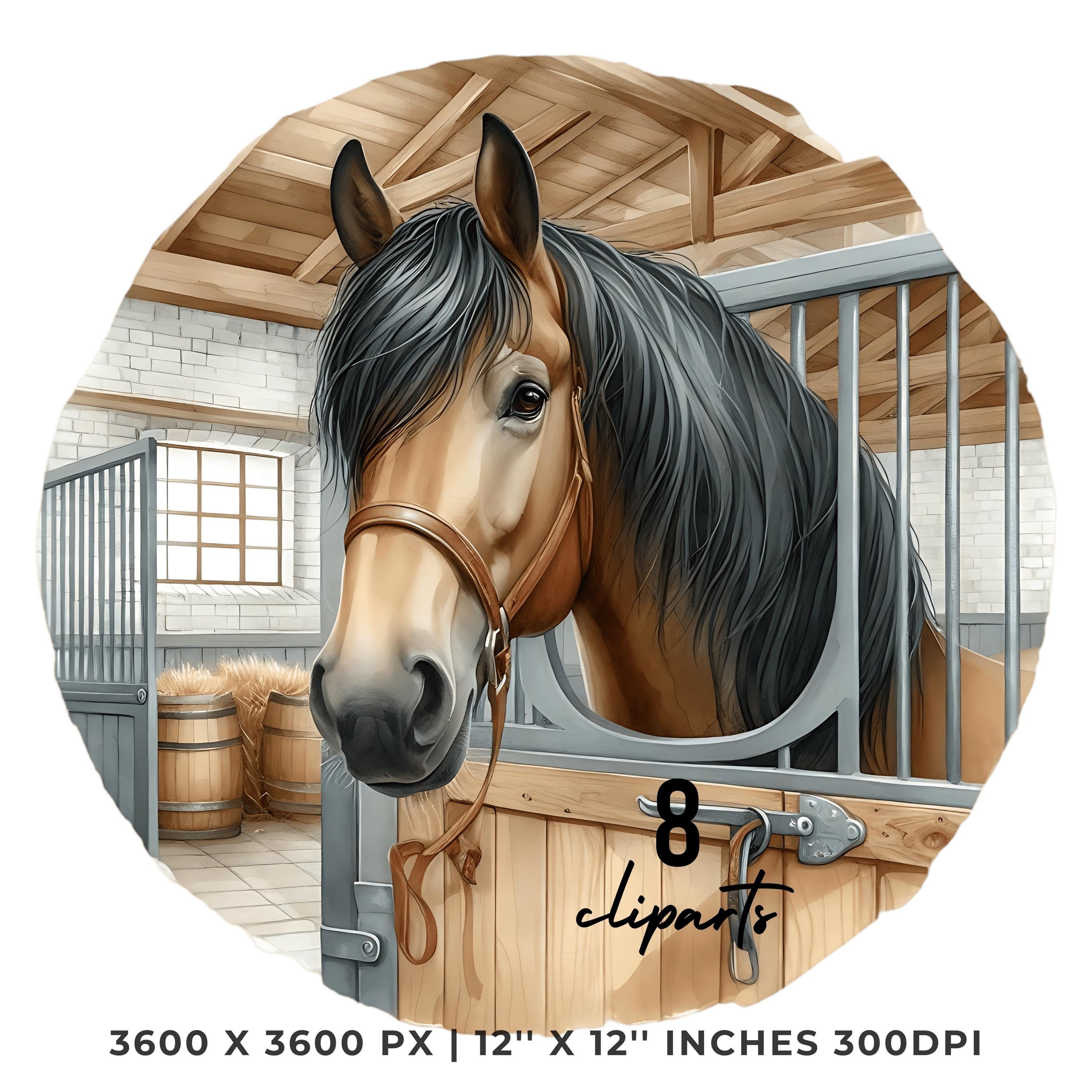Horse in Stable Clipart PNG | 8 Watercolor Horse Stall Clipart Sublimation | Country Boy Things Illustration Commercial use