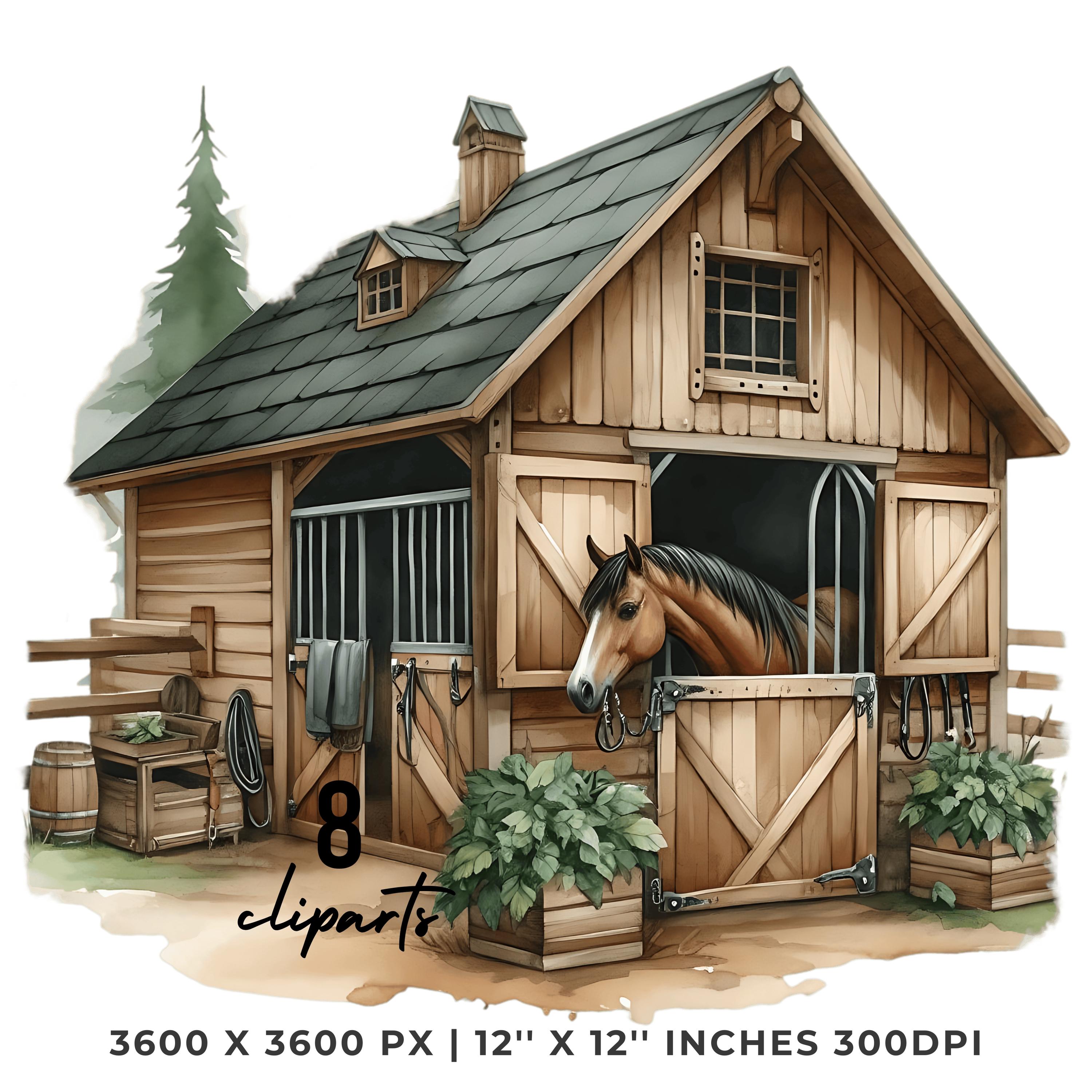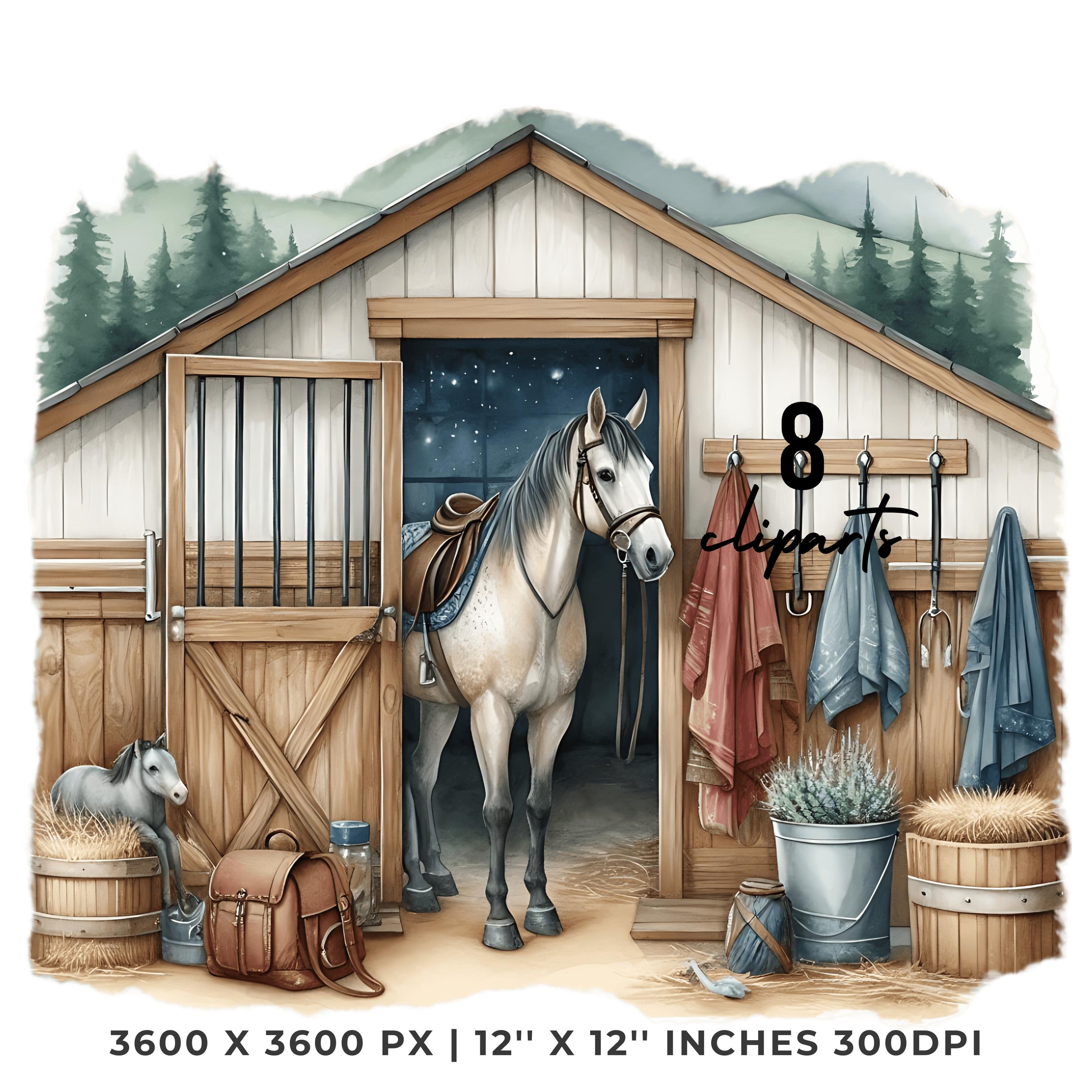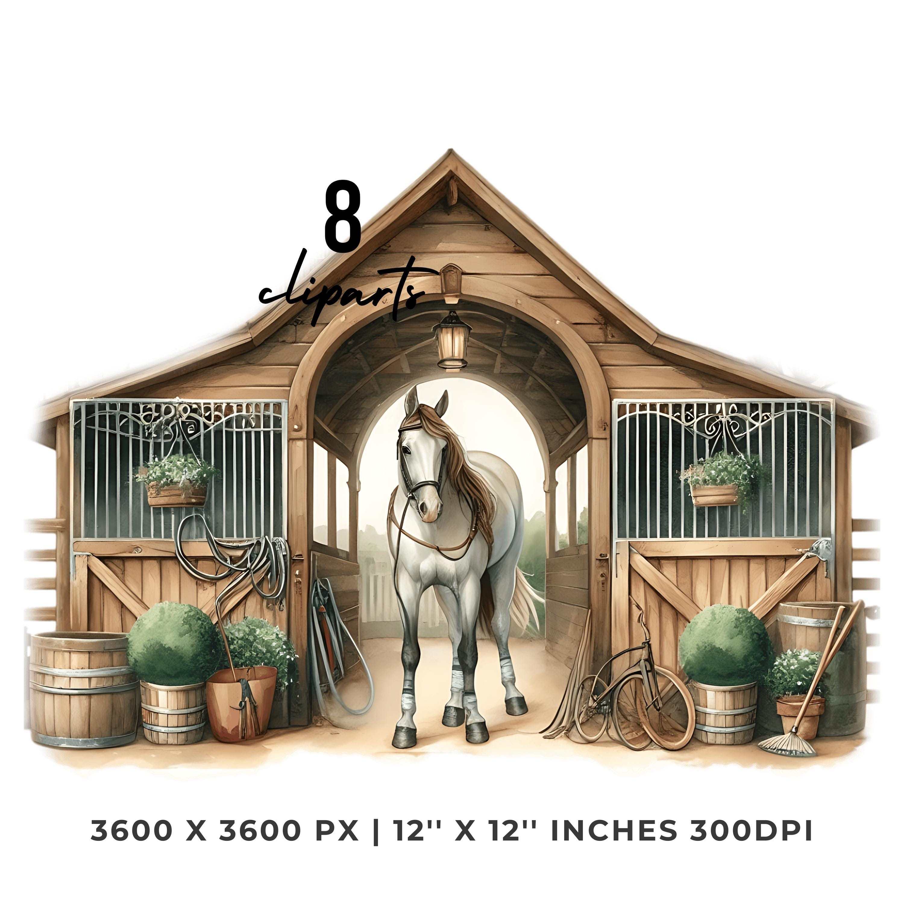 Horse Stable Clipart PNG | 8 Watercolor Horse Stall Clipart Sublimation | Country Boy Things Illustration Commercial use