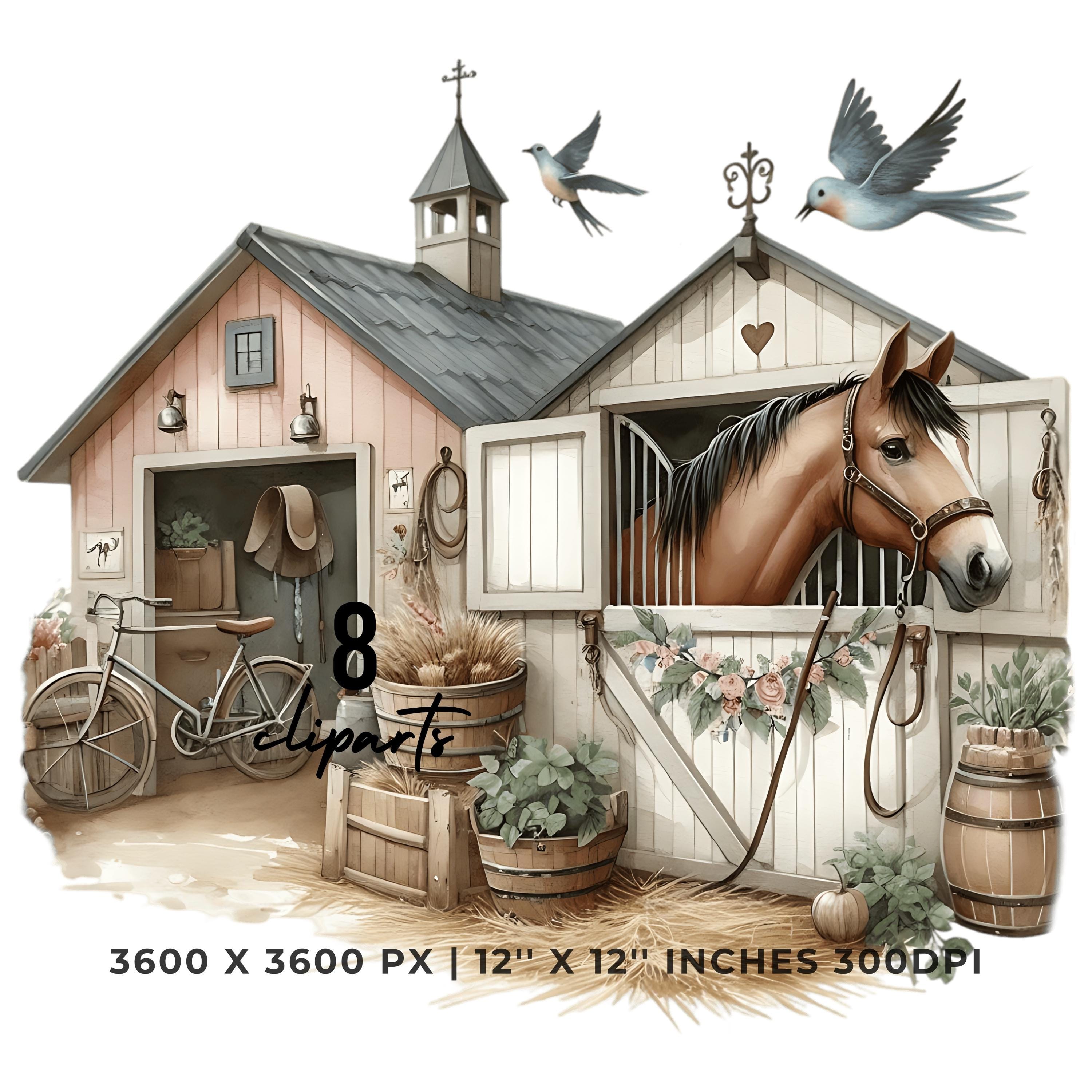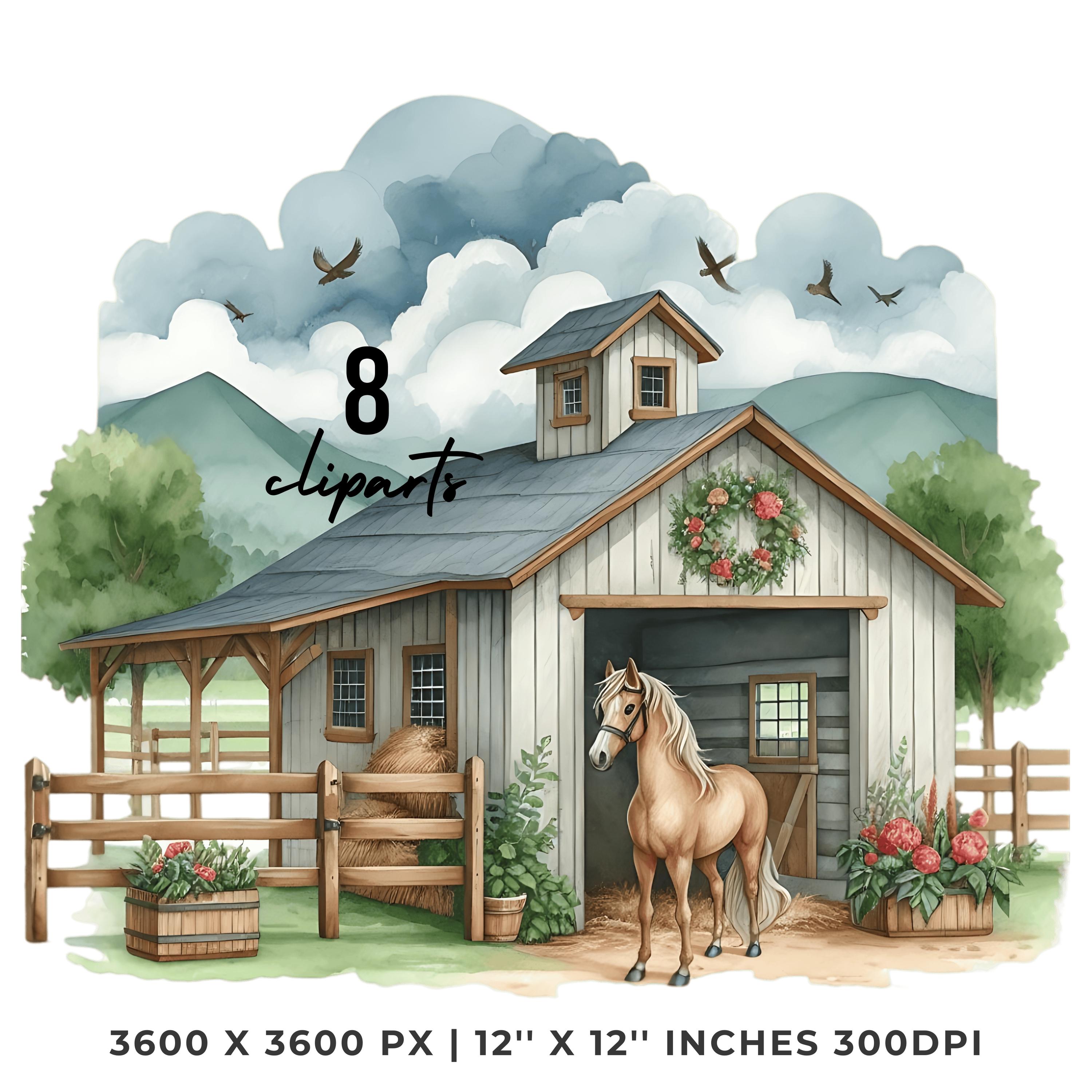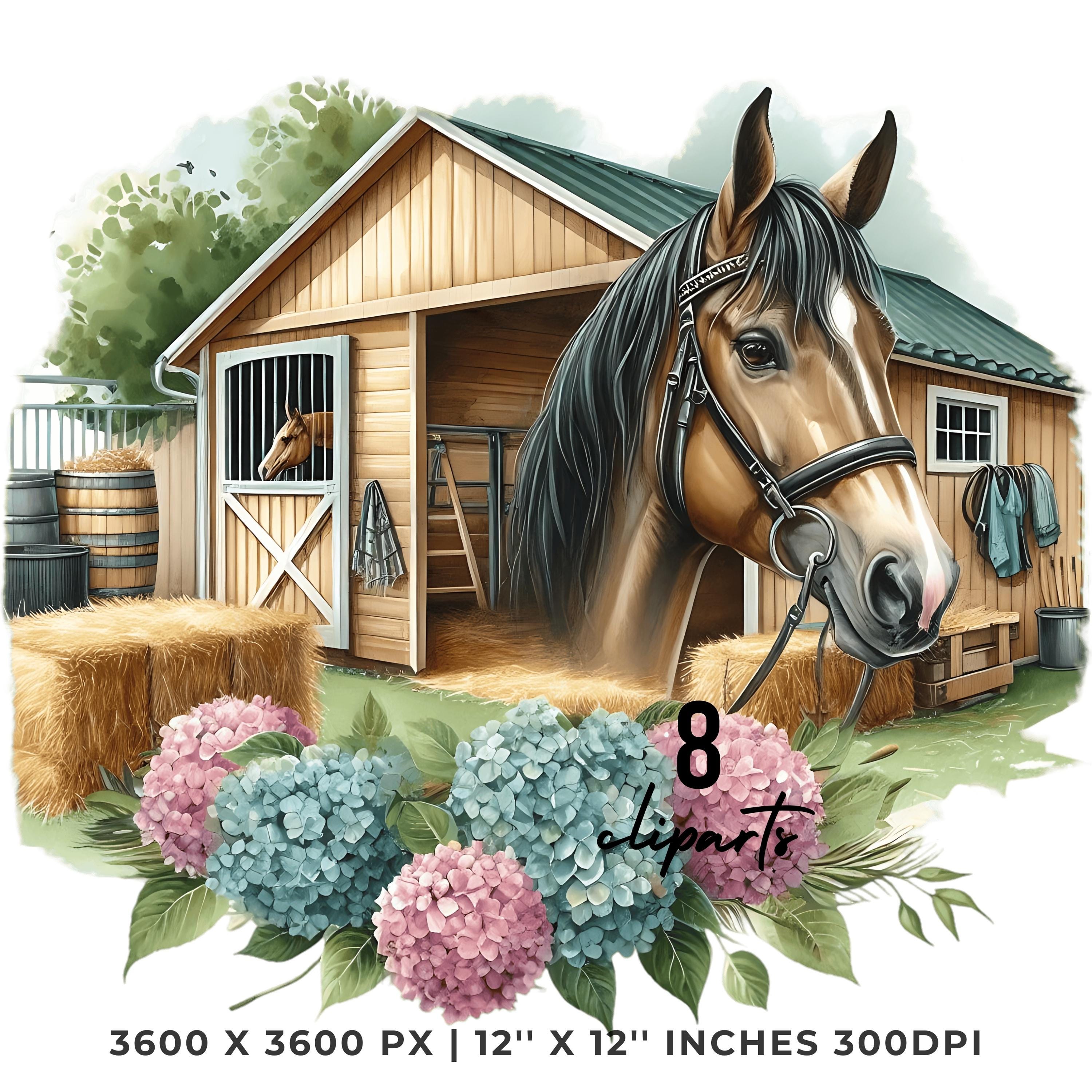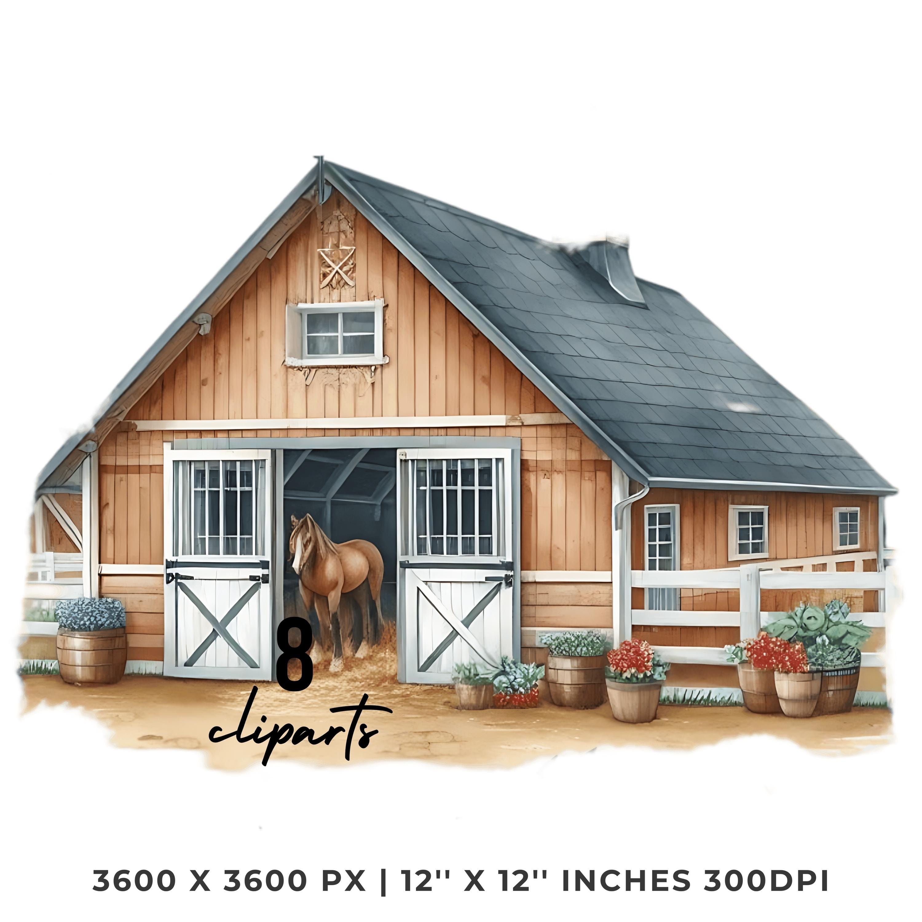 Horse Stable Clipart PNG | 8 Watercolor Horse Stall Clipart Sublimation | Country Boy Things Illustration Commercial use