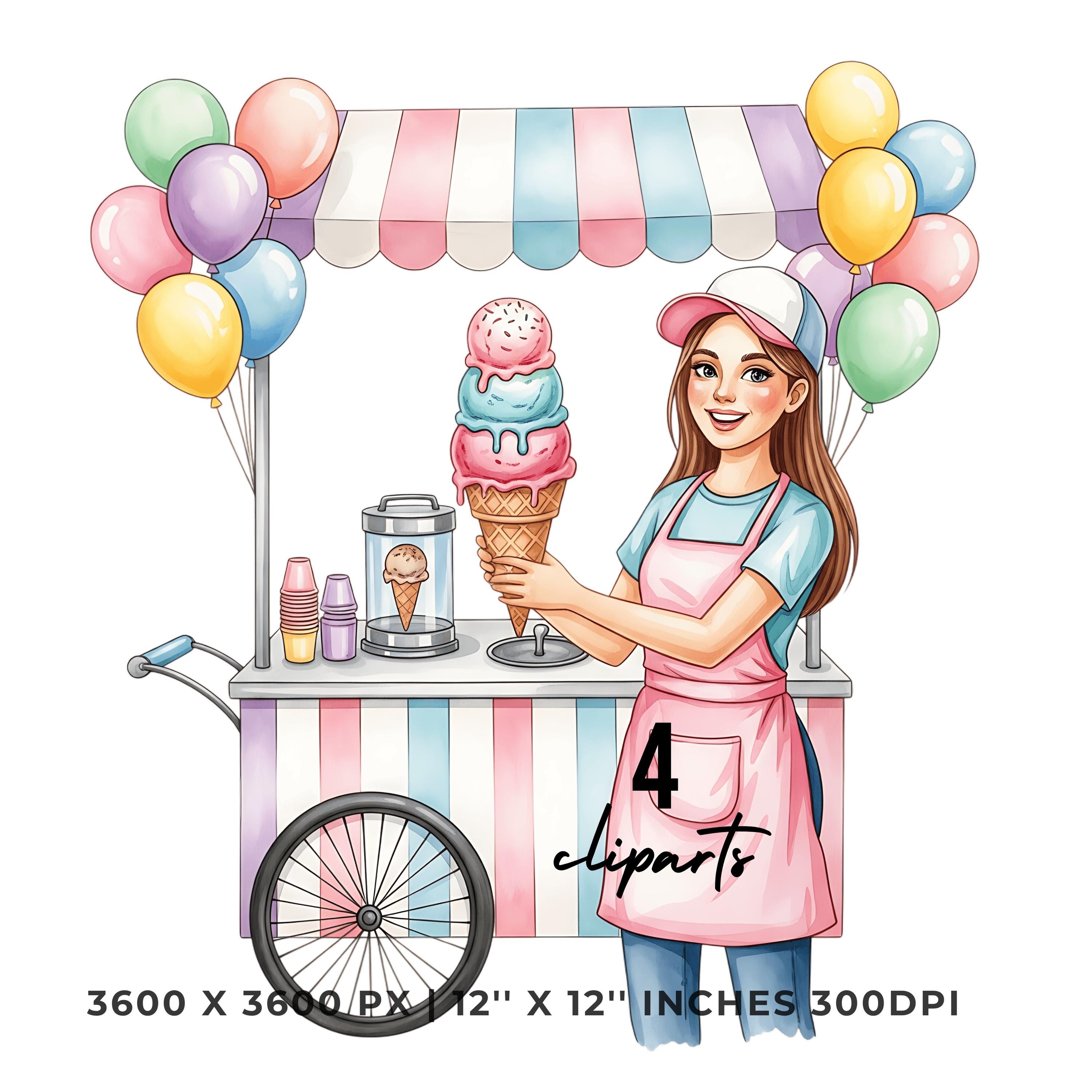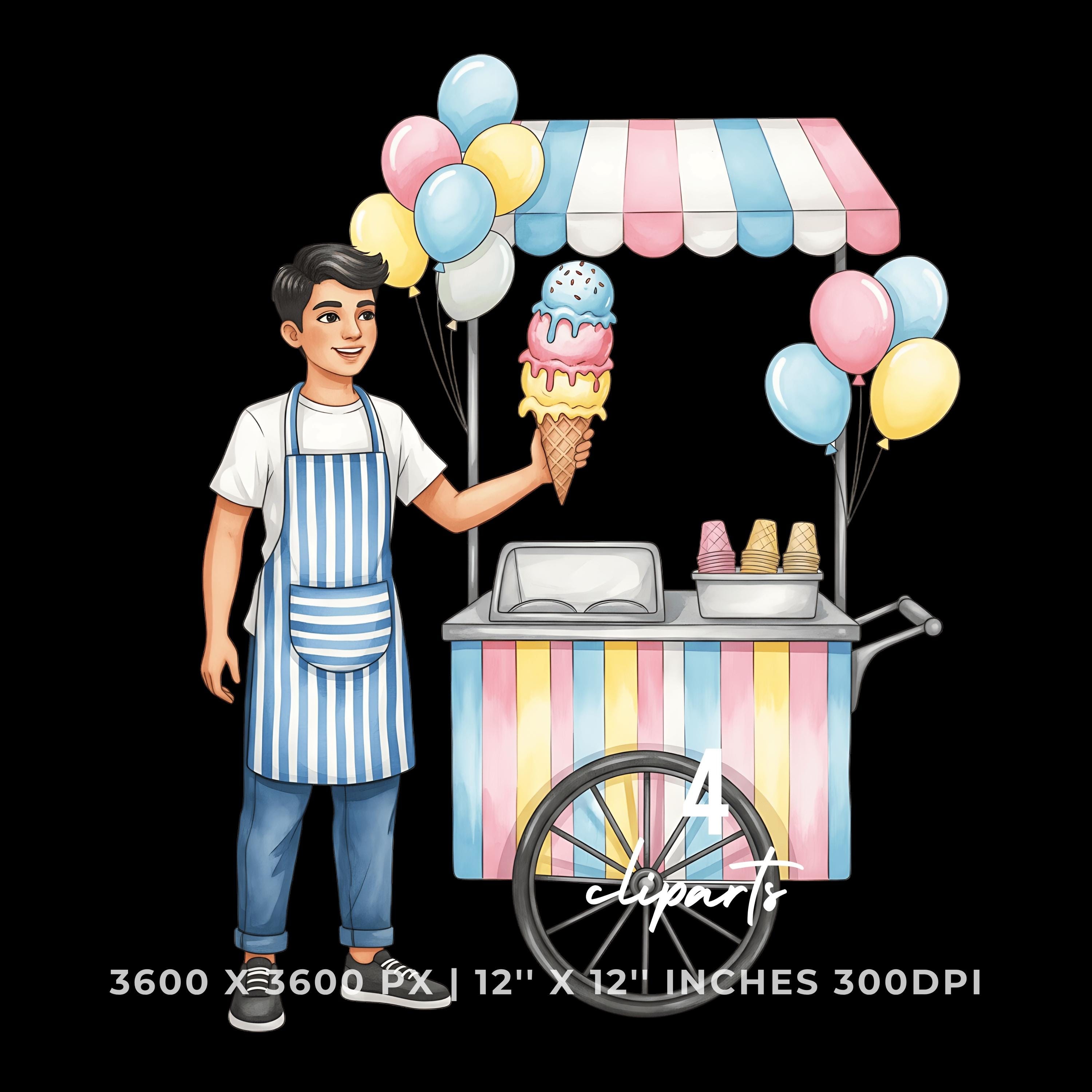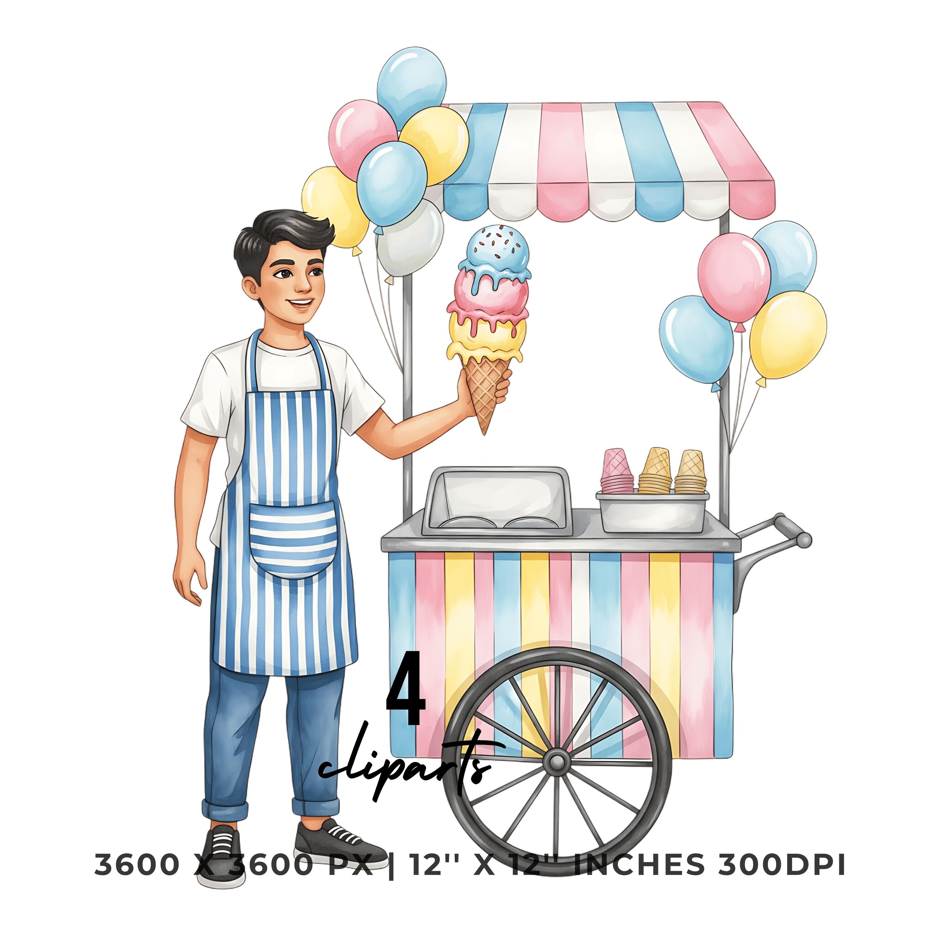 Ice Cream Vendor PNG Clipart | Watercolor Teenage Ice Cream Vendor in an apron | Street Food Summer job 4 PNG – 4 JPG Graphic Commercial Use – Instant Digital Download - TumblersGalaxy