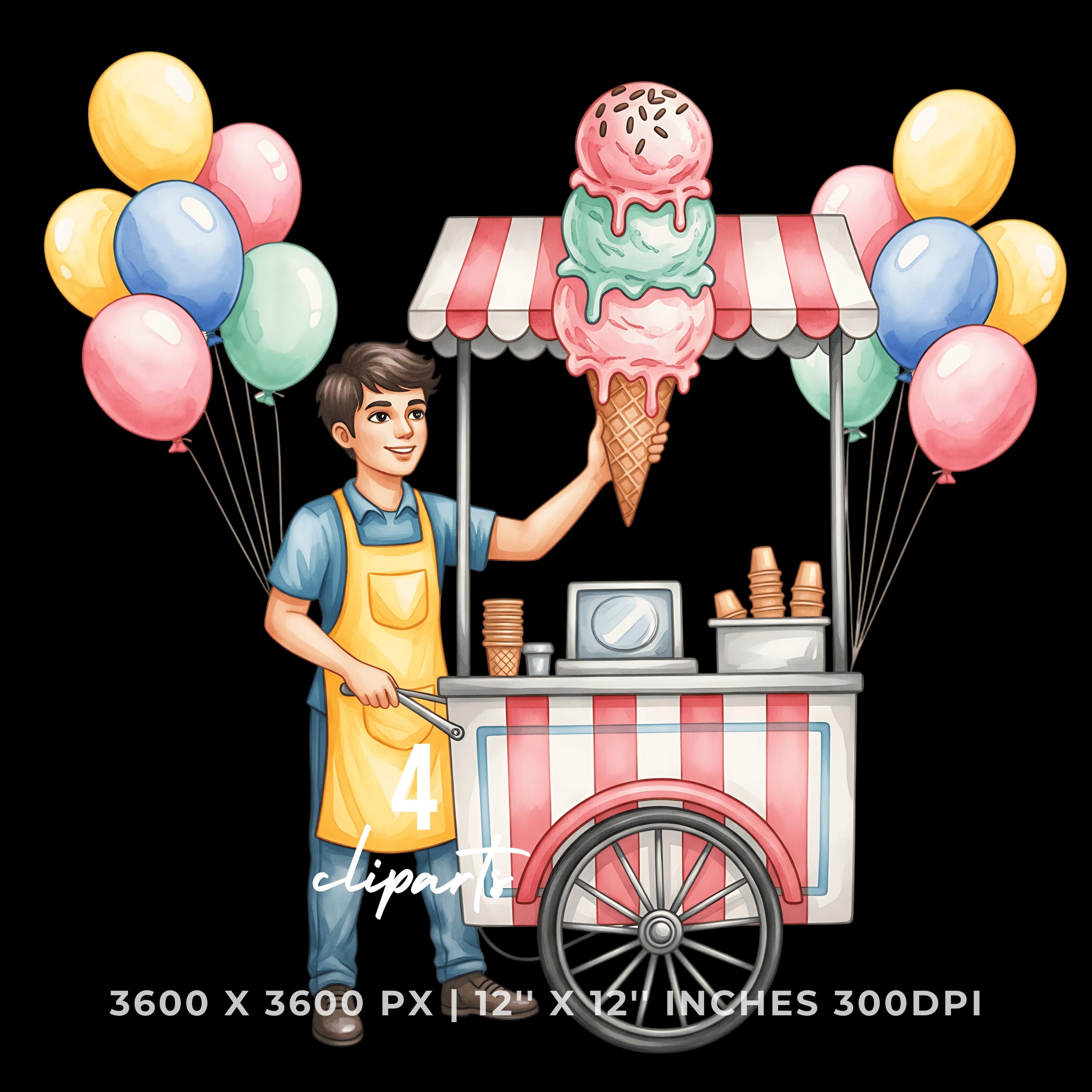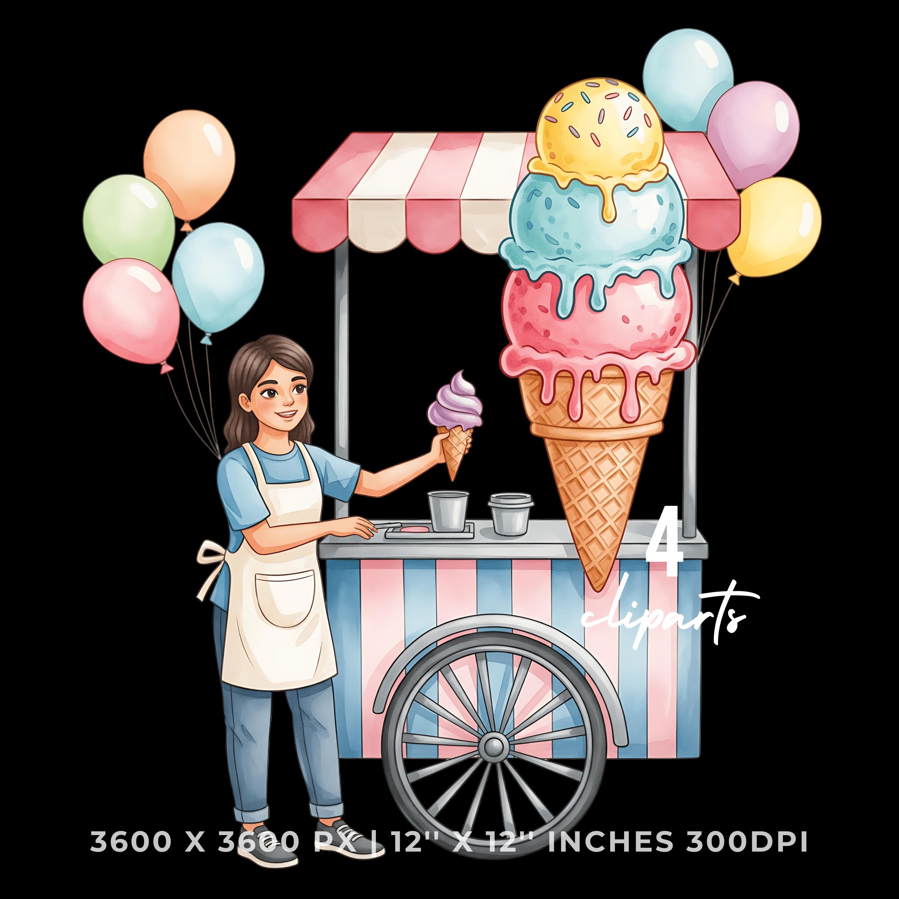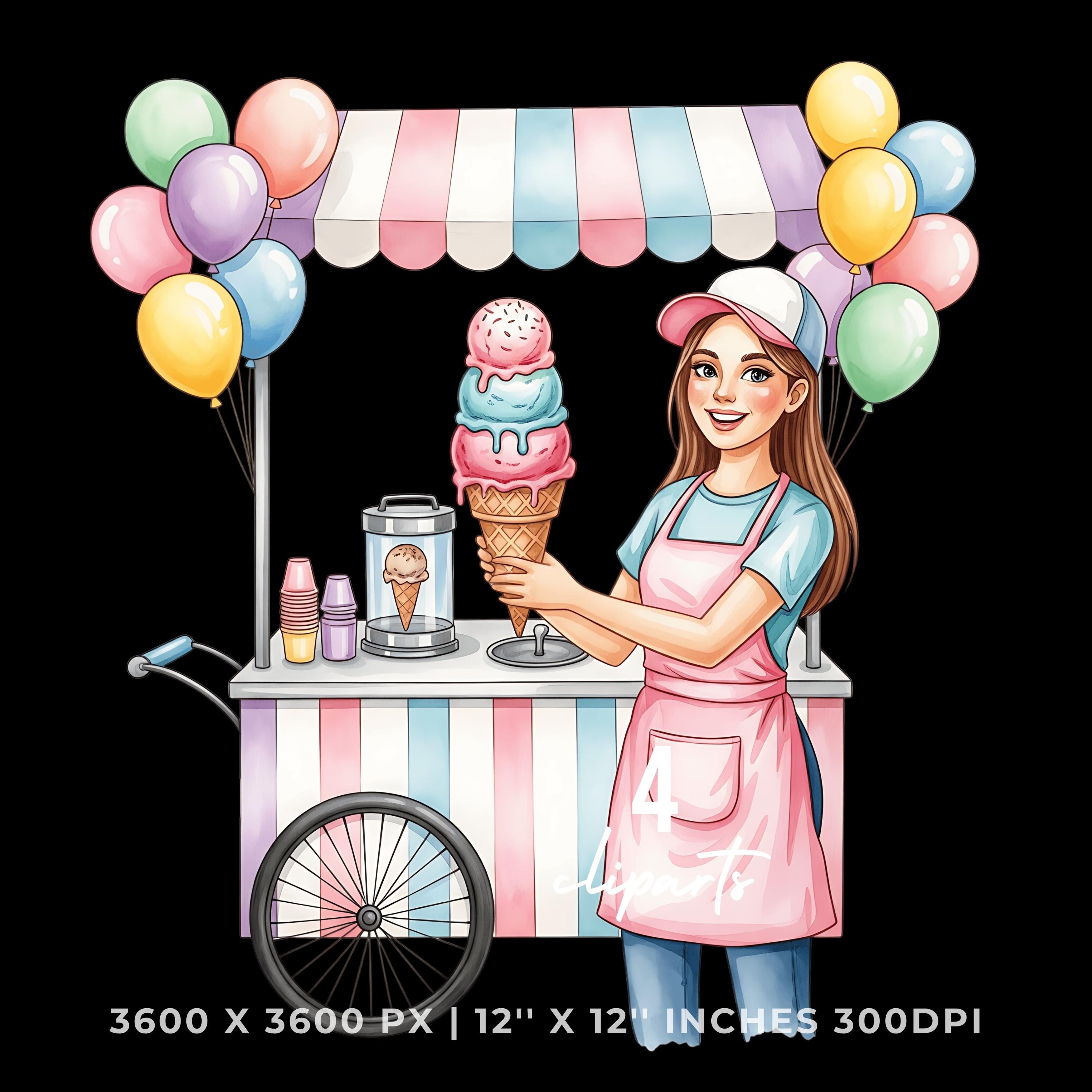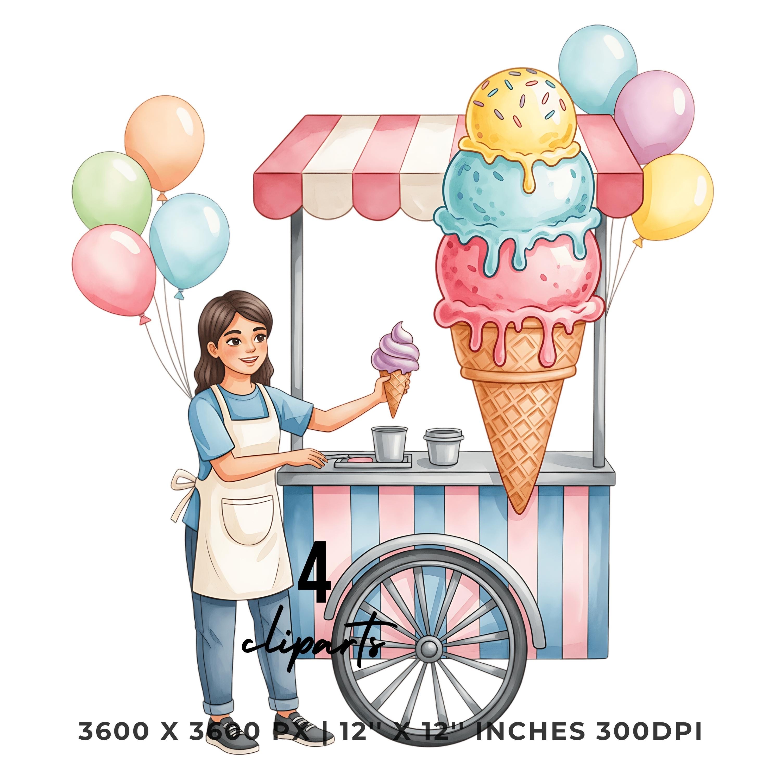 Ice Cream Vendor PNG Clipart | Watercolor Teenage Ice Cream Vendor in an apron | Street Food Summer job 4 PNG – 4 JPG Graphic Commercial Use – Instant Digital Download - TumblersGalaxy