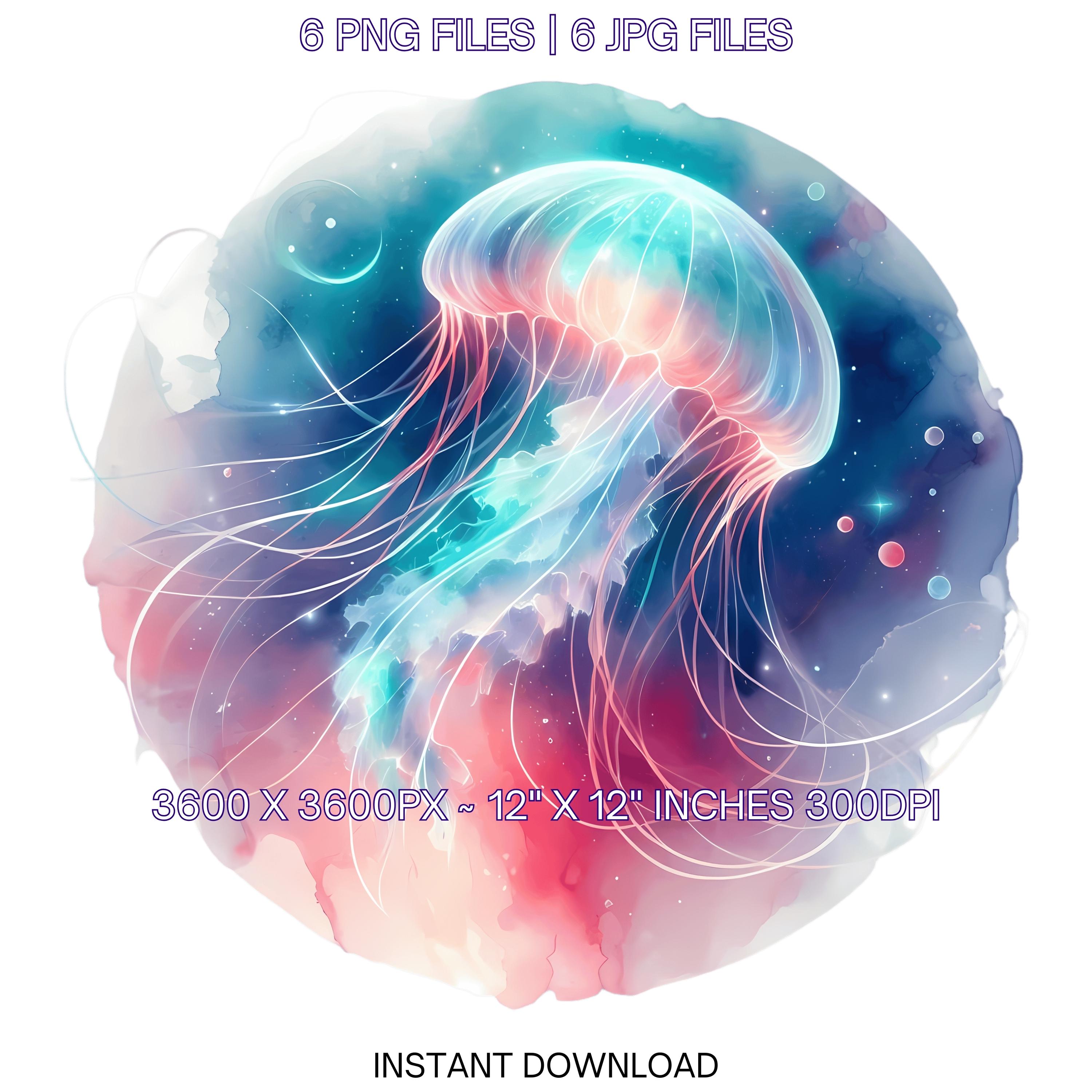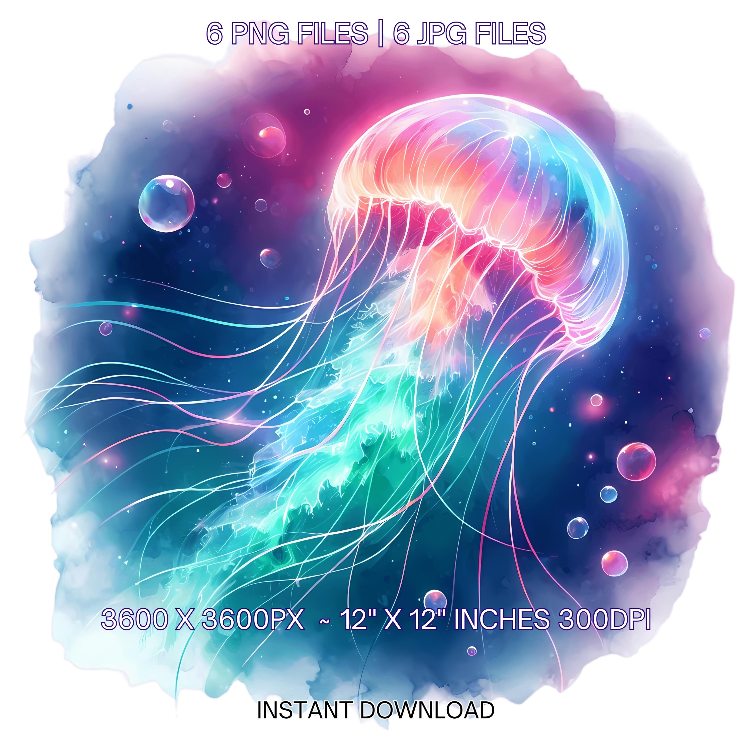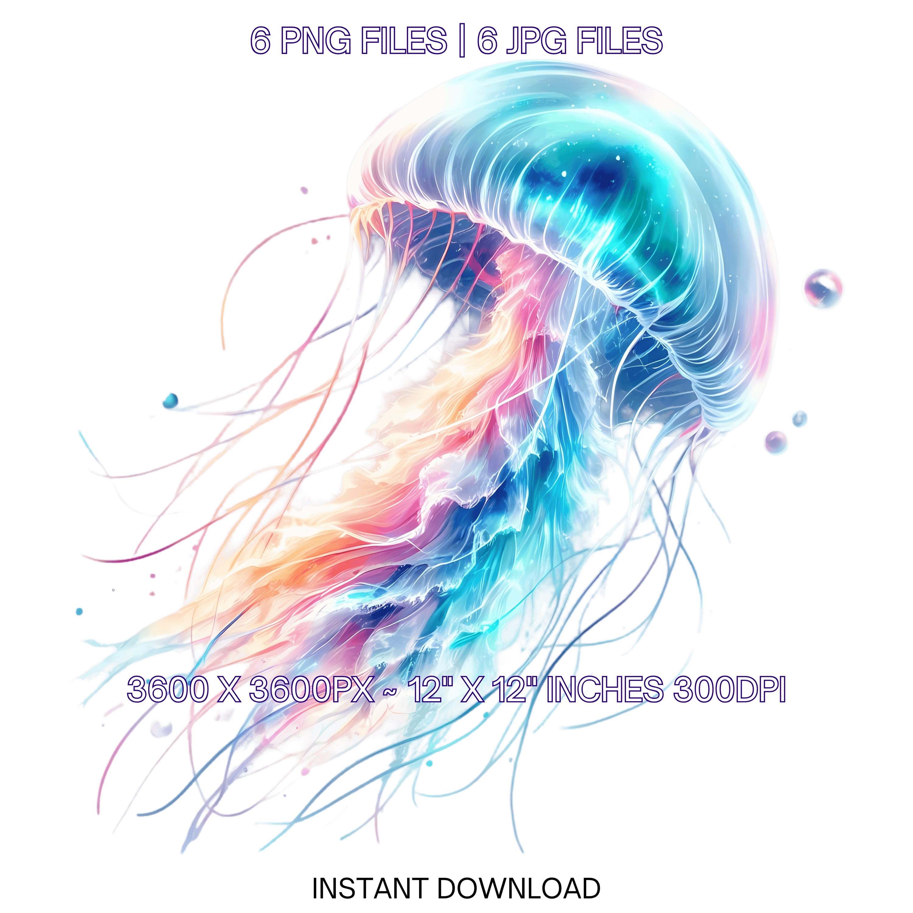 Jellyfish Clipart PNG | 6 Watercolor Jellyfish floating Gracefully in neon-colored currents & dreamy underwater | Sublimation Commercial Use is an eye-catching, high-resolution digital asset designed for creators, crafters, teachers, and small business owners looking to elevate their visuals.