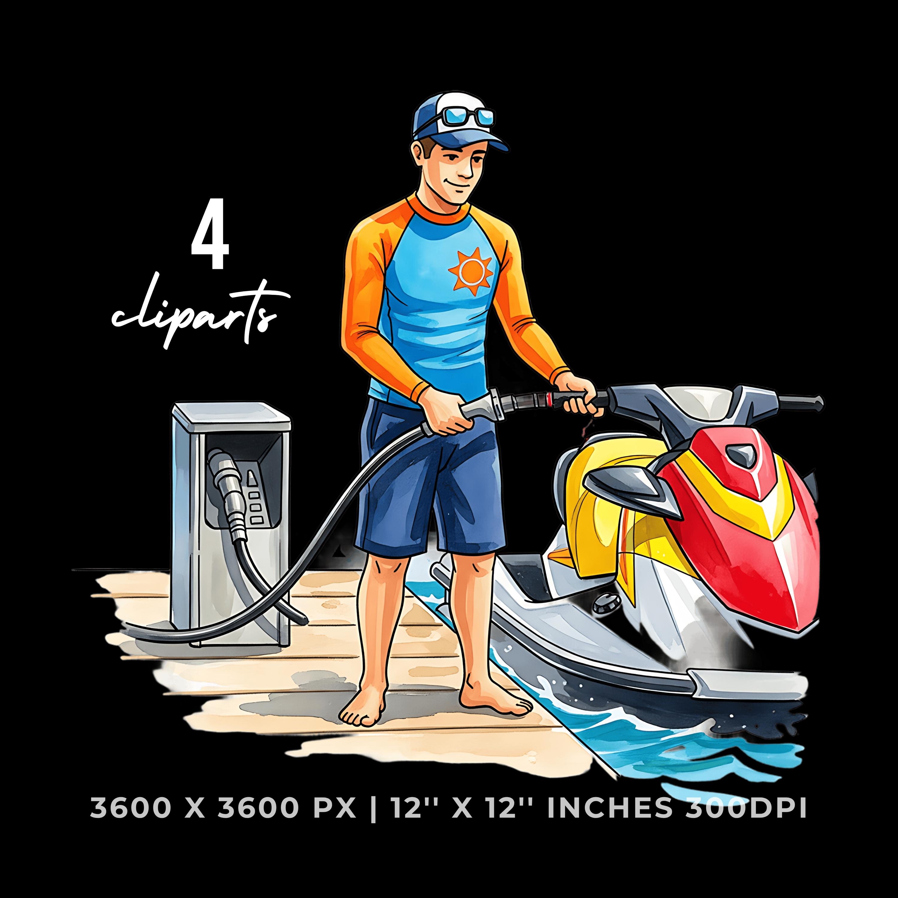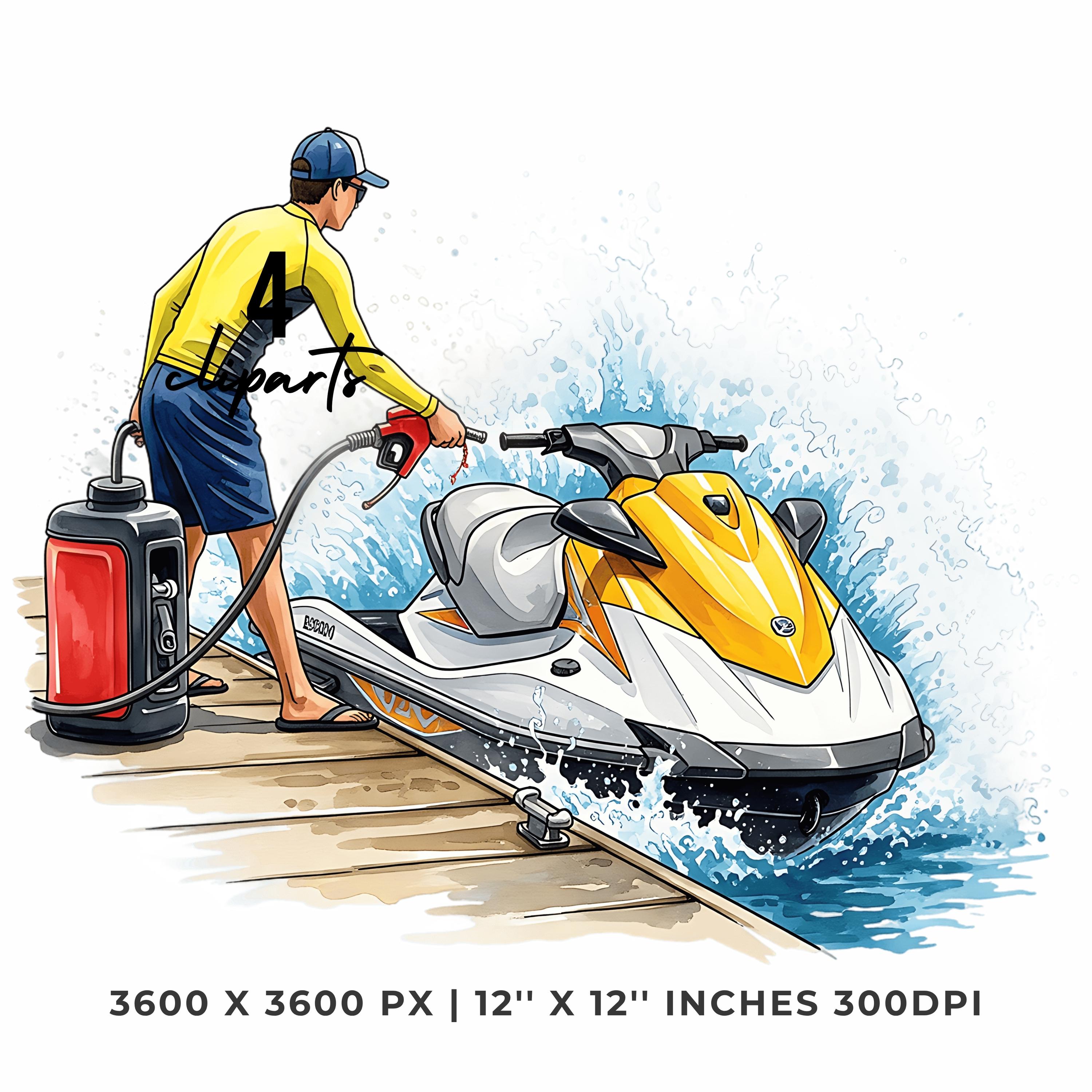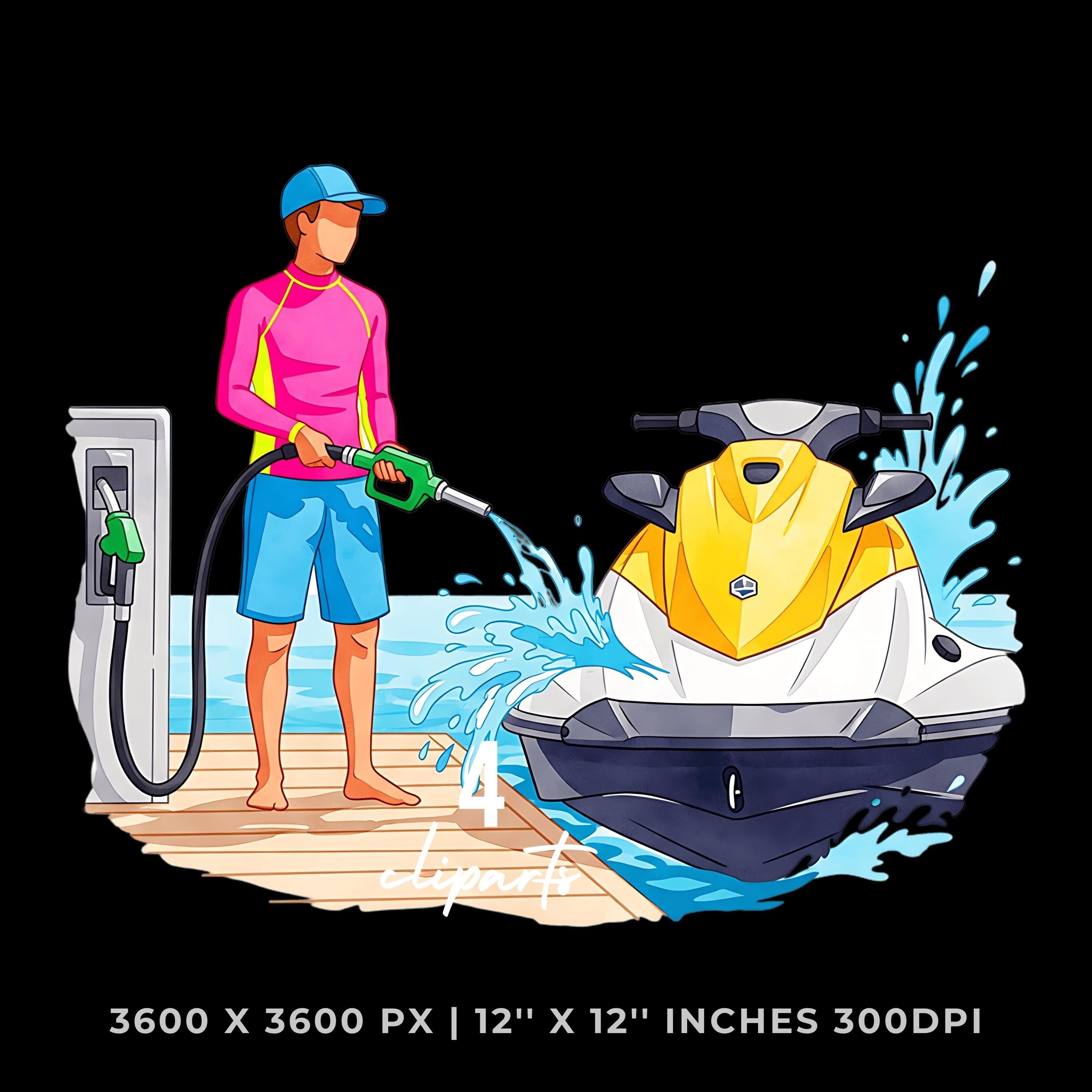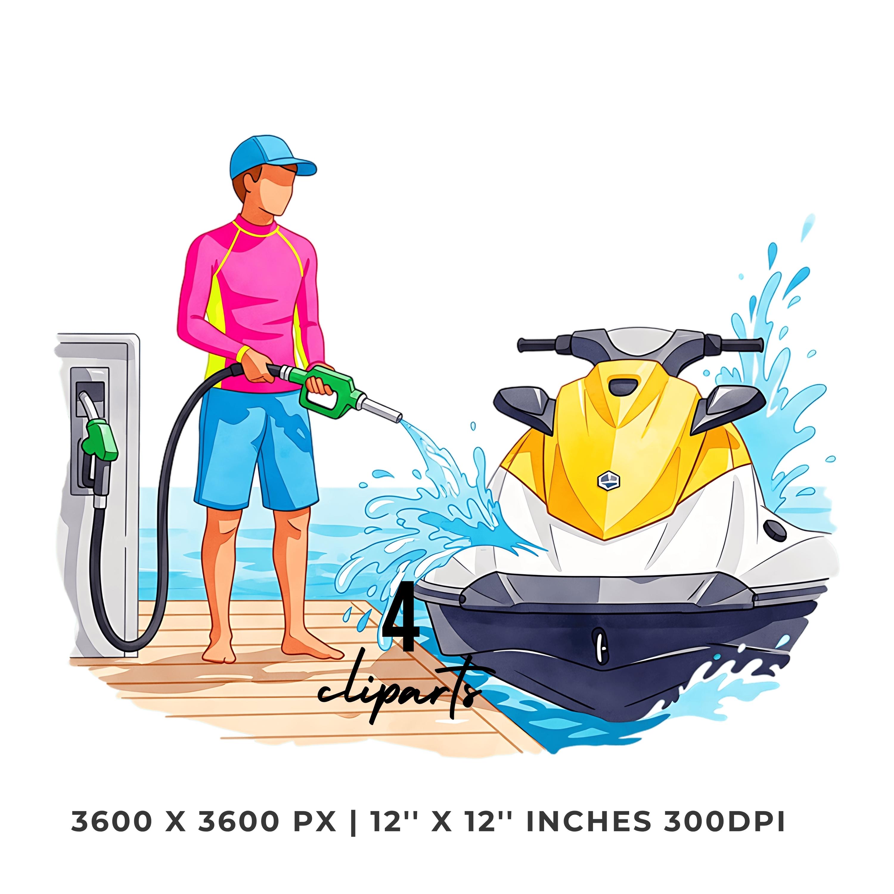 Jet Ski Fueling Clipart | Summer Water Sport | Jet Ski Rental Art | 4 PNG & 4 JPG | Sublimation Design | 12″x12″ 300DPI Graphic Commercial Use