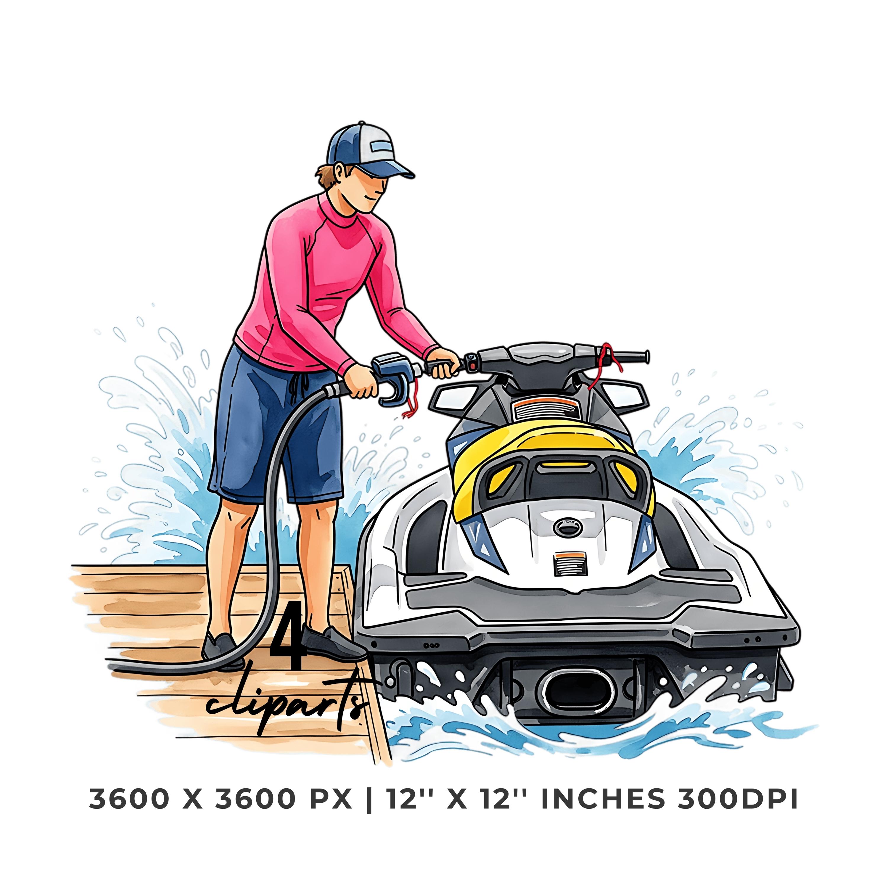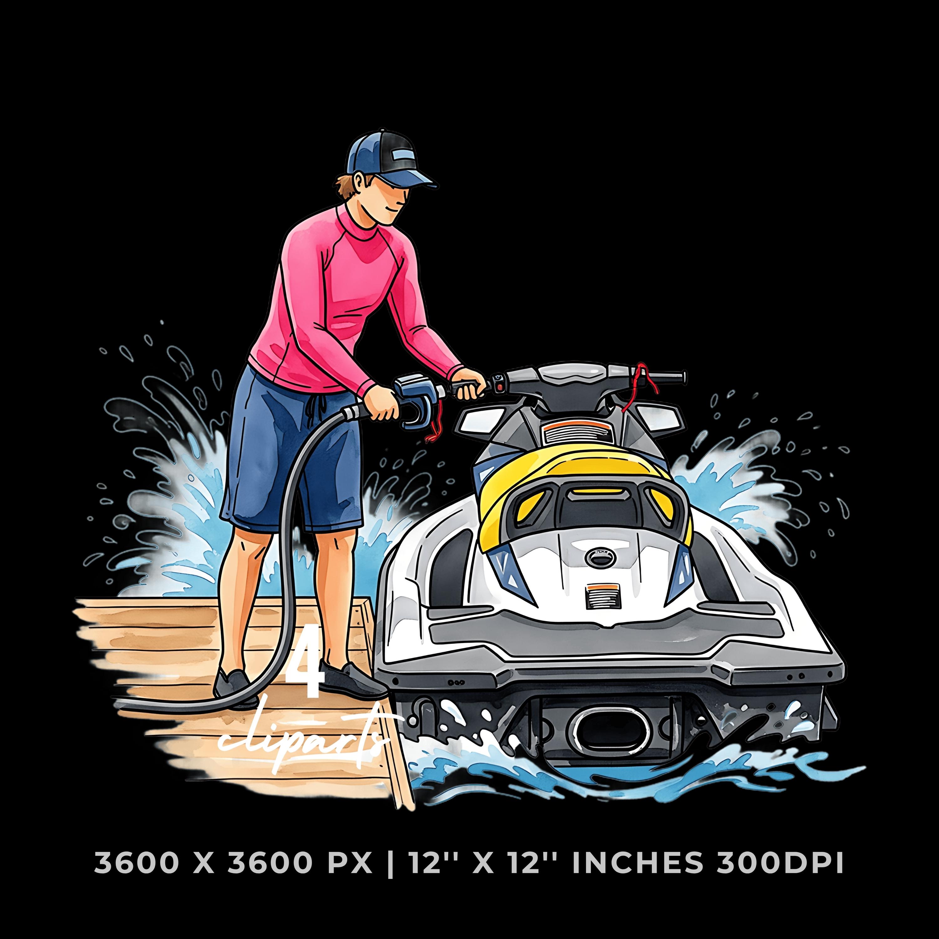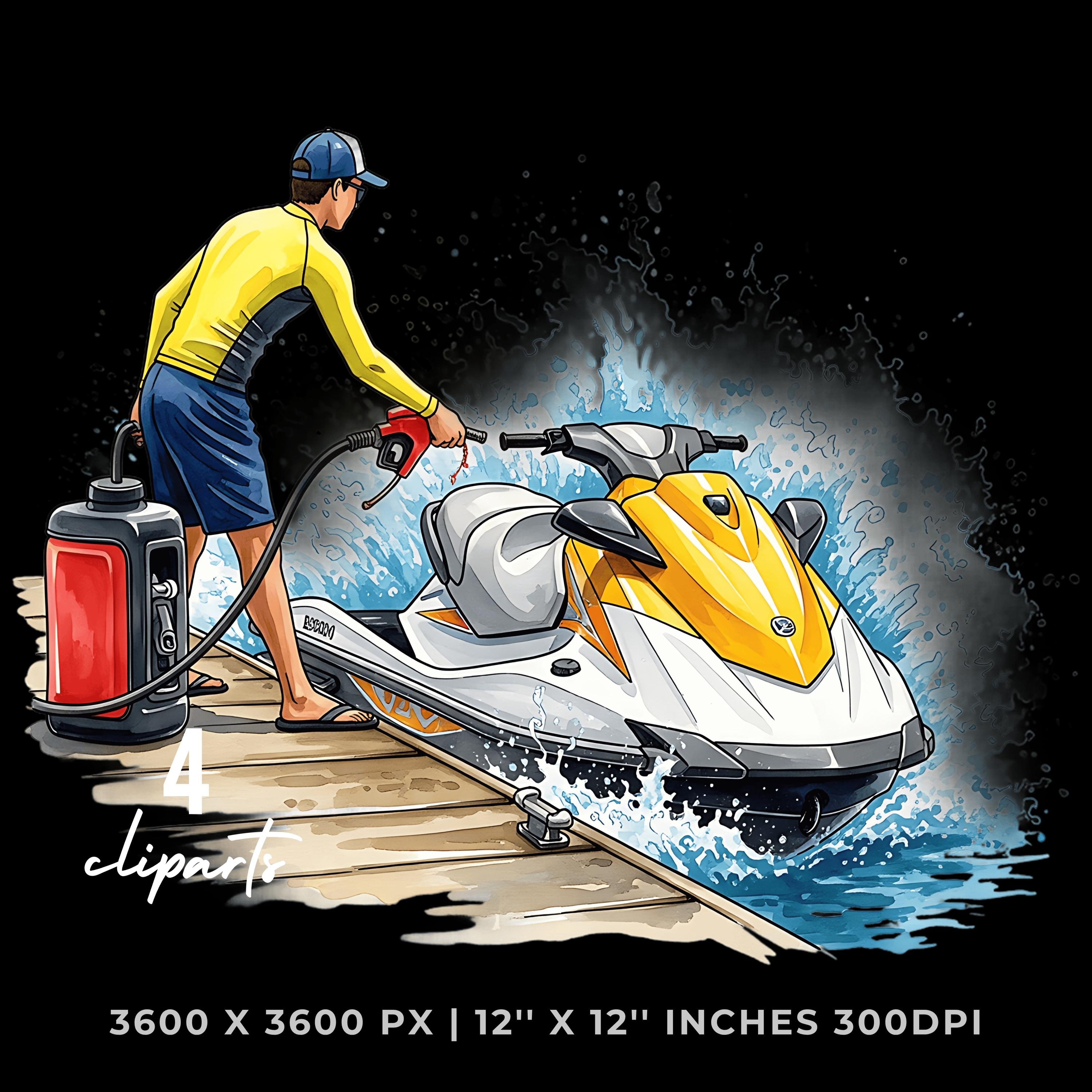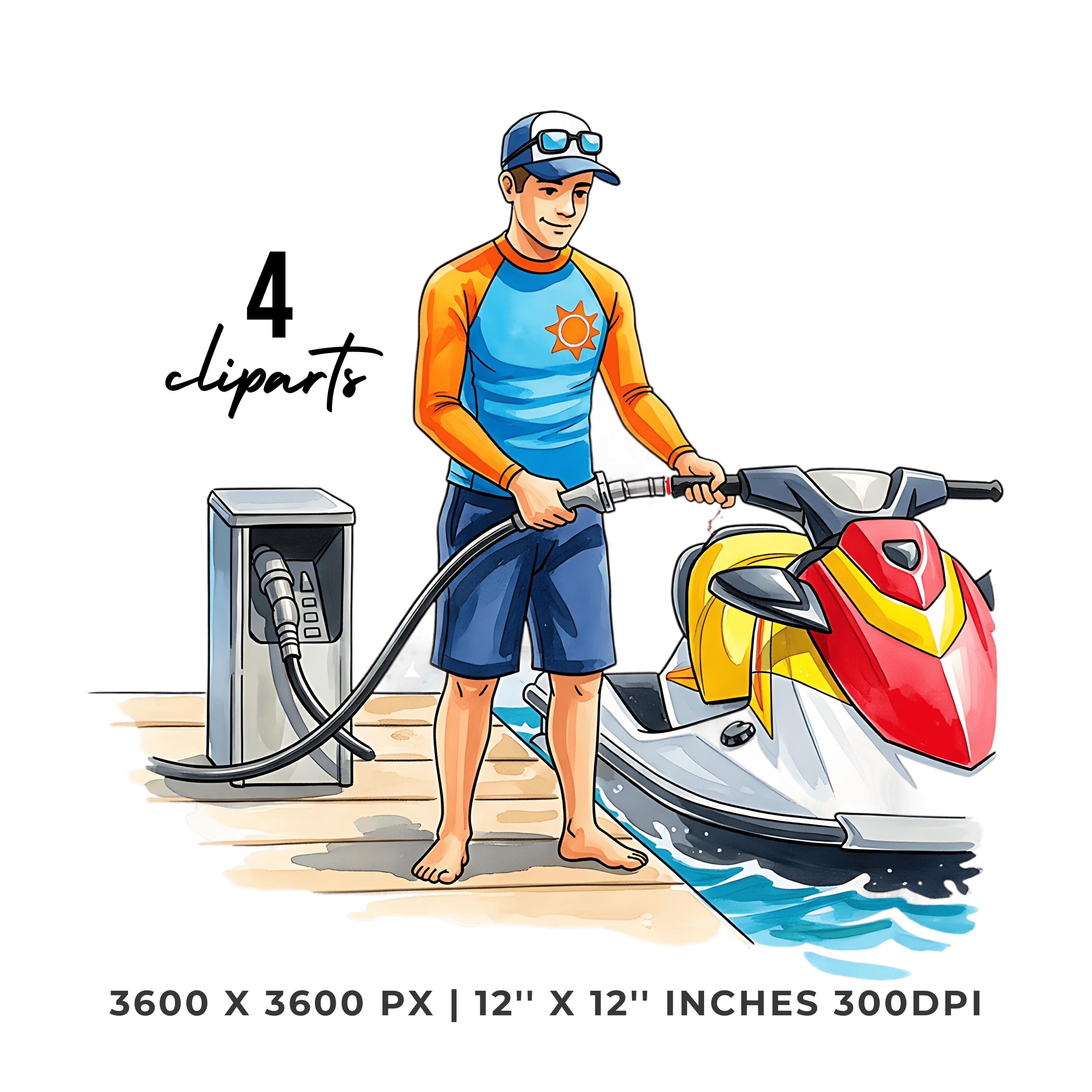 Jet Ski Fueling Clipart | Summer Water Sport | Jet Ski Rental Art | 4 PNG & 4 JPG | Sublimation Design | 12″x12″ 300DPI Graphic Commercial Use