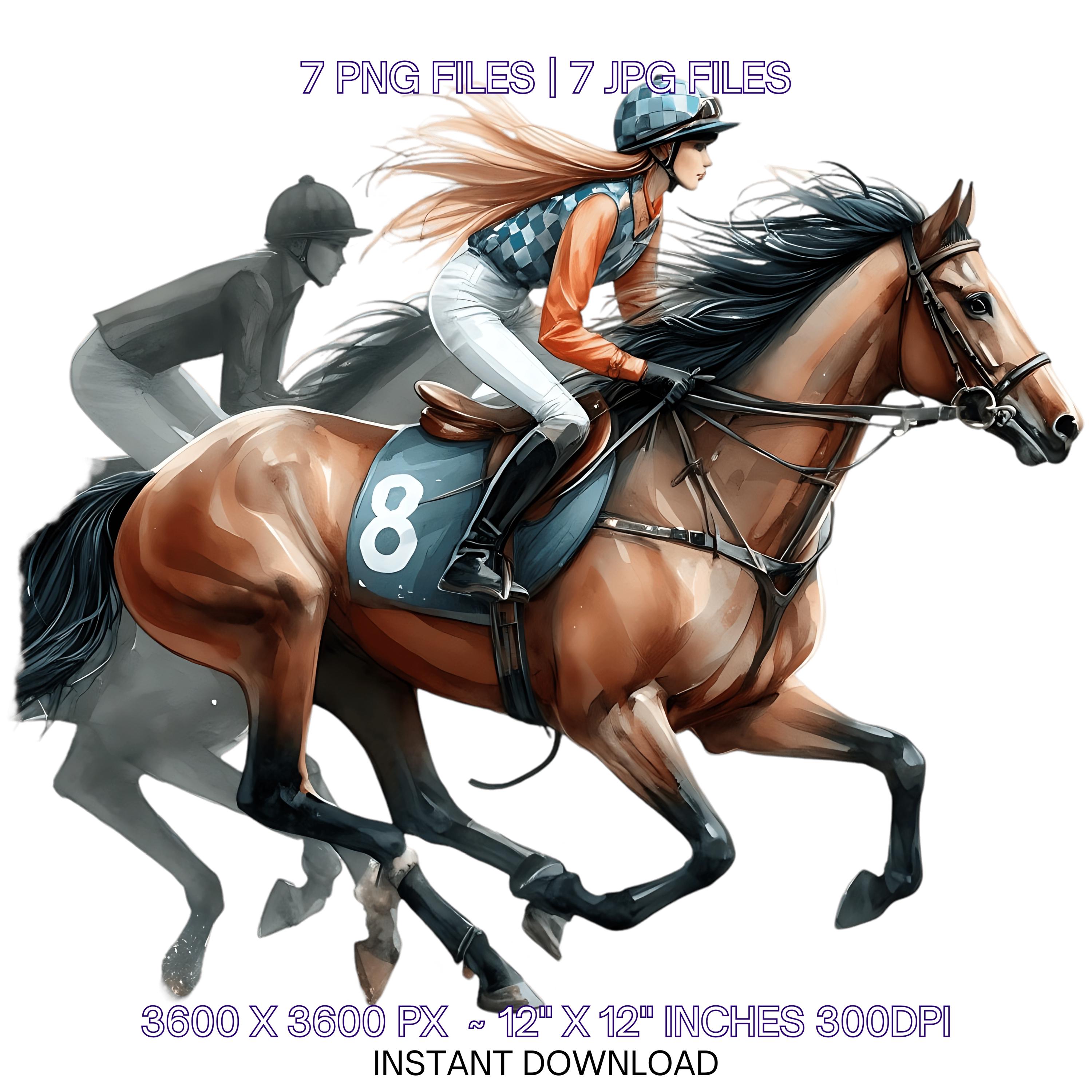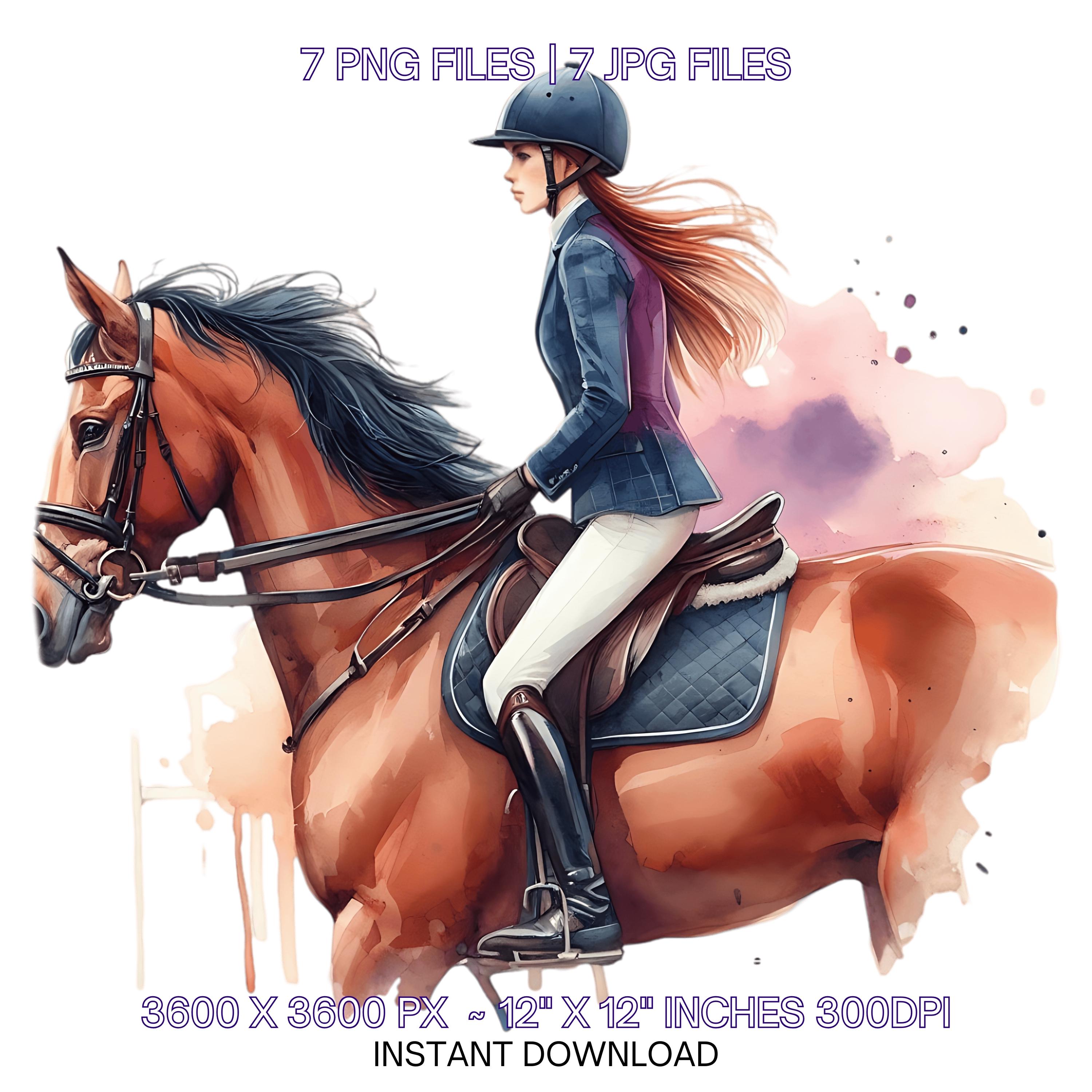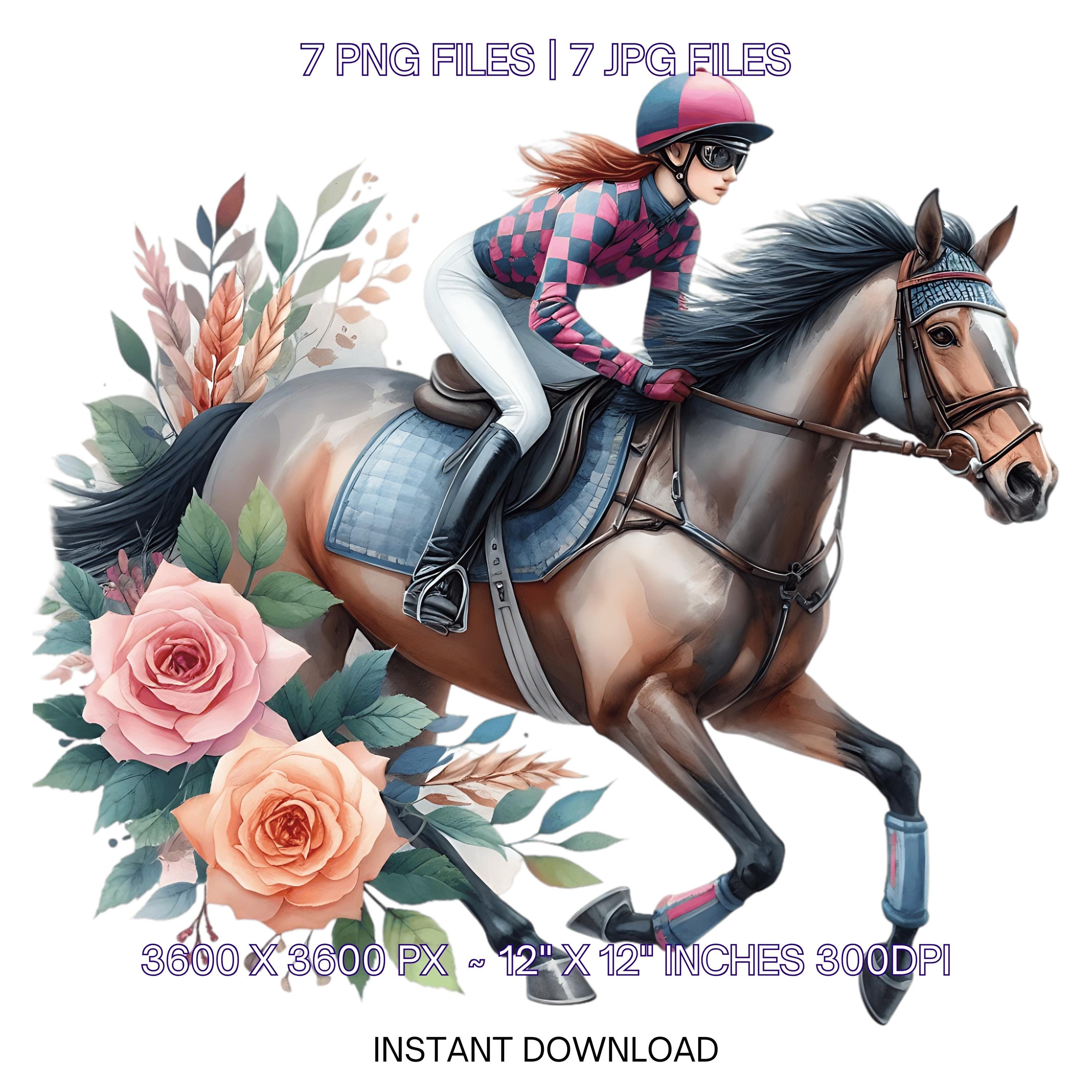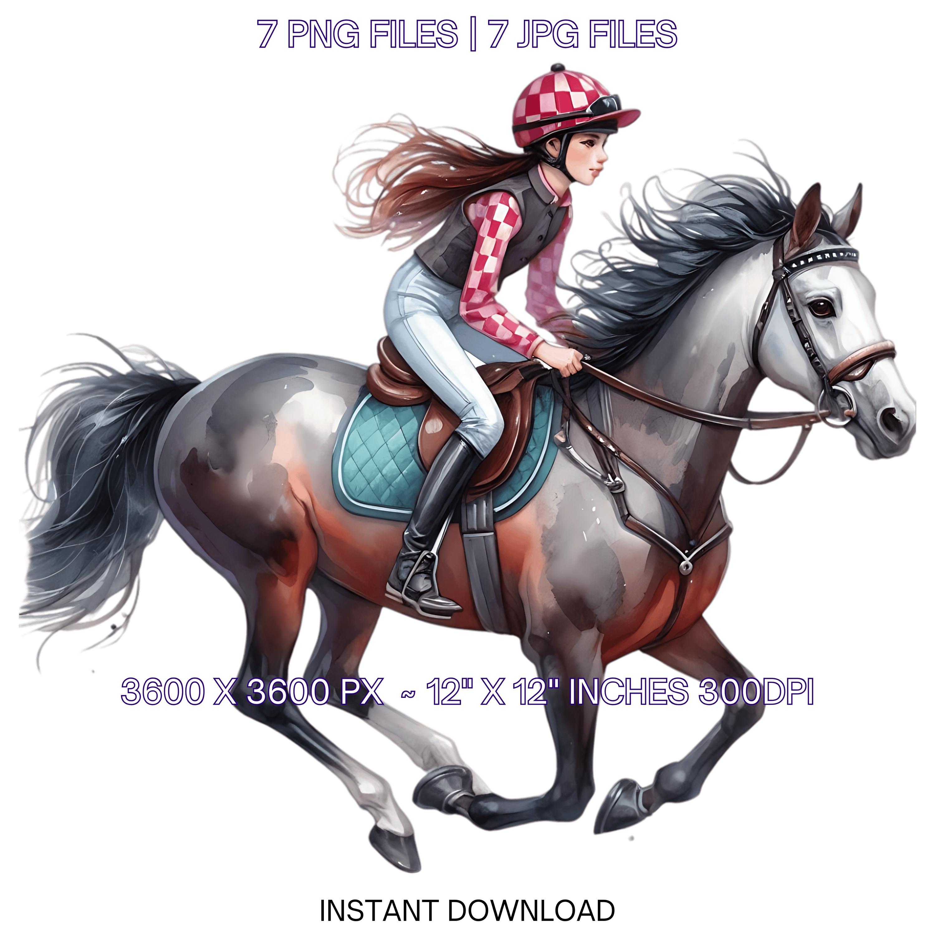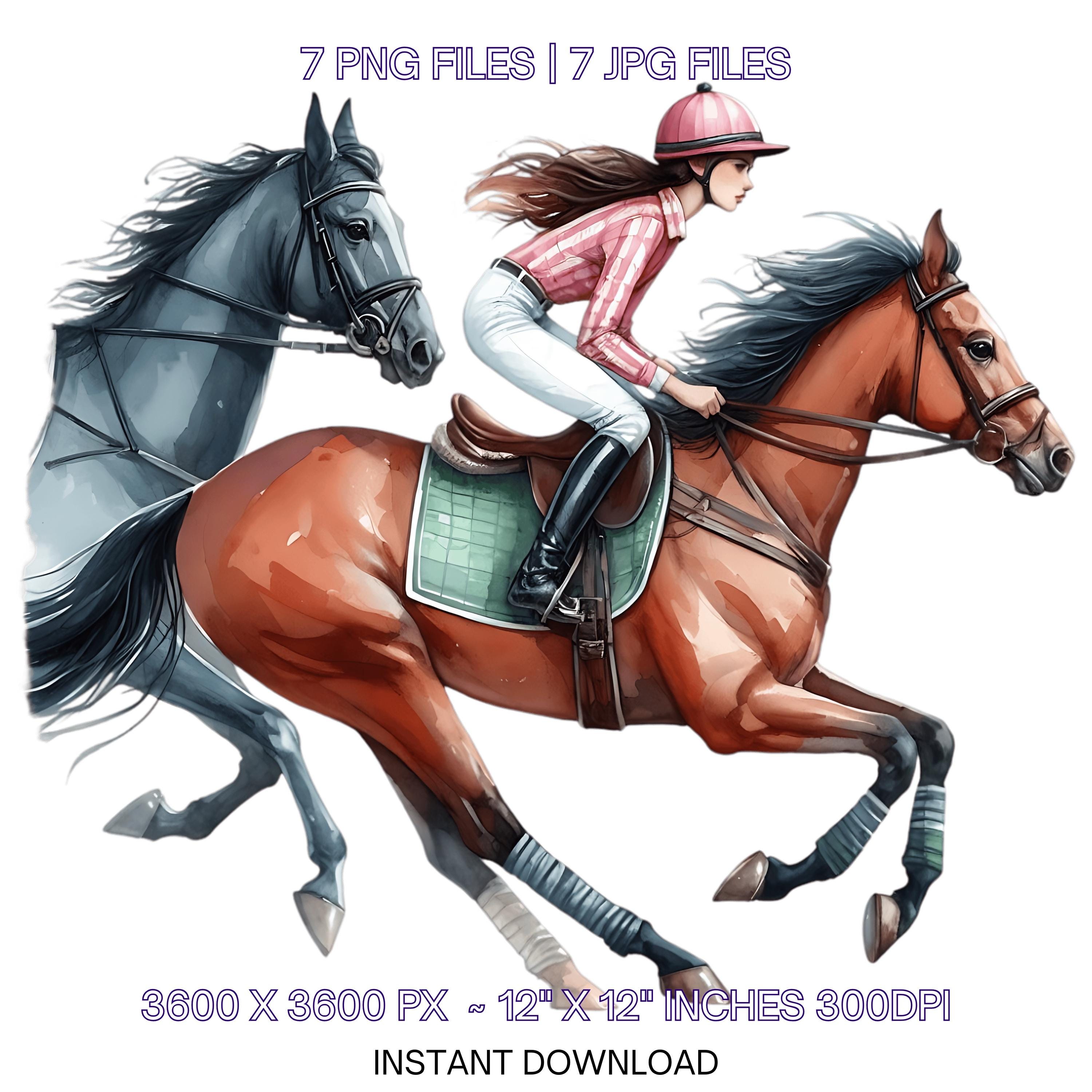 Jockey Girl Horseback Riding Clipart PNG | 7 Watercolor Equestrian Sport Female Jockey | Sublimation Illustration Design | Commercial use – Instant Digital Download - TumblersGalaxy