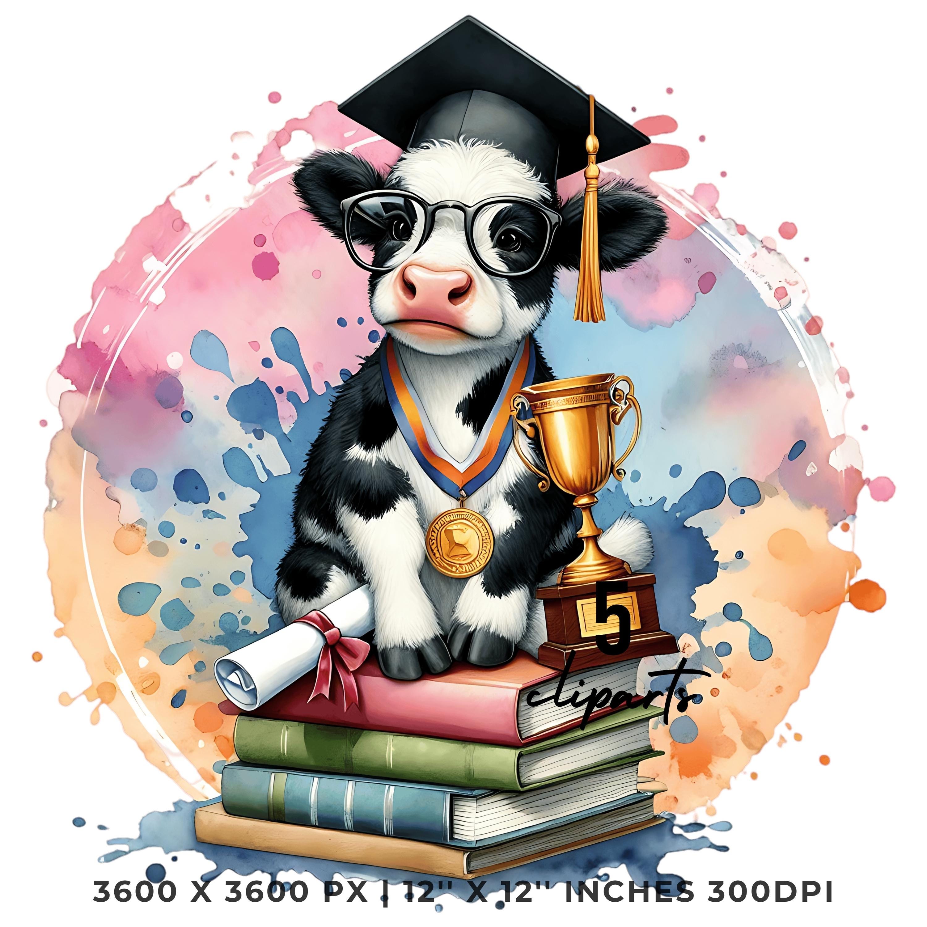 Kindergarten Cow wearing Cap holding a Diploma PNG | Graduation Cow Clipart | Grad Student | Graduate Kid |6 JPG-PNG Commercial Use is an eye-catching, high-resolution digital asset designed for creators, crafters, teachers, and small business owners looking to elevate their visuals.