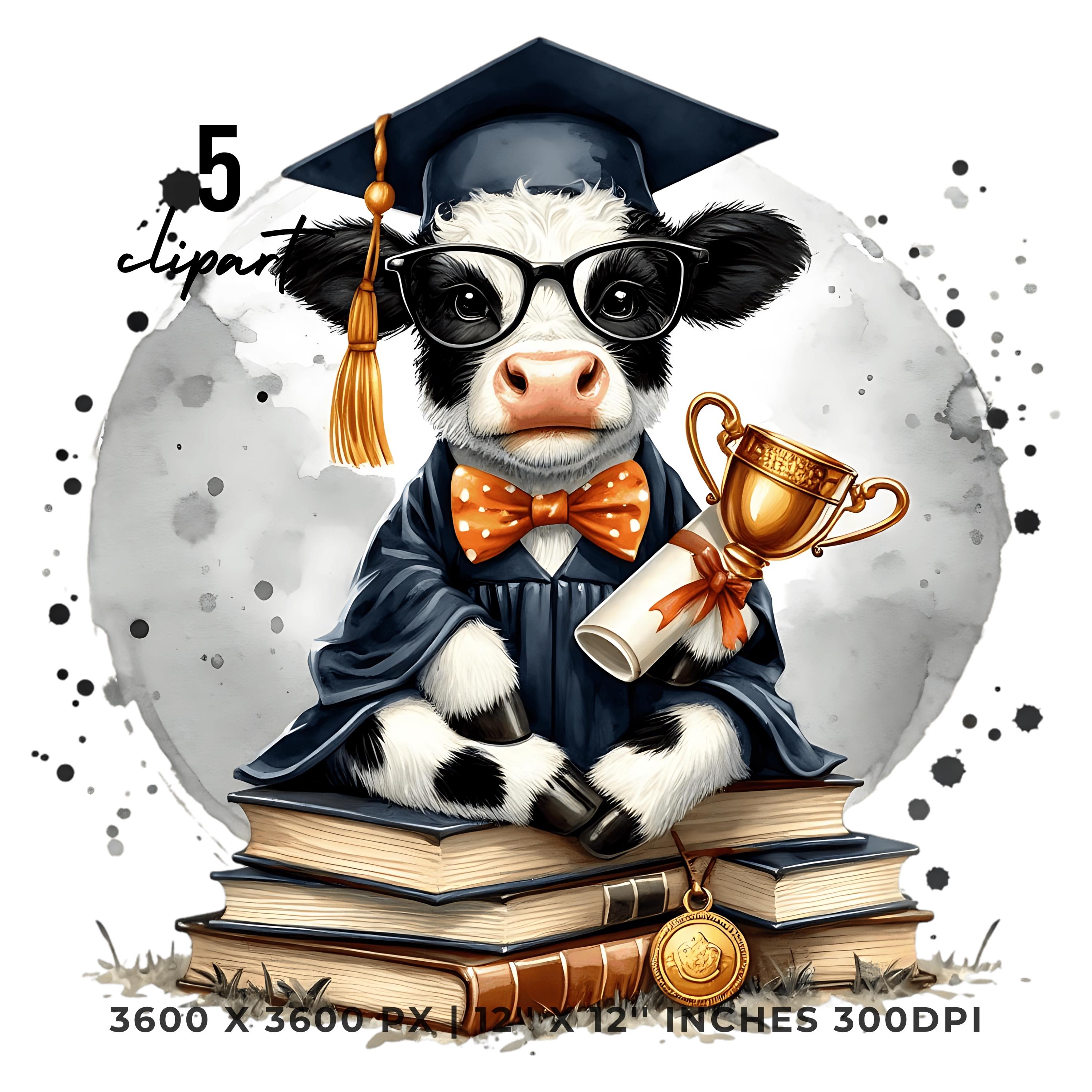 Black&White Cow Graduation Clipart PNG_01-05_POST