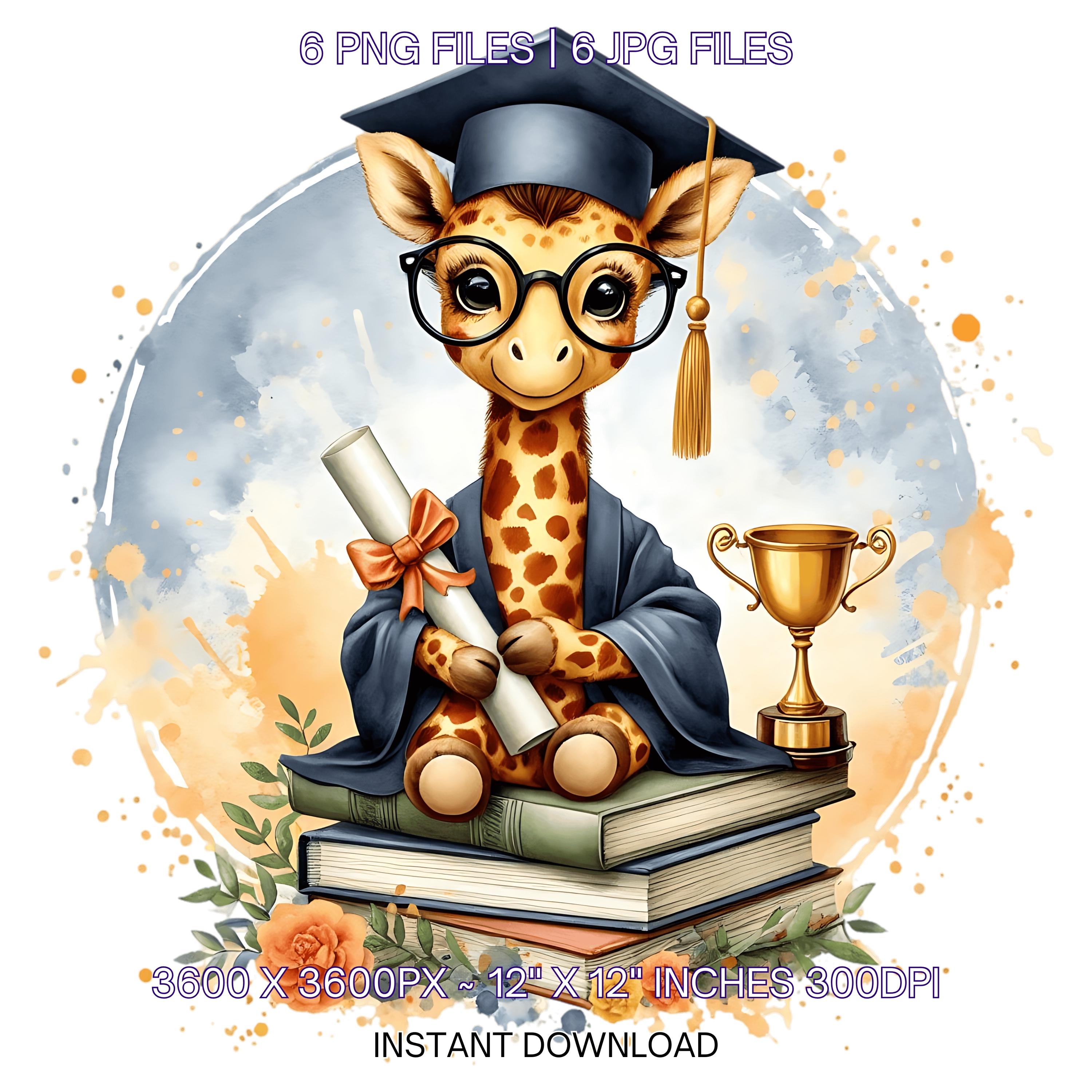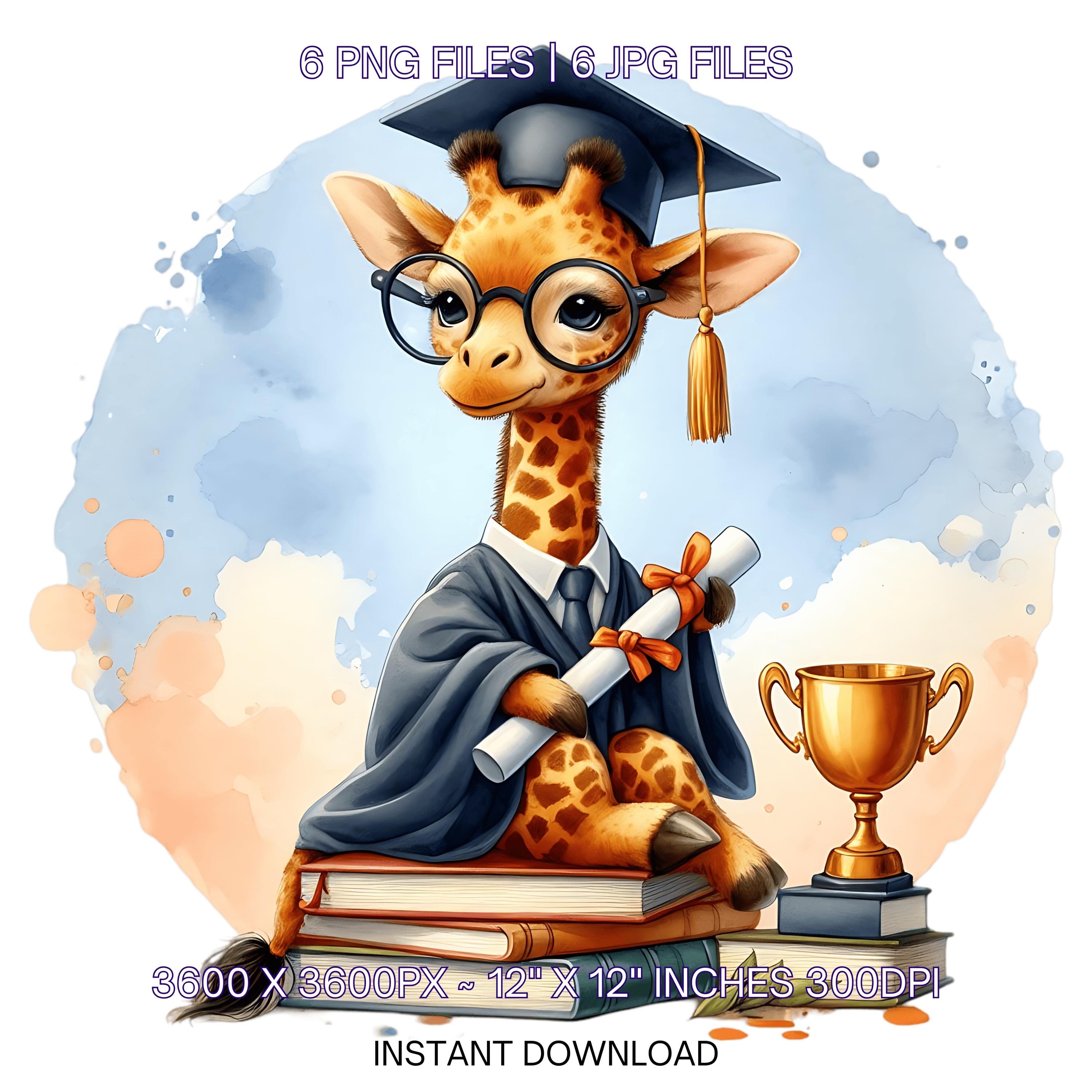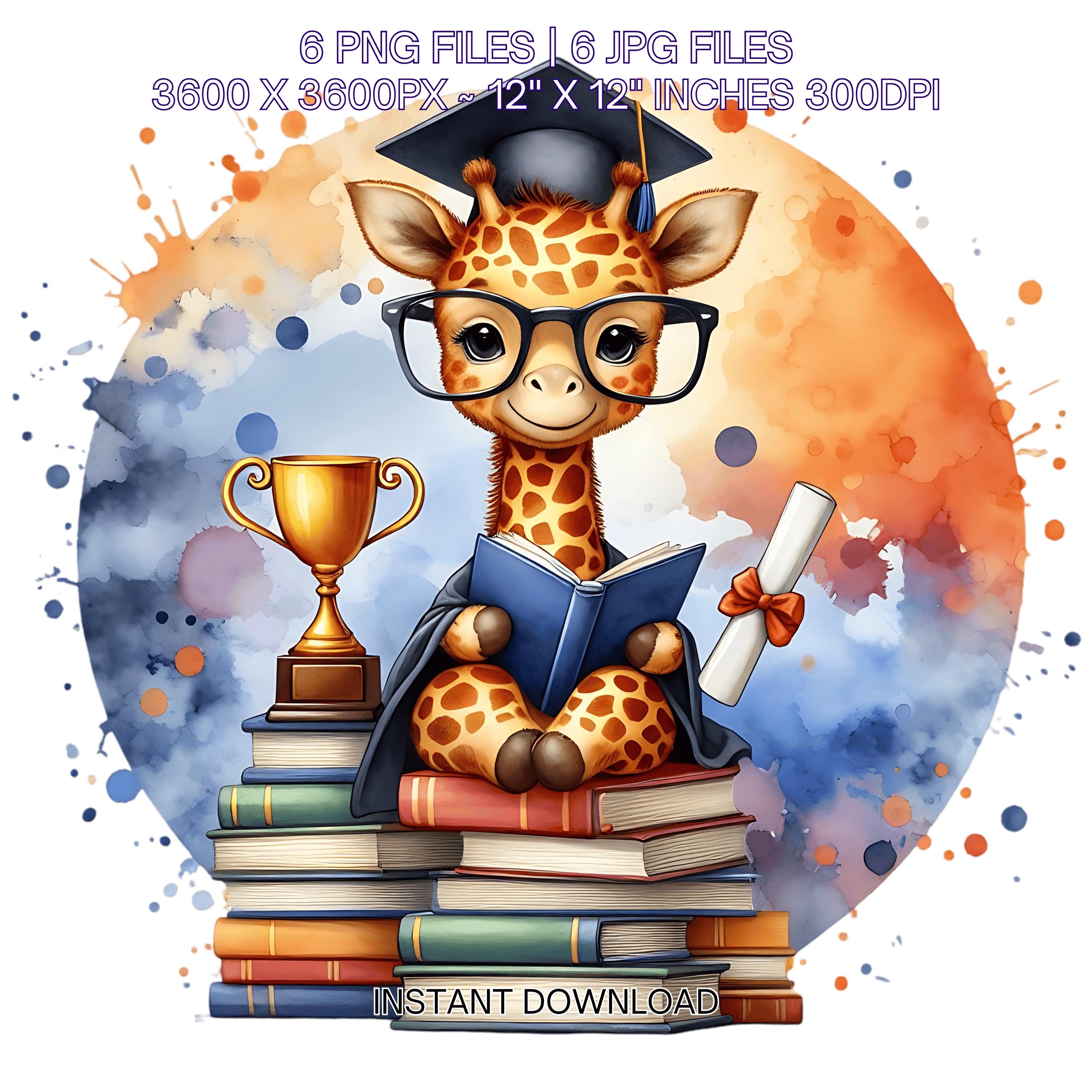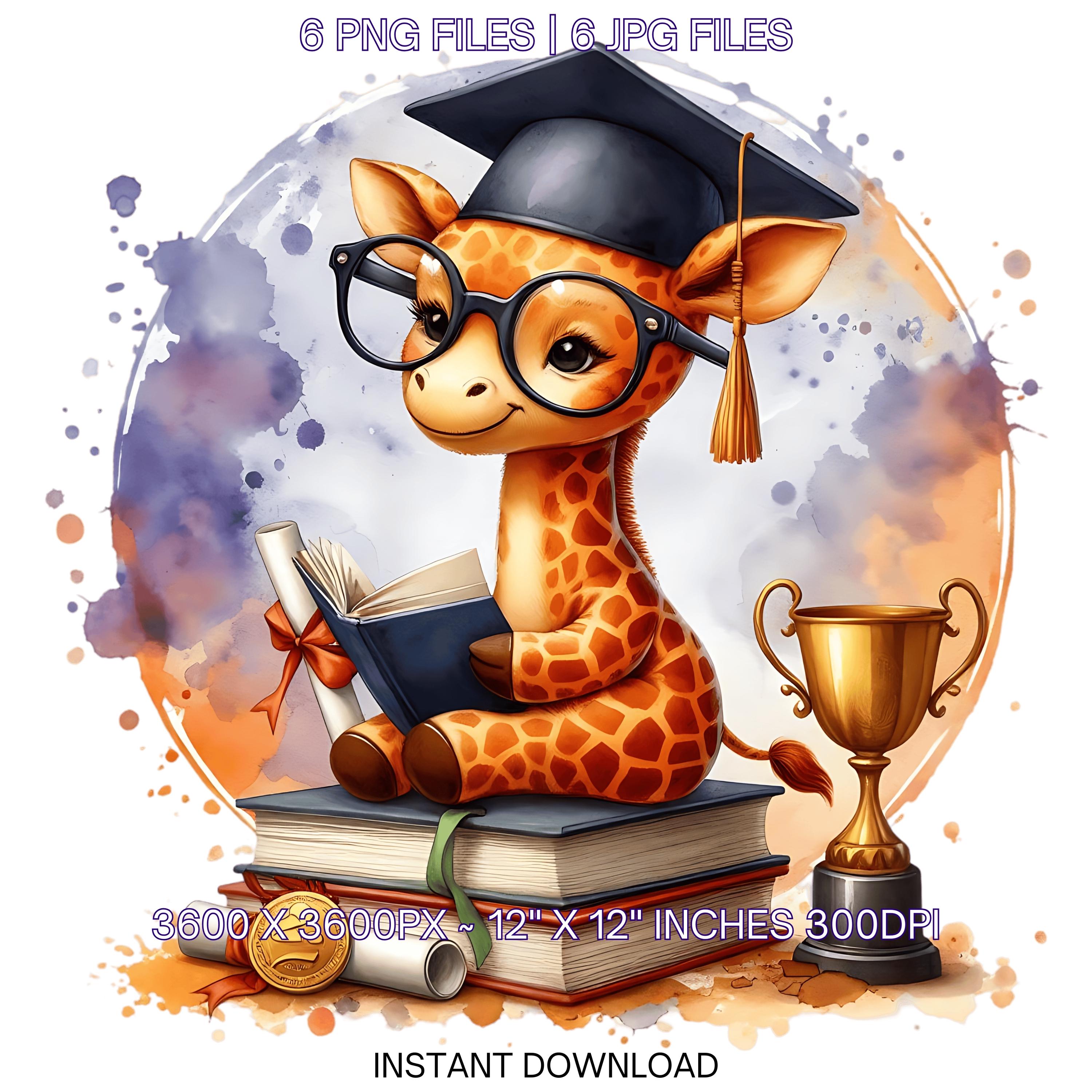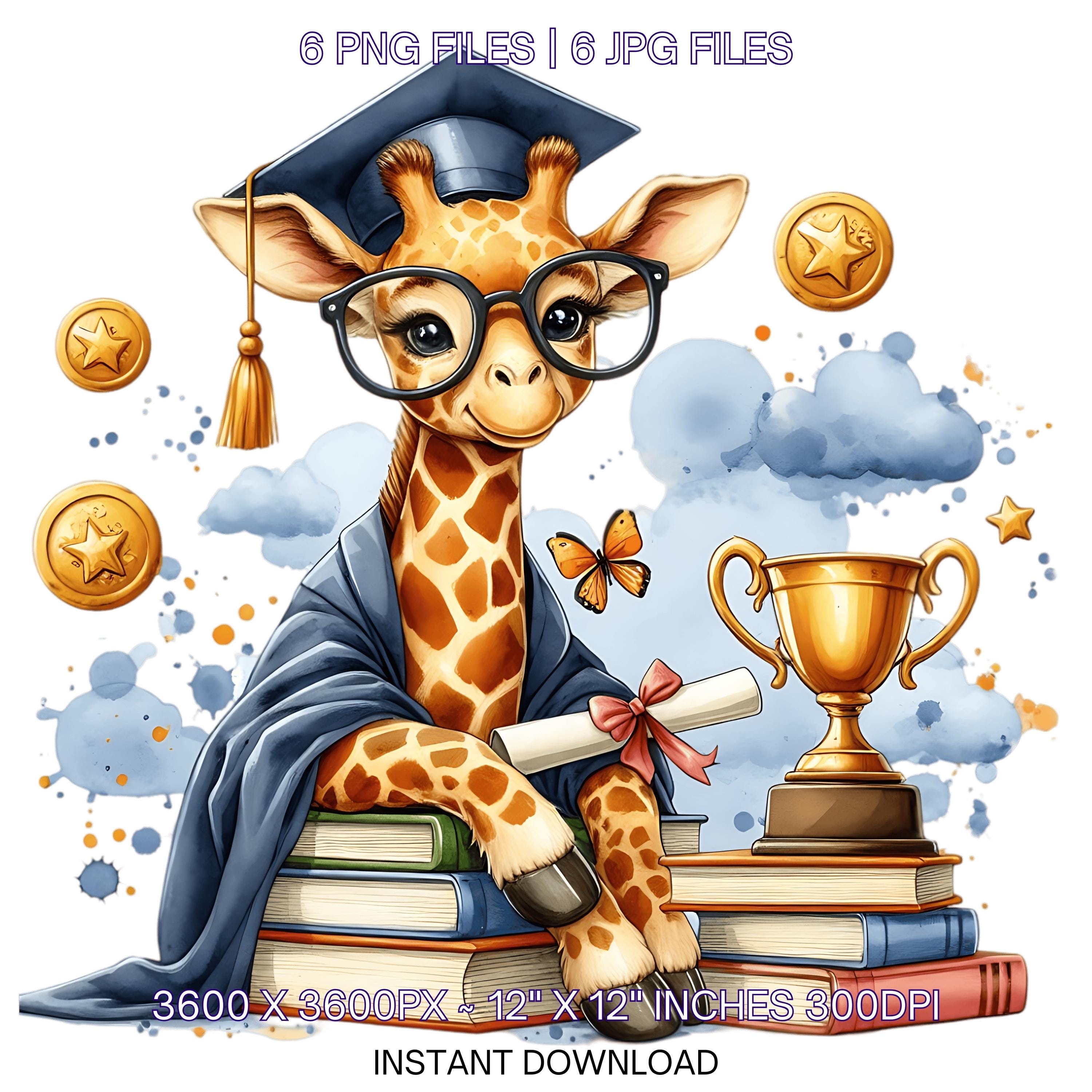 Kindergarten Graduation Giraffe Clipart Grad Student | Giraffe wearing Cap holding a Diploma PNG | Kindergarten Graduate Sublimation | 6 JPG-PNG Commercial Use
