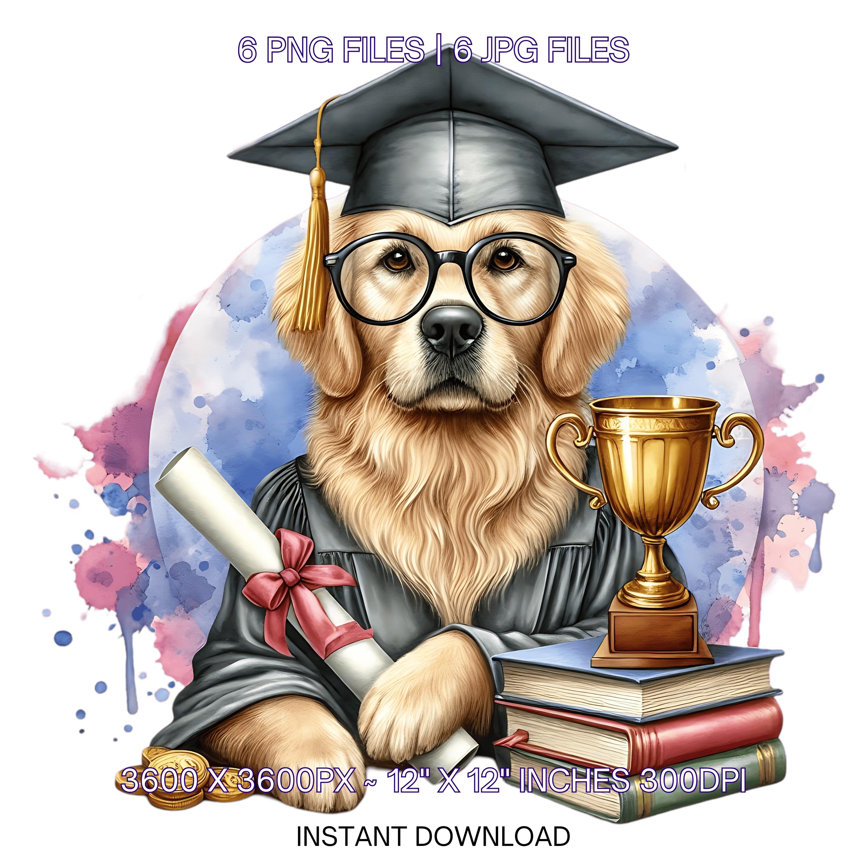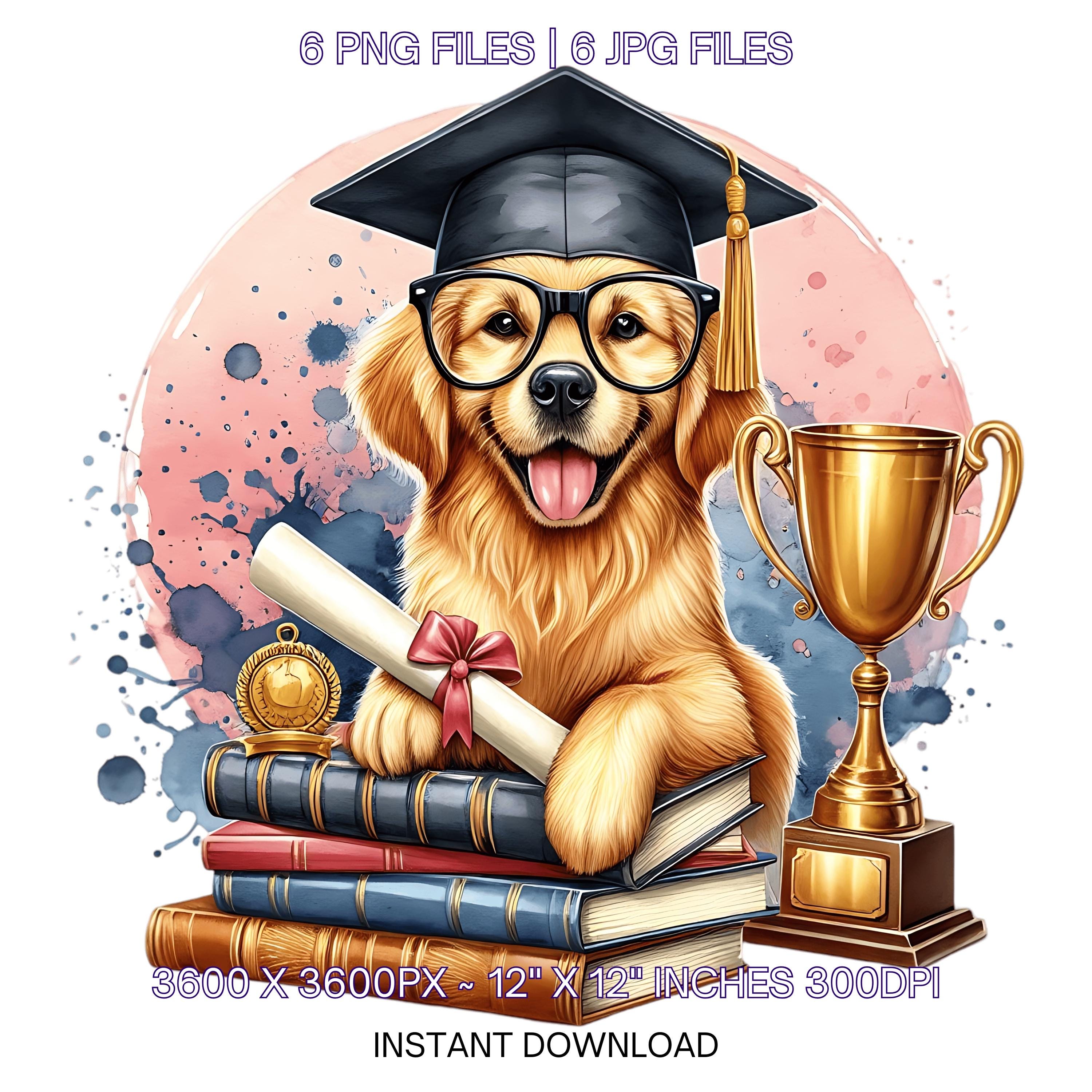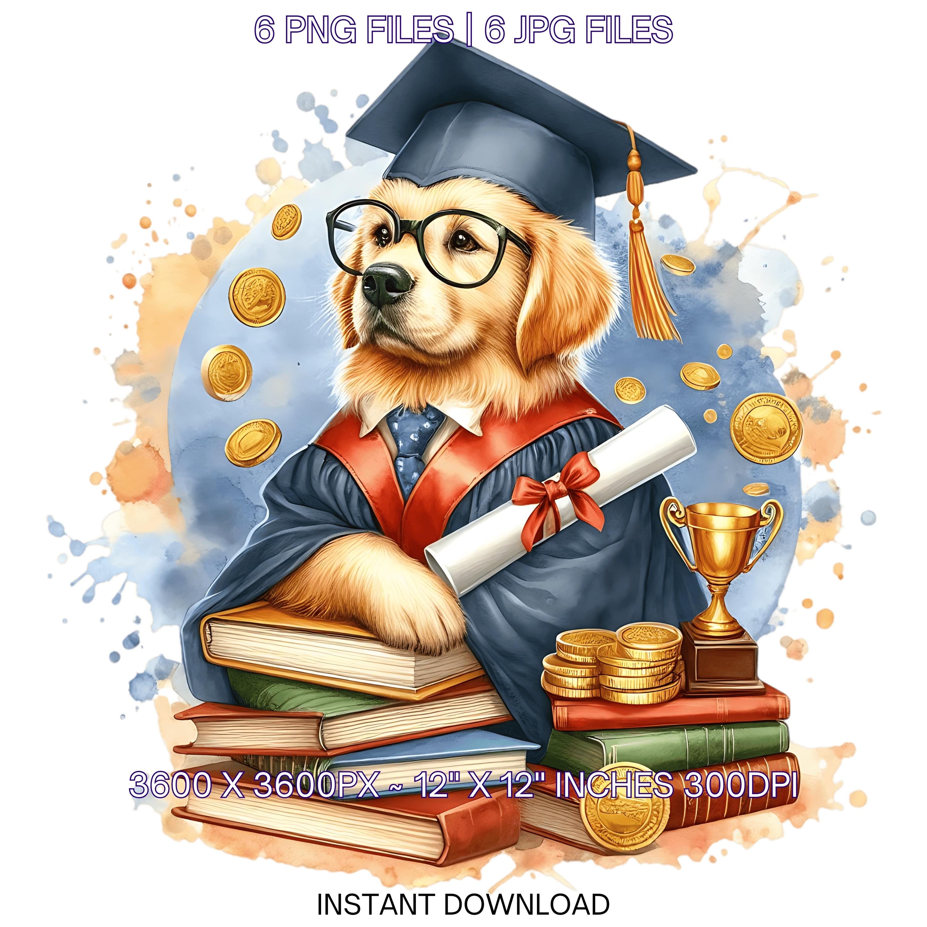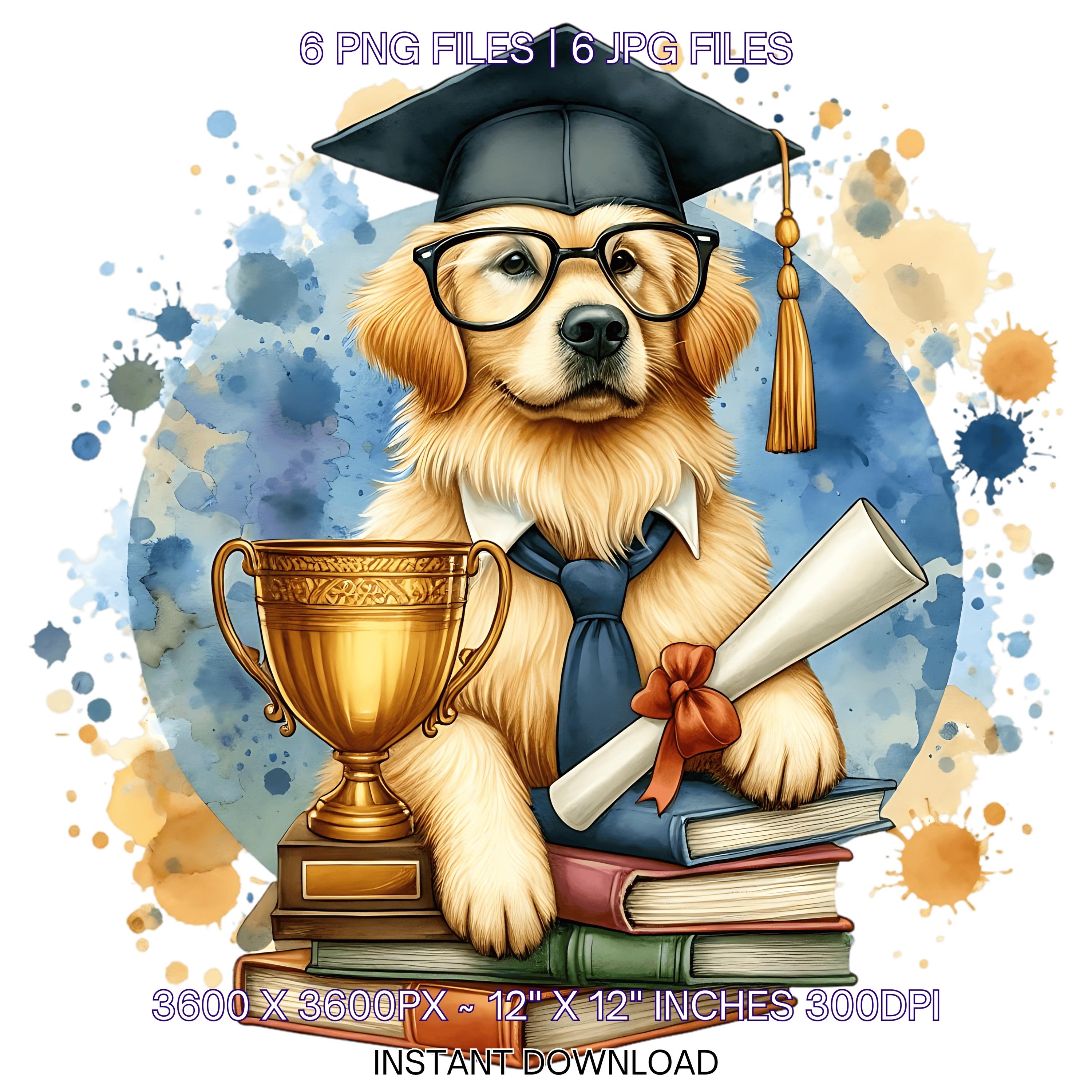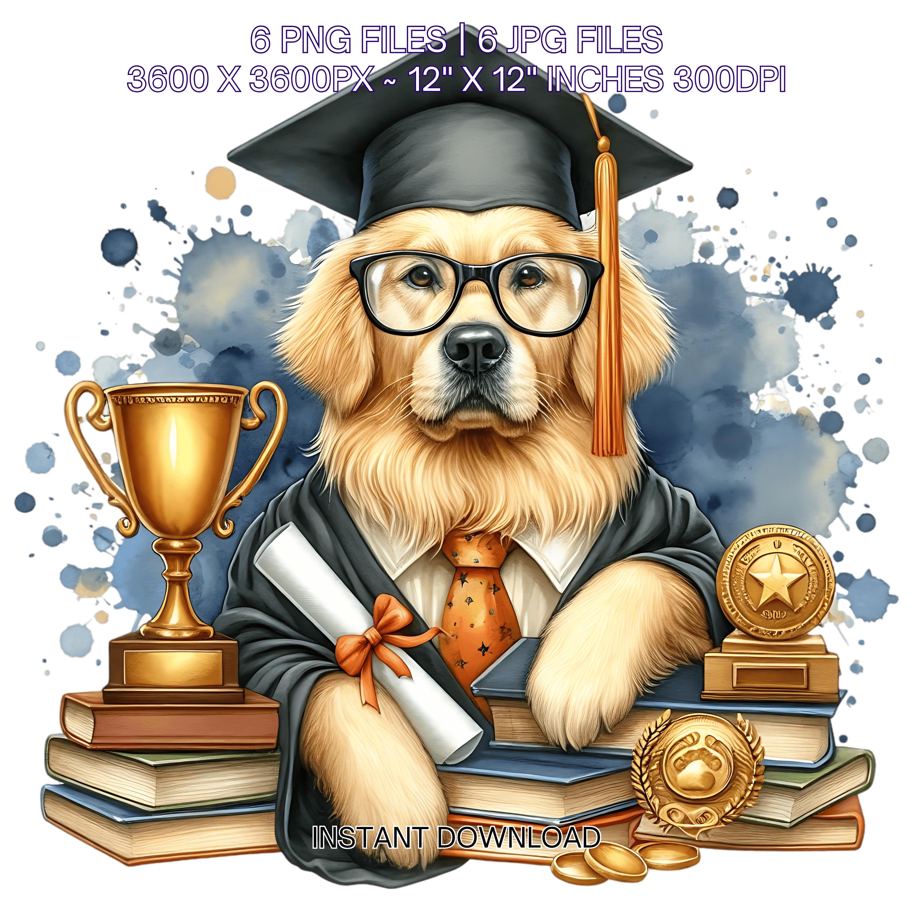 Kindergarten Golden Retriever Dog wearing Cap holding a Diploma PNG | Graduation Clipart | Grad Student | Graduate Kid, 6 JPG-PNG Commercial is an eye-catching, high-resolution digital asset designed for creators, crafters, teachers, and small business owners looking to elevate their visuals.