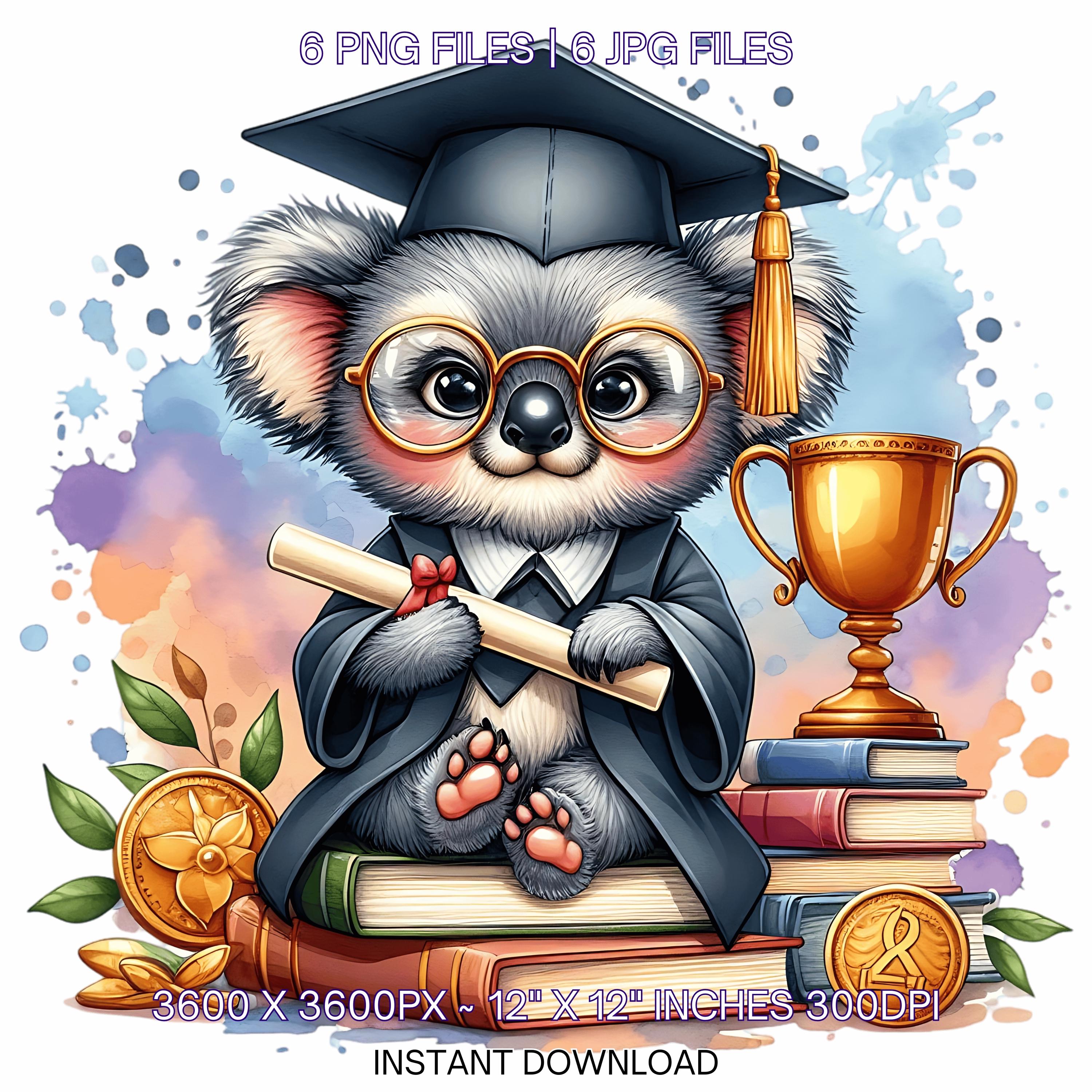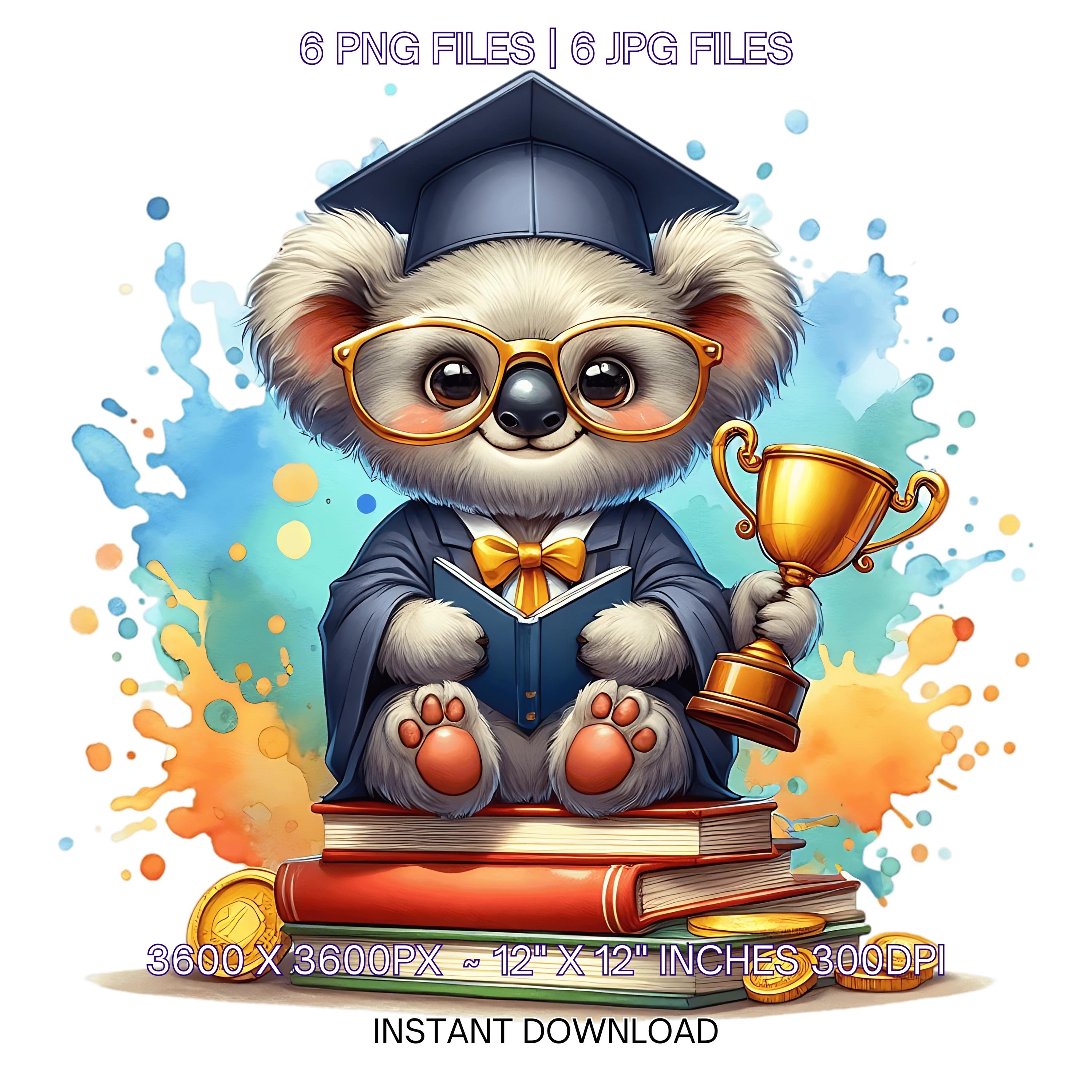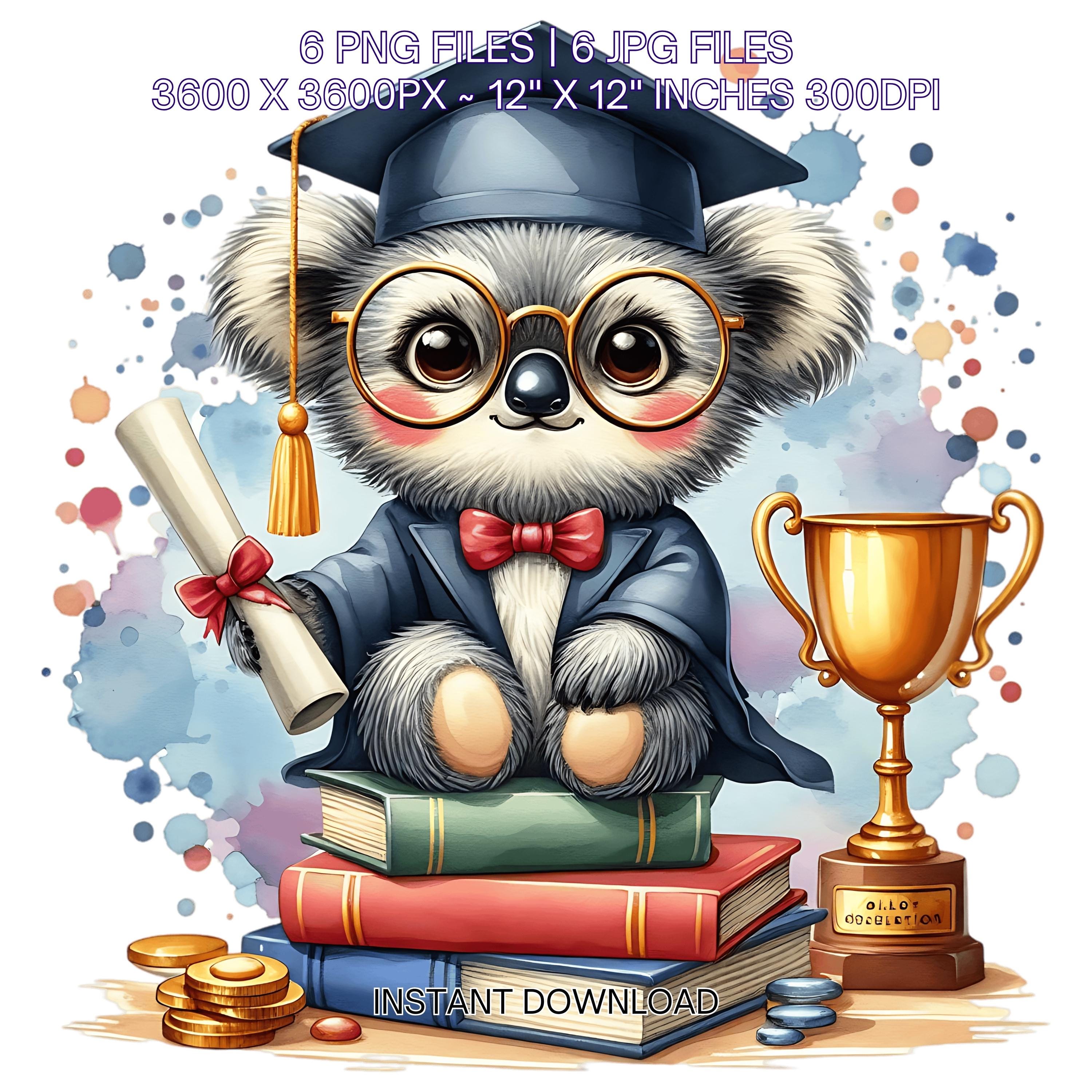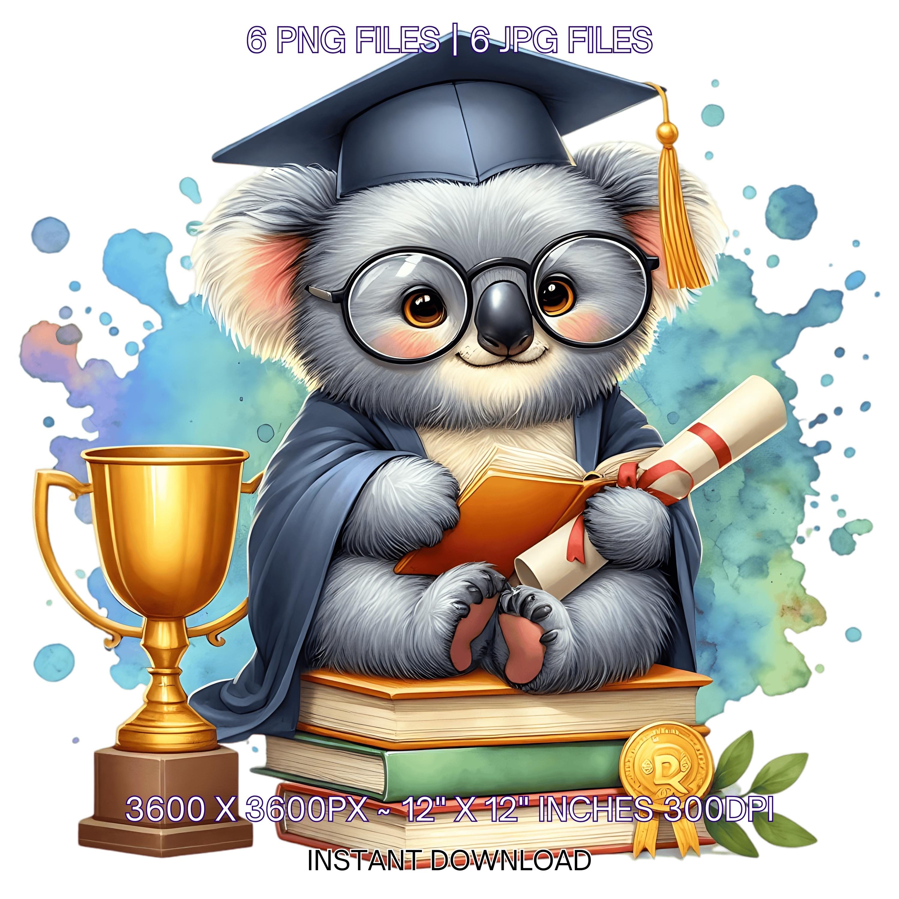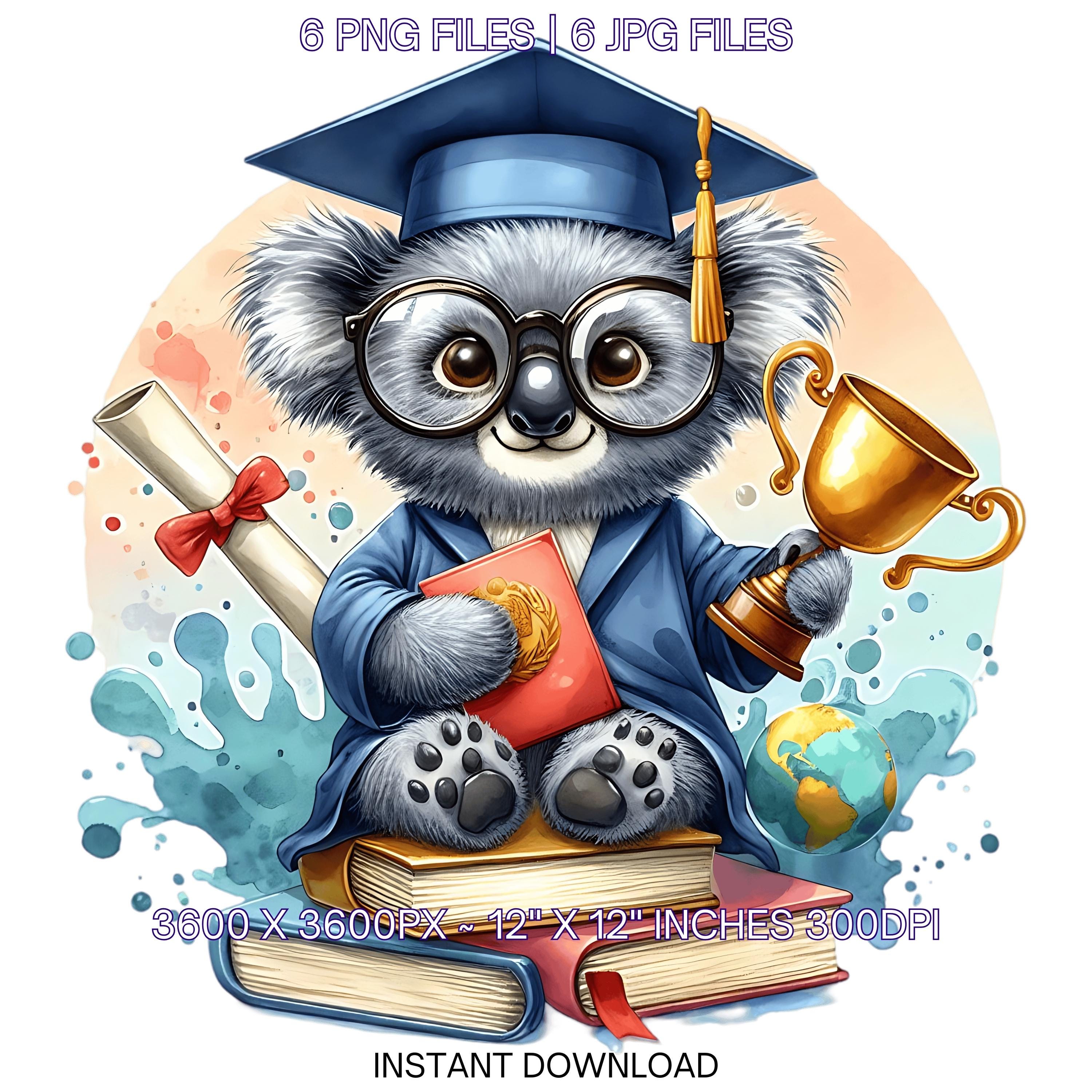 Kindergarten Graduation Kuala Clipart Grad Student | Kuala wearing Cap holding a Diploma PNG | Kindergarten Graduate Sublimation | 6 JPG-PNG Commercial Use