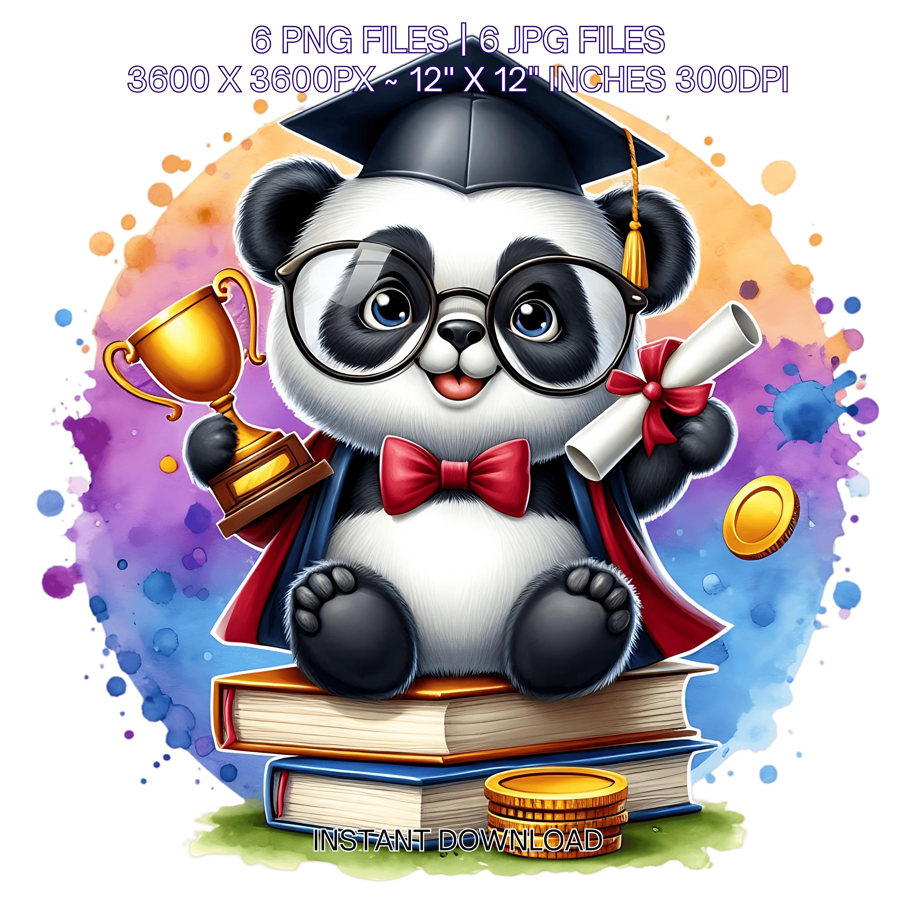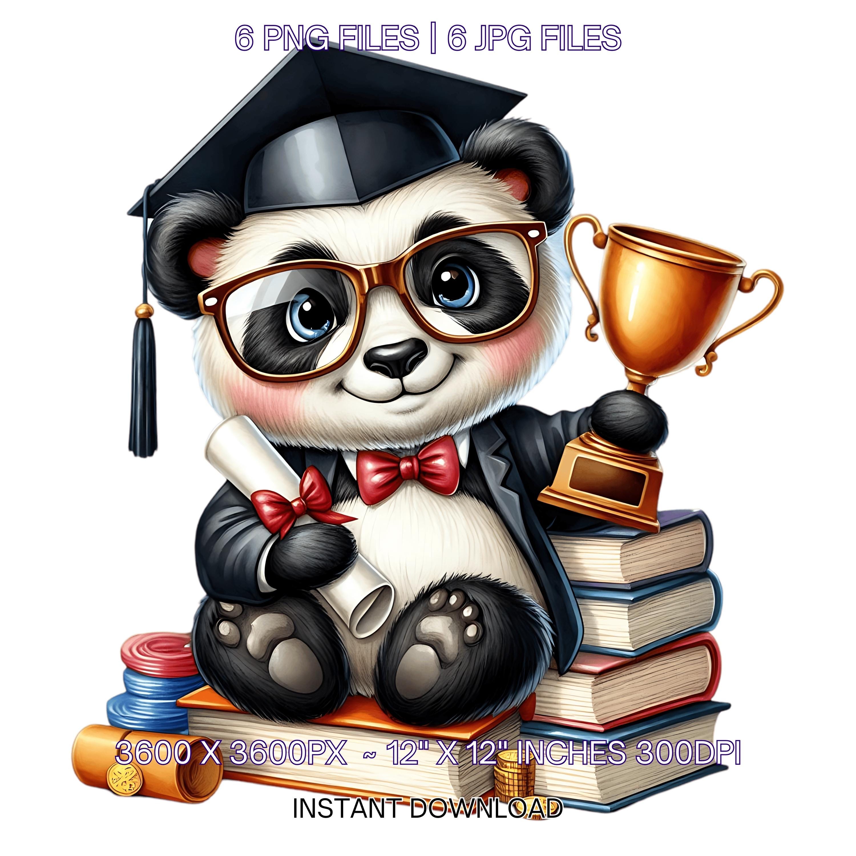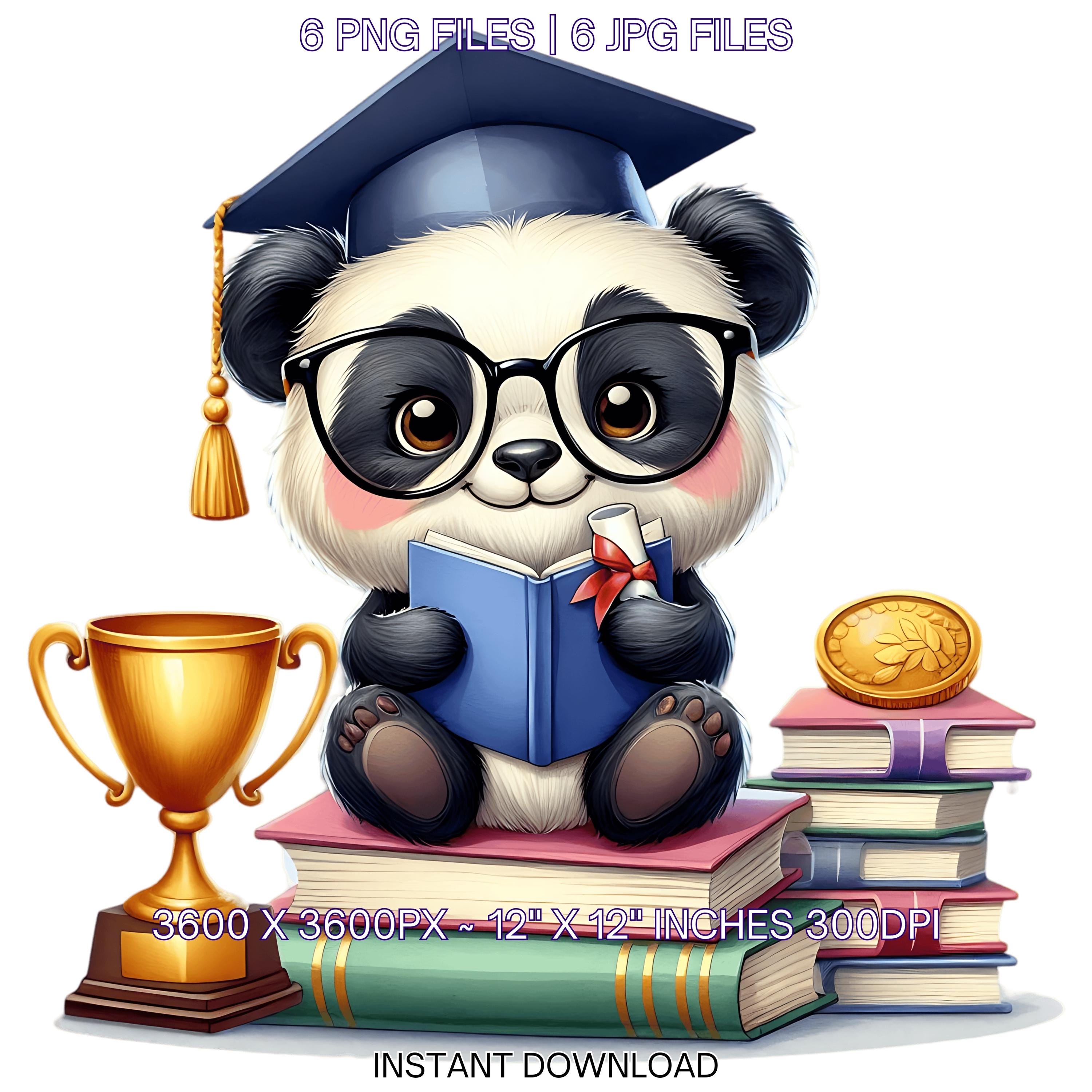 Kindergarten Graduation Panda Clipart Grad Student | Panda wearing Cap holding a Diploma PNG | Kindergarten Graduate Sublimation | 6 JPG-PNG Commercial Use