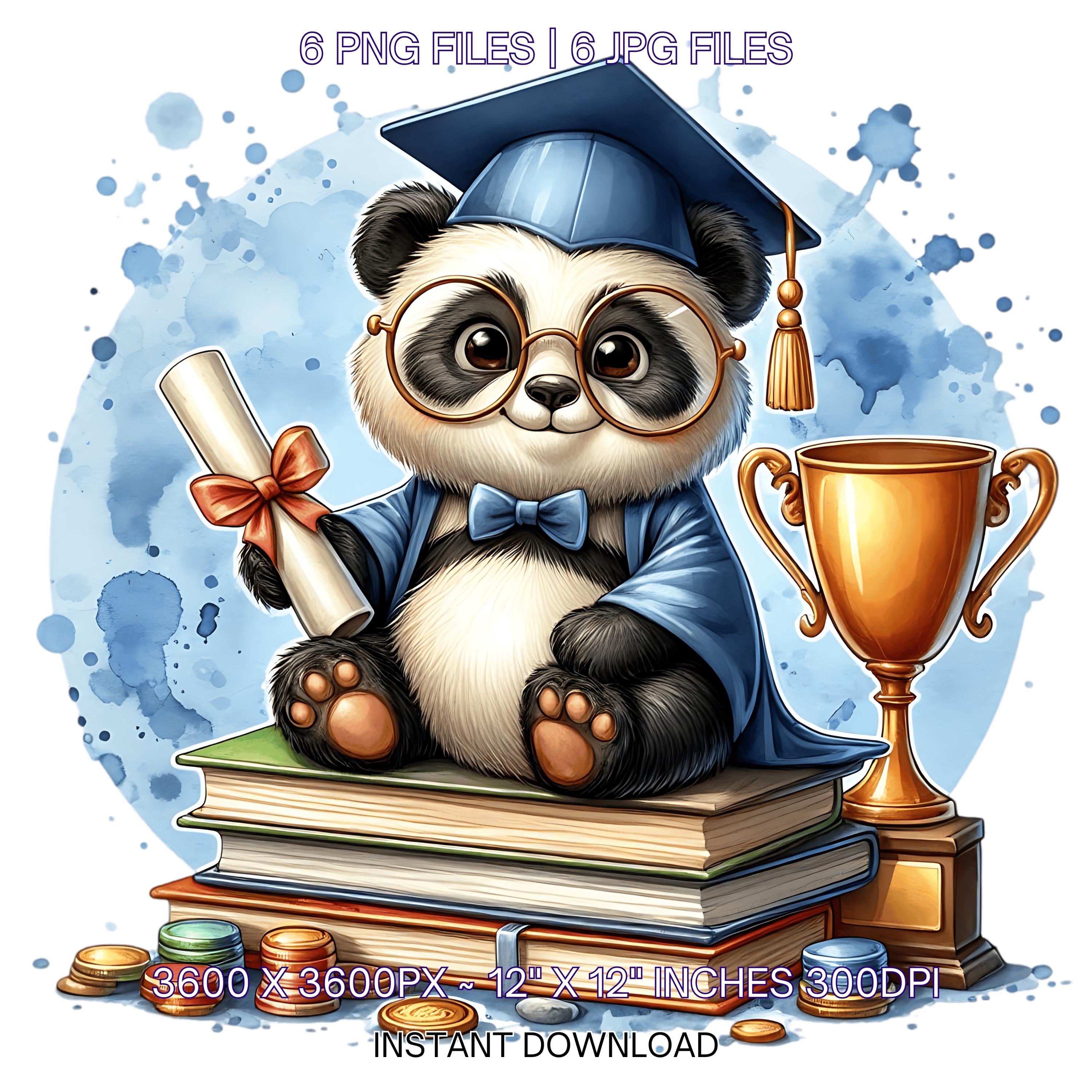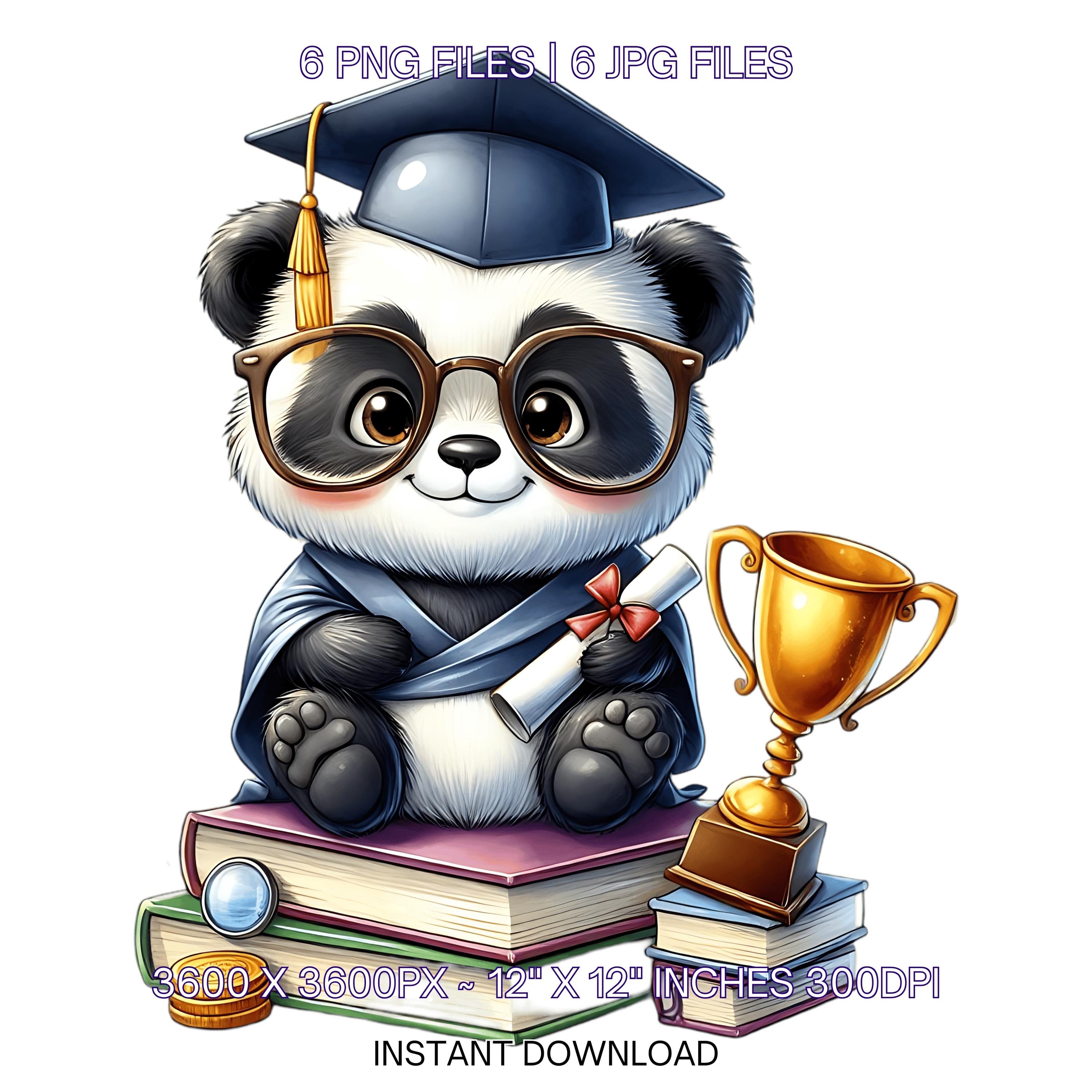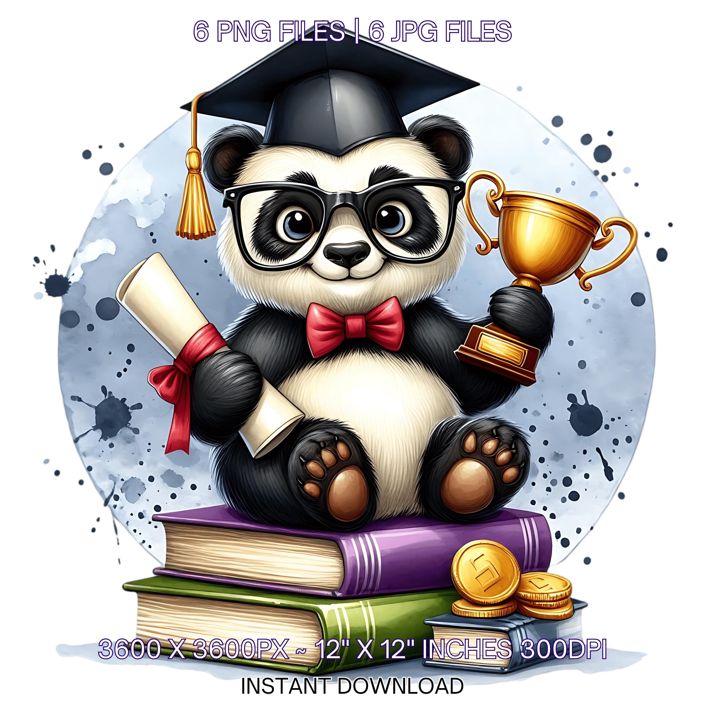 Kindergarten Graduation Panda Clipart Grad Student | Panda wearing Cap holding a Diploma PNG | Kindergarten Graduate Sublimation | 6 JPG-PNG Commercial Use