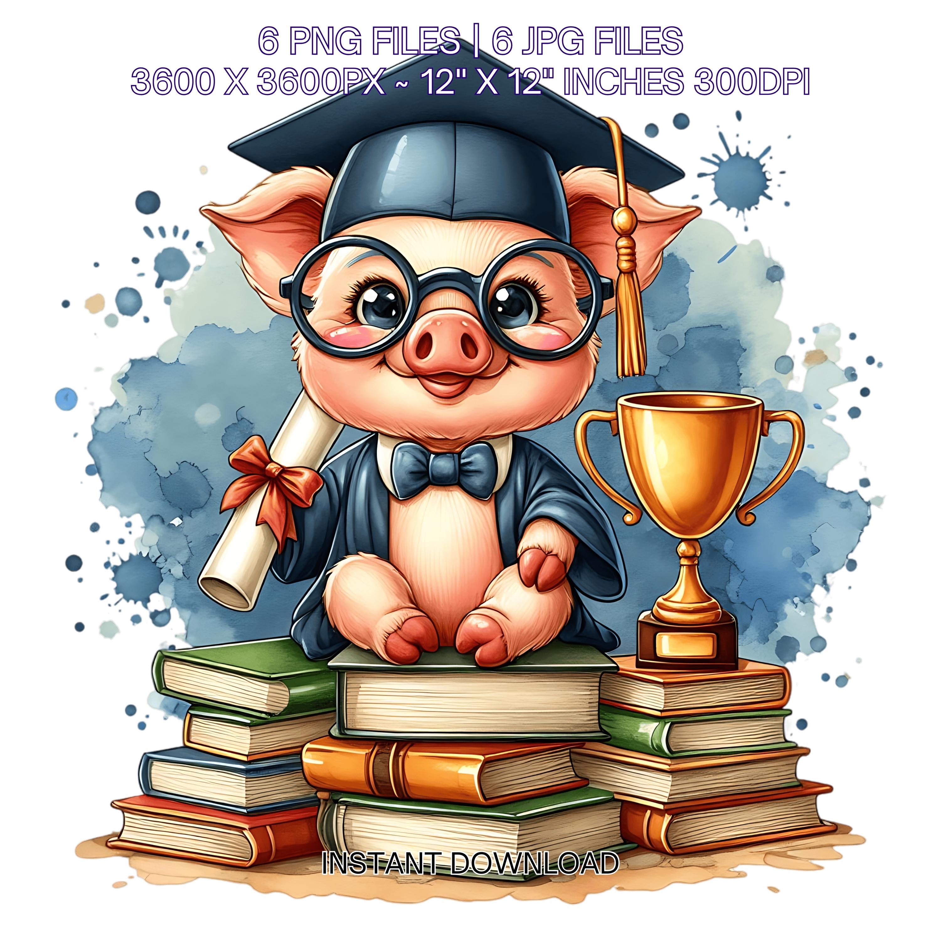 Kindergarten Pig wearing Cap holding a Diploma PNG | Graduation Pig Clipart | Grad Student | Graduate Kid | 6 JPG-PNG Commercial Use is an eye-catching, high-resolution digital asset designed for creators, crafters, teachers, and small business owners looking to elevate their visuals.