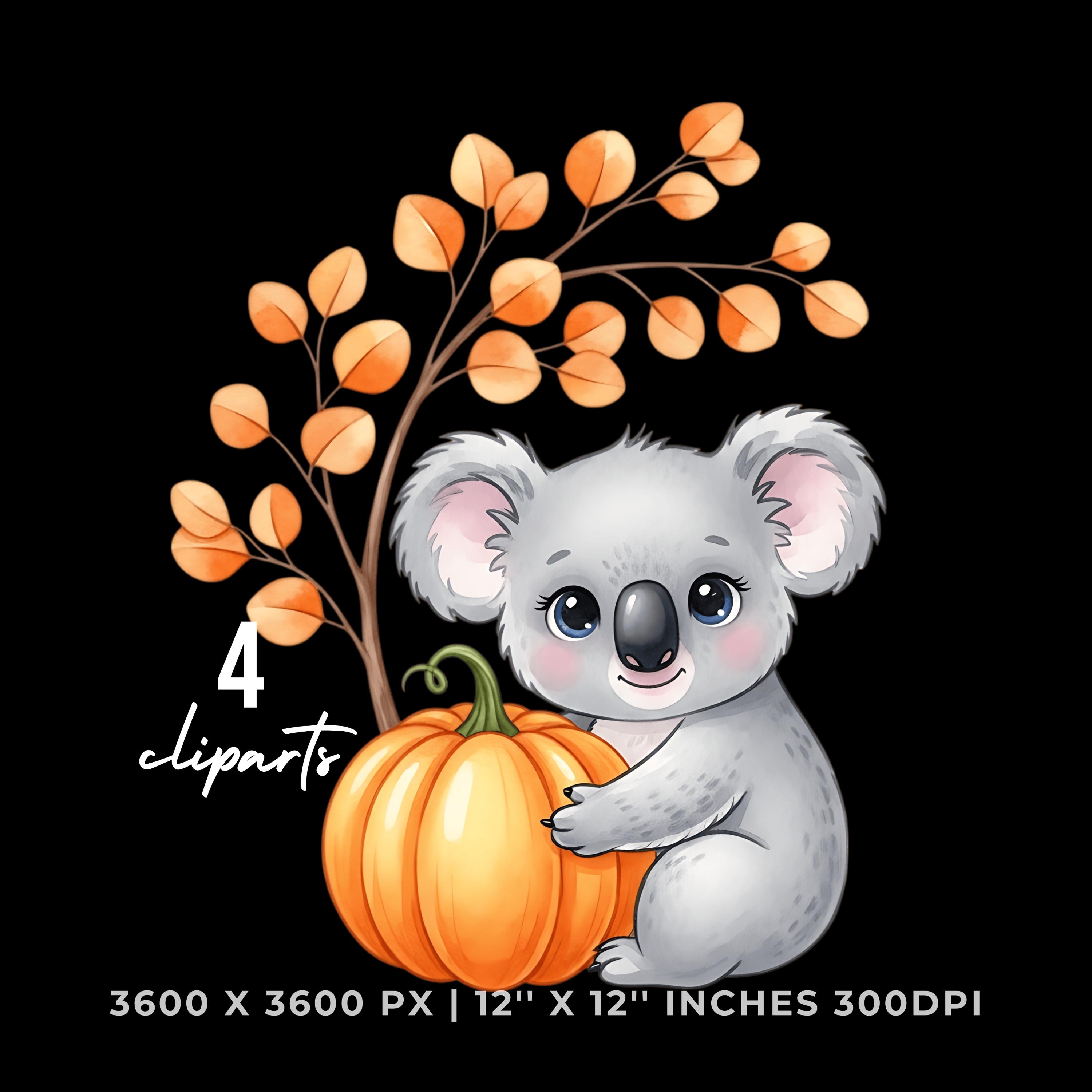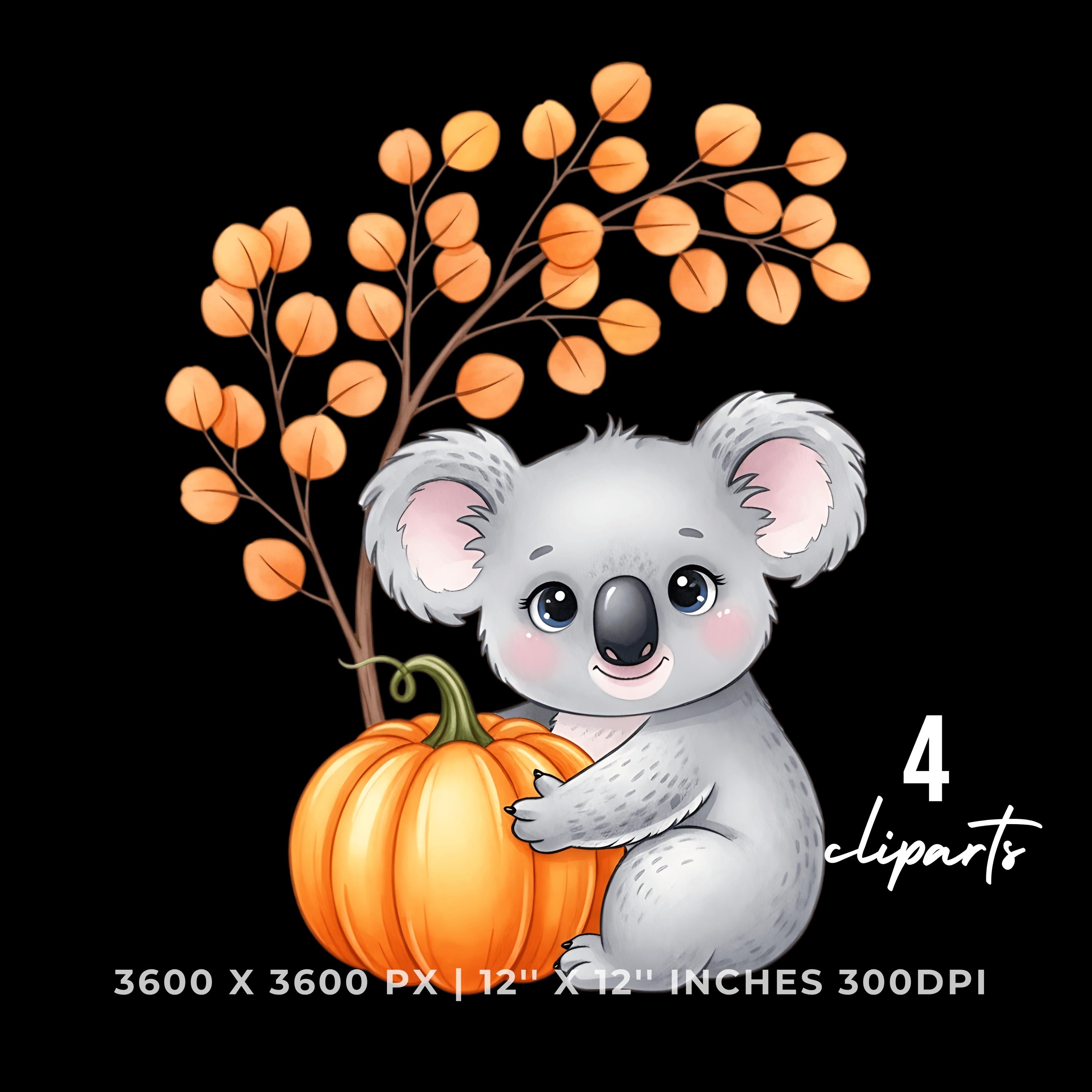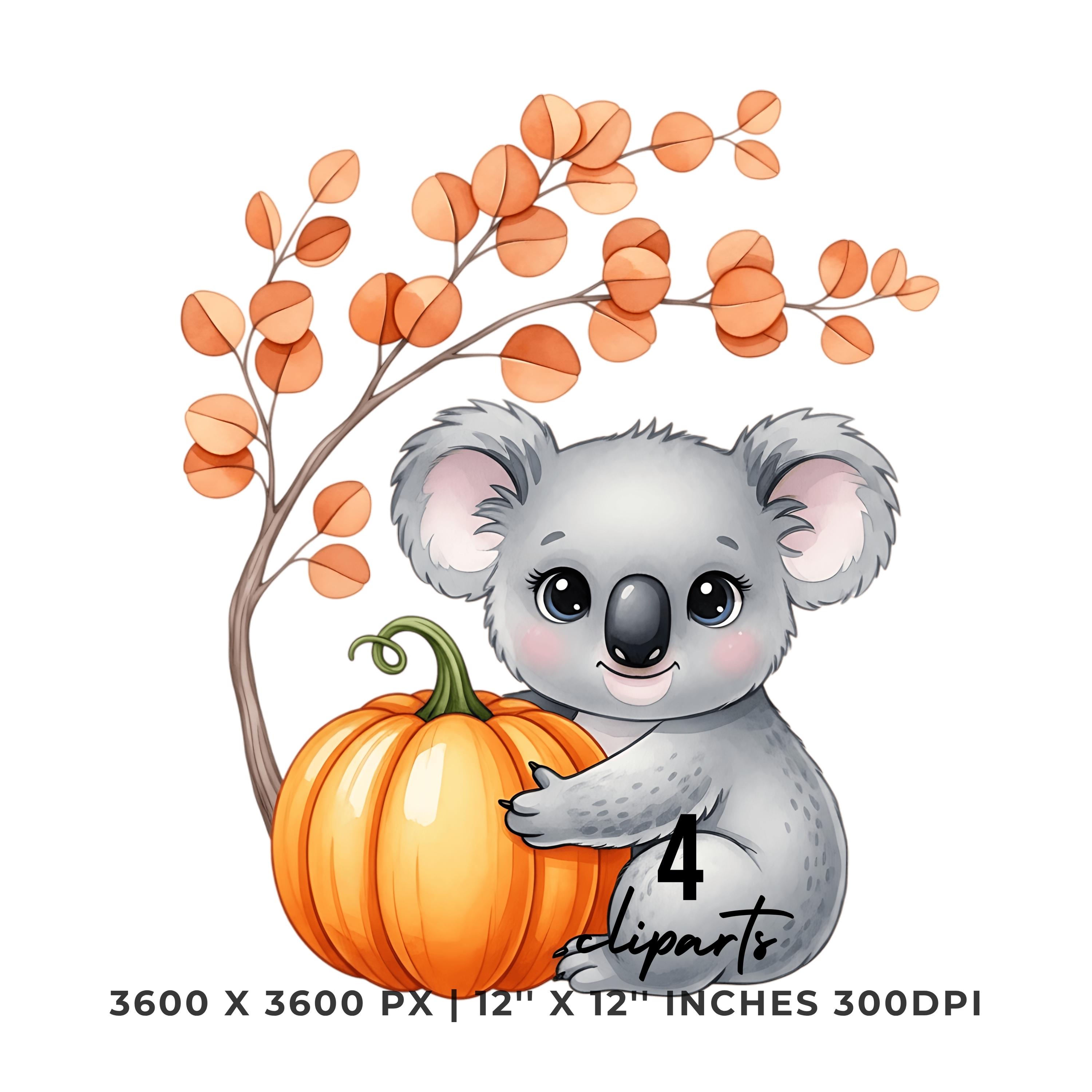 Koala Hugging Pumpkin Eucalyptus Fall Clipart | 4 PNG & 4 JPG | Sublimation Transparent Commercial Use is an eye-catching, high-resolution digital asset designed for creators, crafters, teachers, and small business owners looking to elevate their visuals.