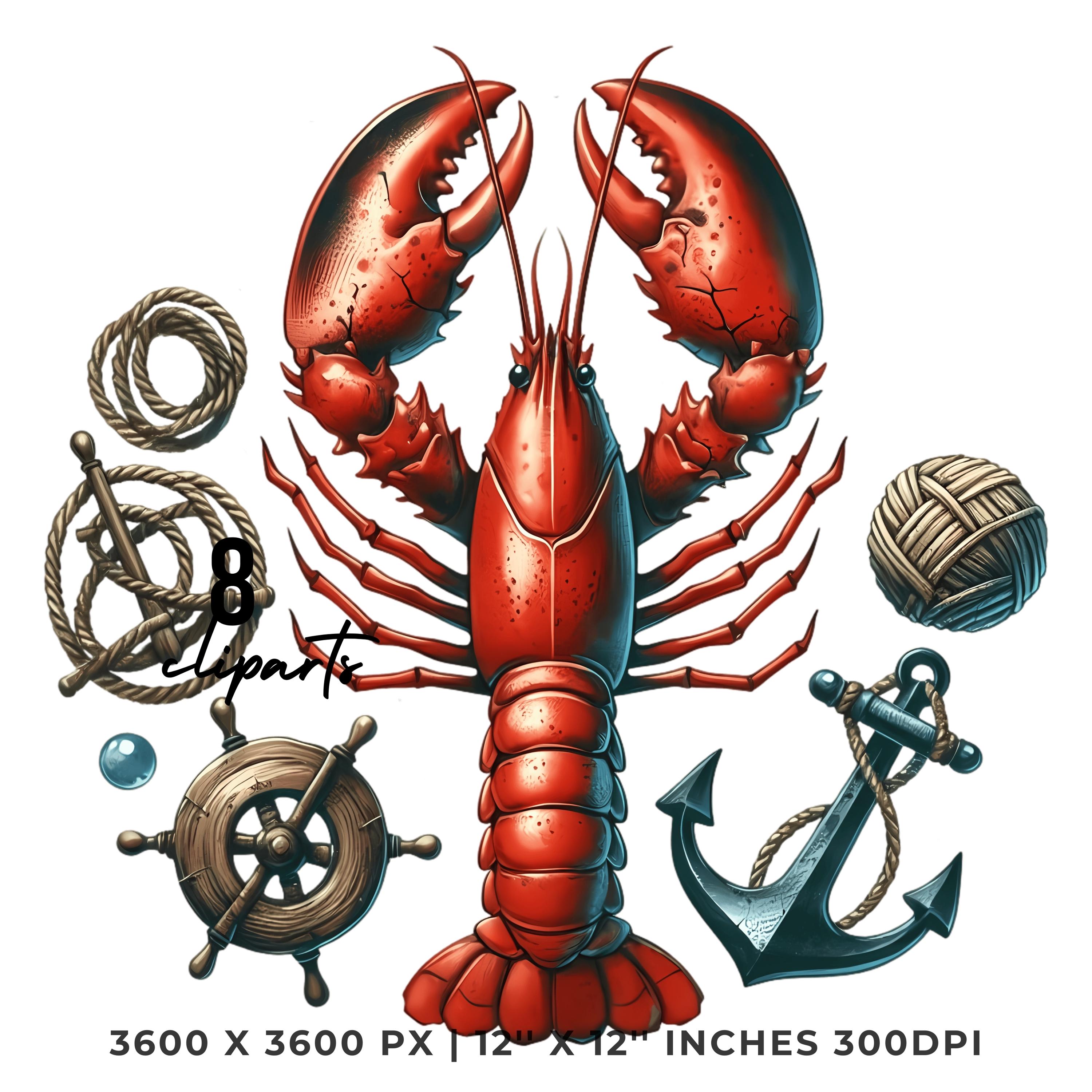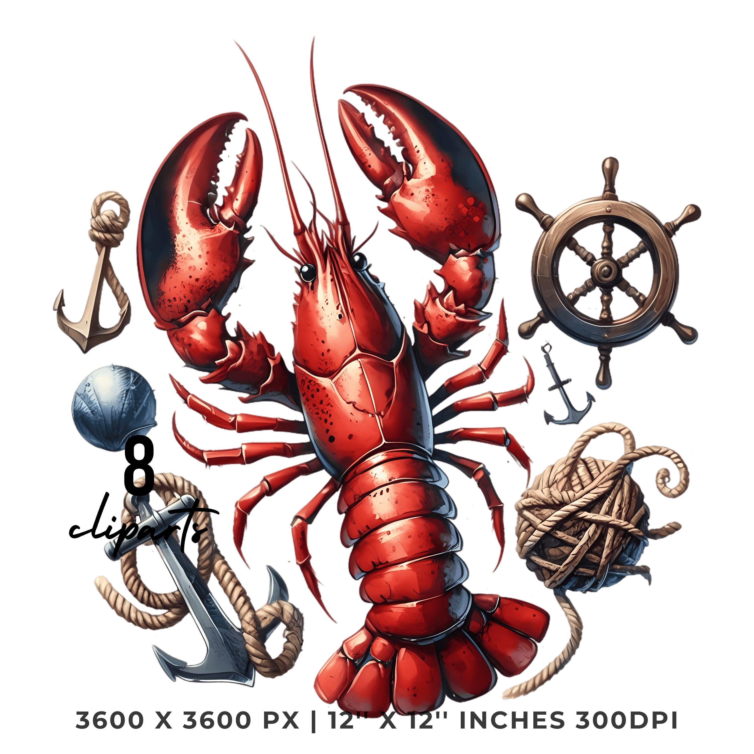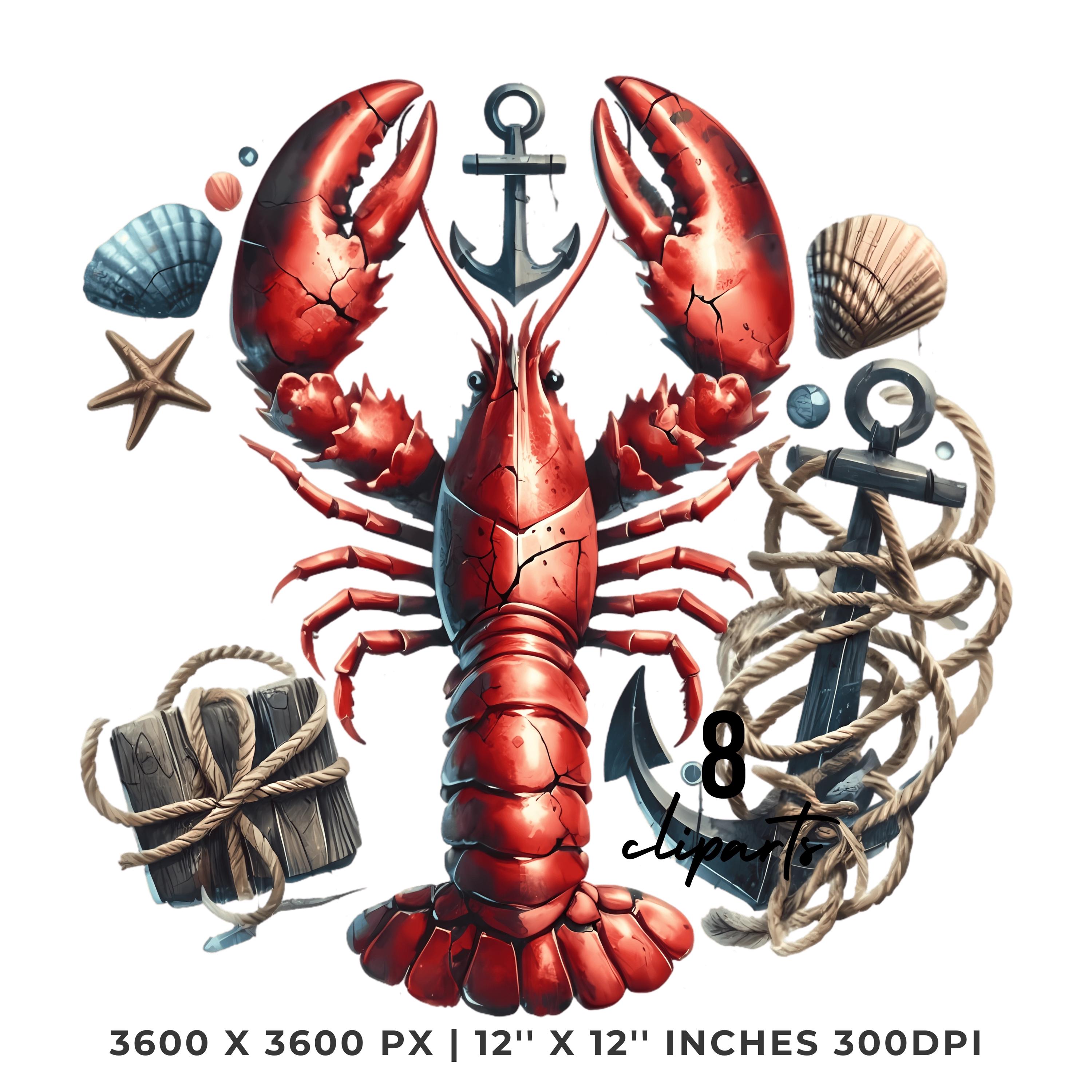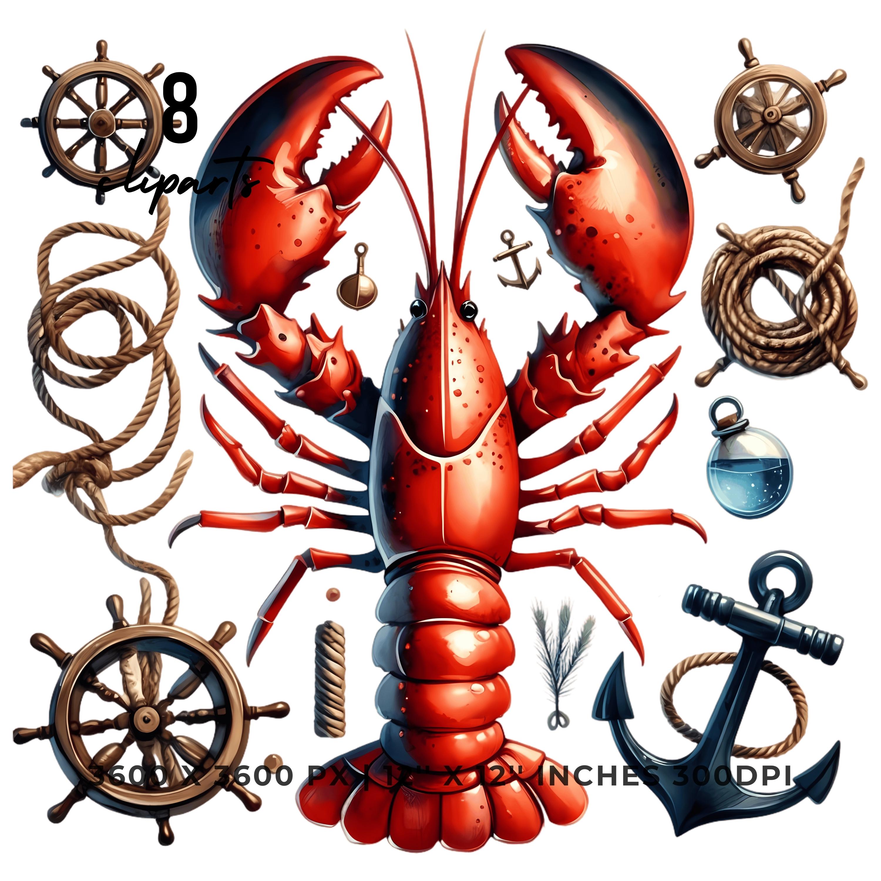 Lobster Clipart PNG | 8 Watercolor Cracked Claws Red Lobster, rope, anchors & driftwood | Underwater Nautical Sublimation Commercial Use is an eye-catching, high-resolution digital asset designed for creators, crafters, teachers, and small business owners looking to elevate their visuals.