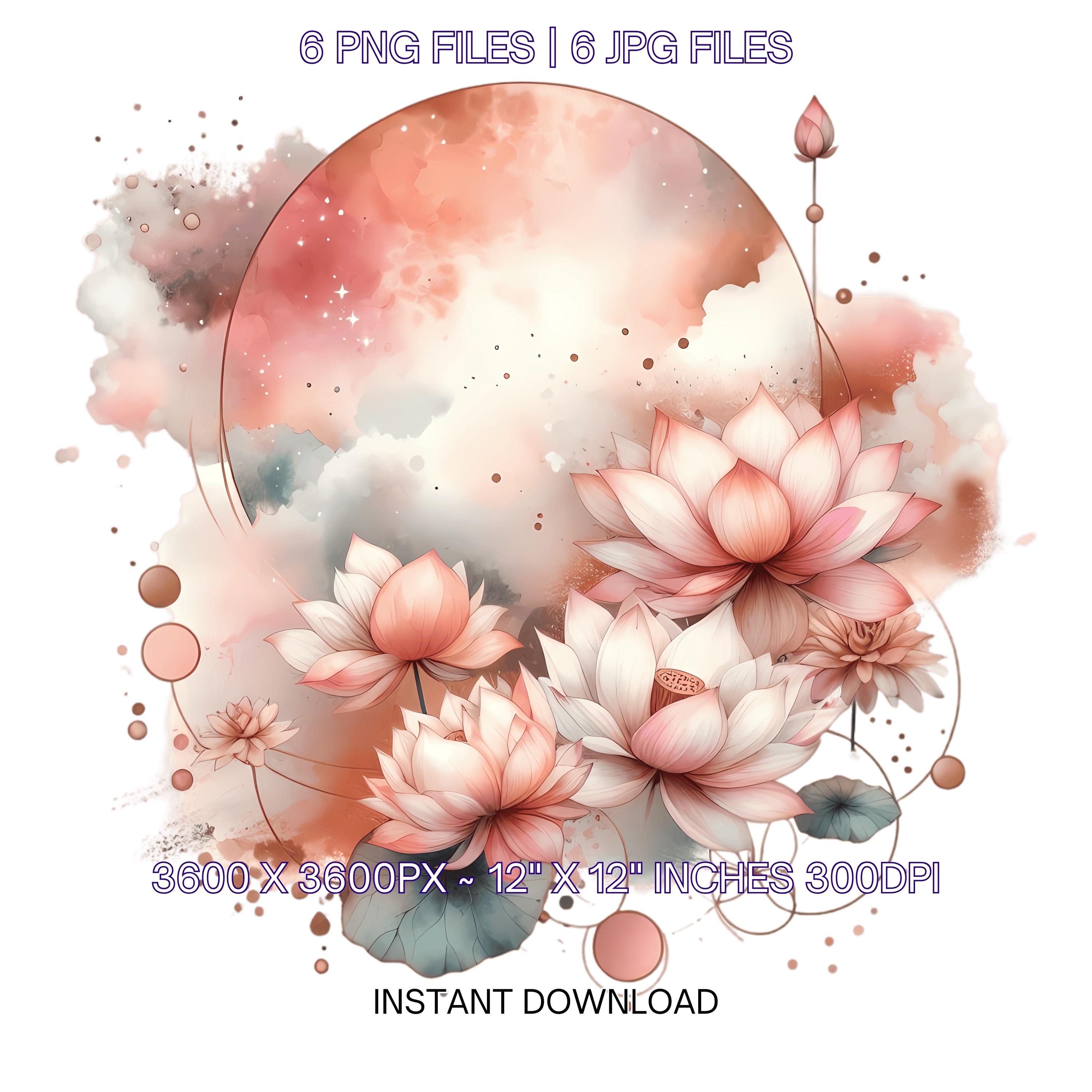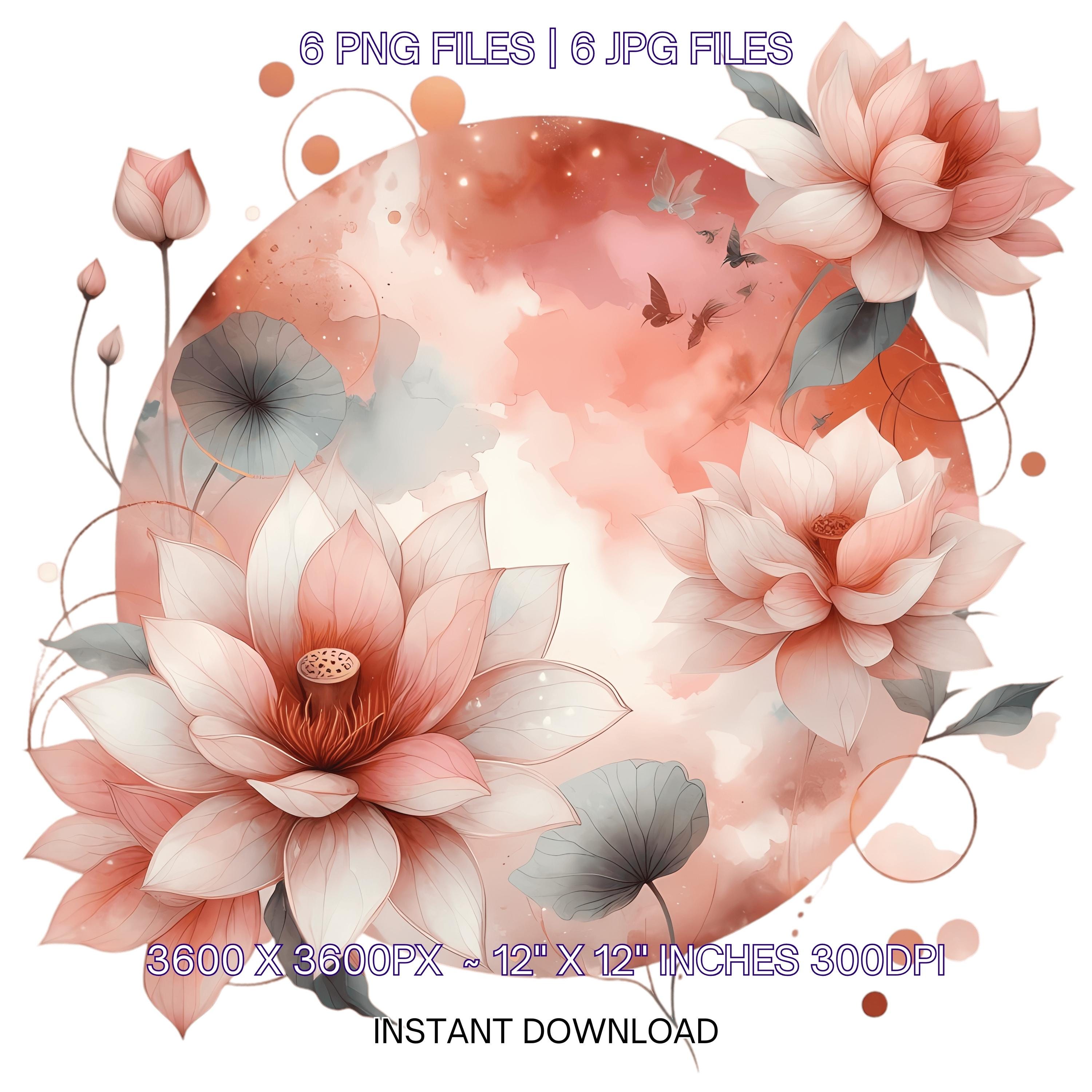 Lotus Flowers PNG Clipart | Floating Lotus Flowers | Watercolor Lotus Flowers Illustration Clipart | 6 JPG -6 PNG Sublimation Commercial Use is an eye-catching, high-resolution digital asset designed for creators, crafters, teachers, and small business owners looking to elevate their visuals.